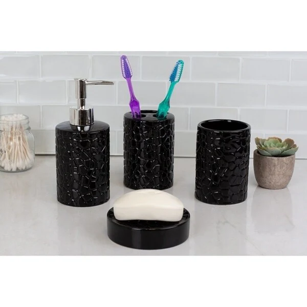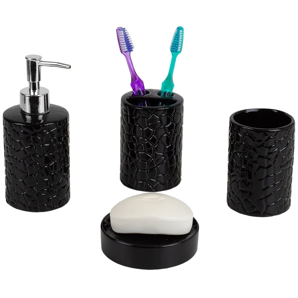 4 Piece Ceramic Bath Accessory Set, Black