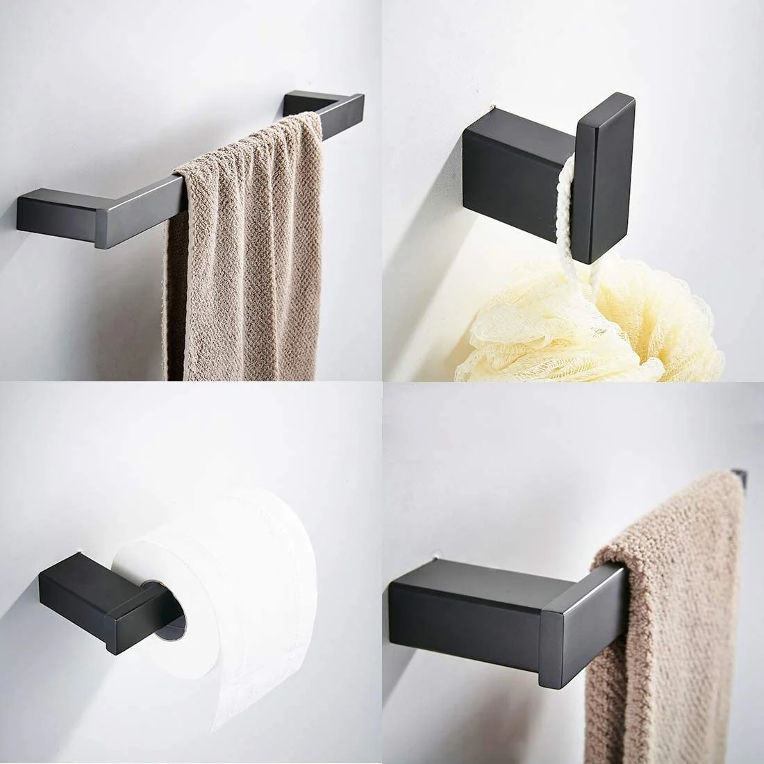 Bathroom Accessories 4-Pieces Set Black