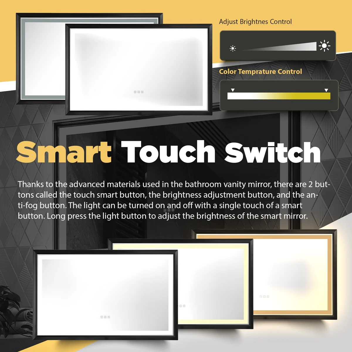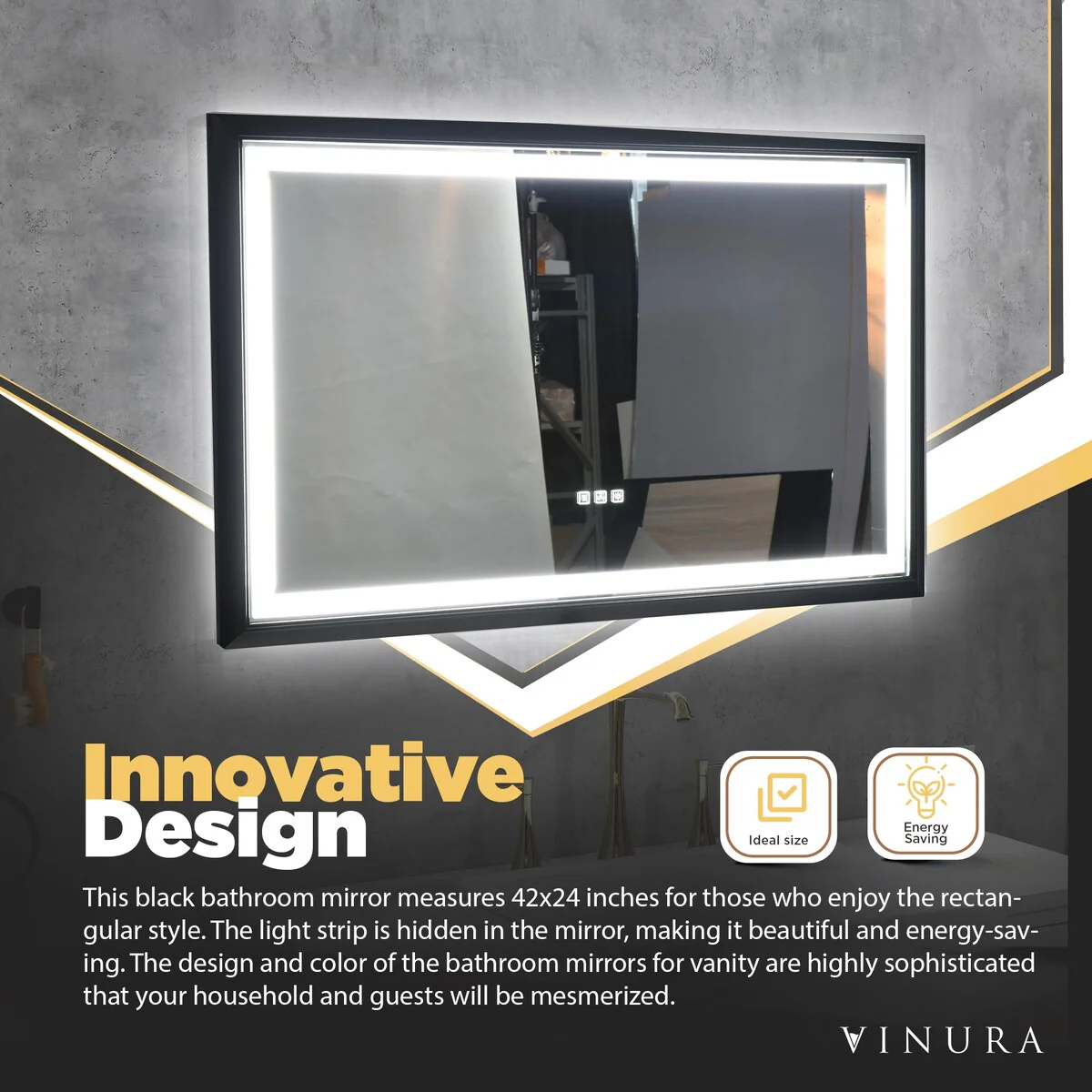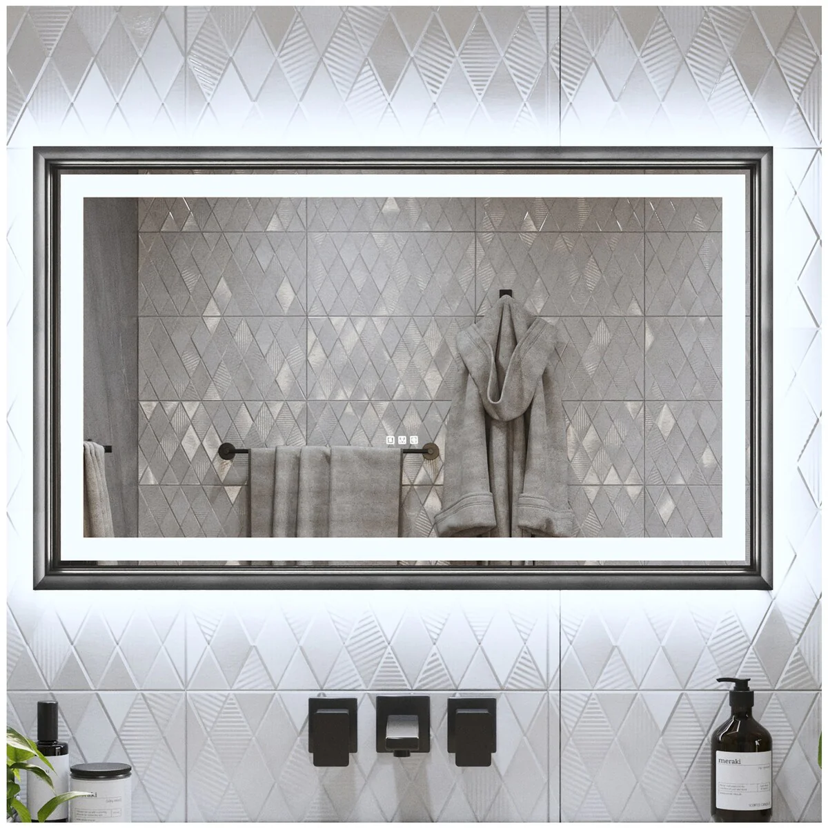 LED Mirror for Bathroom - 42�� Black Framed Smart Bathroom Mirror - Medium
