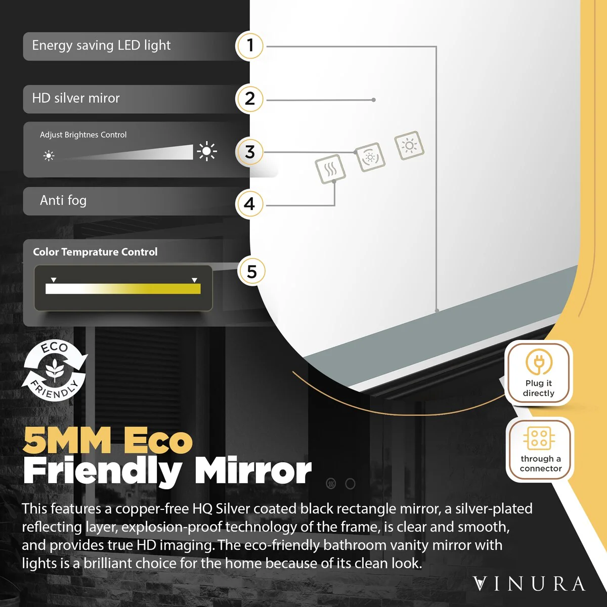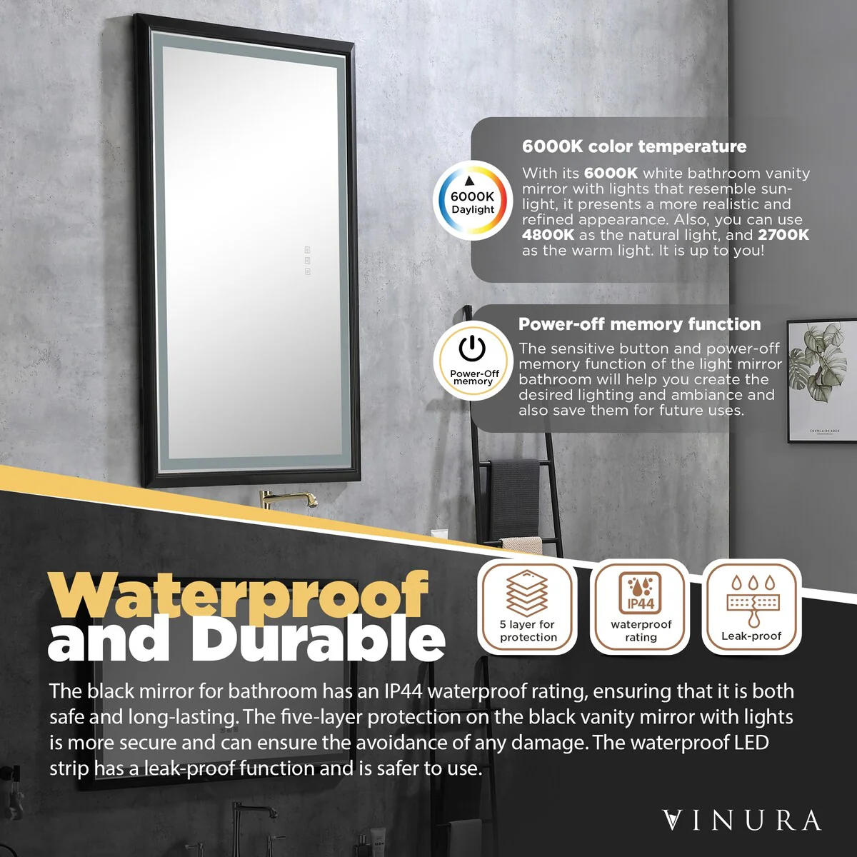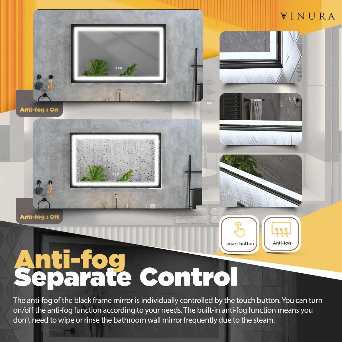 LED Mirror for Bathroom - 42�� Black Framed Smart Bathroom Mirror - Medium