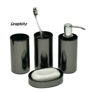 Evideco Mirror Effect 4 Pieces Bathroom Accessory Set Graphite Black