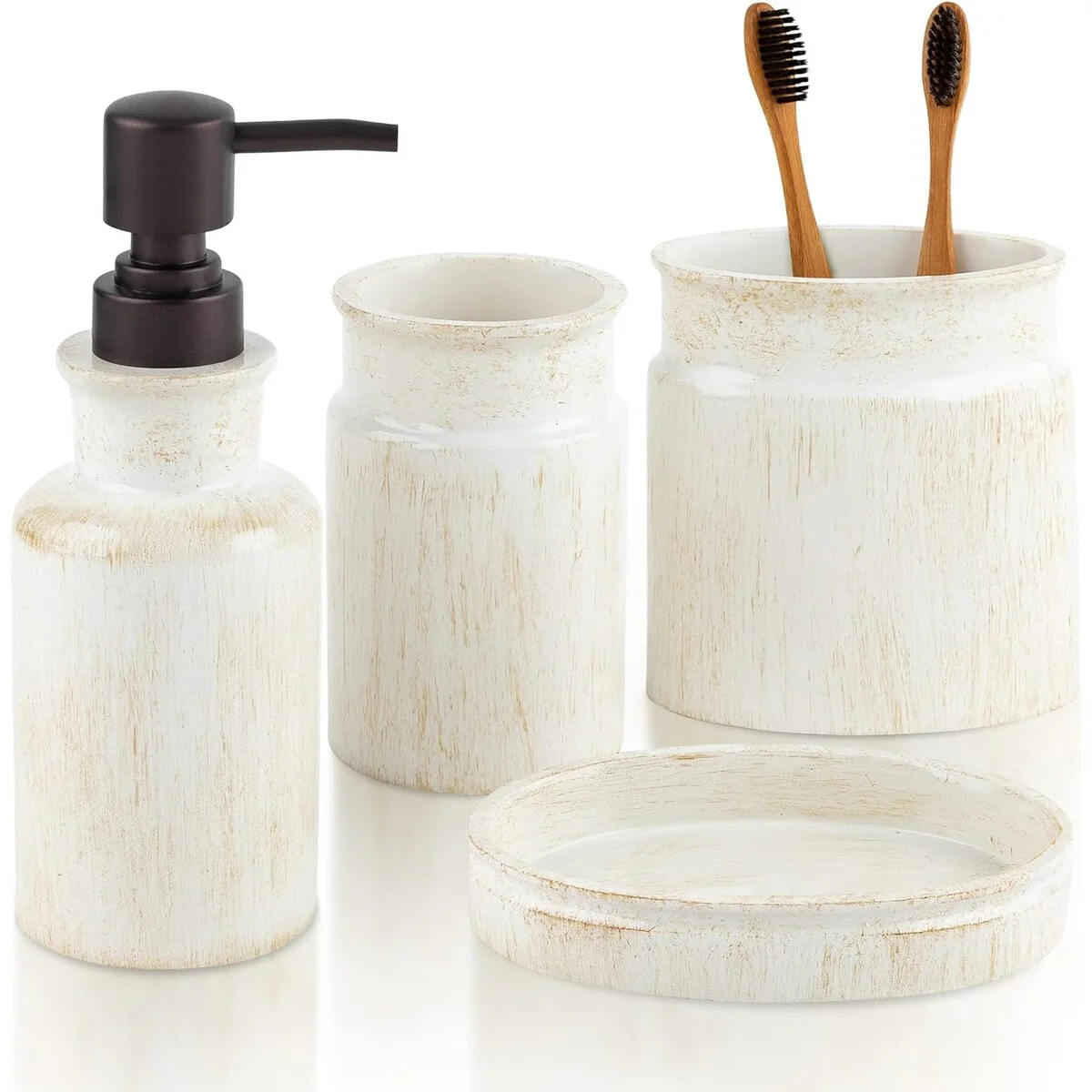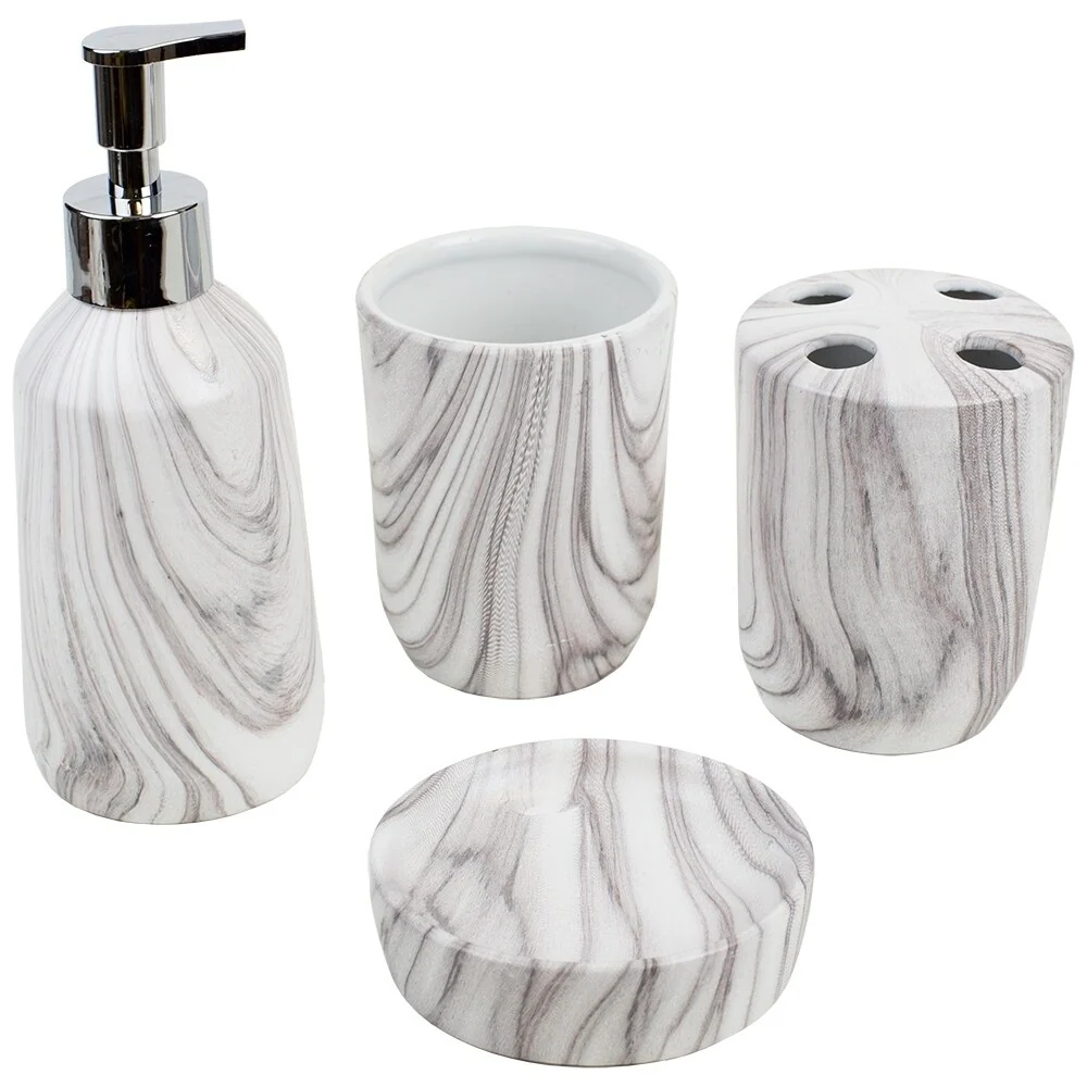 Marble Ceramic 4 Piece Bath Accessory Set, White