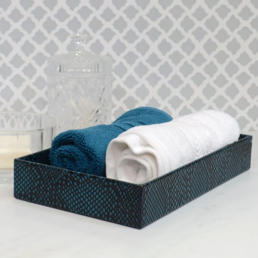 Genuine Leather Rectangle Storage Tray, Teal Blue, Shower and Bathroom Accessory