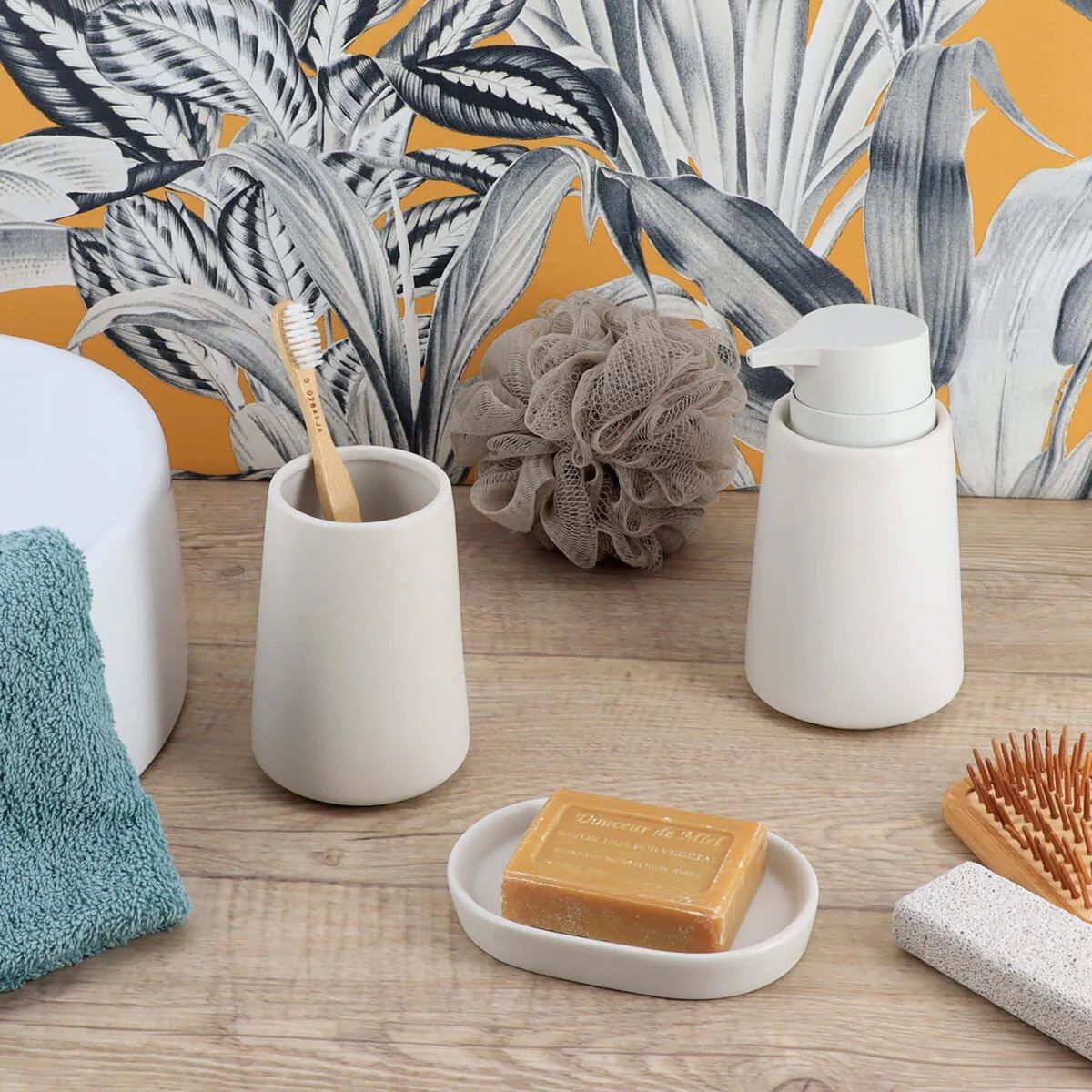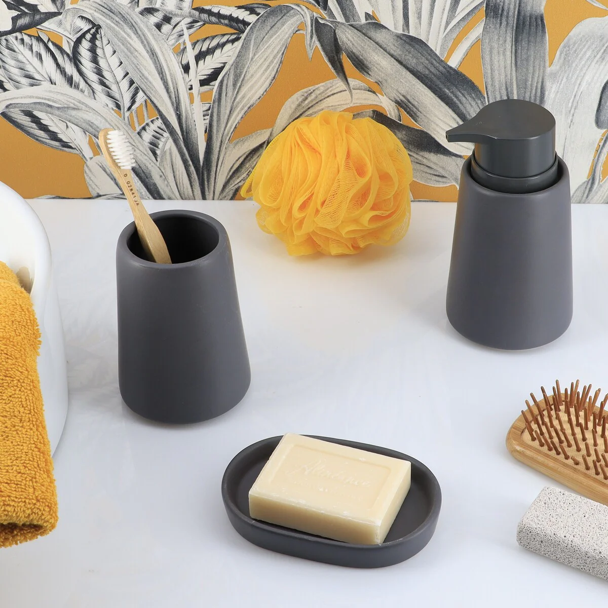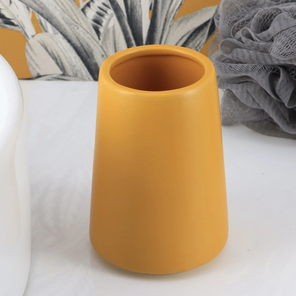 4-Piece Countertop Accessories Set Spirella Yoko Misty Yellow Sun Glass
