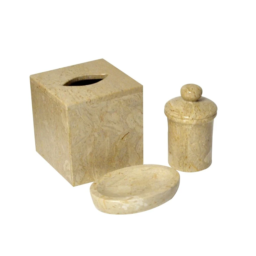 Polished Marble 3-Piece Bath Set, Golden Wheat, Shower and Bathroom Accessory