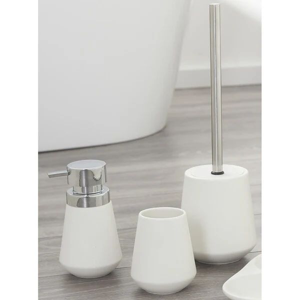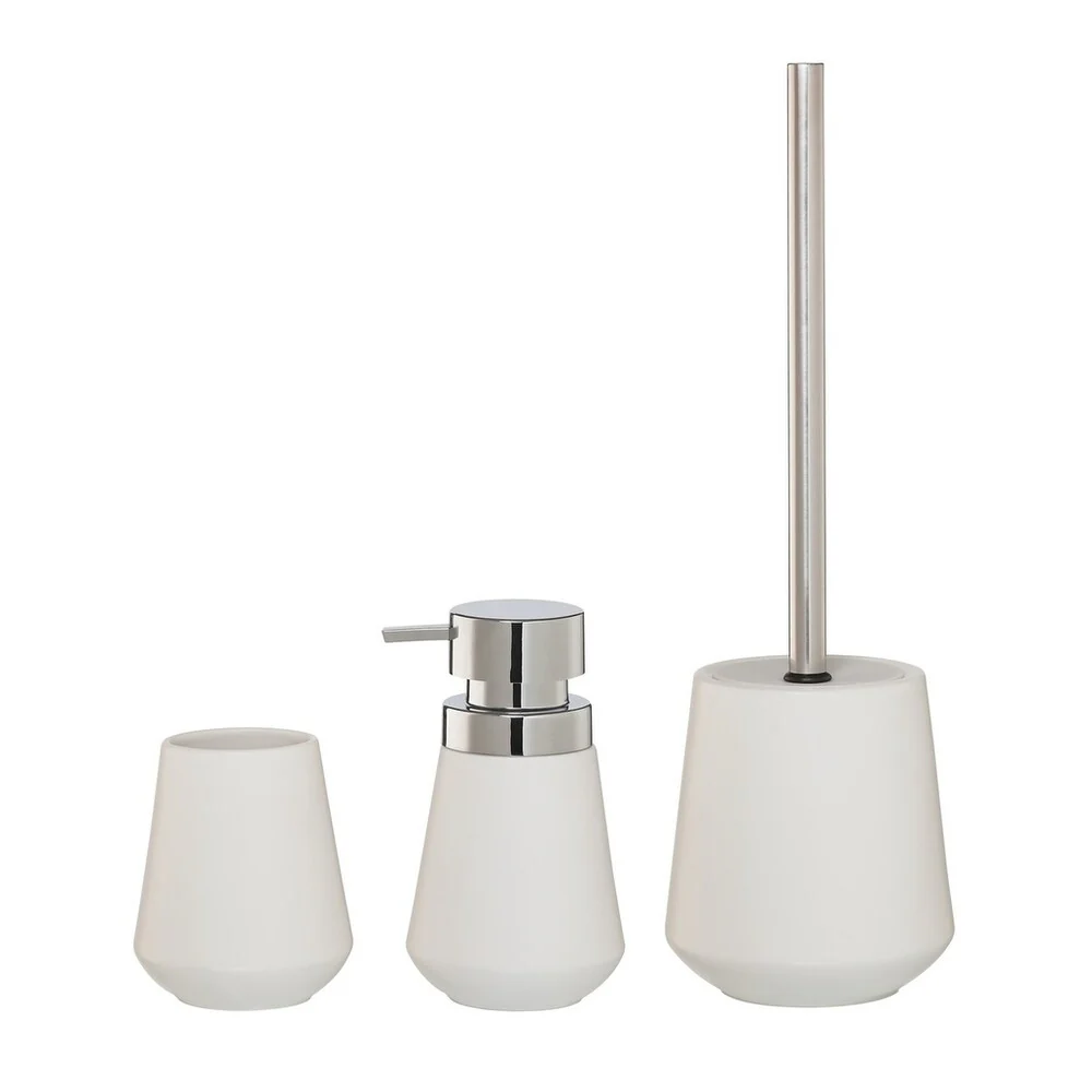 Sealskin 3-Piece Bathroom Accessories Set Glossy White and Silver Polyresin