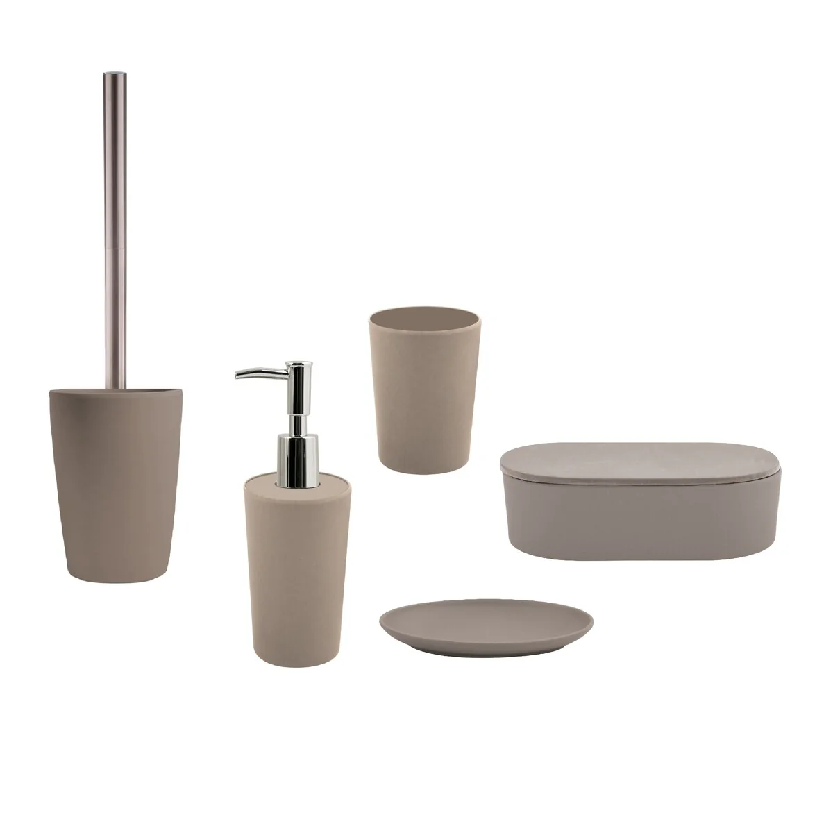 5-Piece Bathroom Accessories Set Spirella Takeo Taupe Gray Bamboo