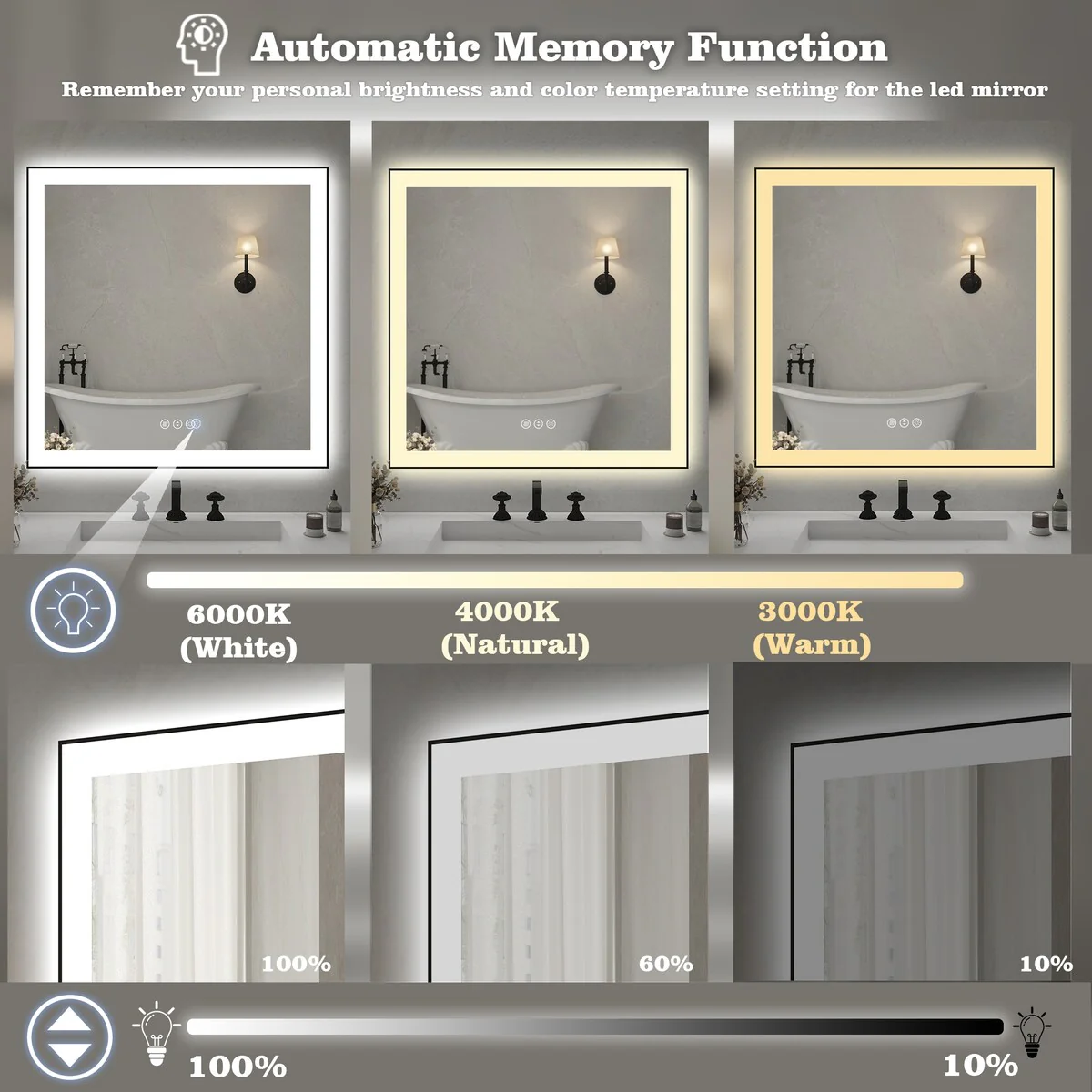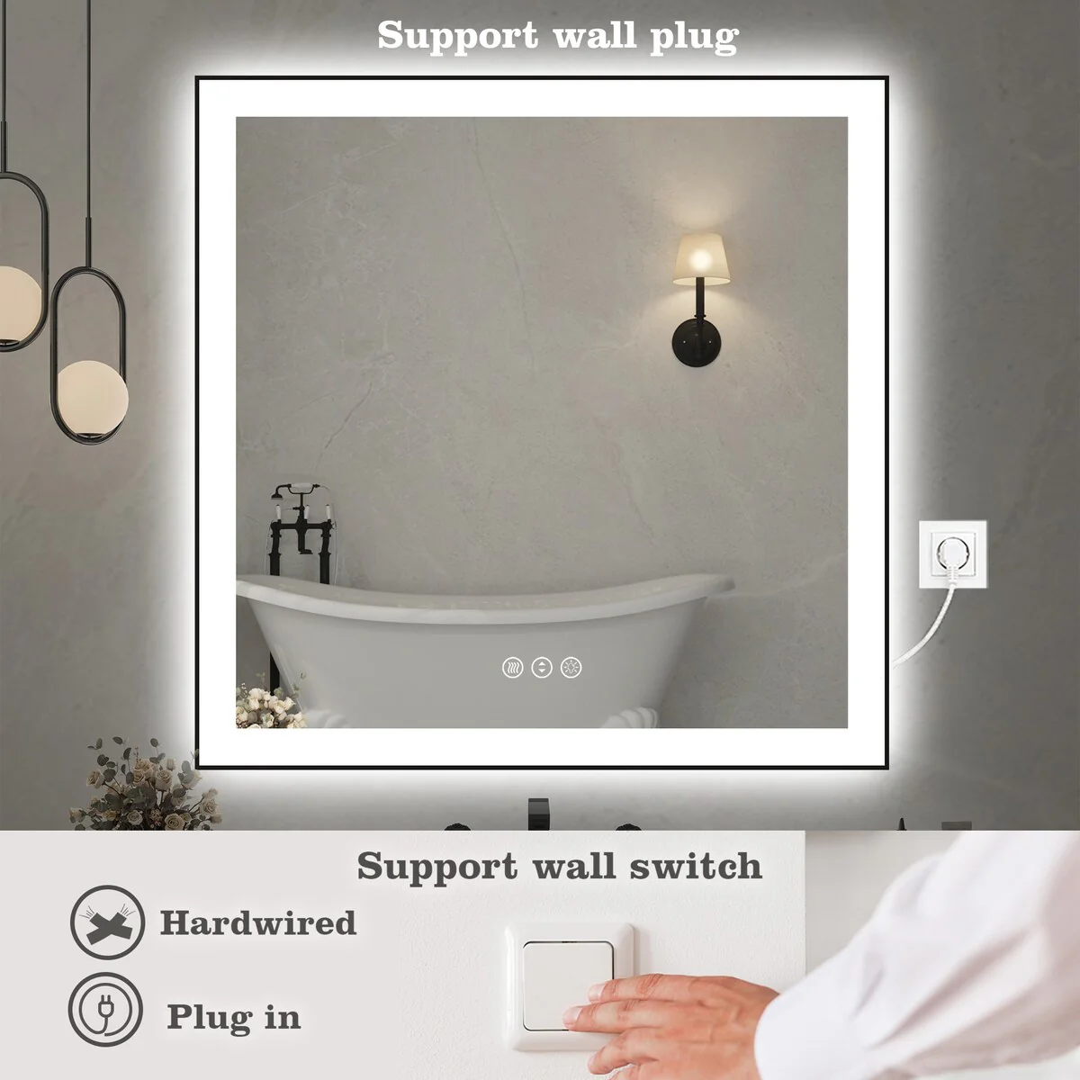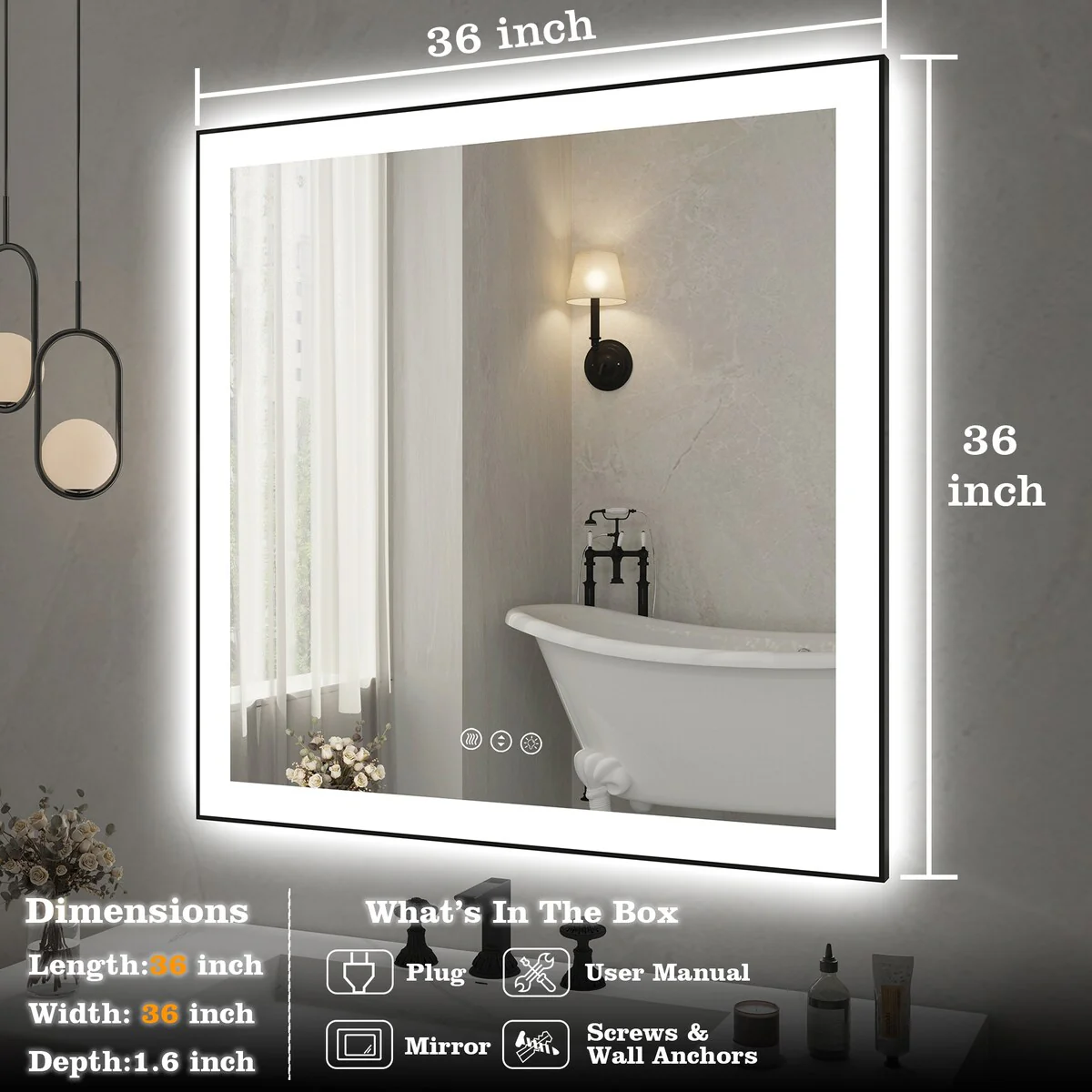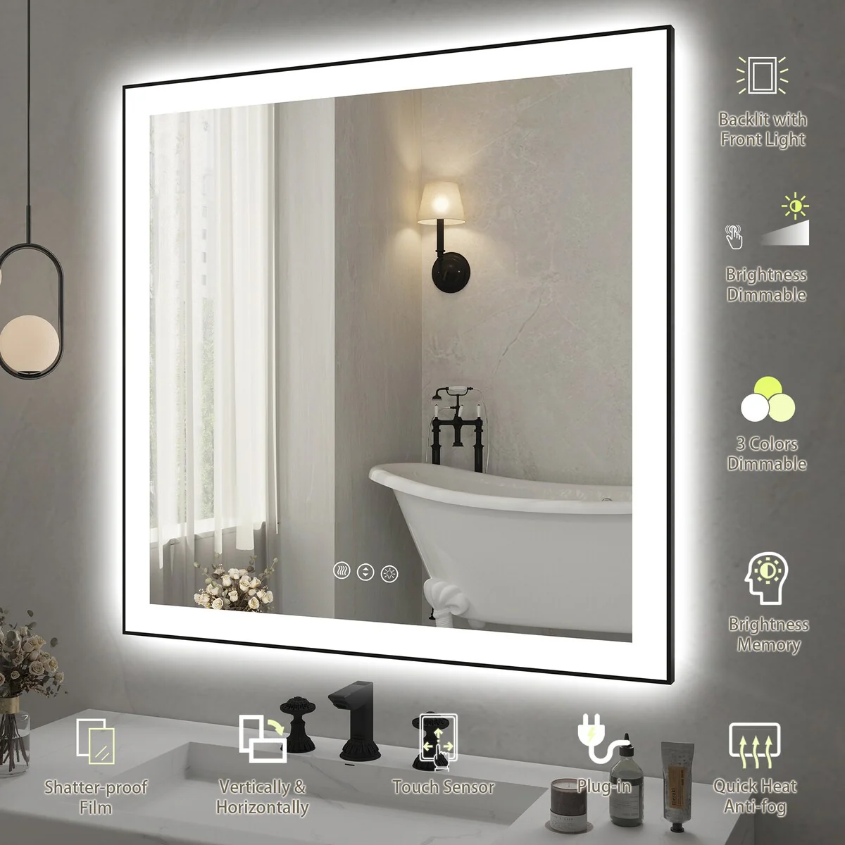 36 in. W x 36 in. H Rectangular Aluminum Framed Backlit and Front light LED wall mounted Bathroom Vanity Mirror in Black