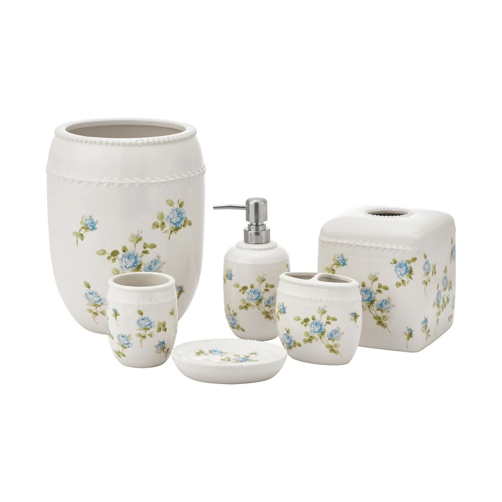 Five Queens Court Rosalind Blue Floral Bathroom Accessories Collection