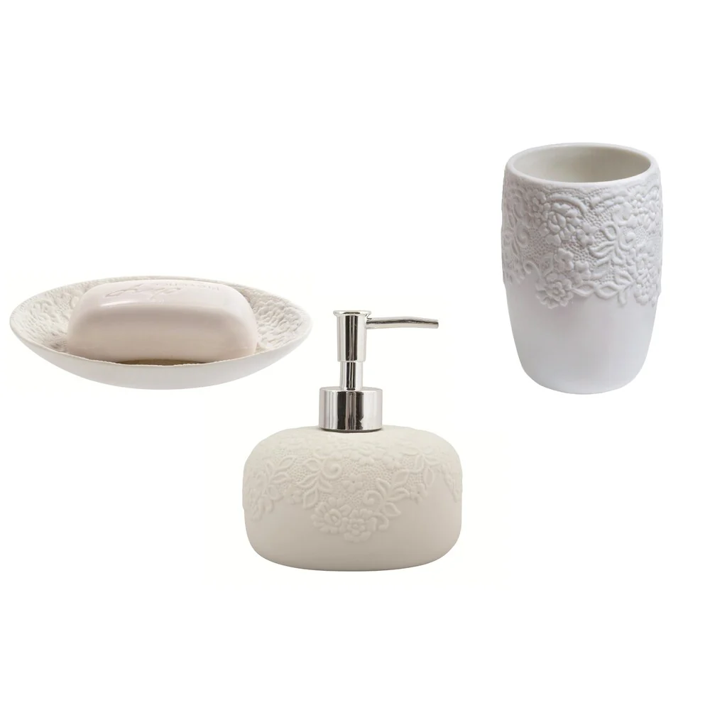 3-Piece Countertop Accessories Set Spirella Cosy White Porcelain