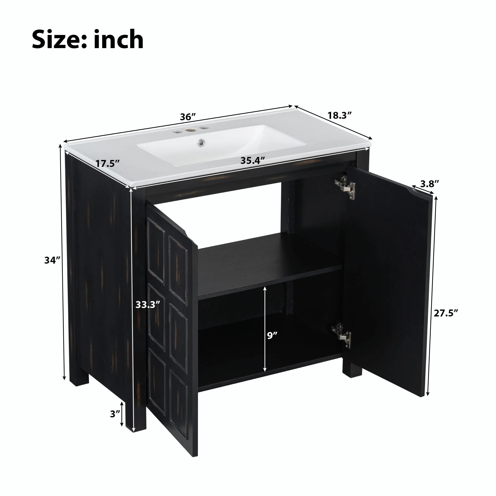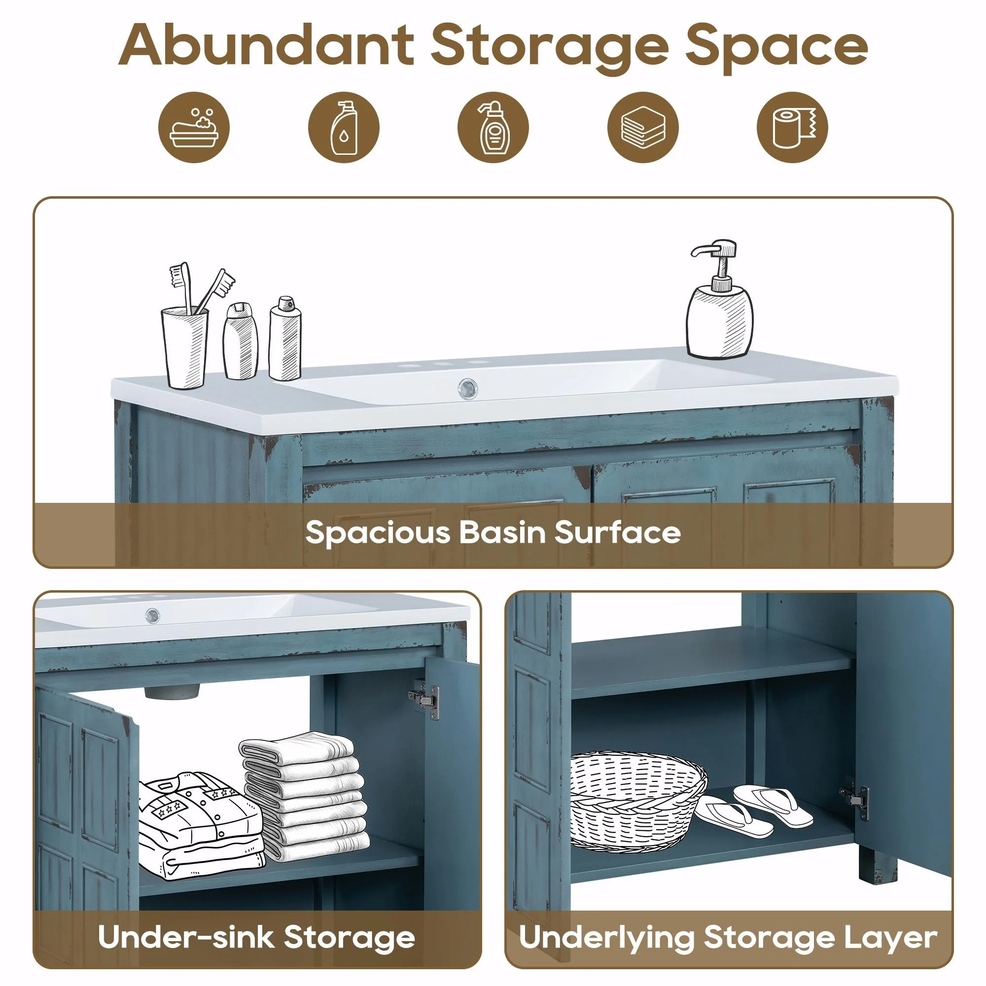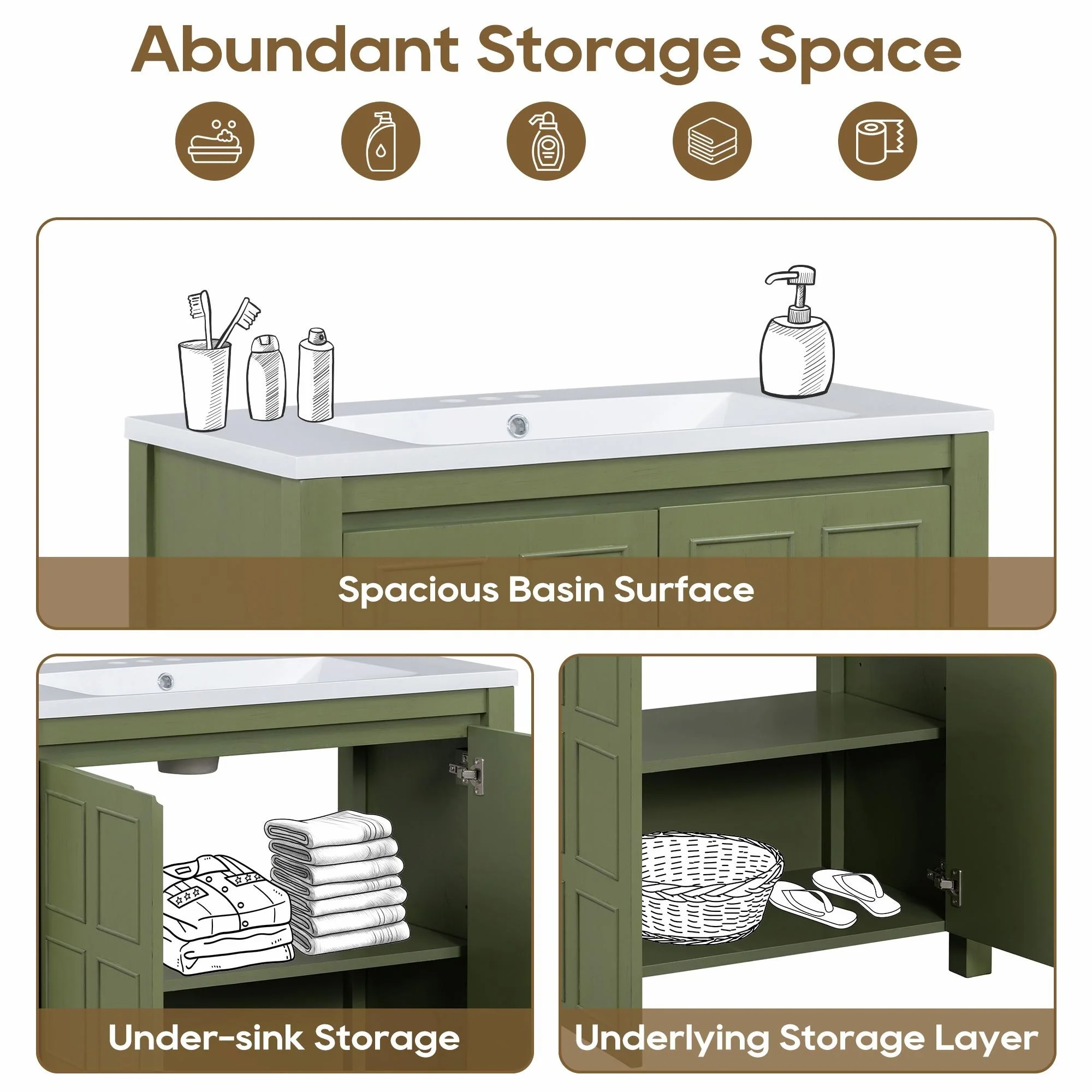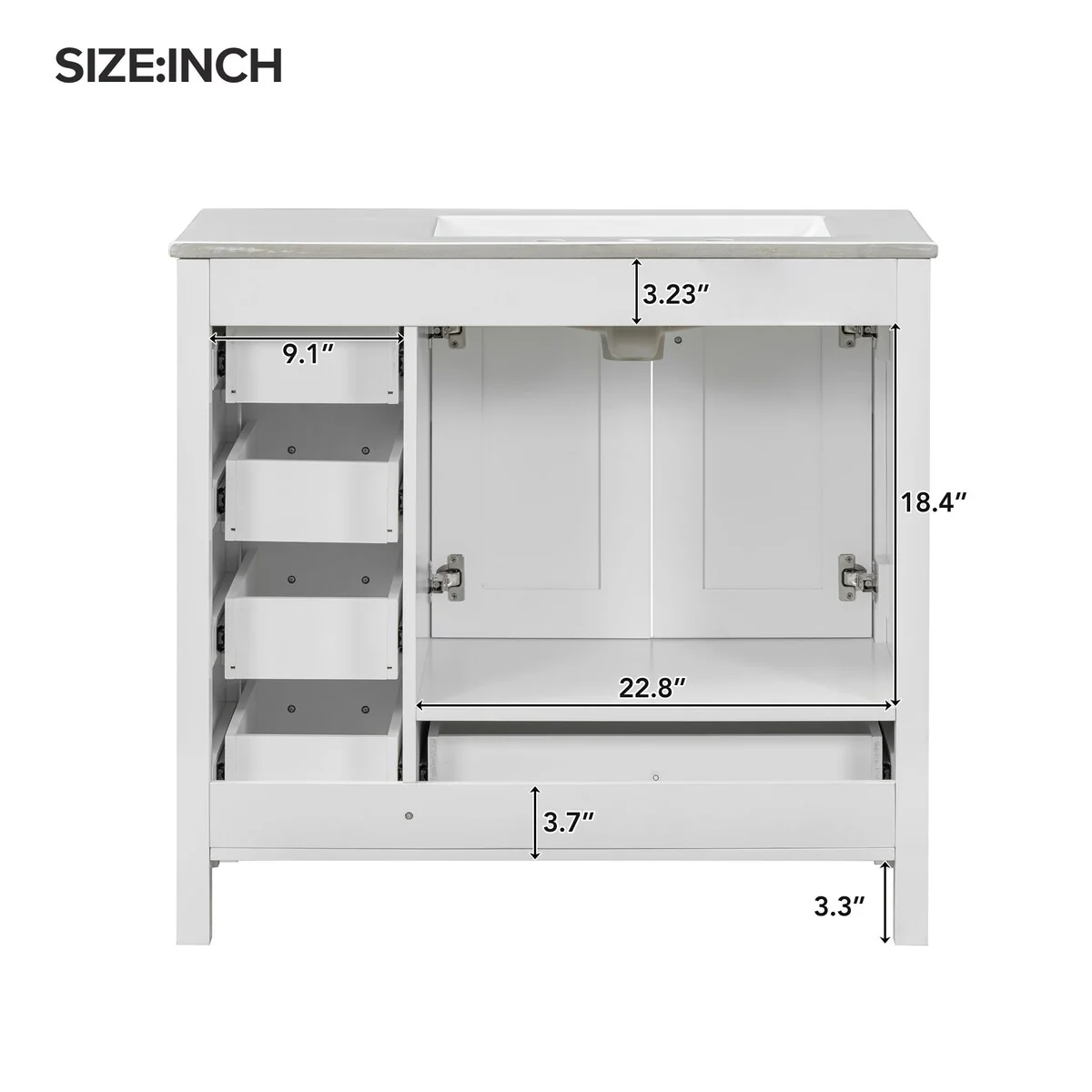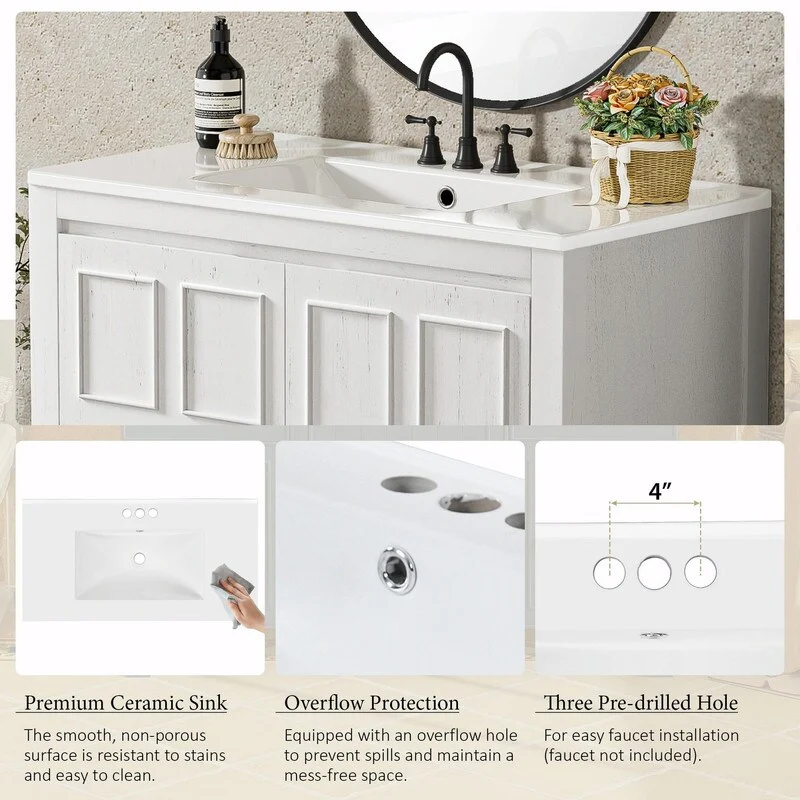 36 Inch Freestanding Bathroom Vanity with Ceramic Sink, Tip-Out & Storage Drawers, Soft Close Door Hinges