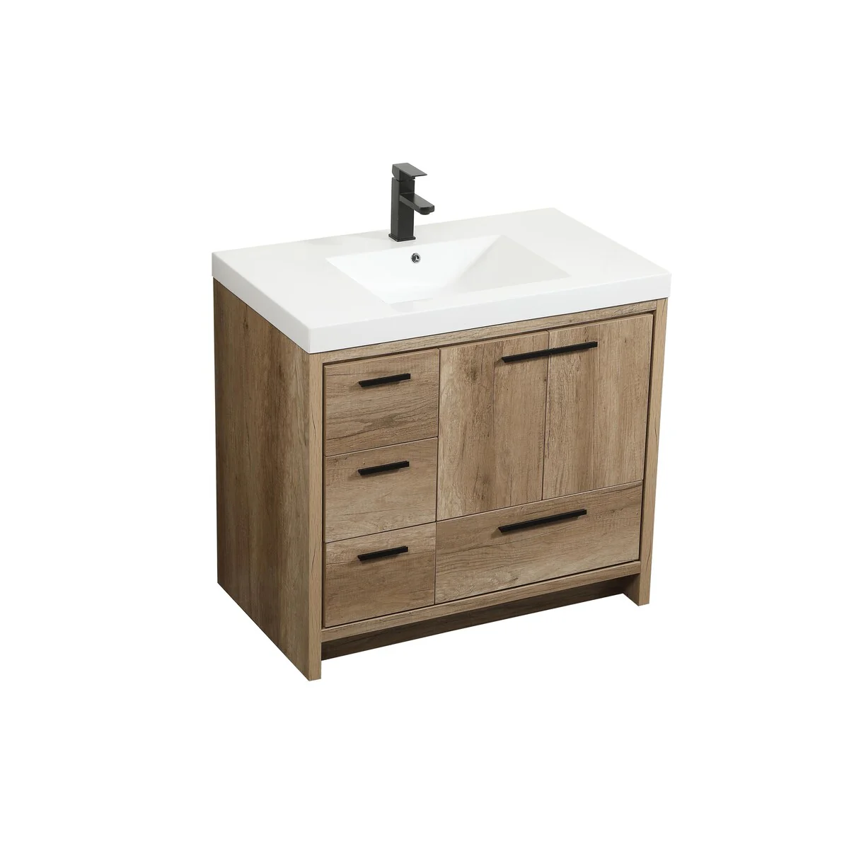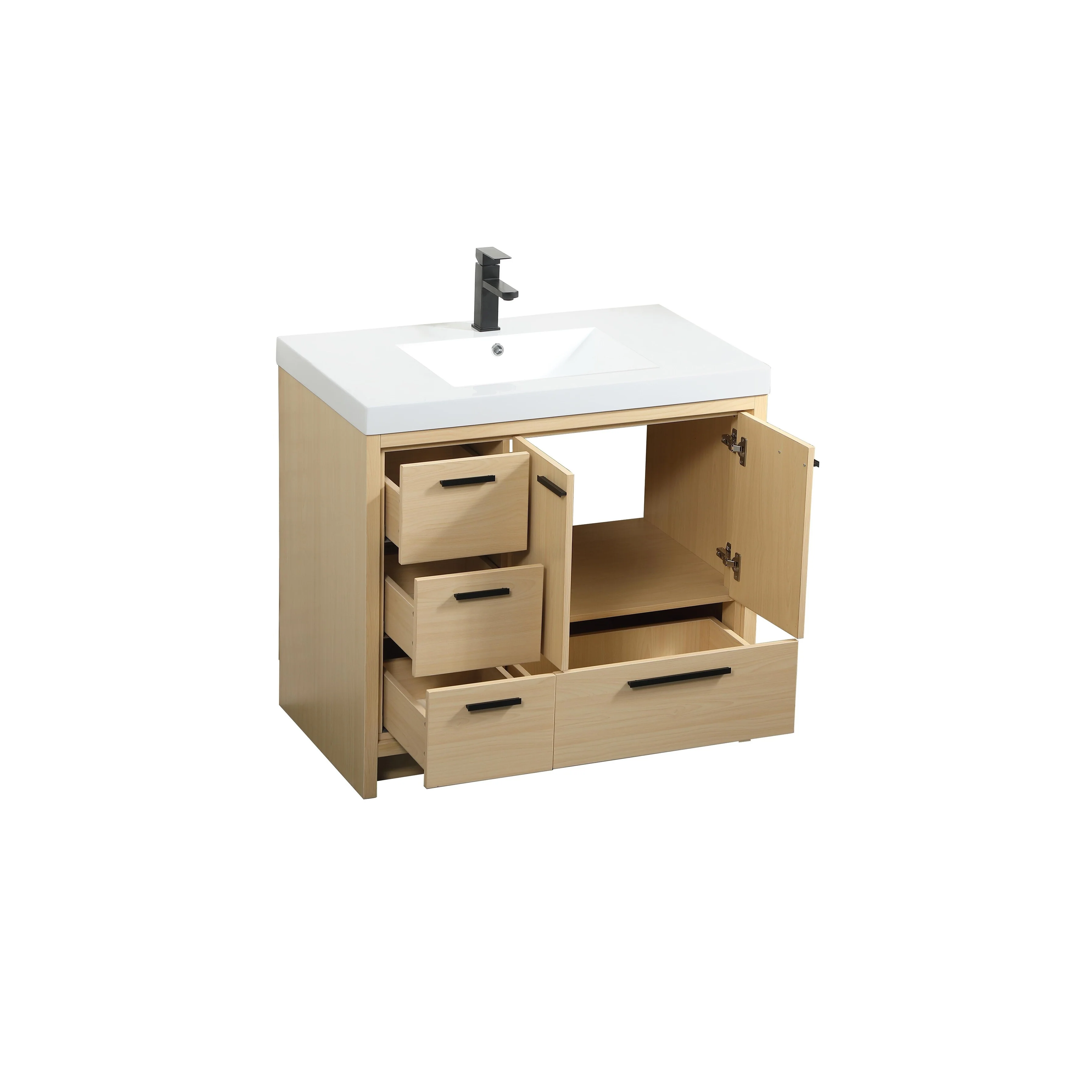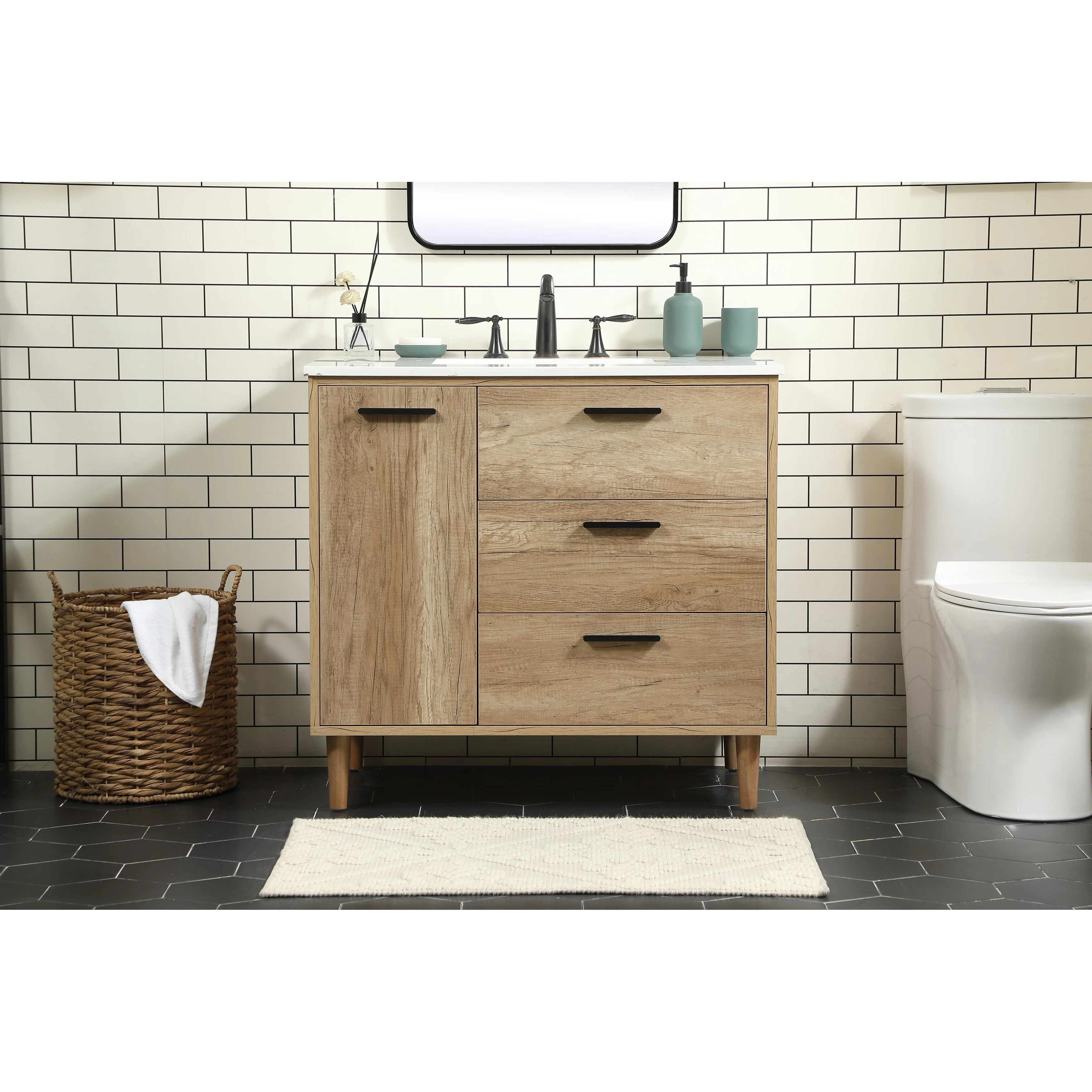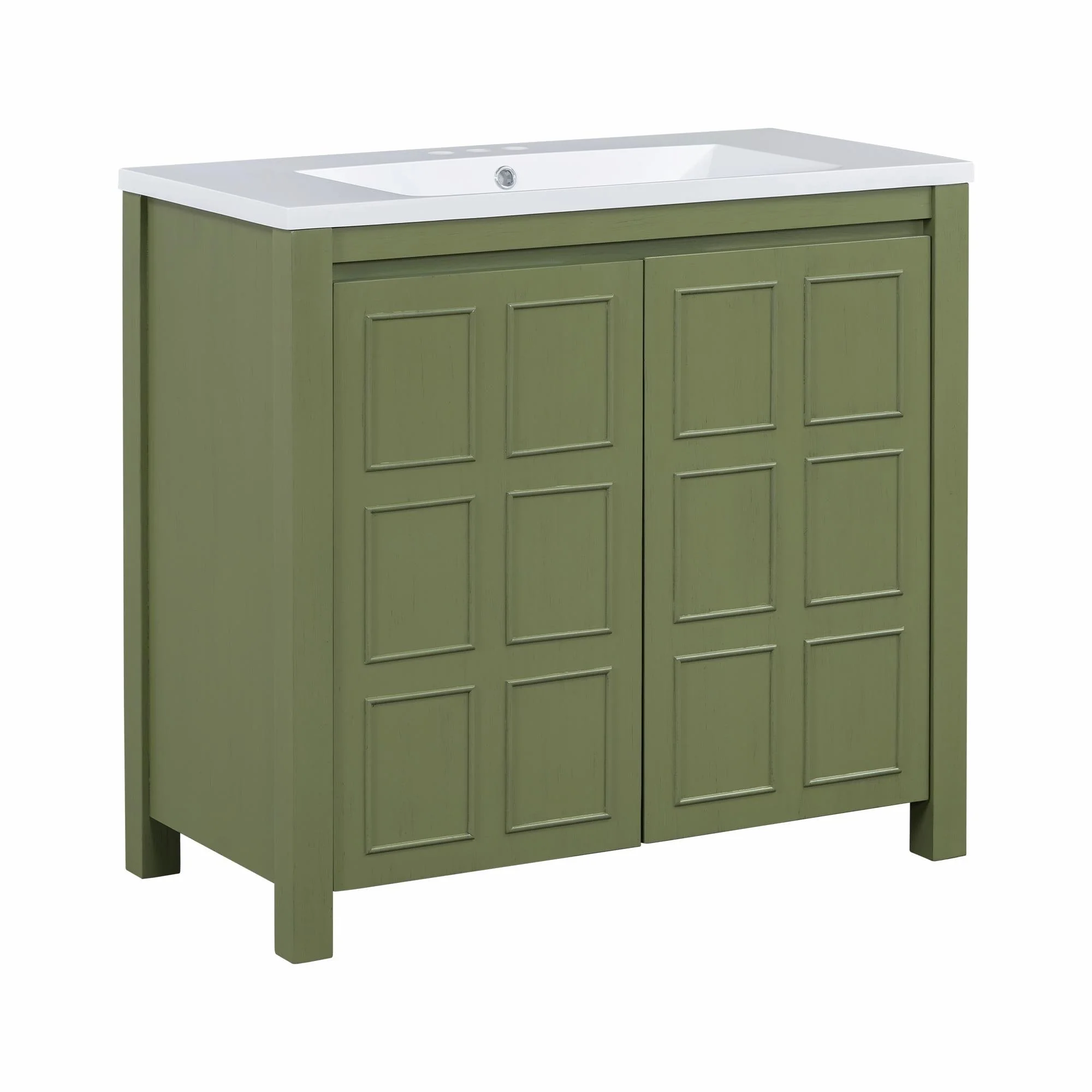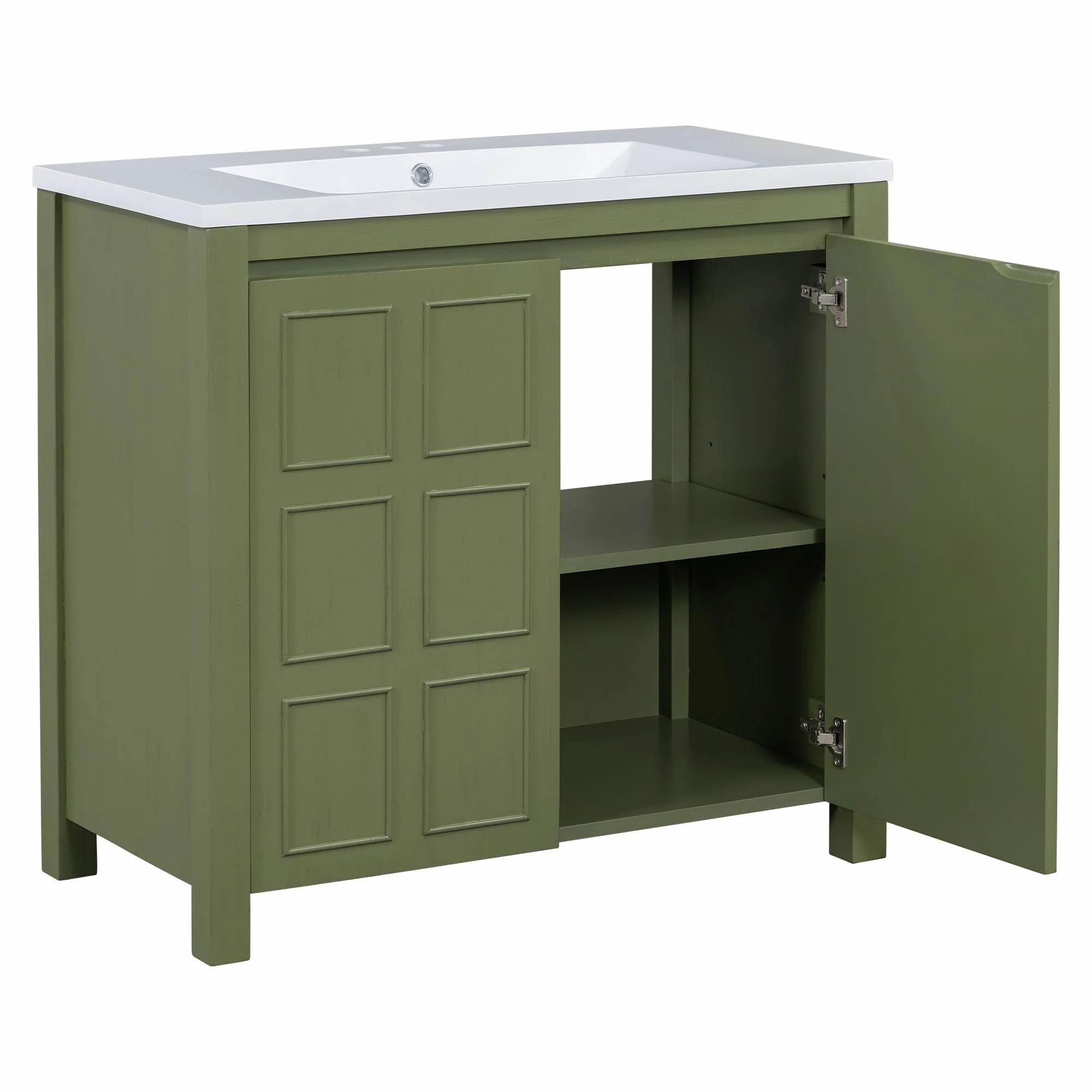 36 Inch Freestanding Bathroom Vanity with Ceramic Sink, Tip-Out & Storage Drawers, Soft Close Door Hinges