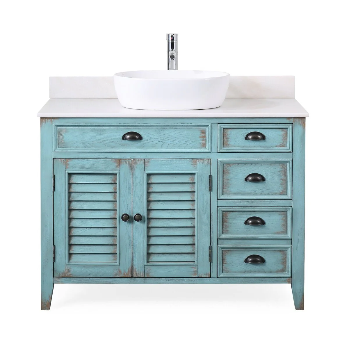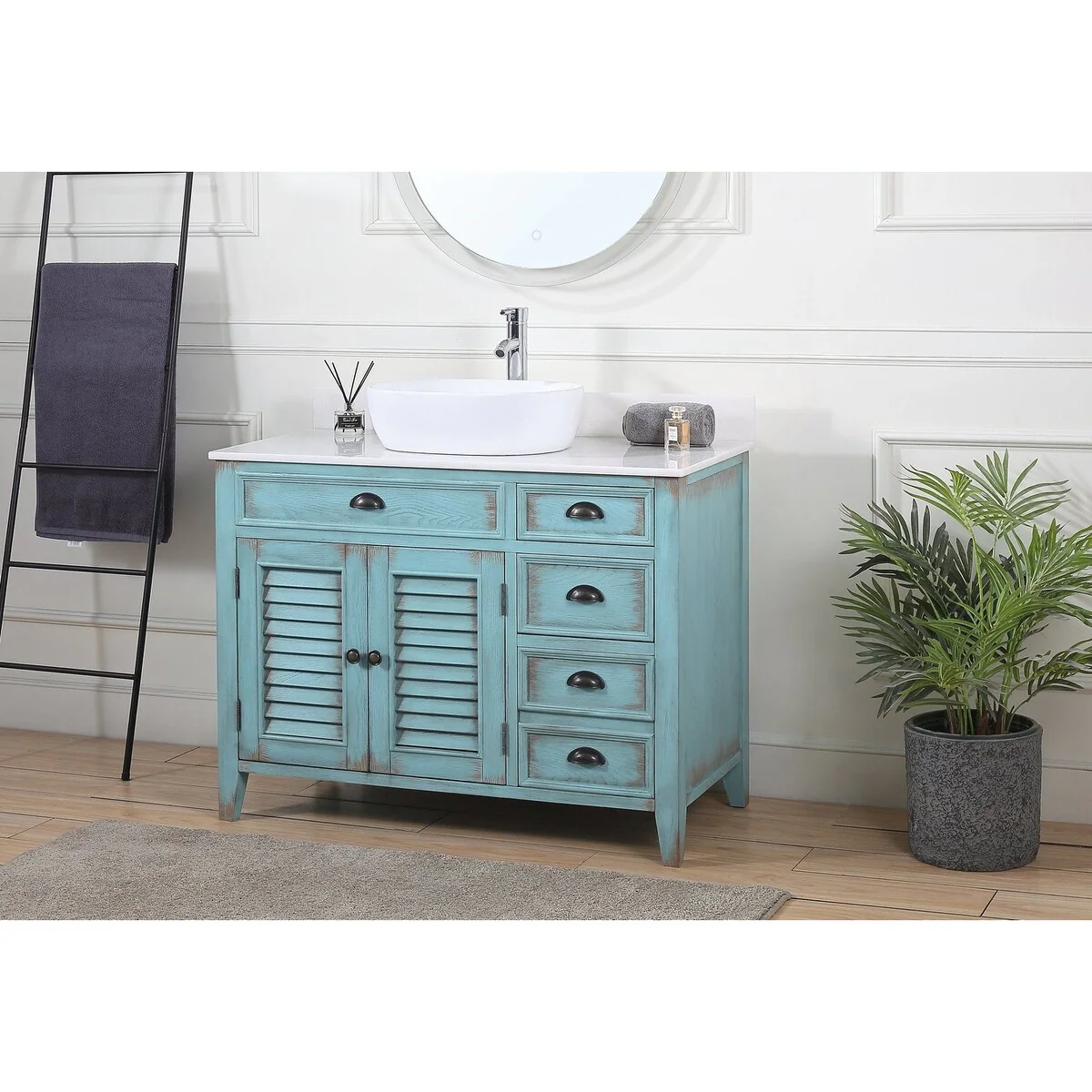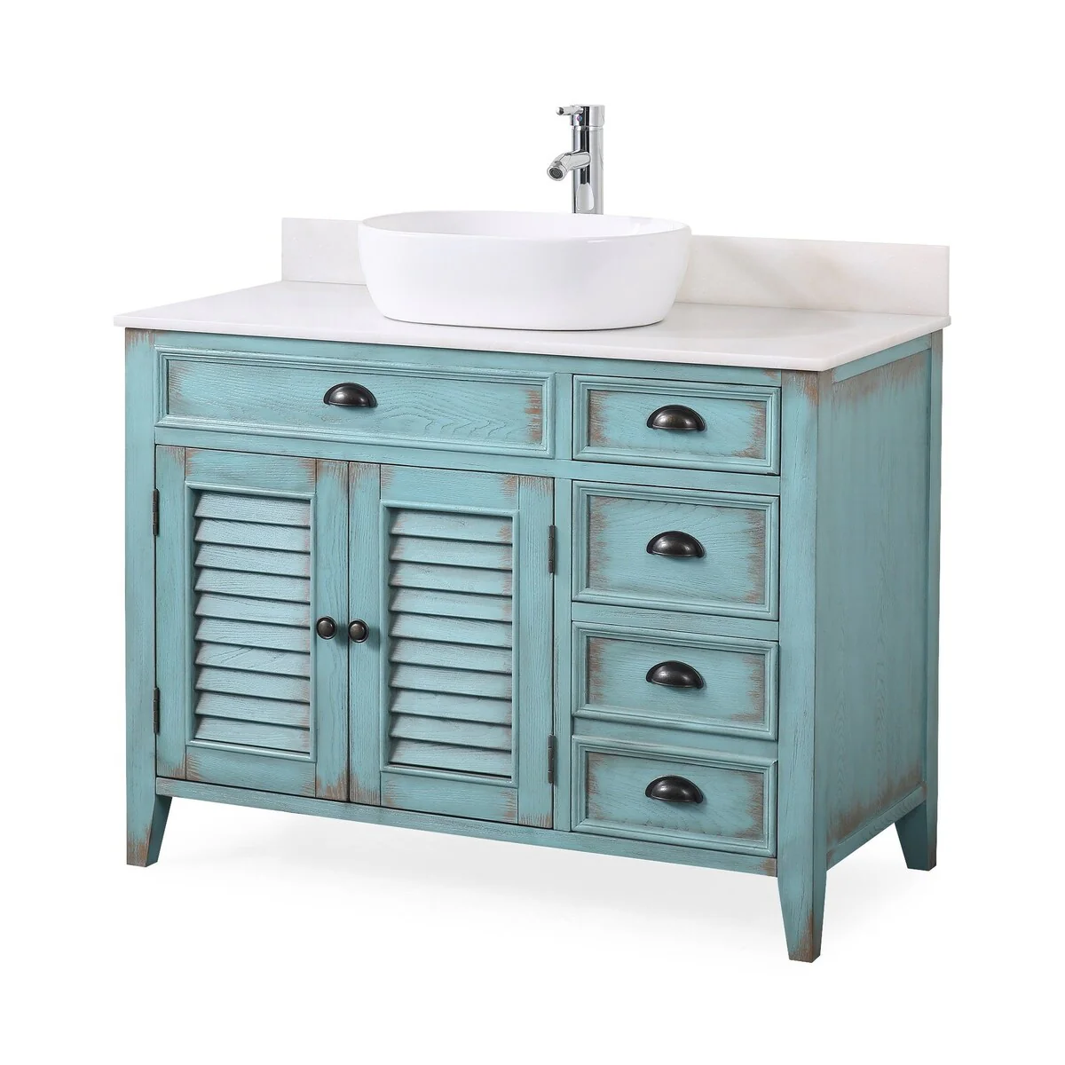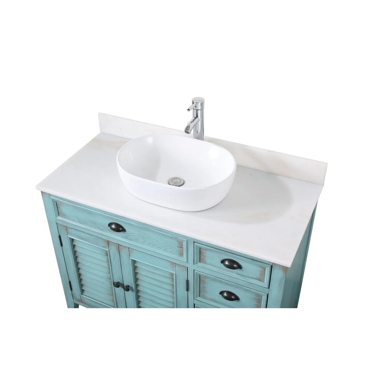 42" Abbeville Vessel Sink Vanity, Distressed Blue
