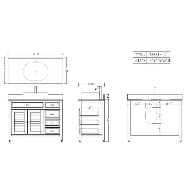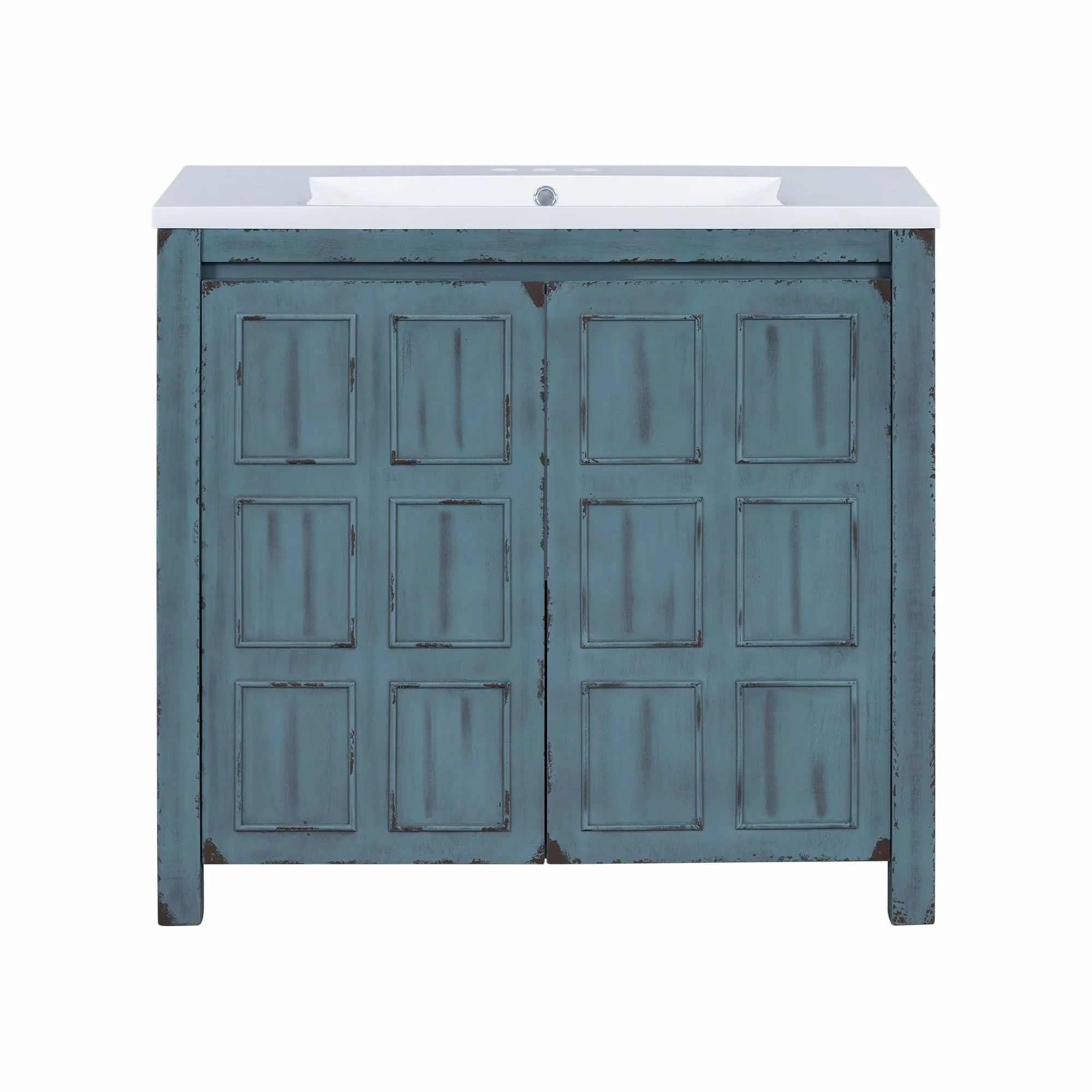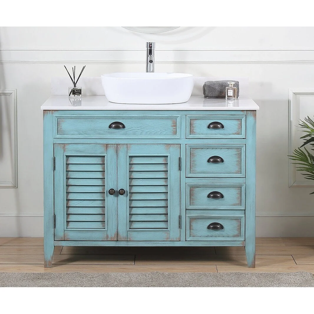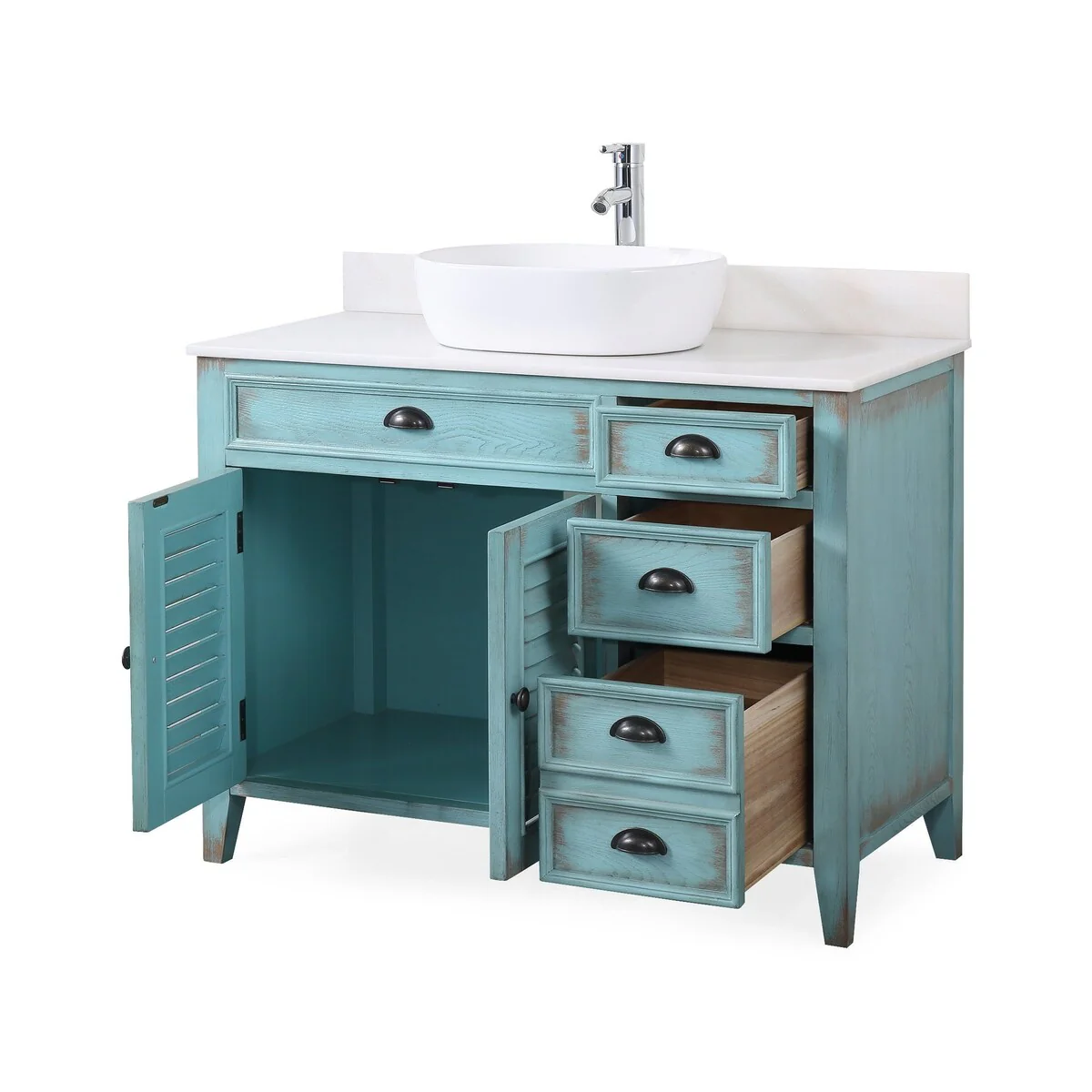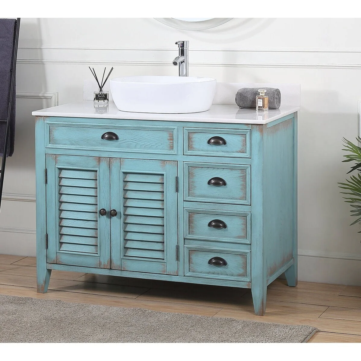 42" Abbeville Vessel Sink Vanity, Distressed Blue