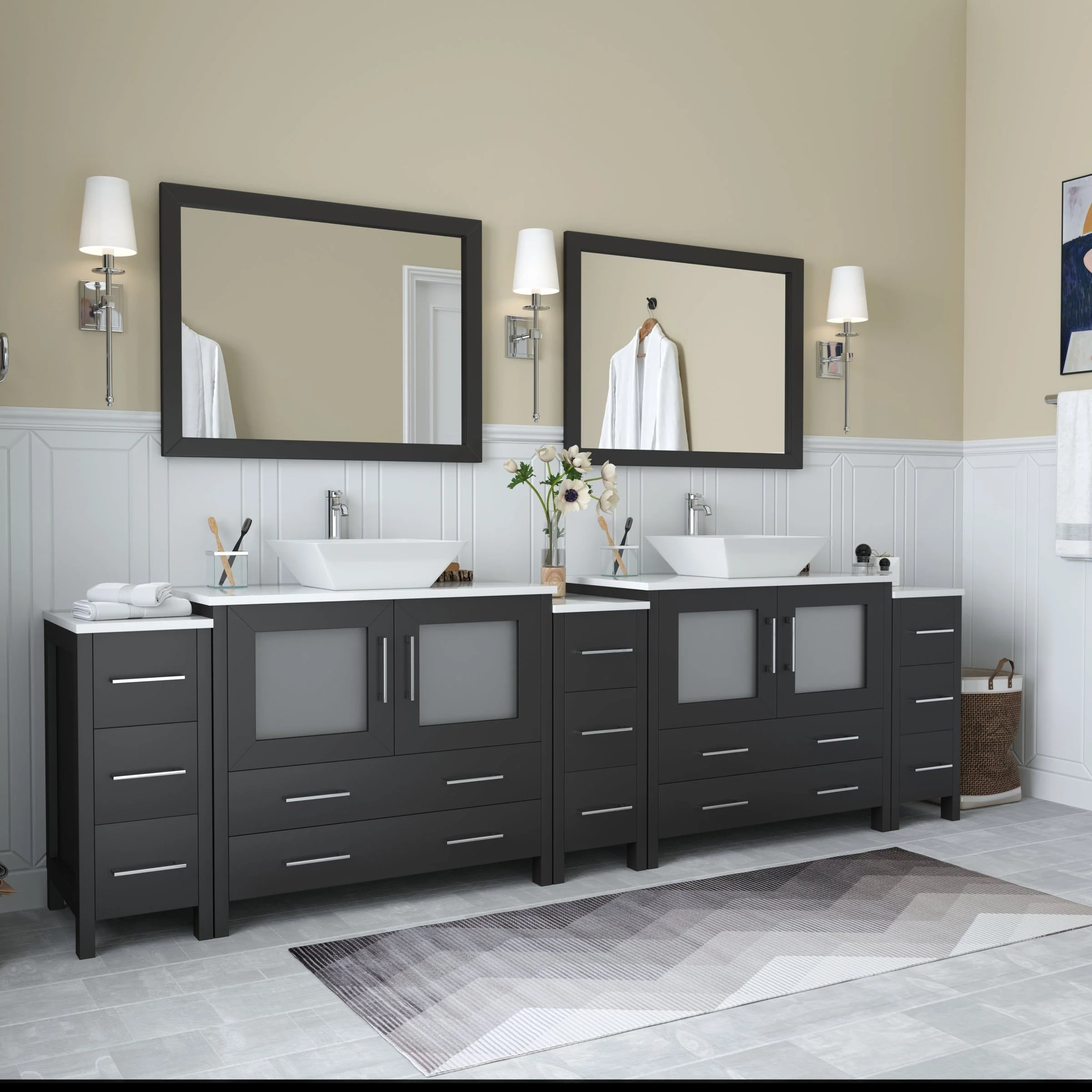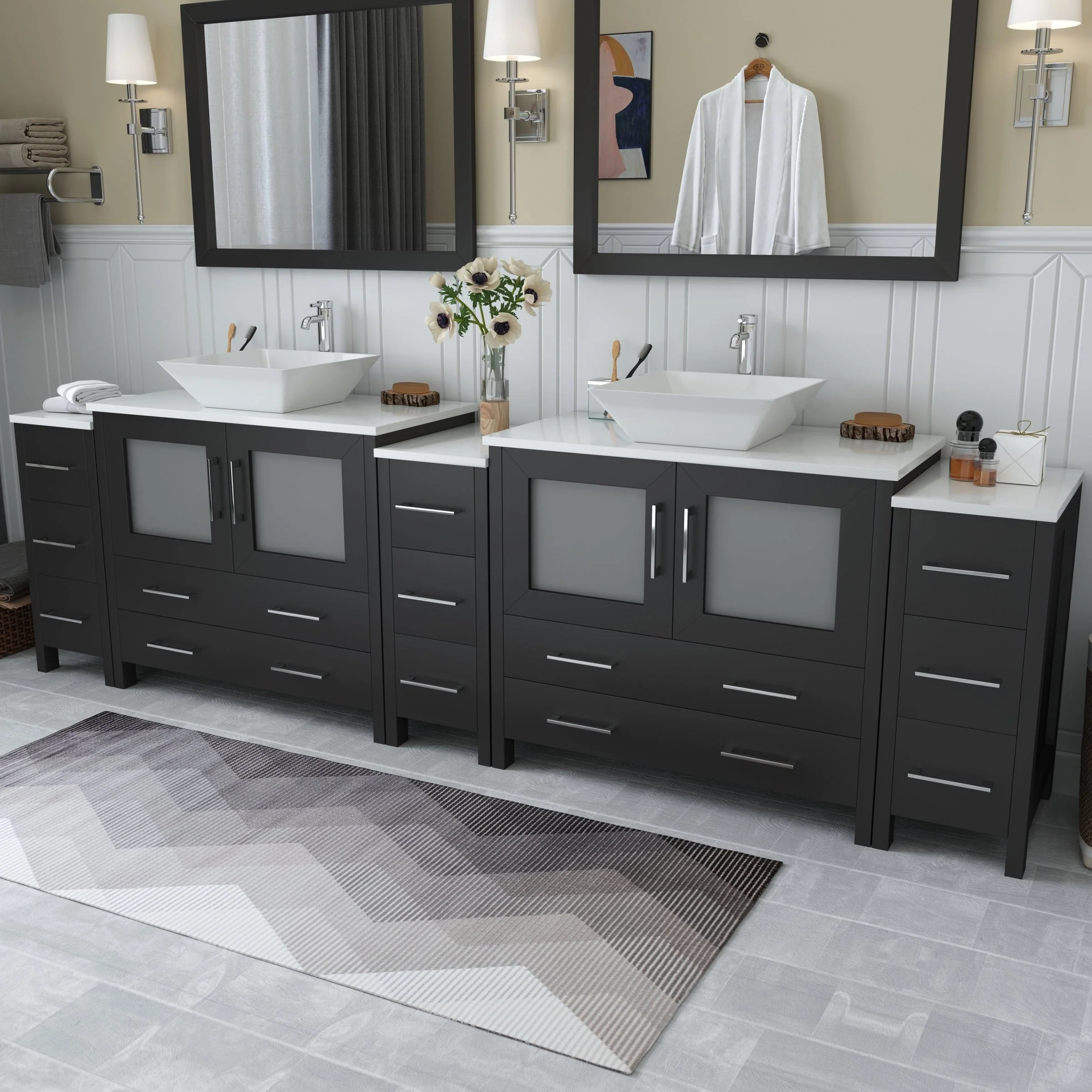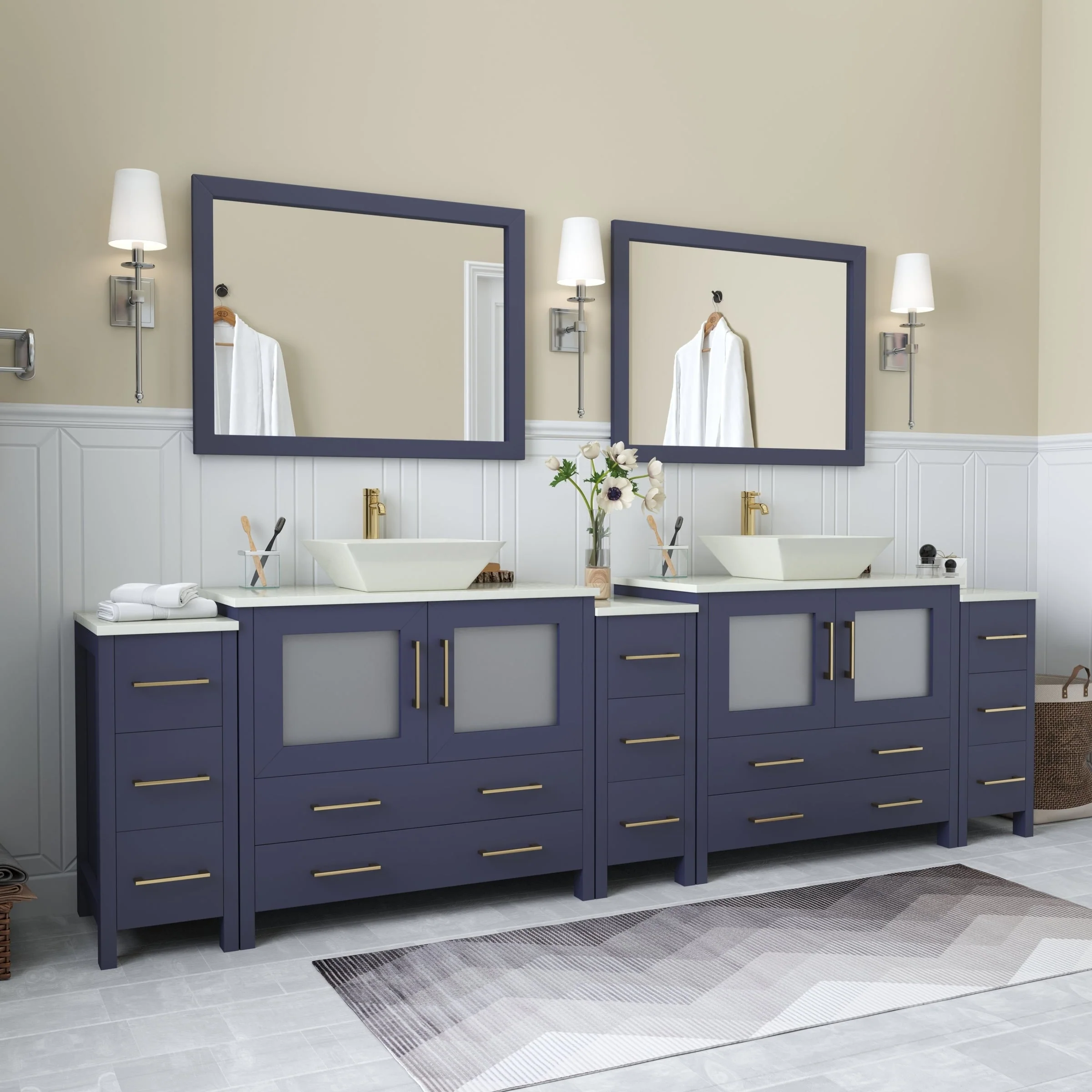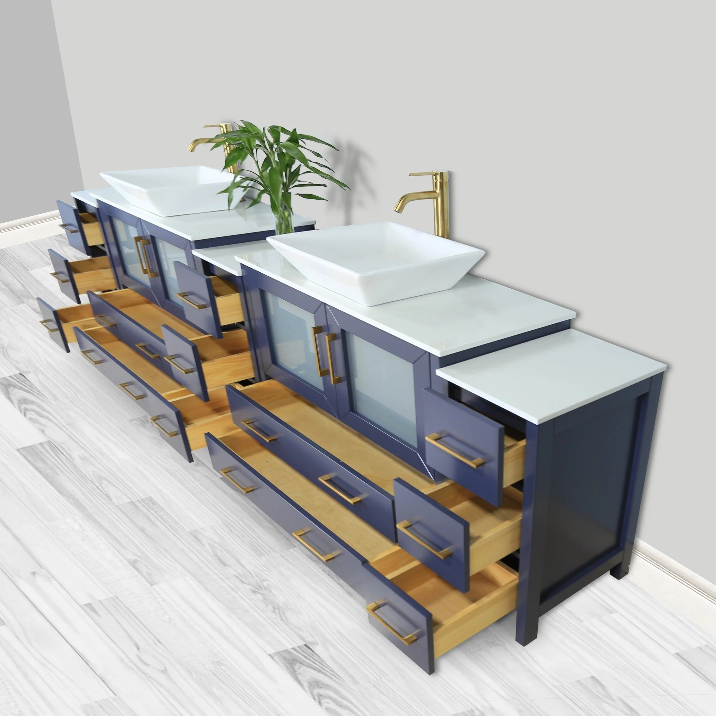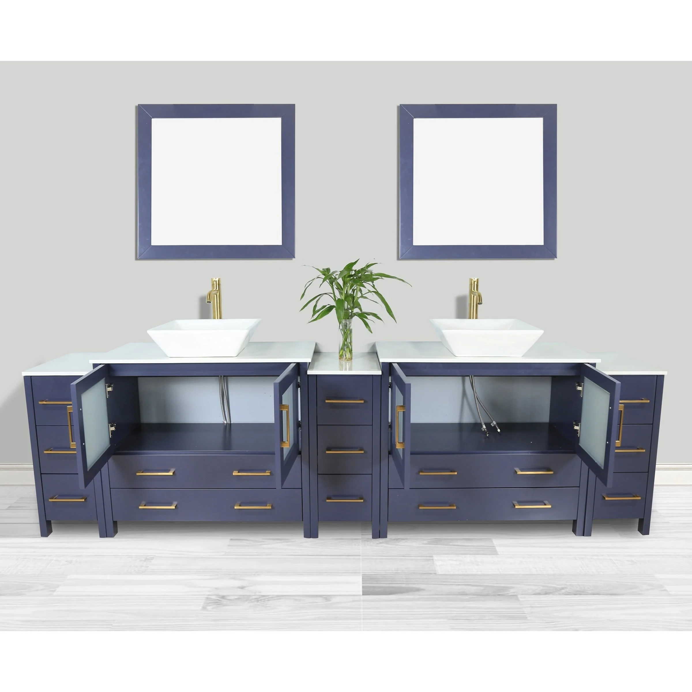 Vanity Art 108" Double Sink Bathroom Vanity Set with Engineered Marble Top and Free Mirrors