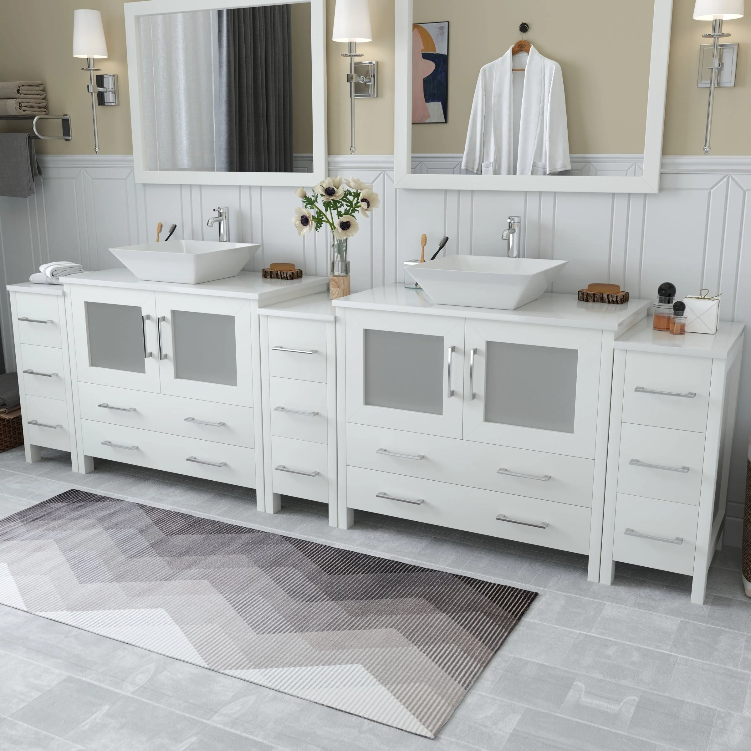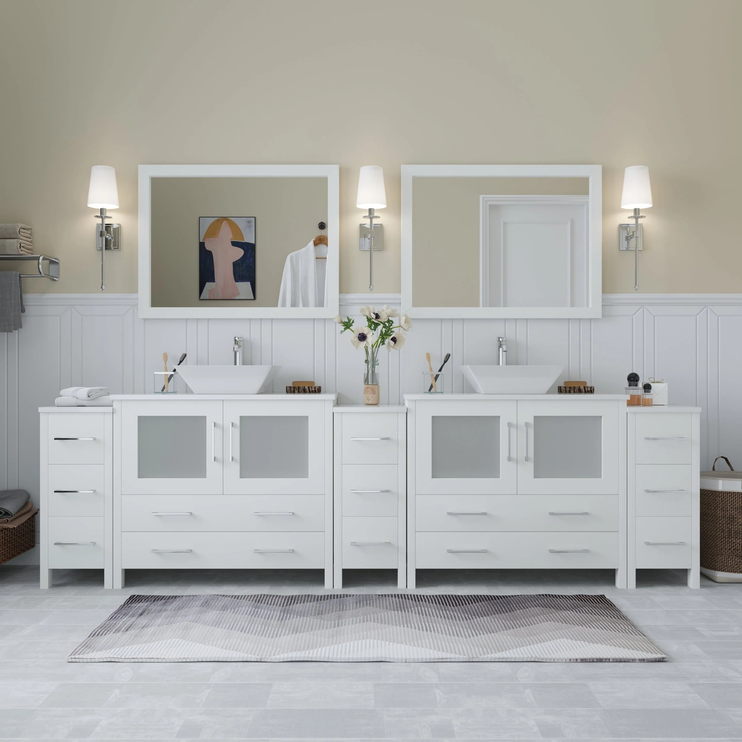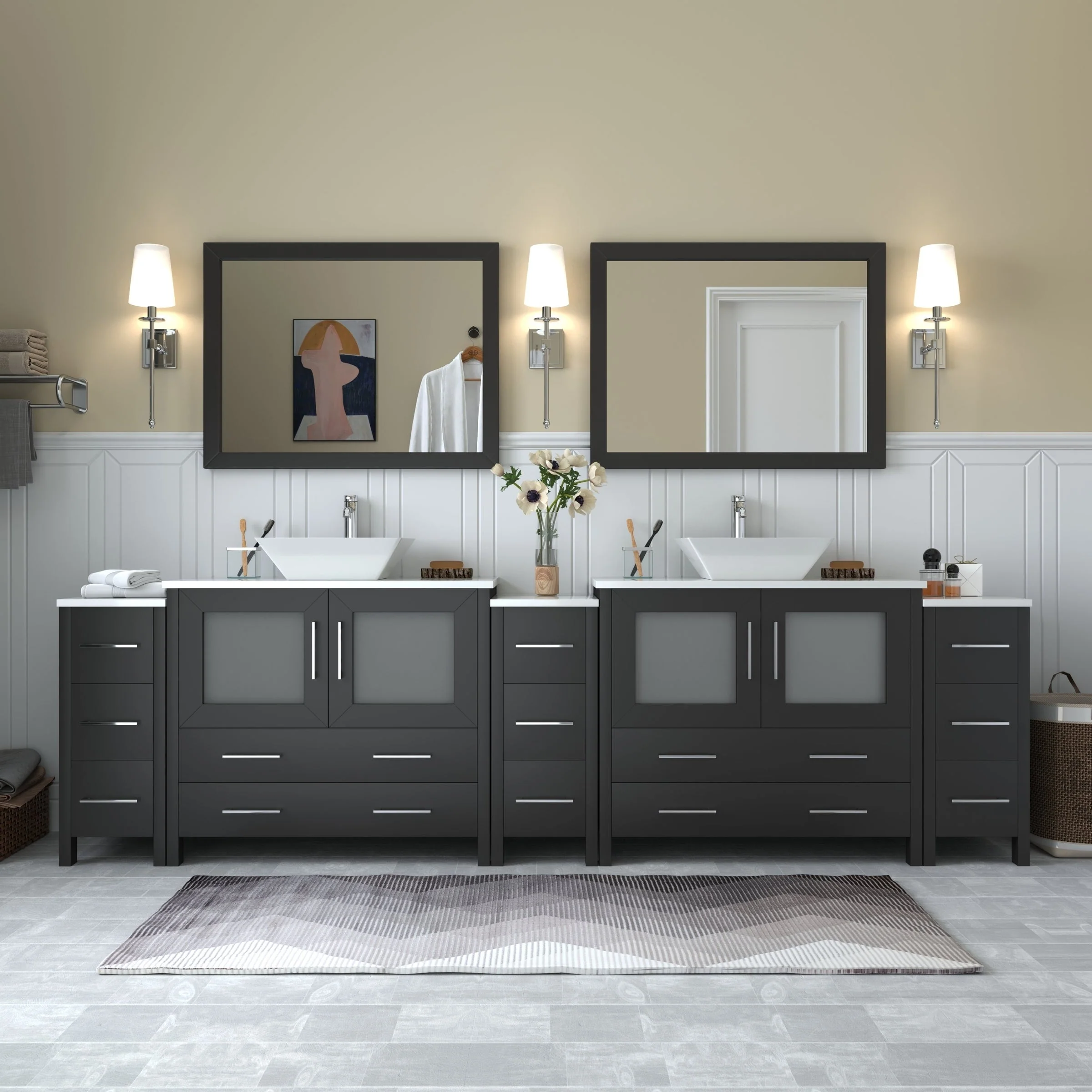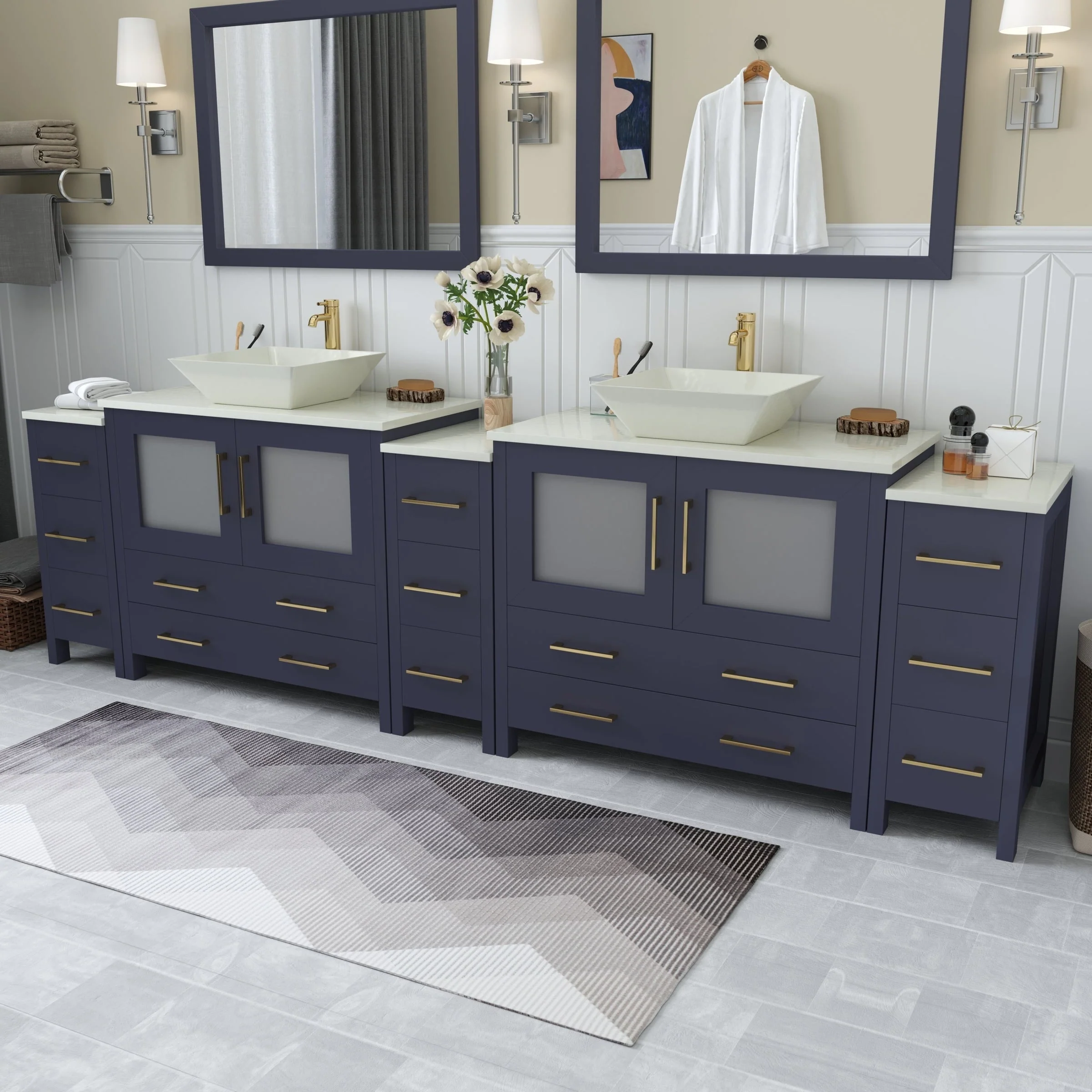 Vanity Art 108" Double Sink Bathroom Vanity Set with Engineered Marble Top and Free Mirrors