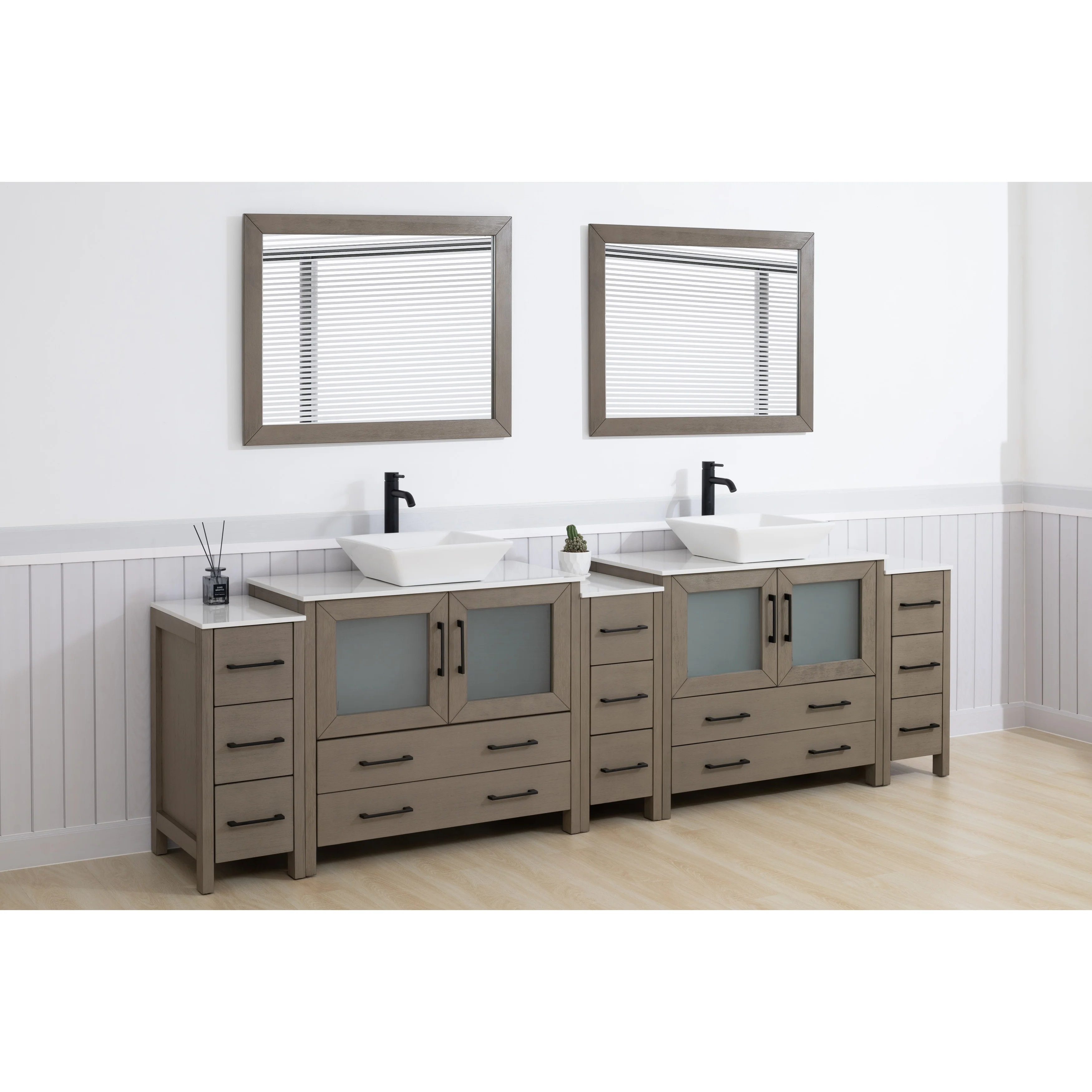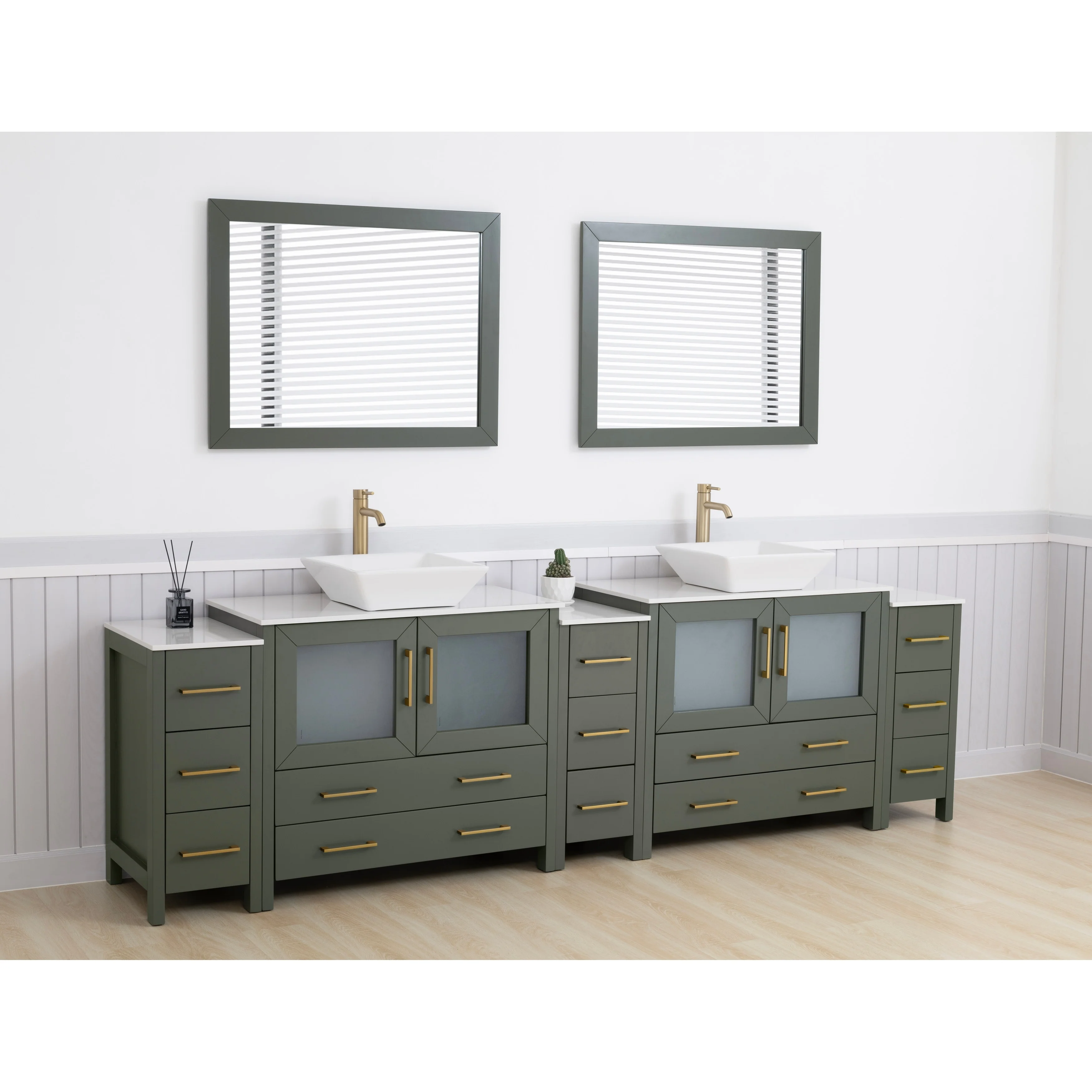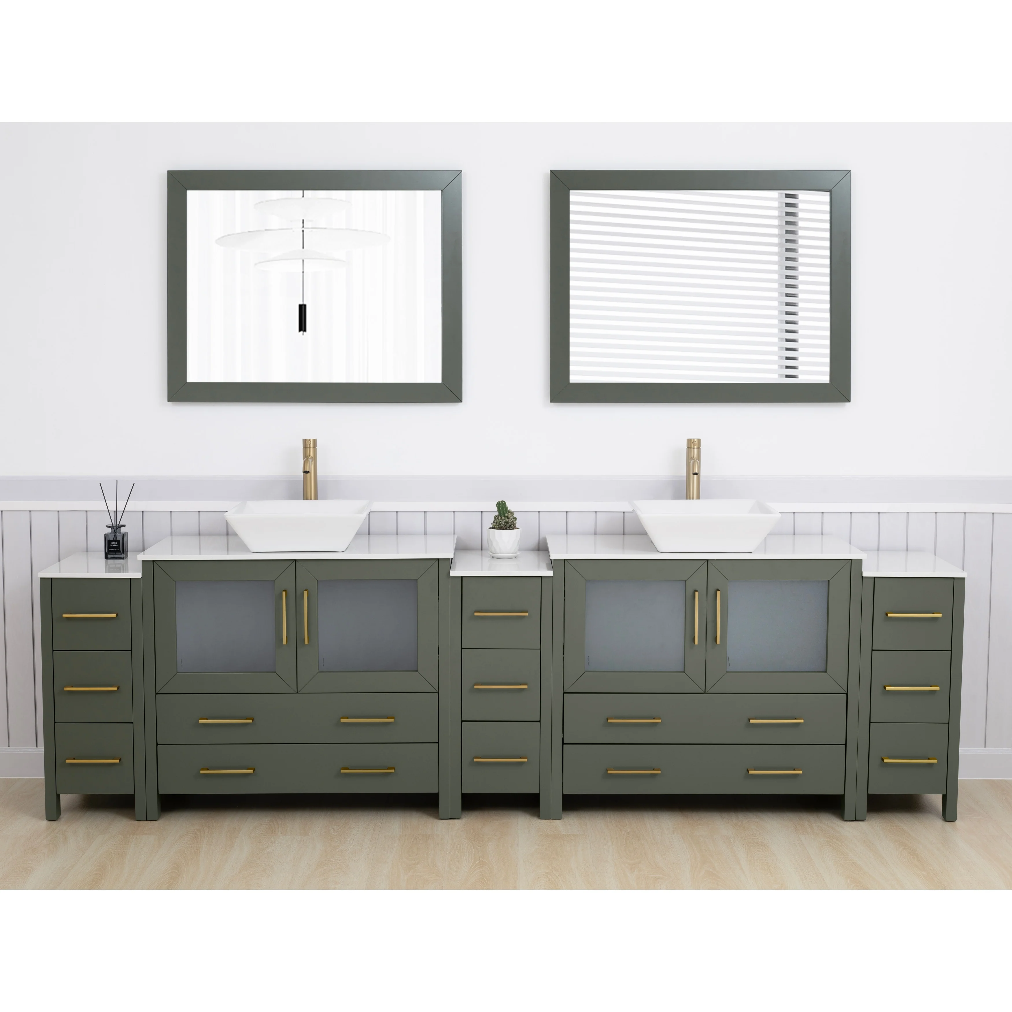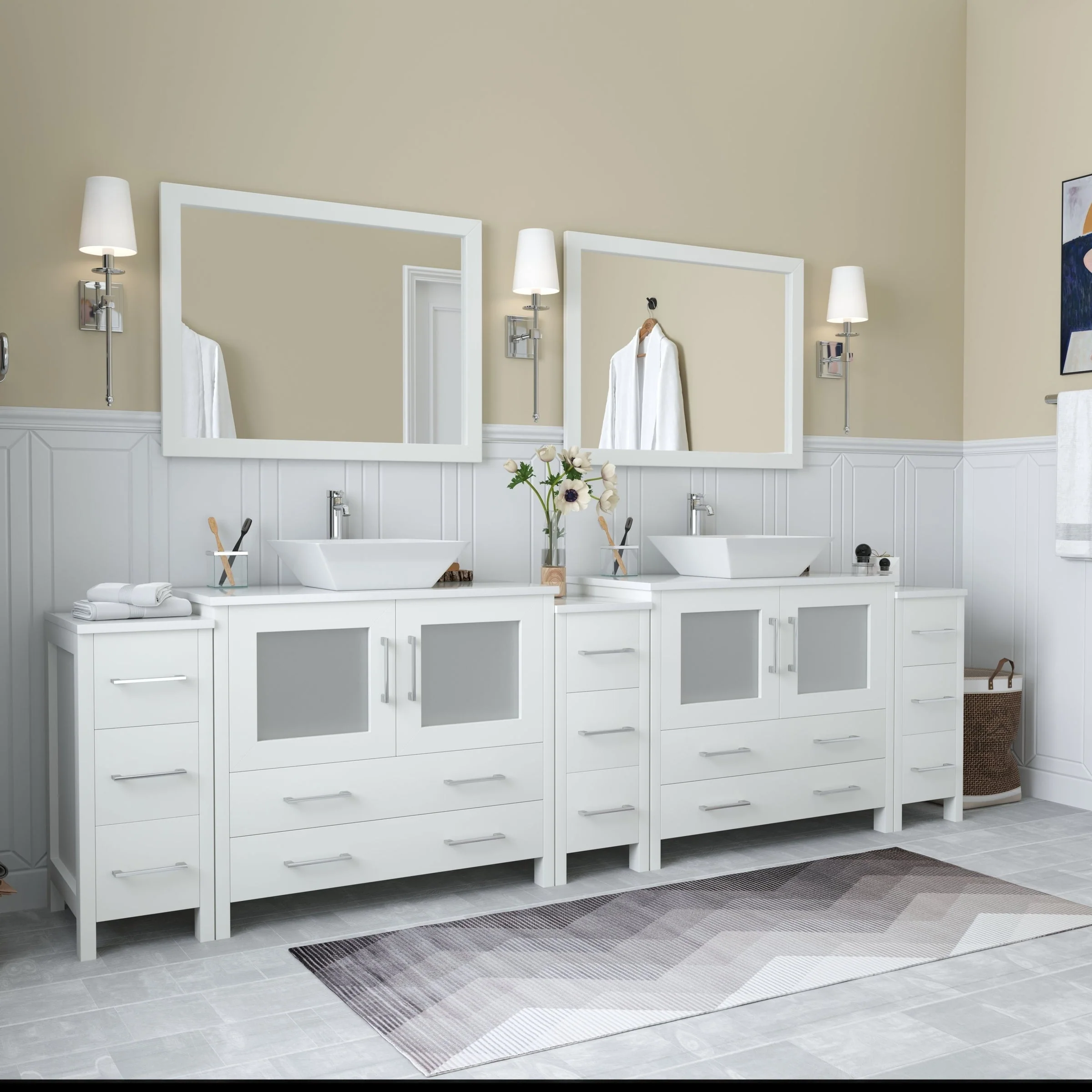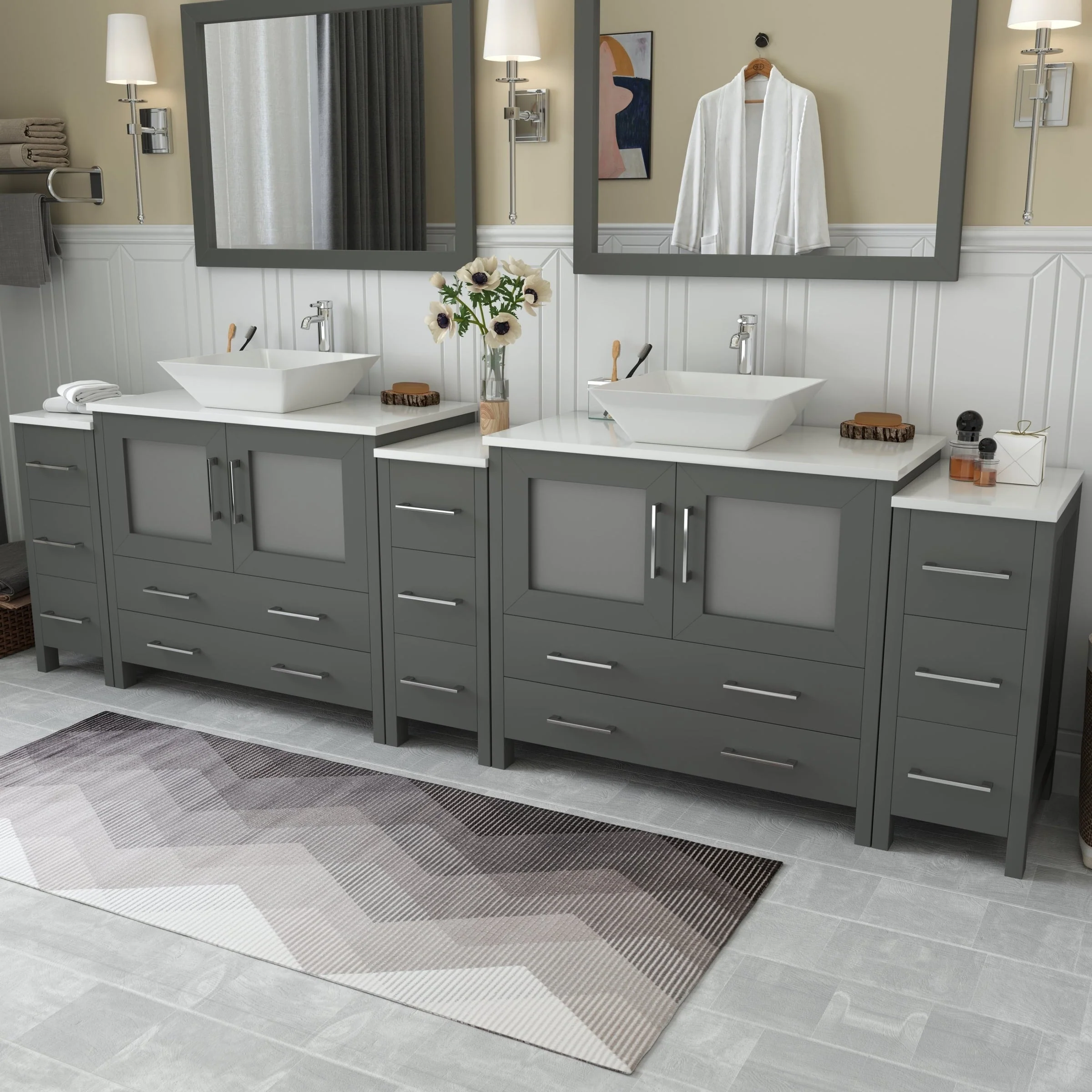 Vanity Art 108" Double Sink Bathroom Vanity Set with Engineered Marble Top and Free Mirrors