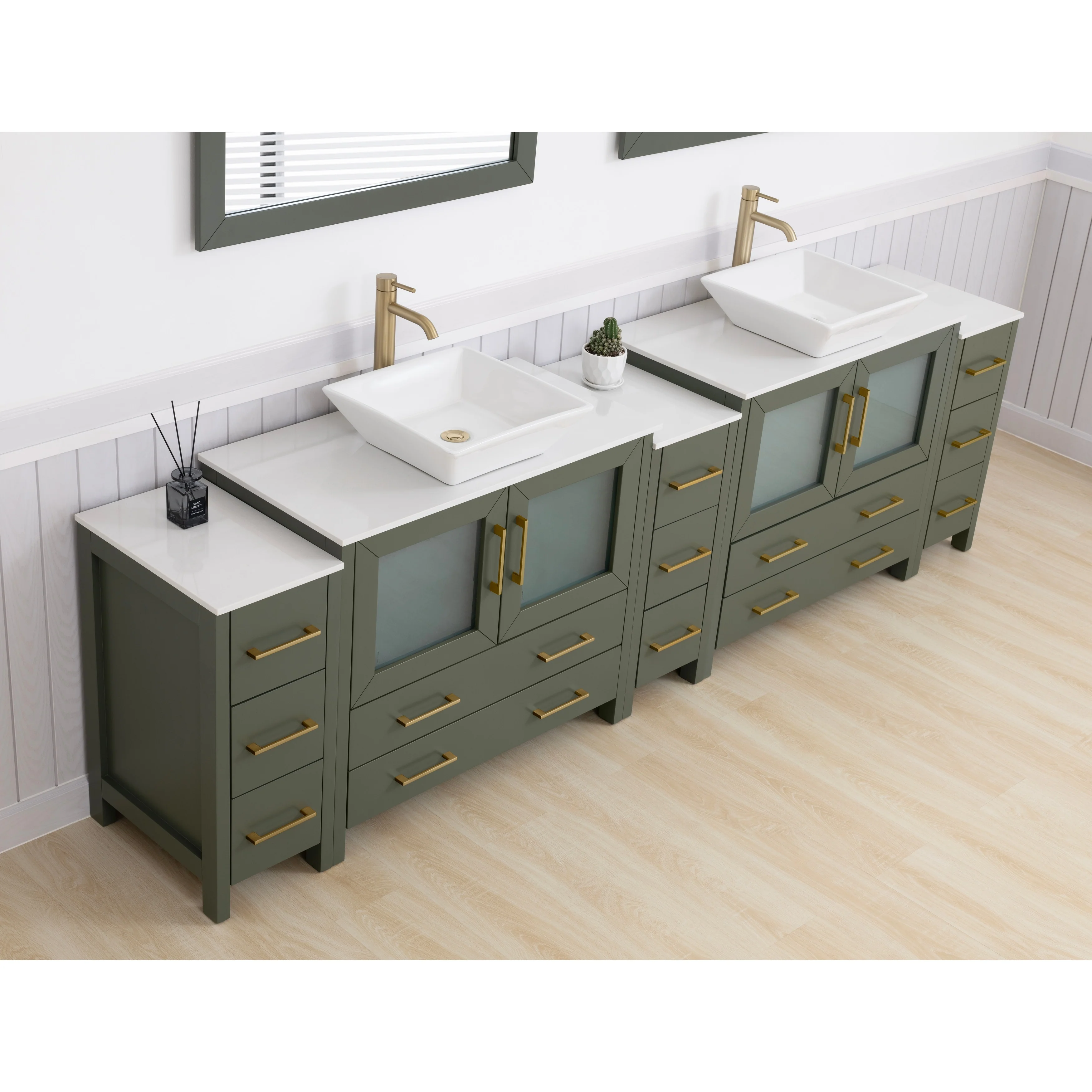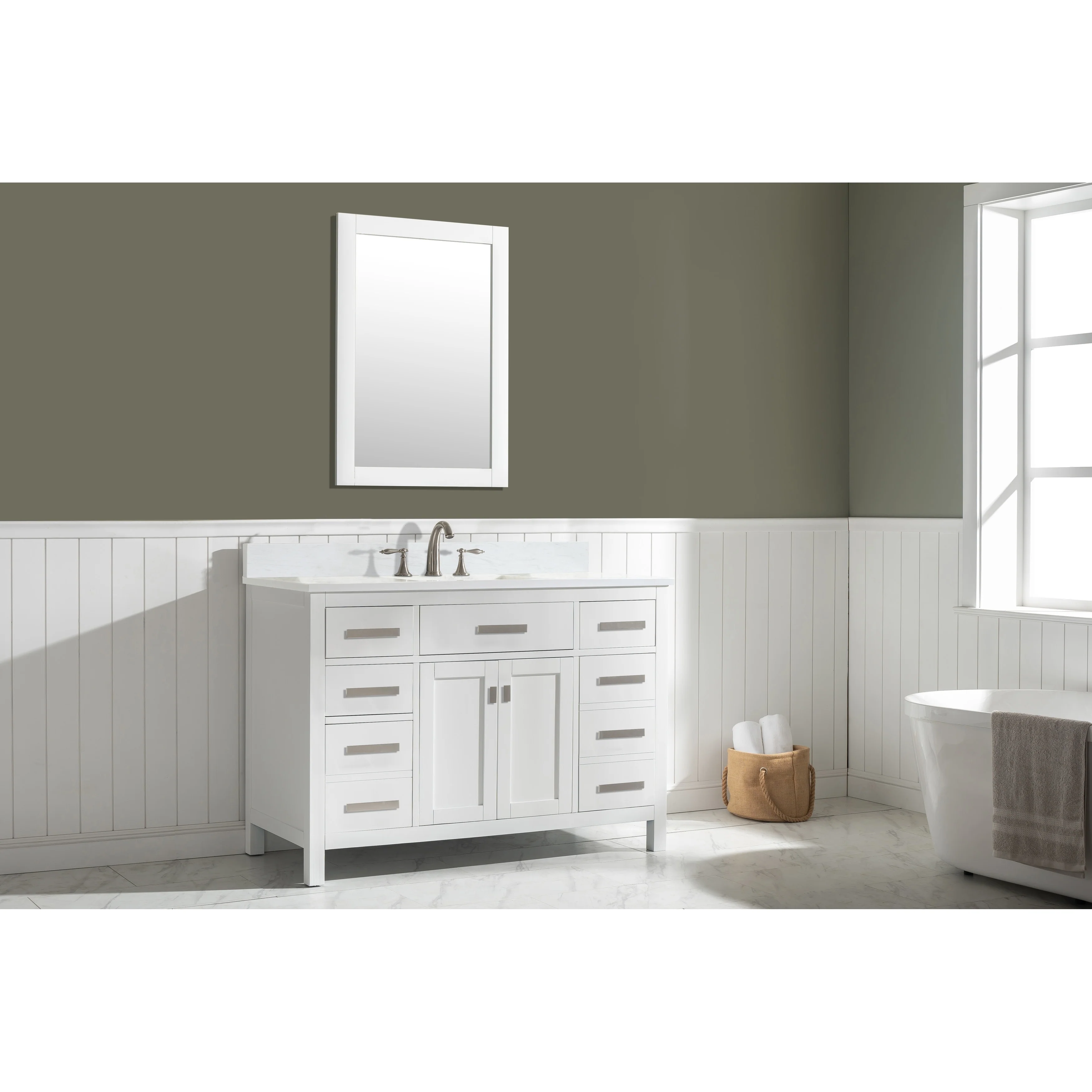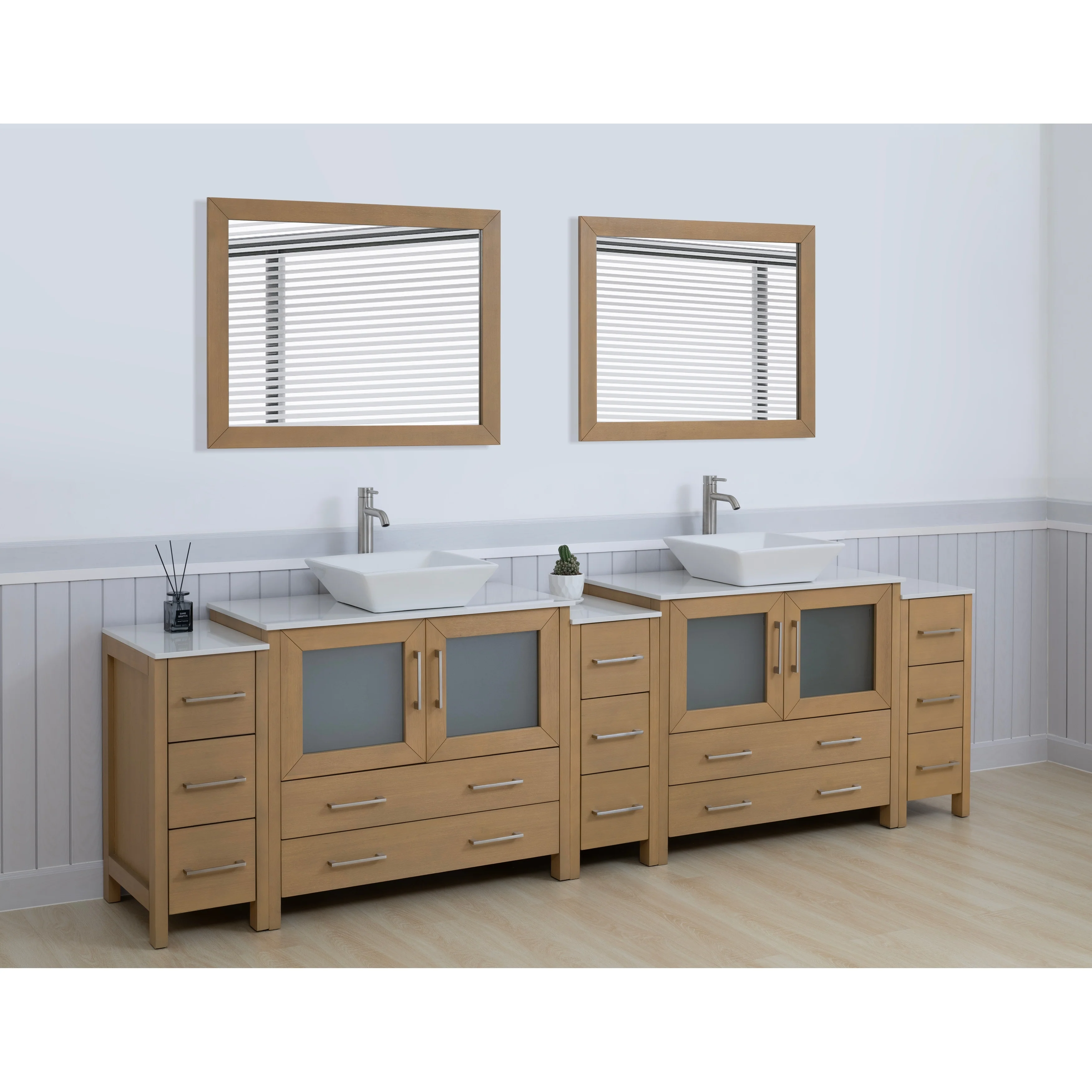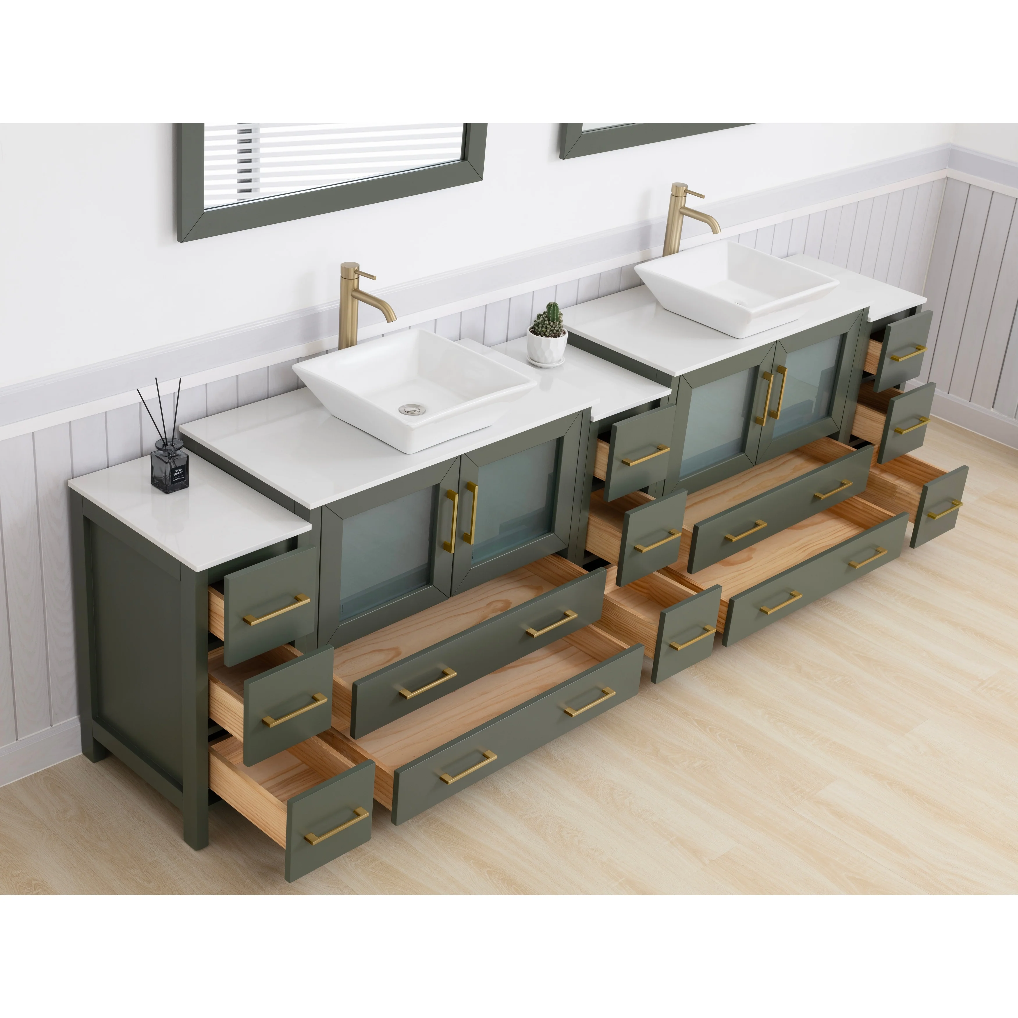 Vanity Art 108" Double Sink Bathroom Vanity Set with Engineered Marble Top and Free Mirrors