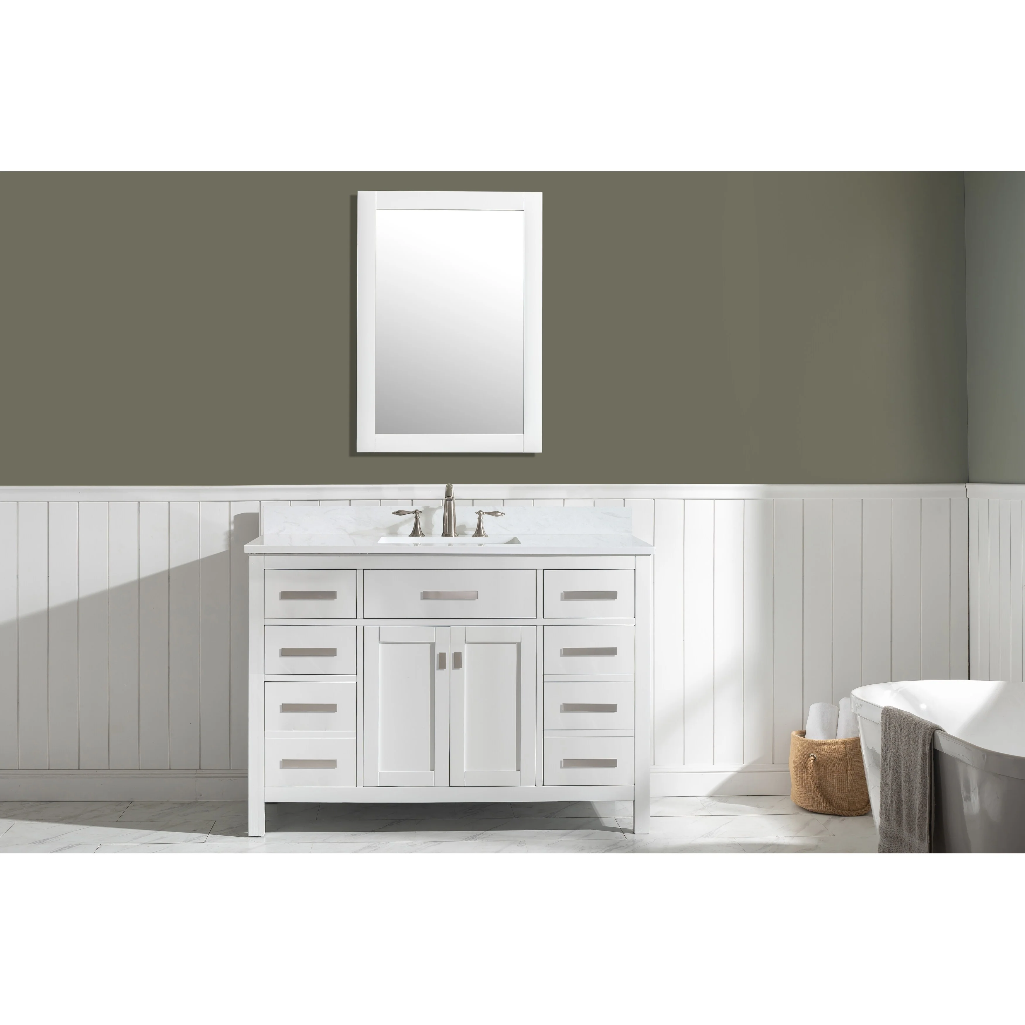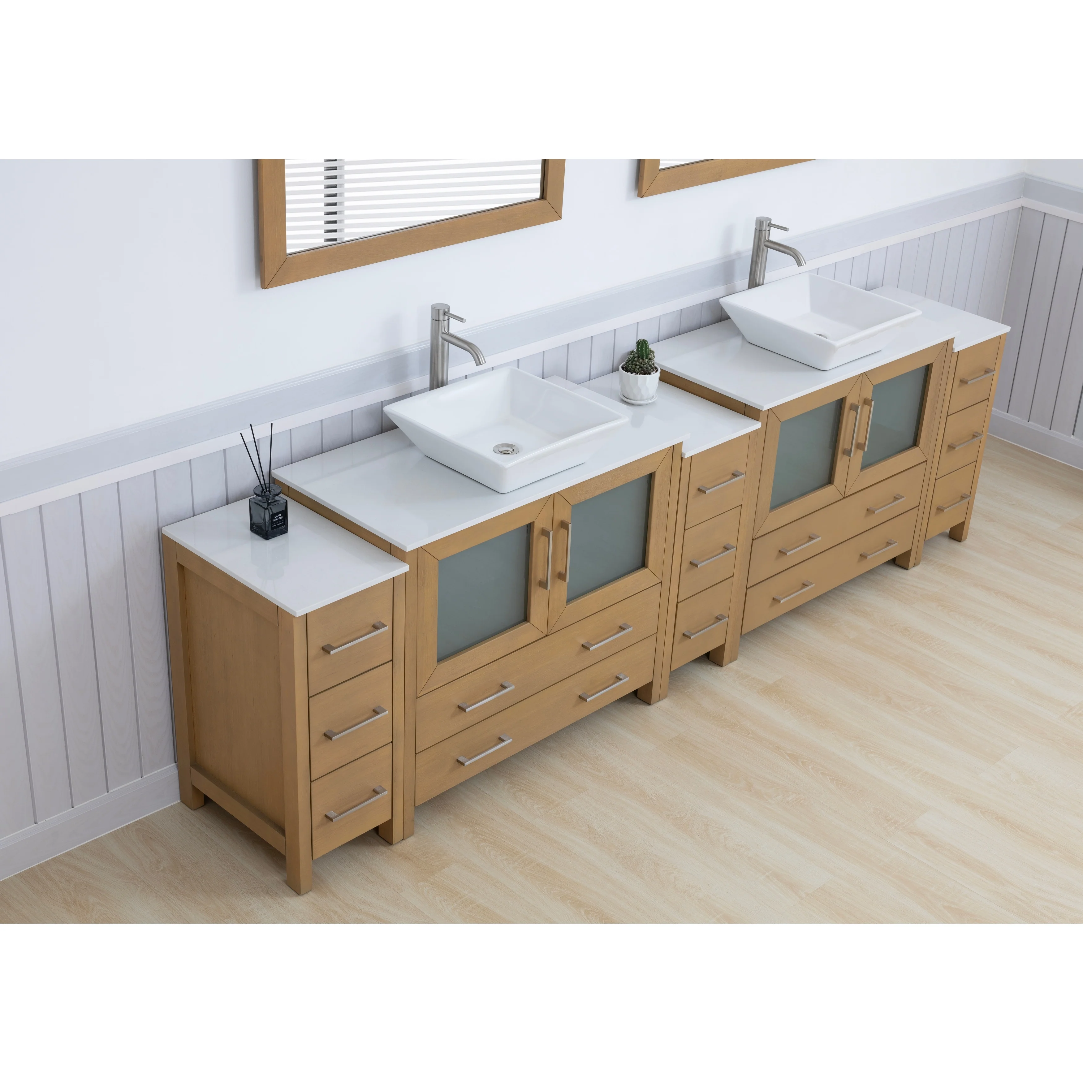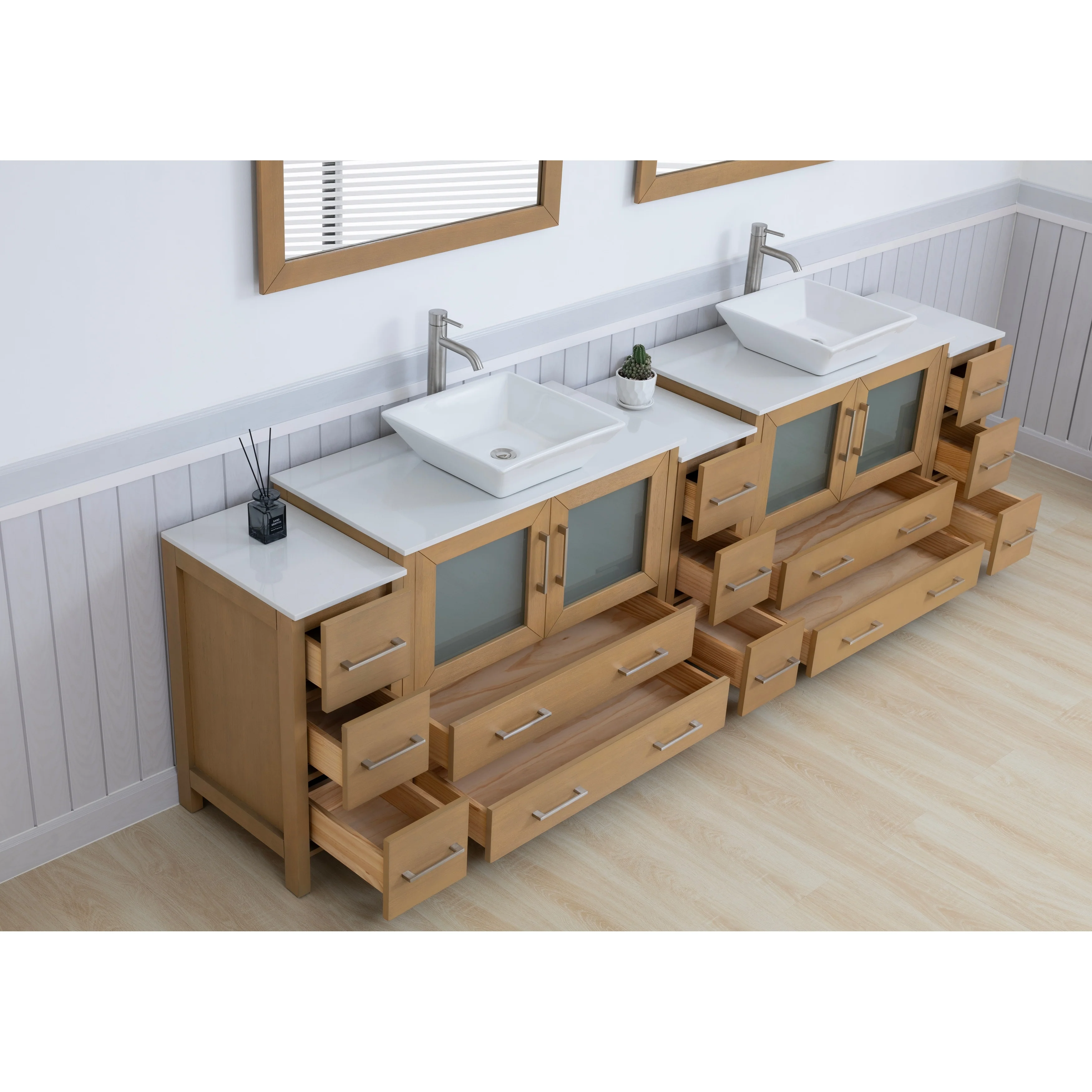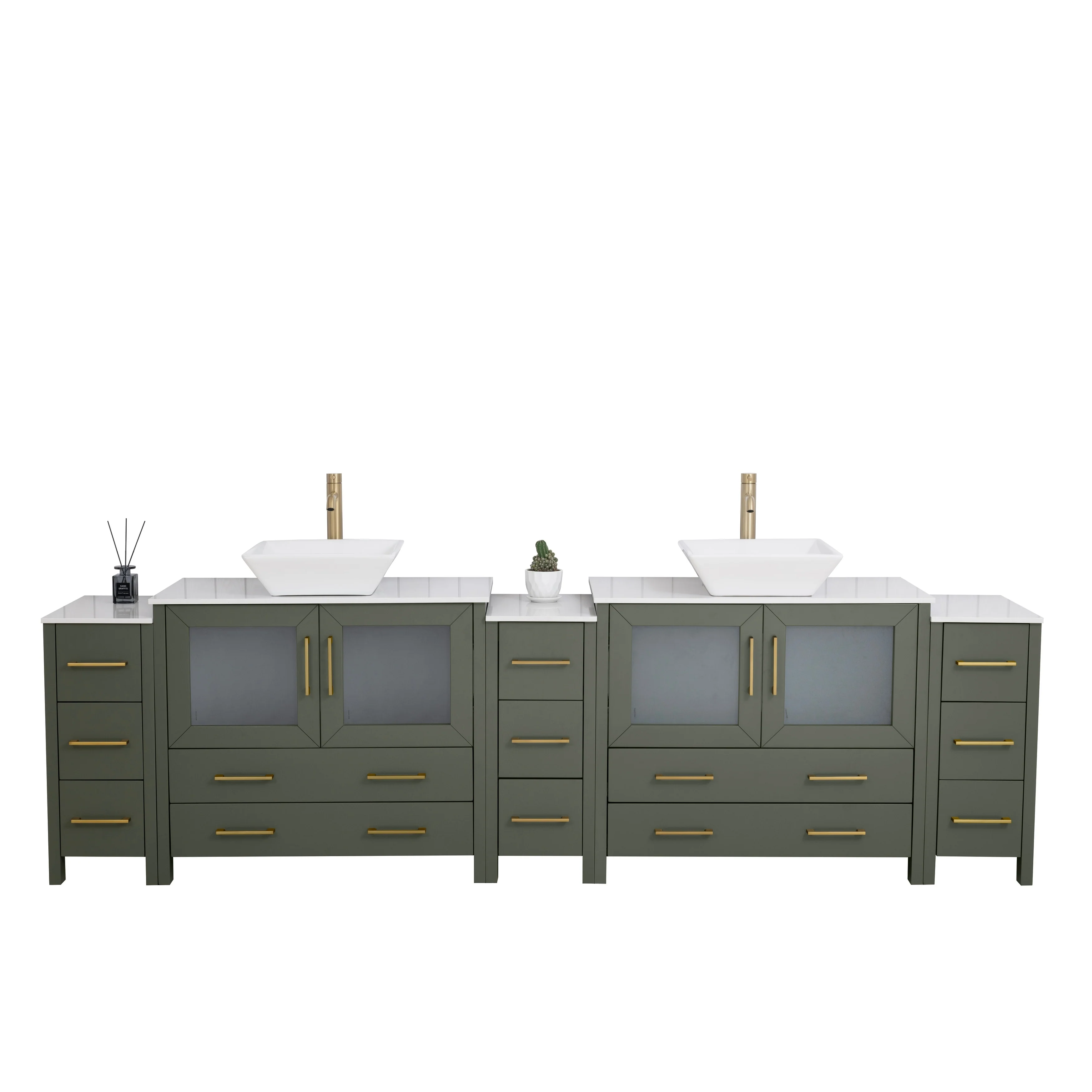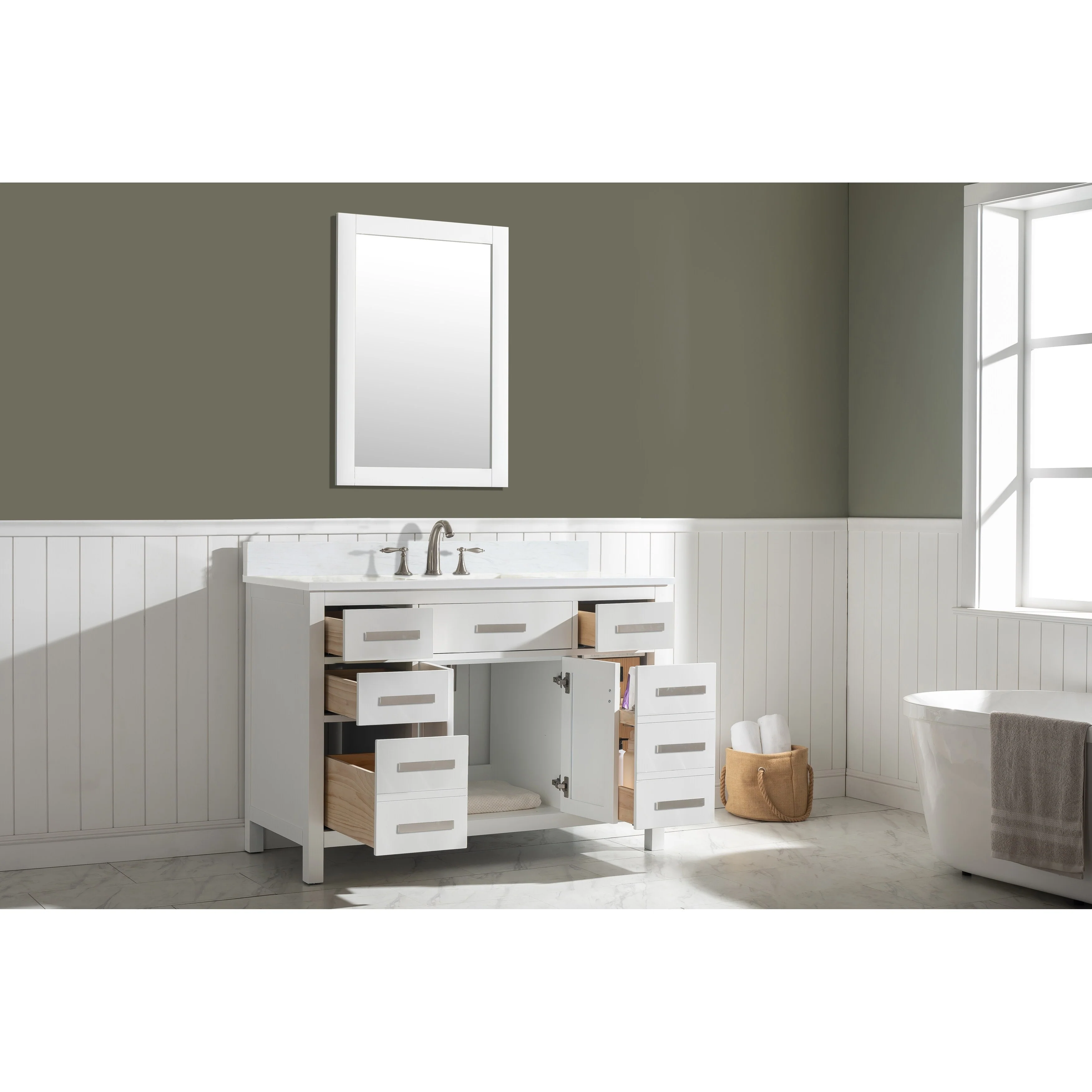 Vanity Art 108" Double Sink Bathroom Vanity Set with Engineered Marble Top and Free Mirrors