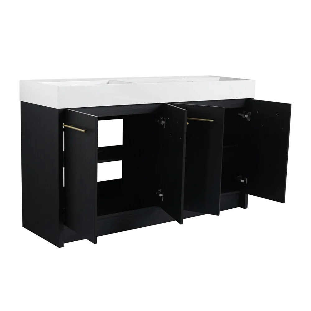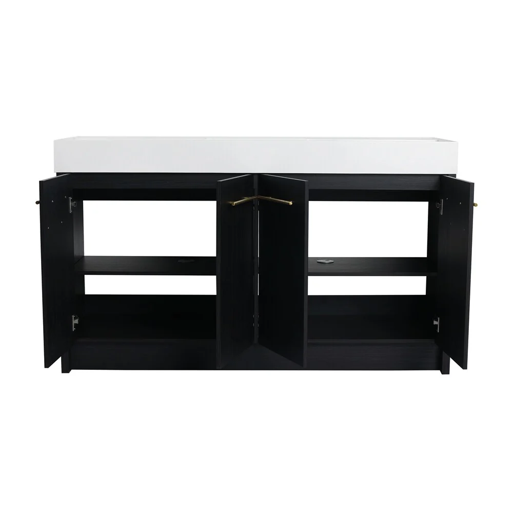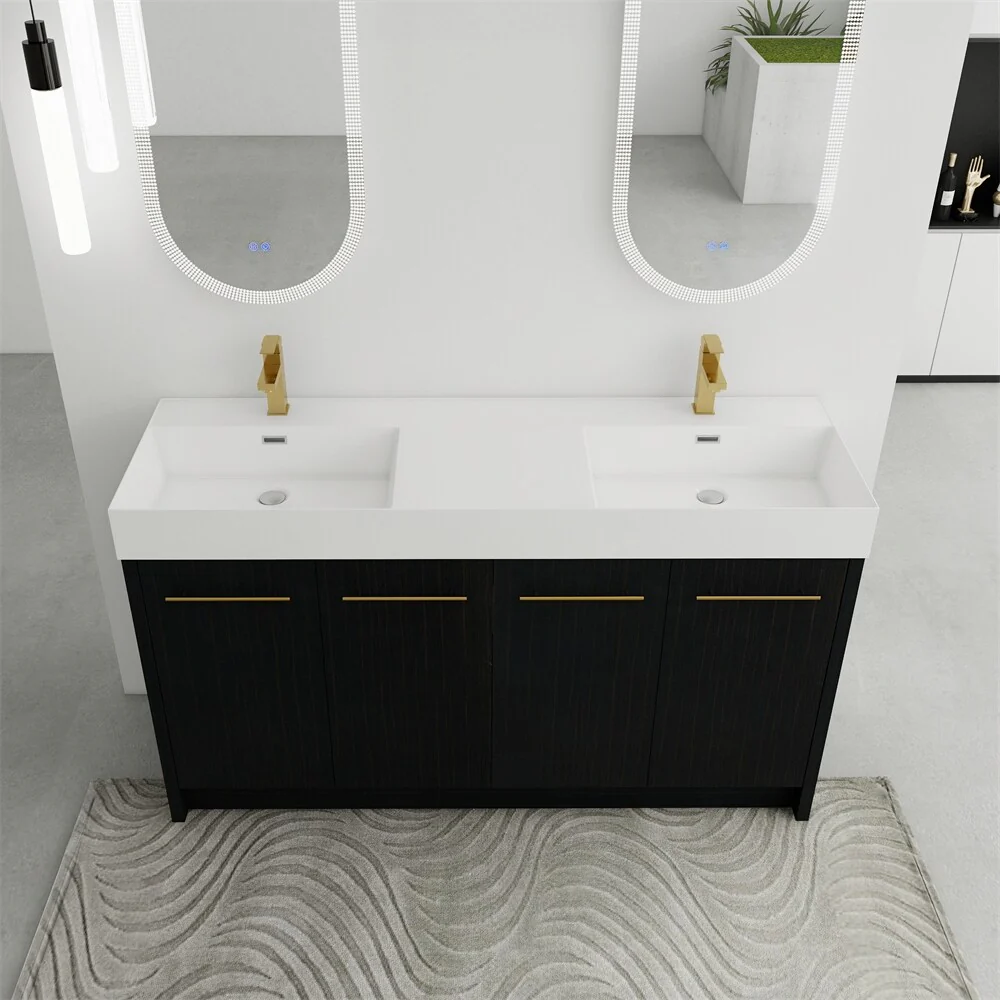 60 Inch Freestanding Bathroom Vanity with Resin Double Sink