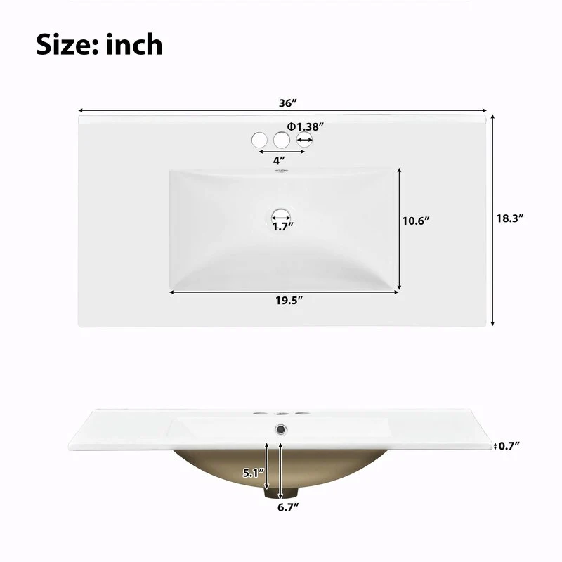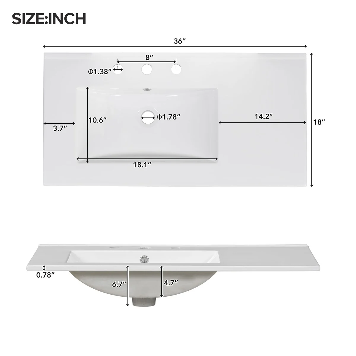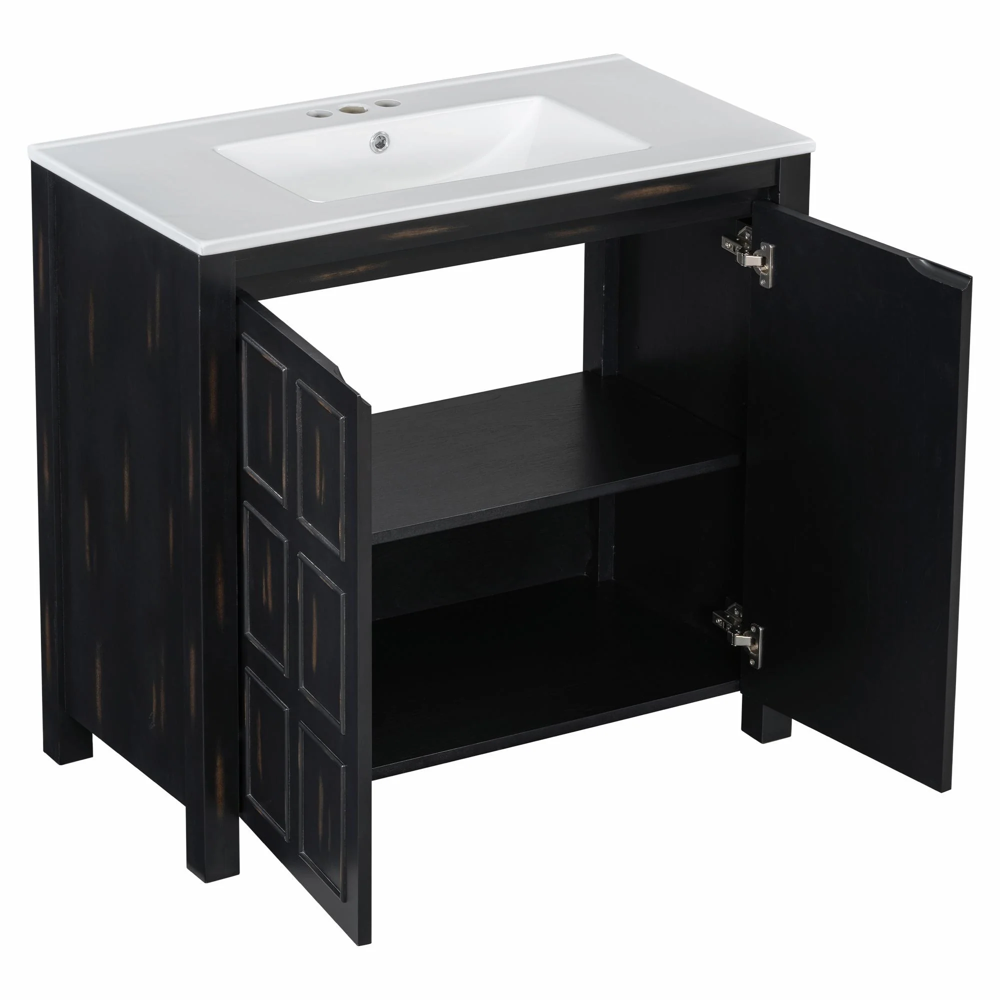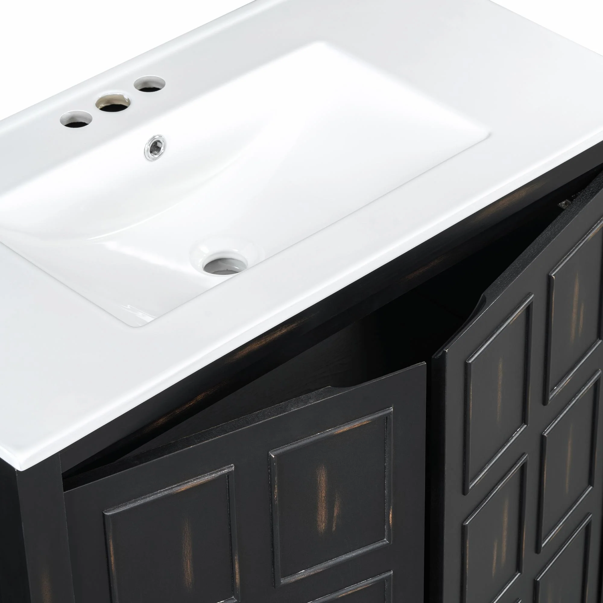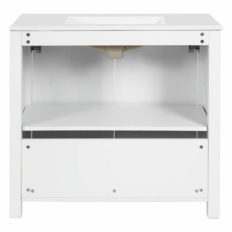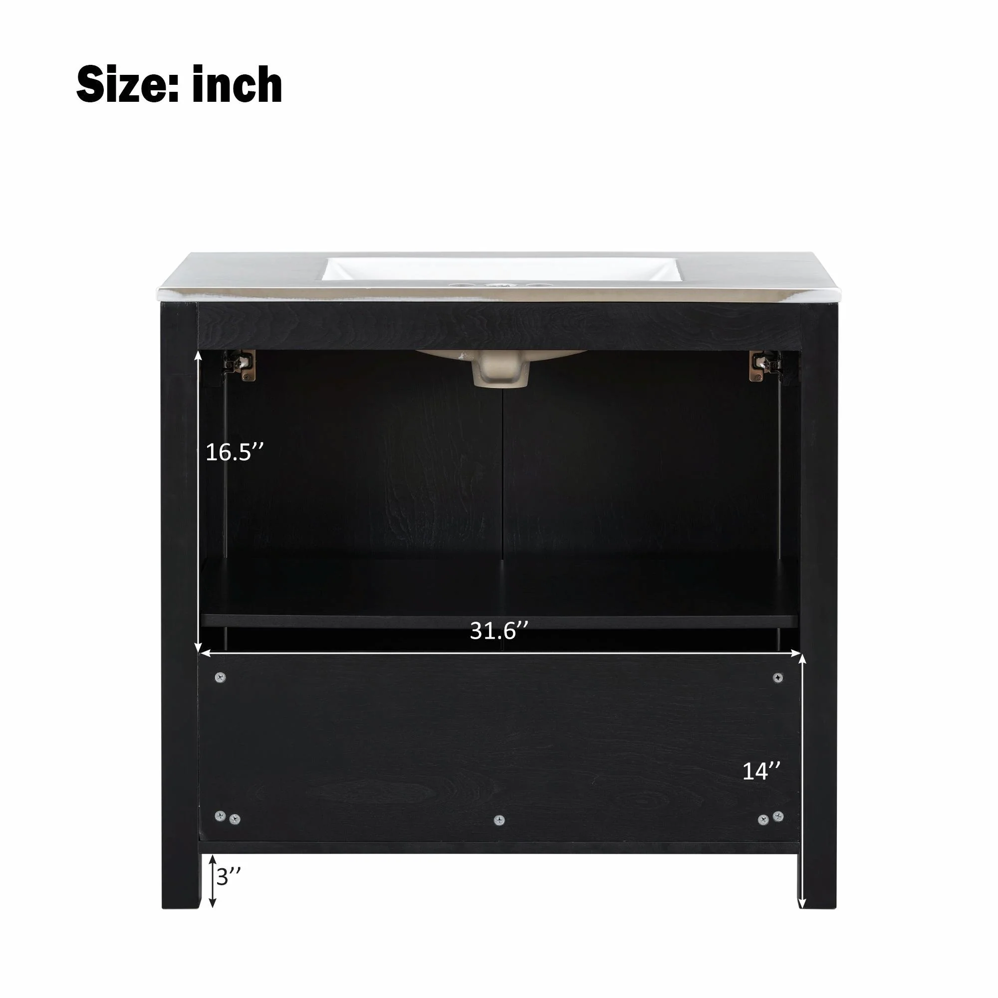 36" Bathroom Vanity with Ceramic Sink, Soft Close Doors, 4 Drawers