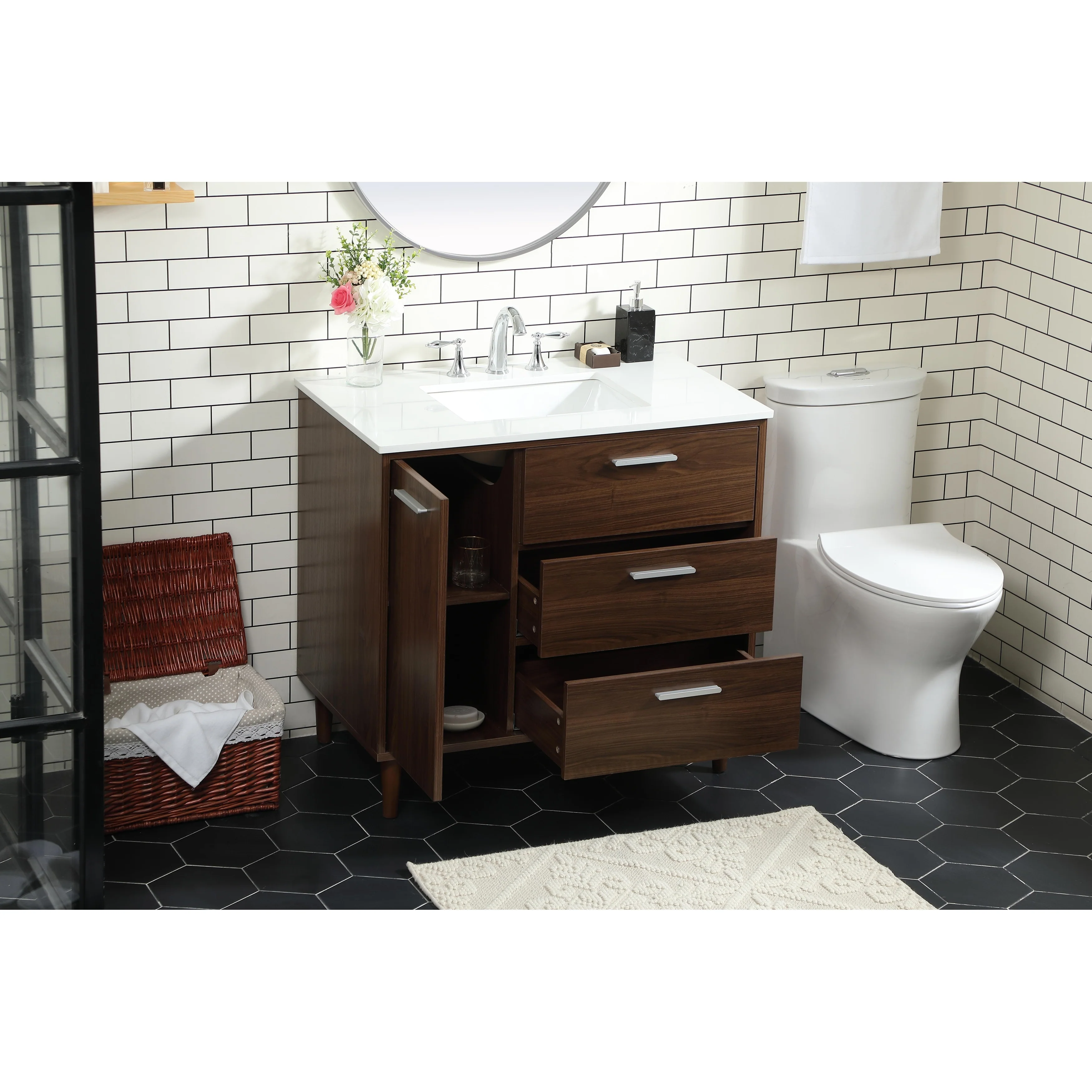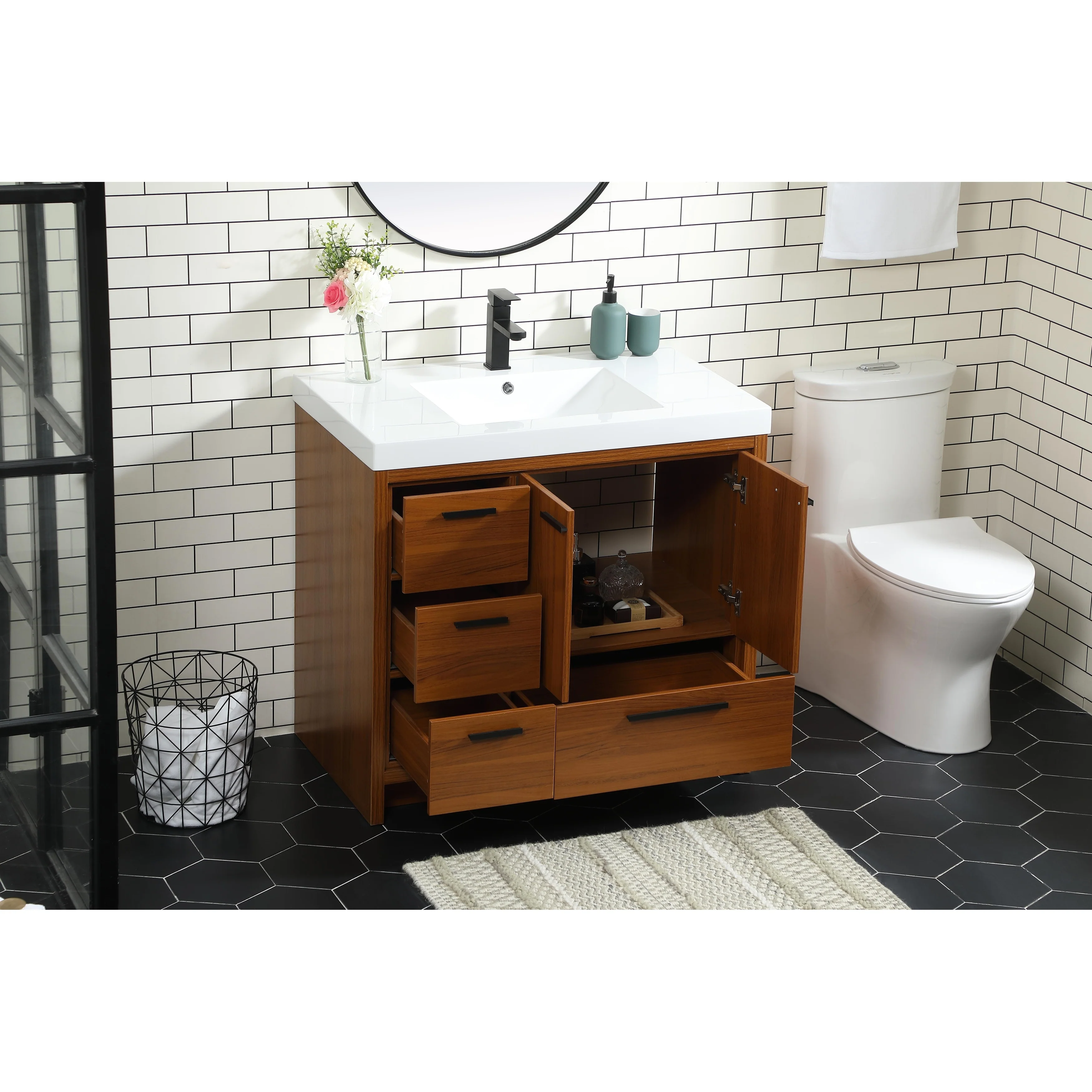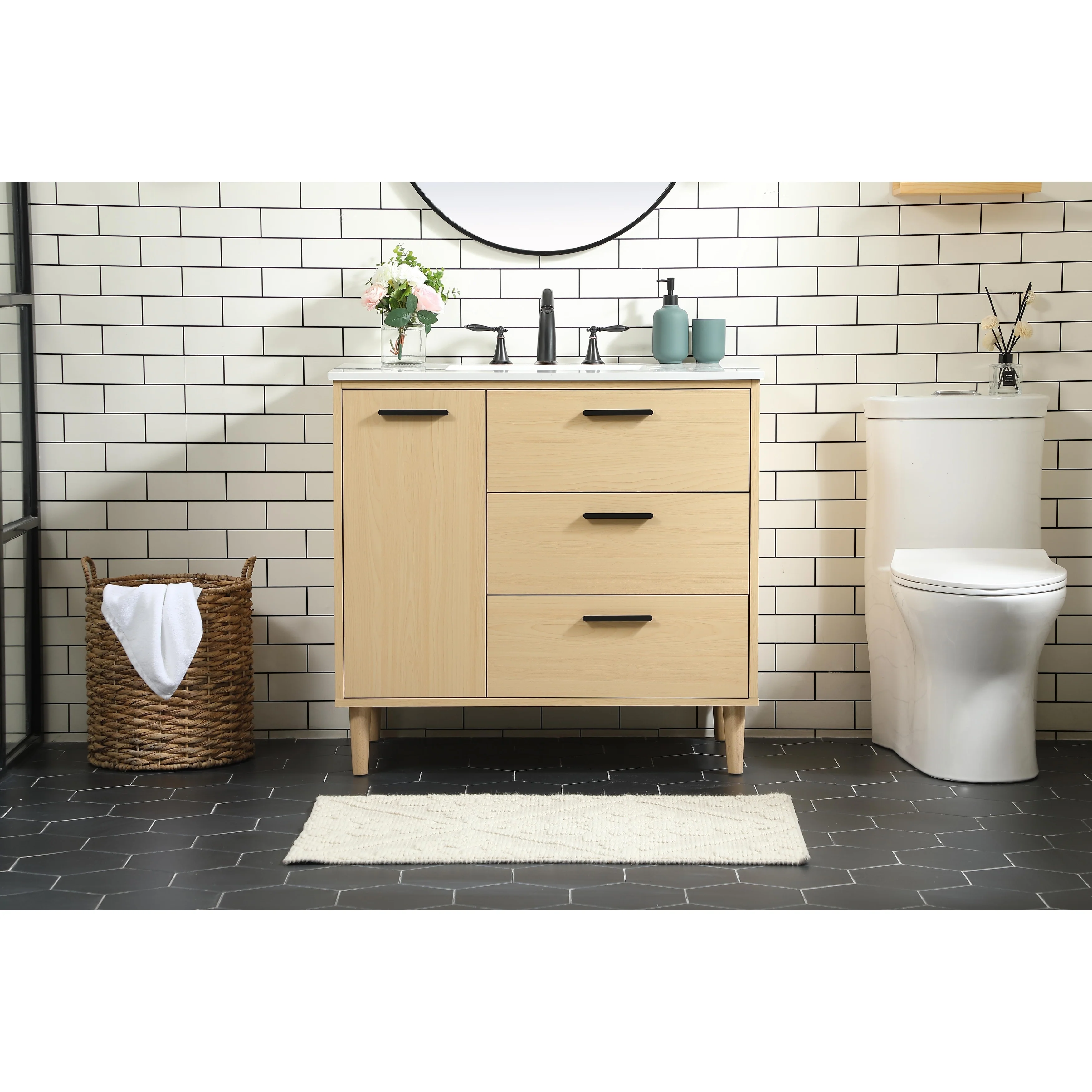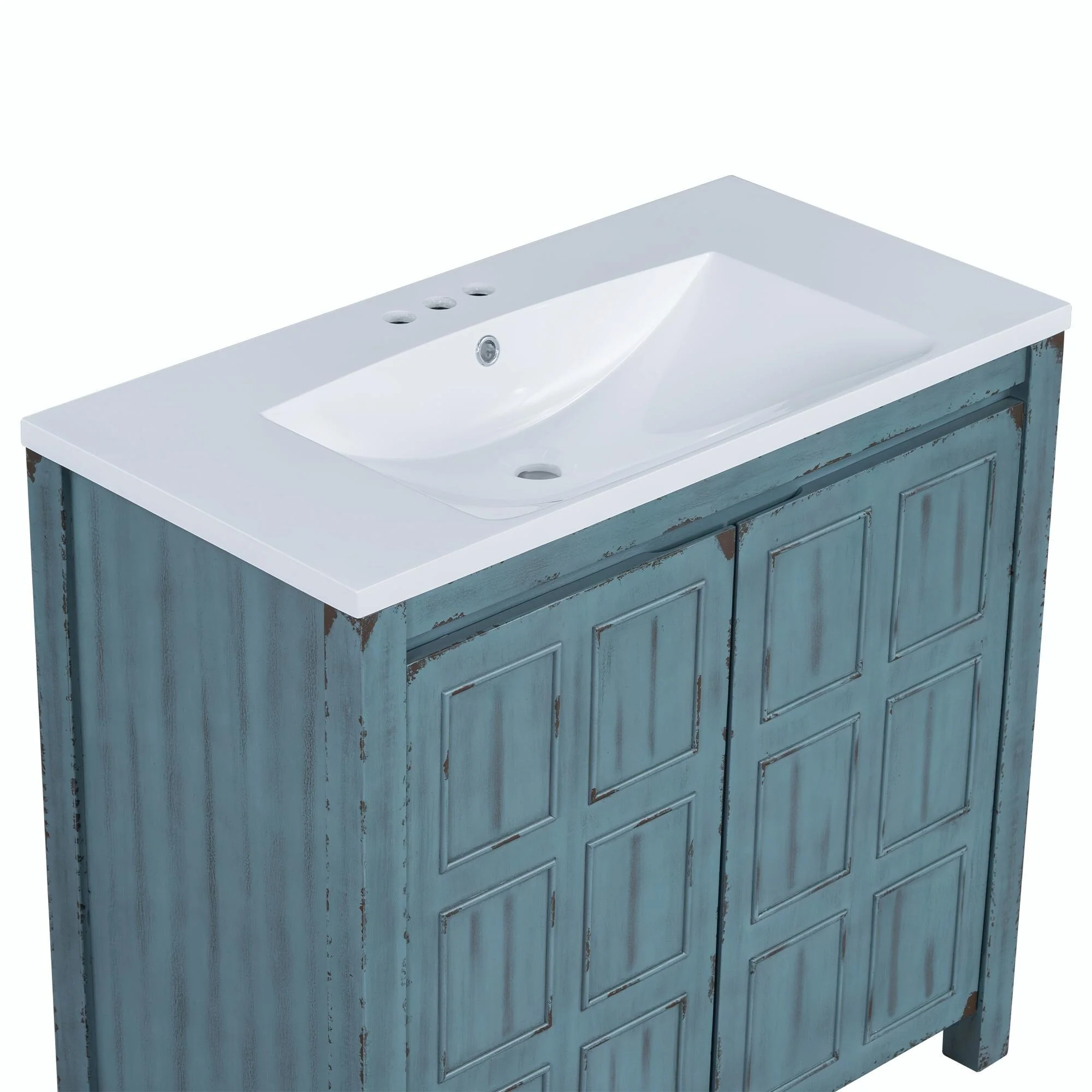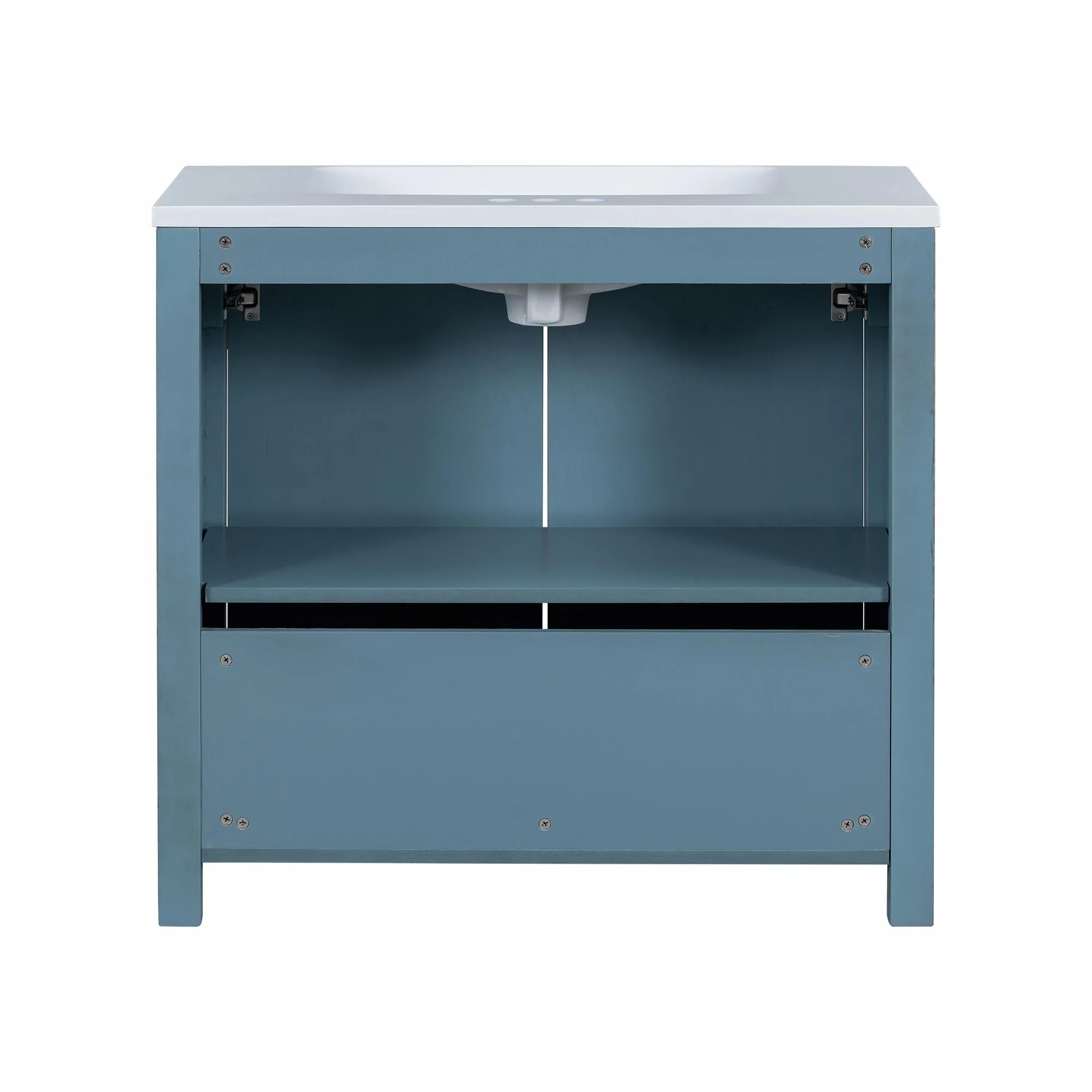 36" Bathroom Vanity with Ceramic Sink, Soft Close Doors, 4 Drawers