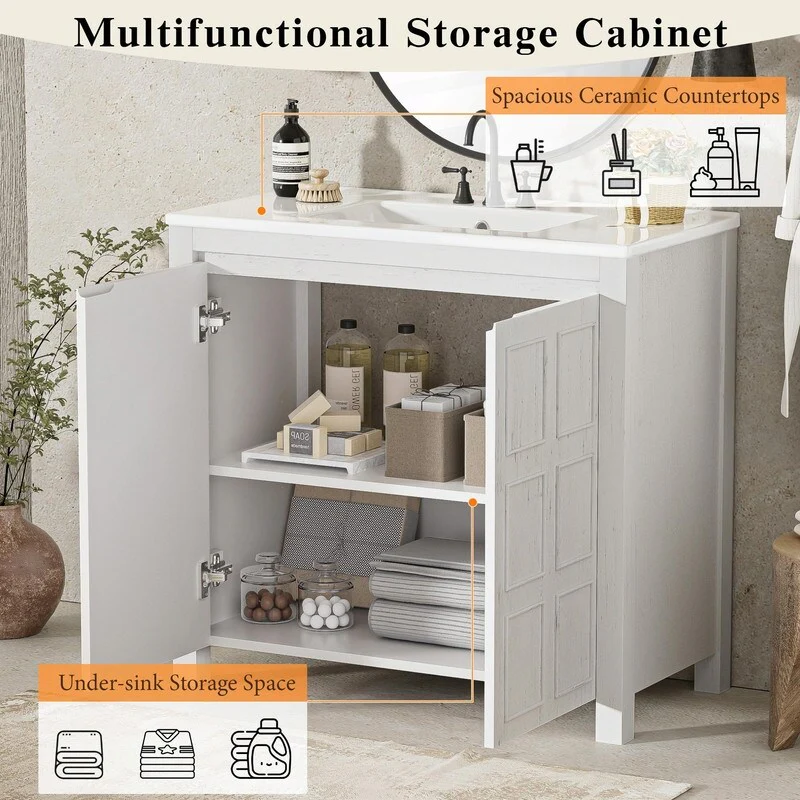 30-Inch Bathroom Vanity with Ceramic Sink Combination