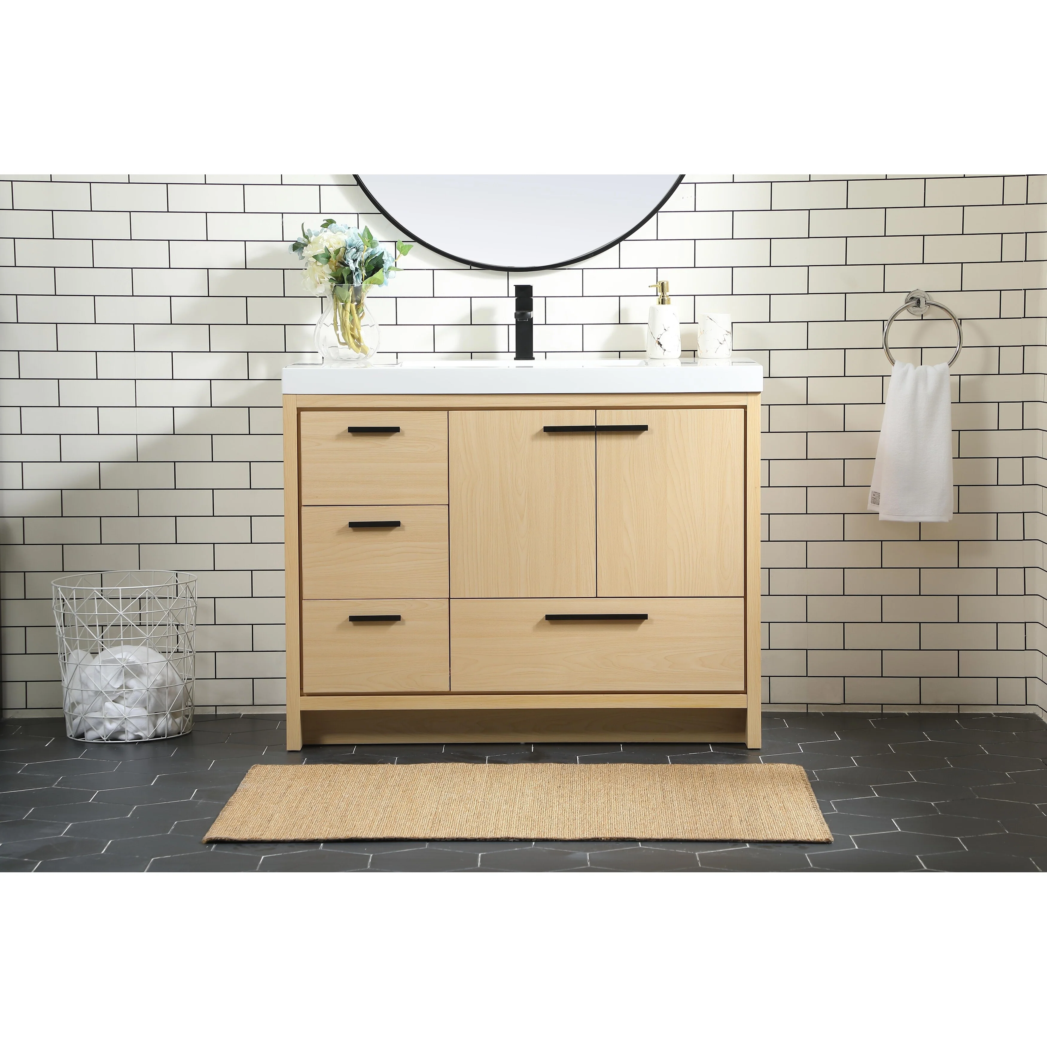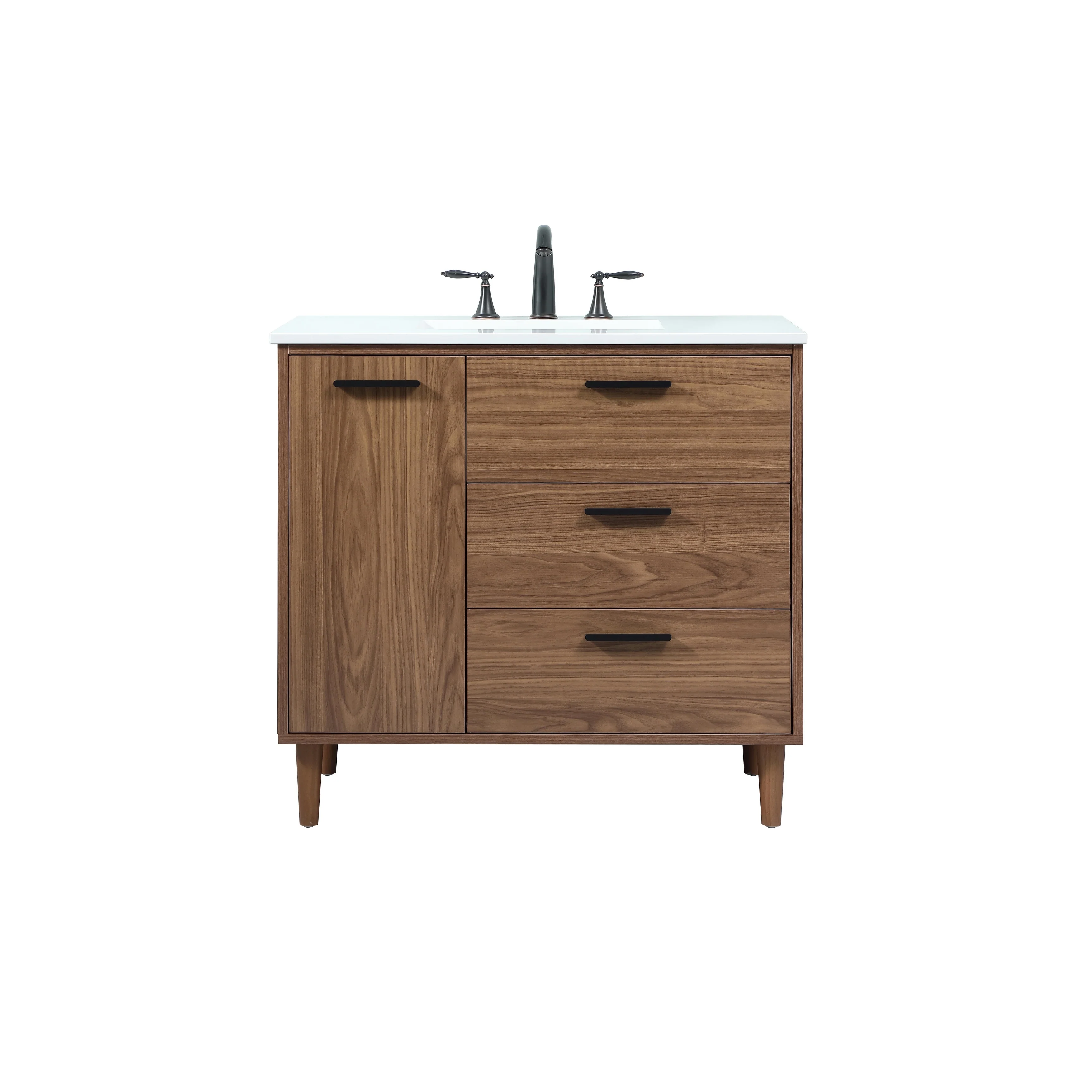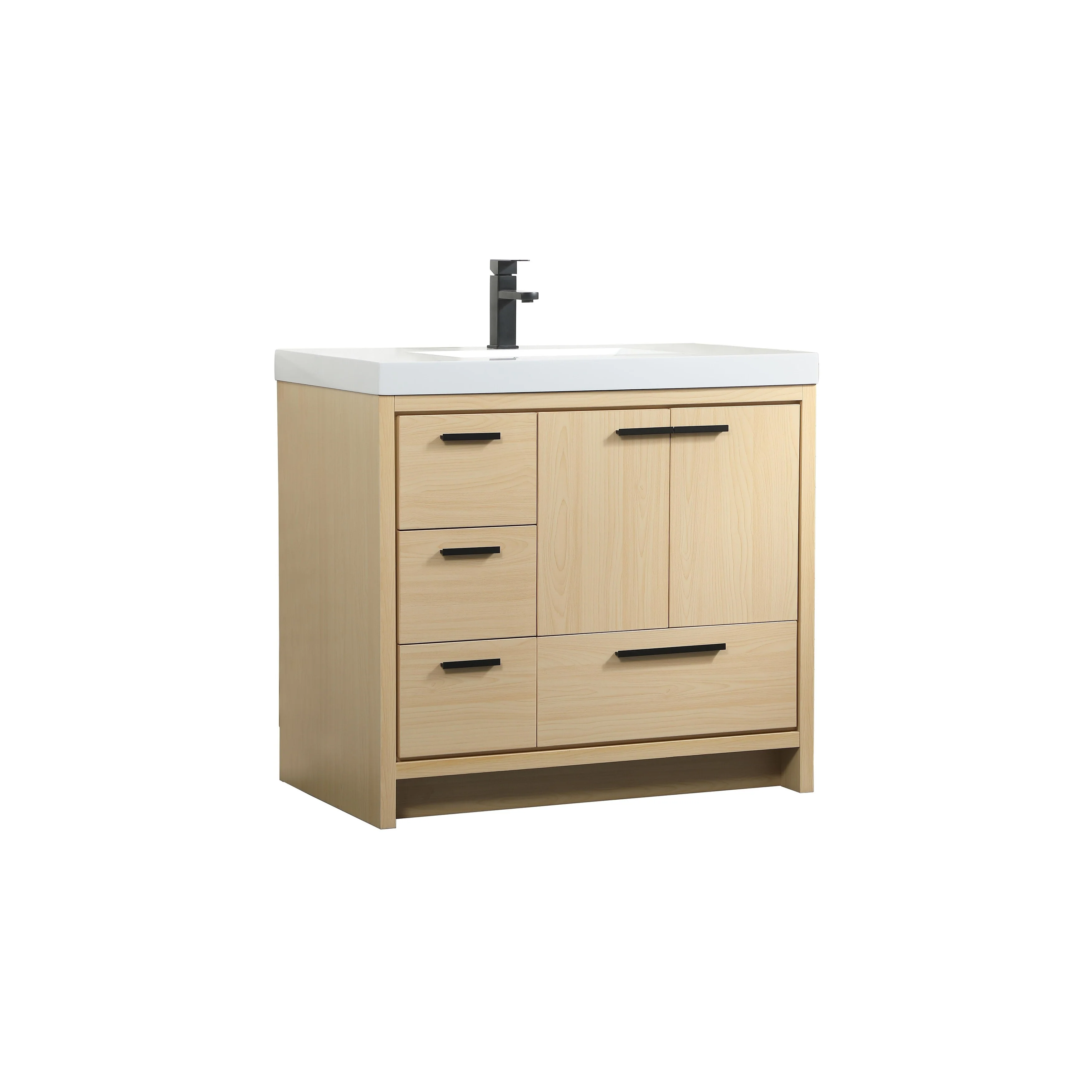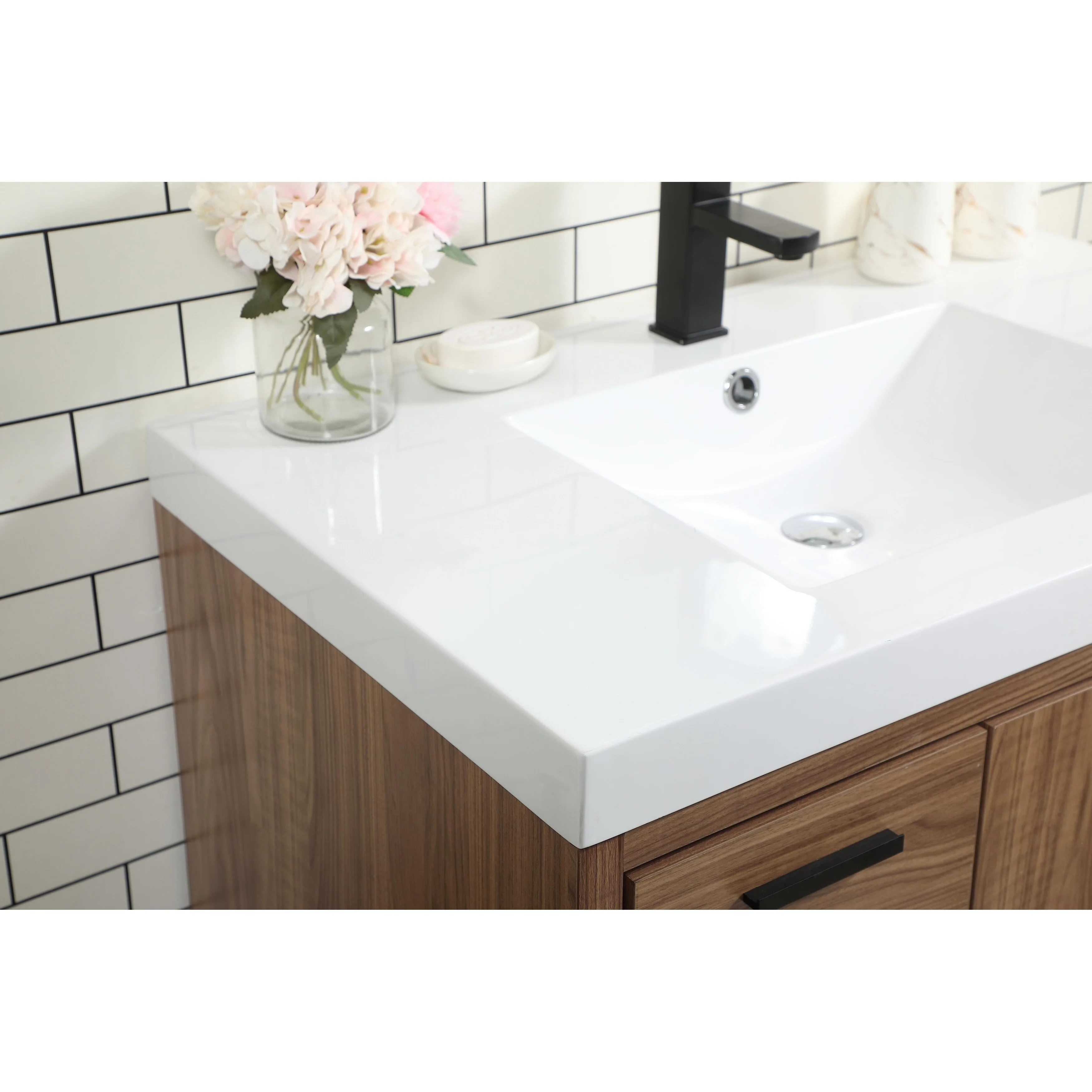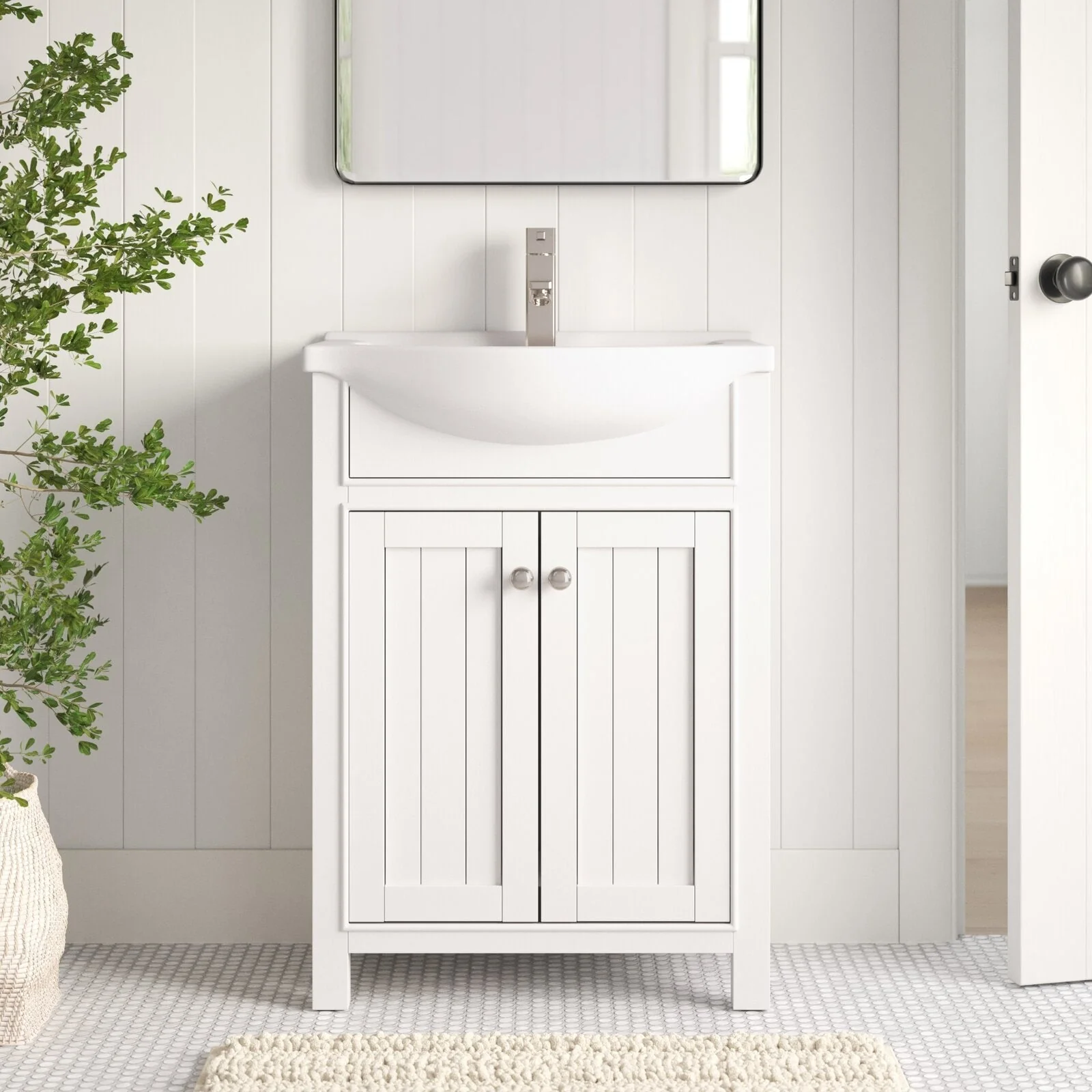 TUHOME Madrid Bathroom Vanity Sink with Metal Handles and Single Door Cabinet