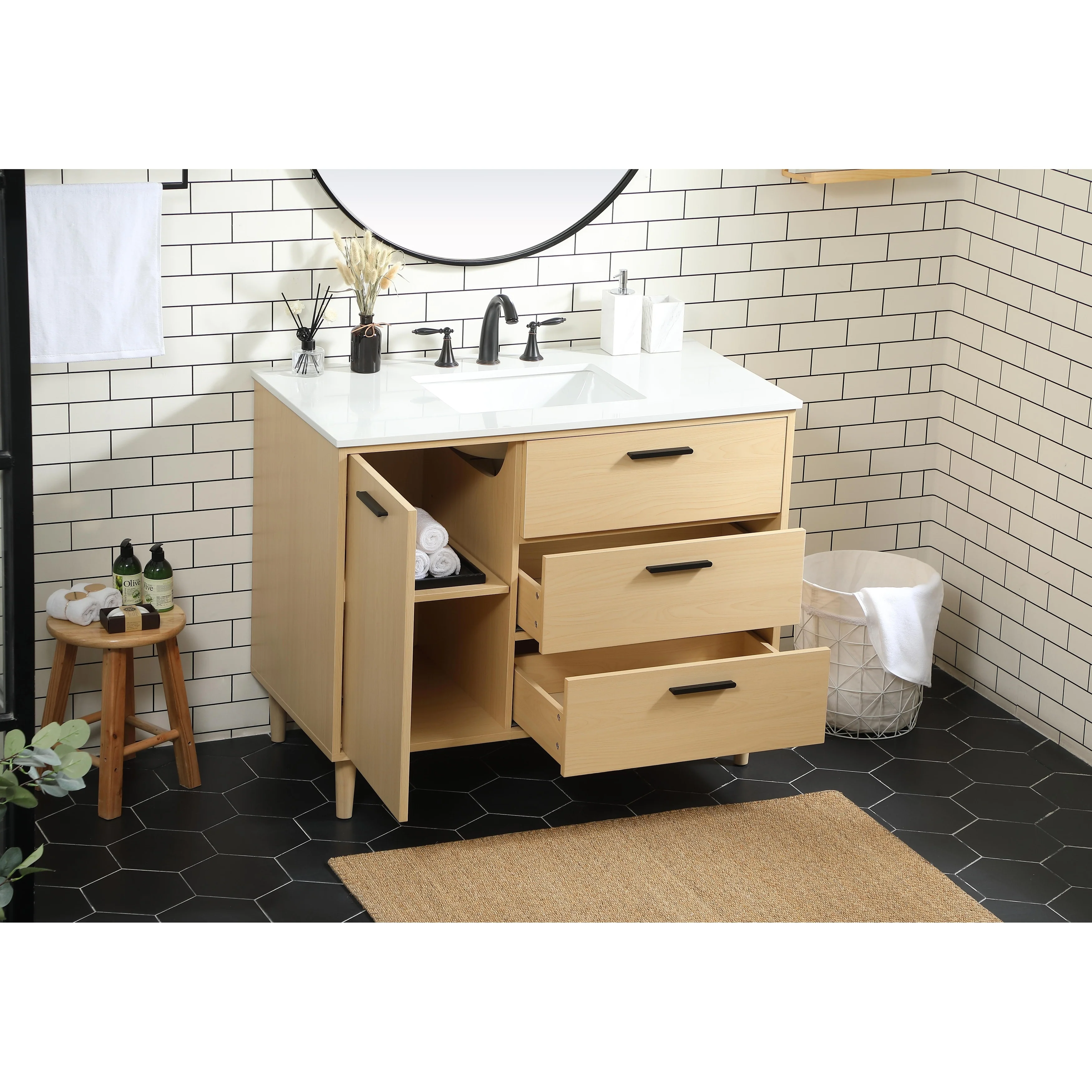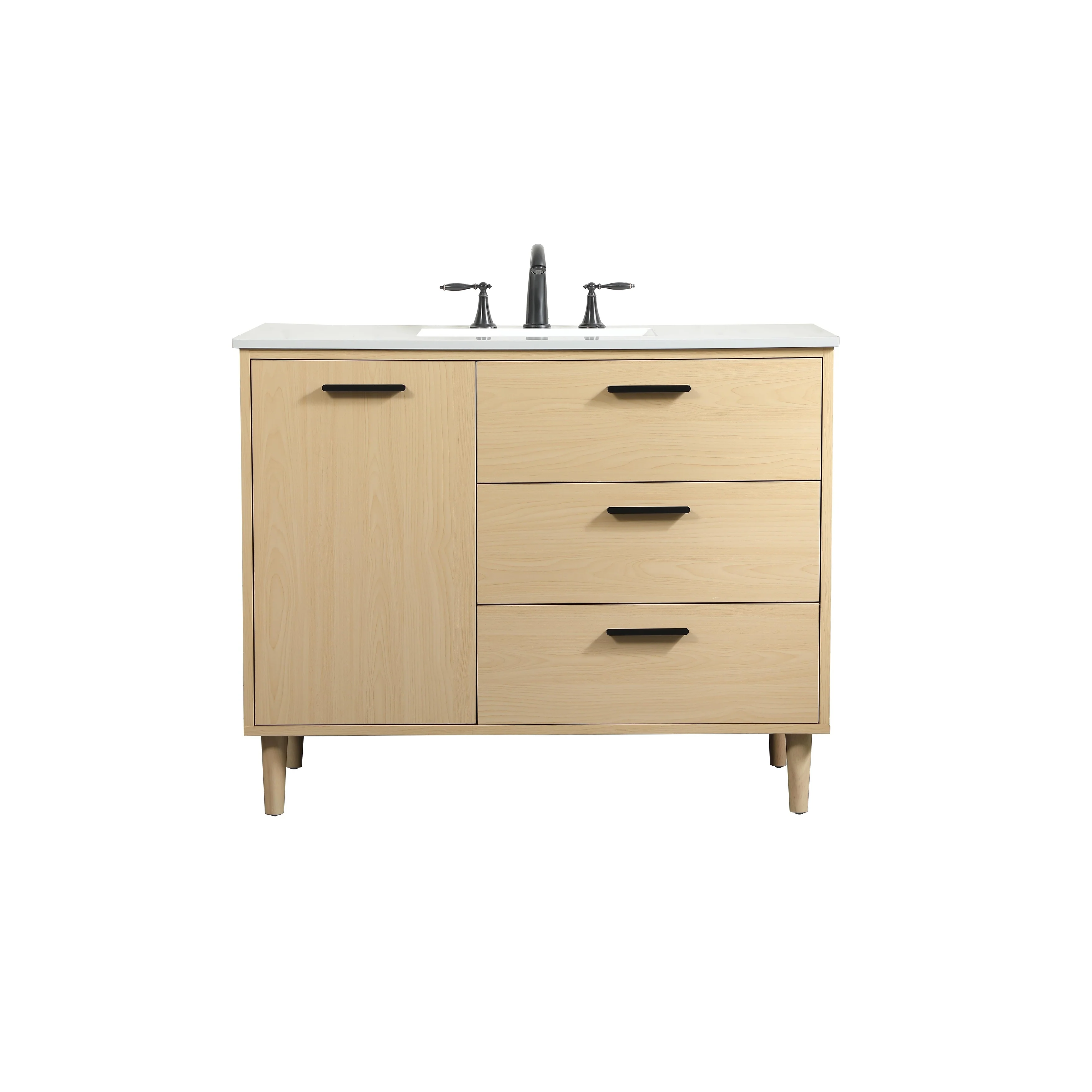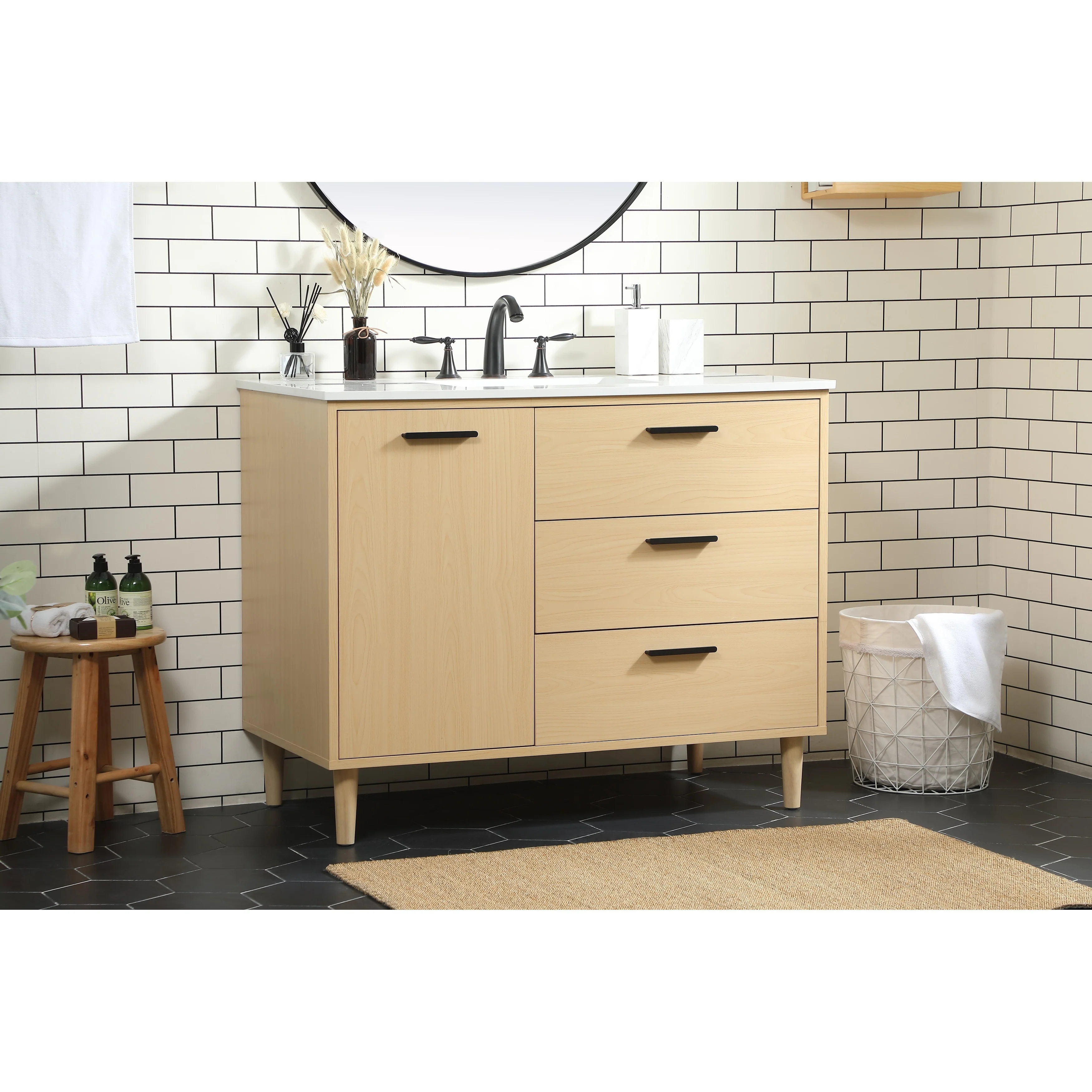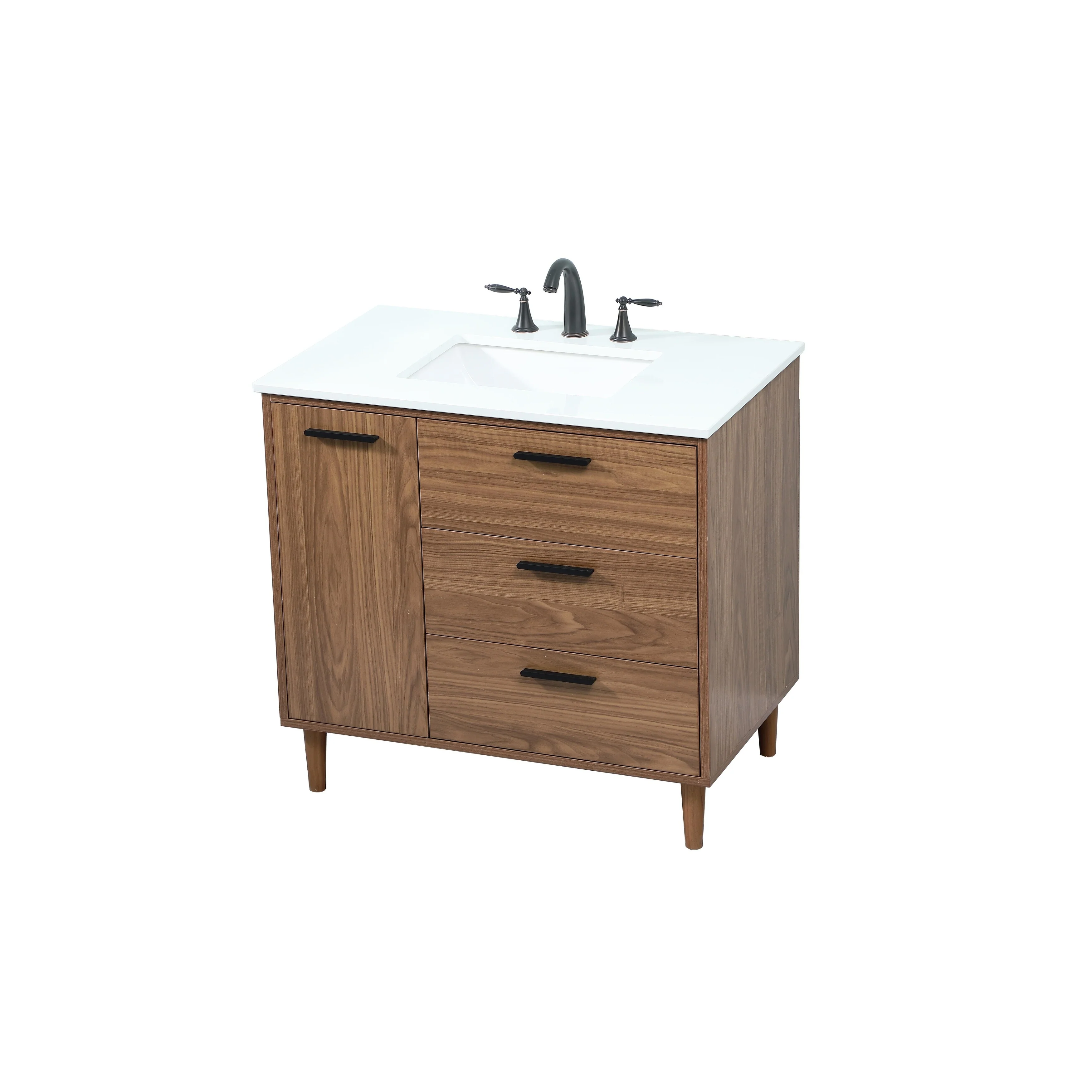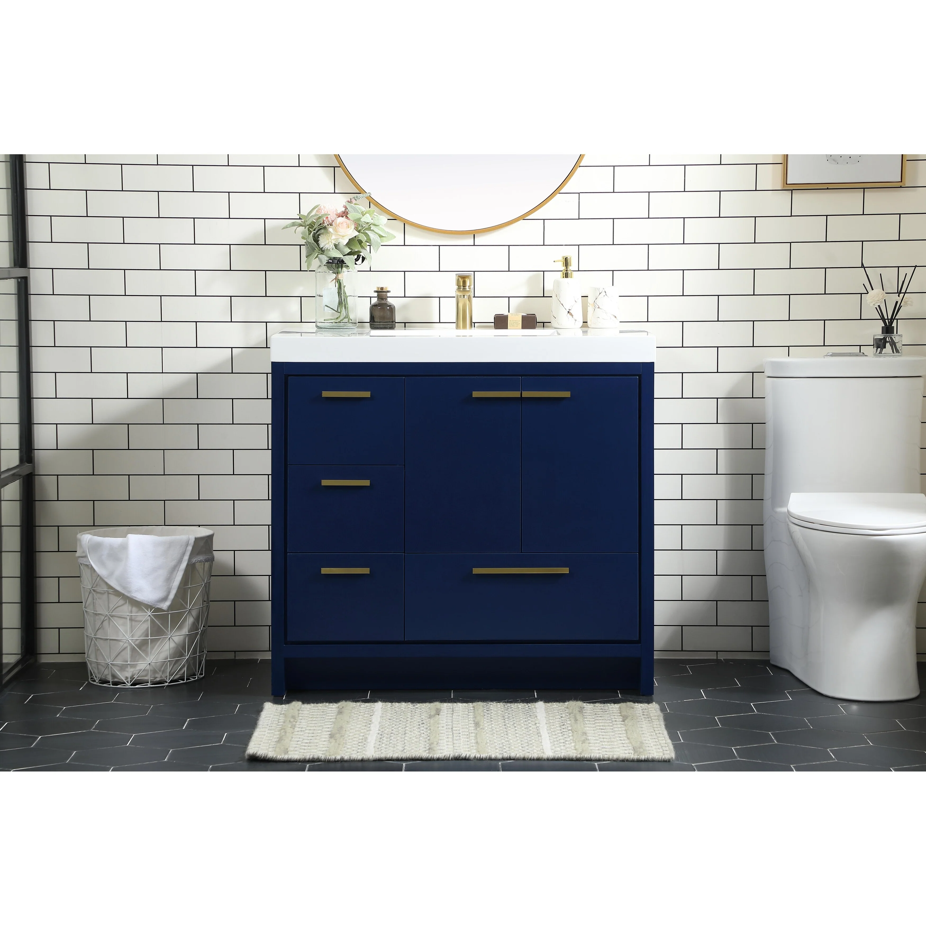 TUHOME Madrid Bathroom Vanity Sink with Metal Handles and Single Door Cabinet