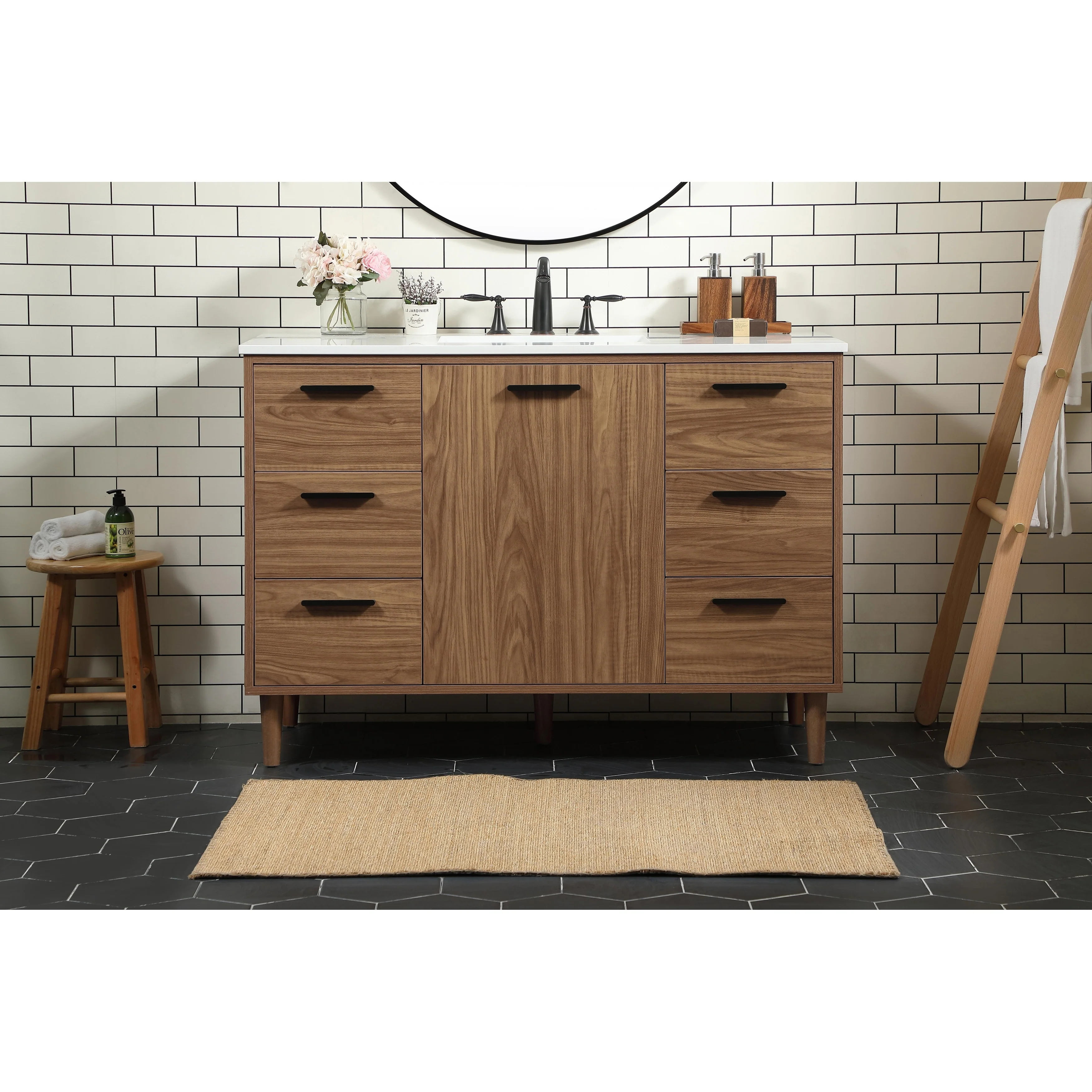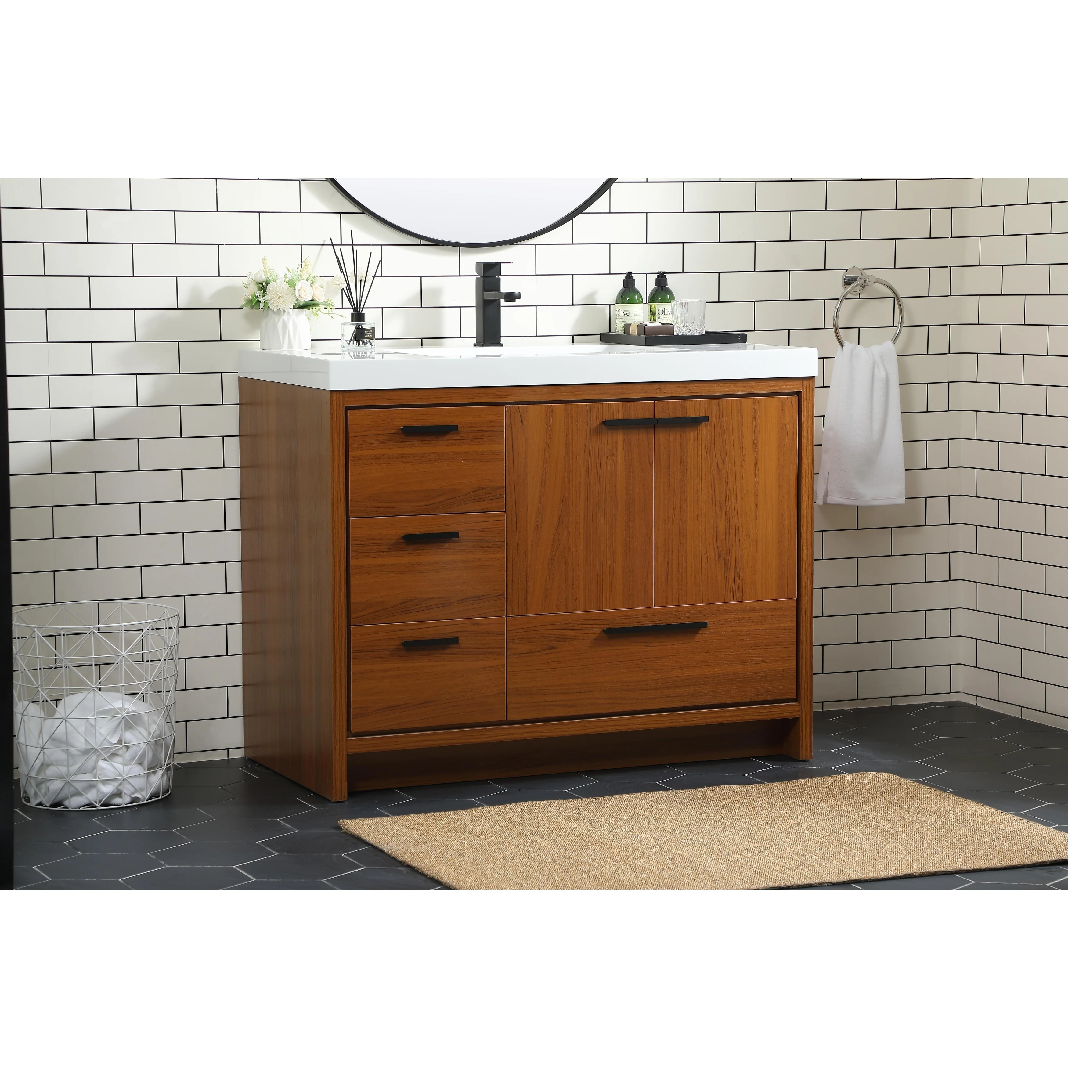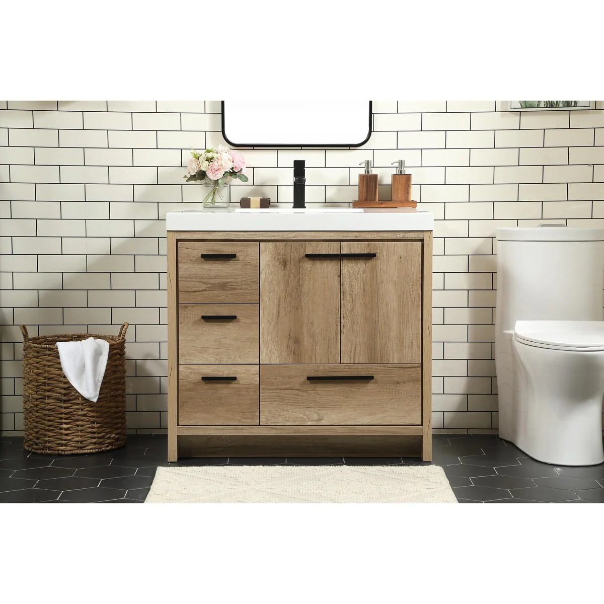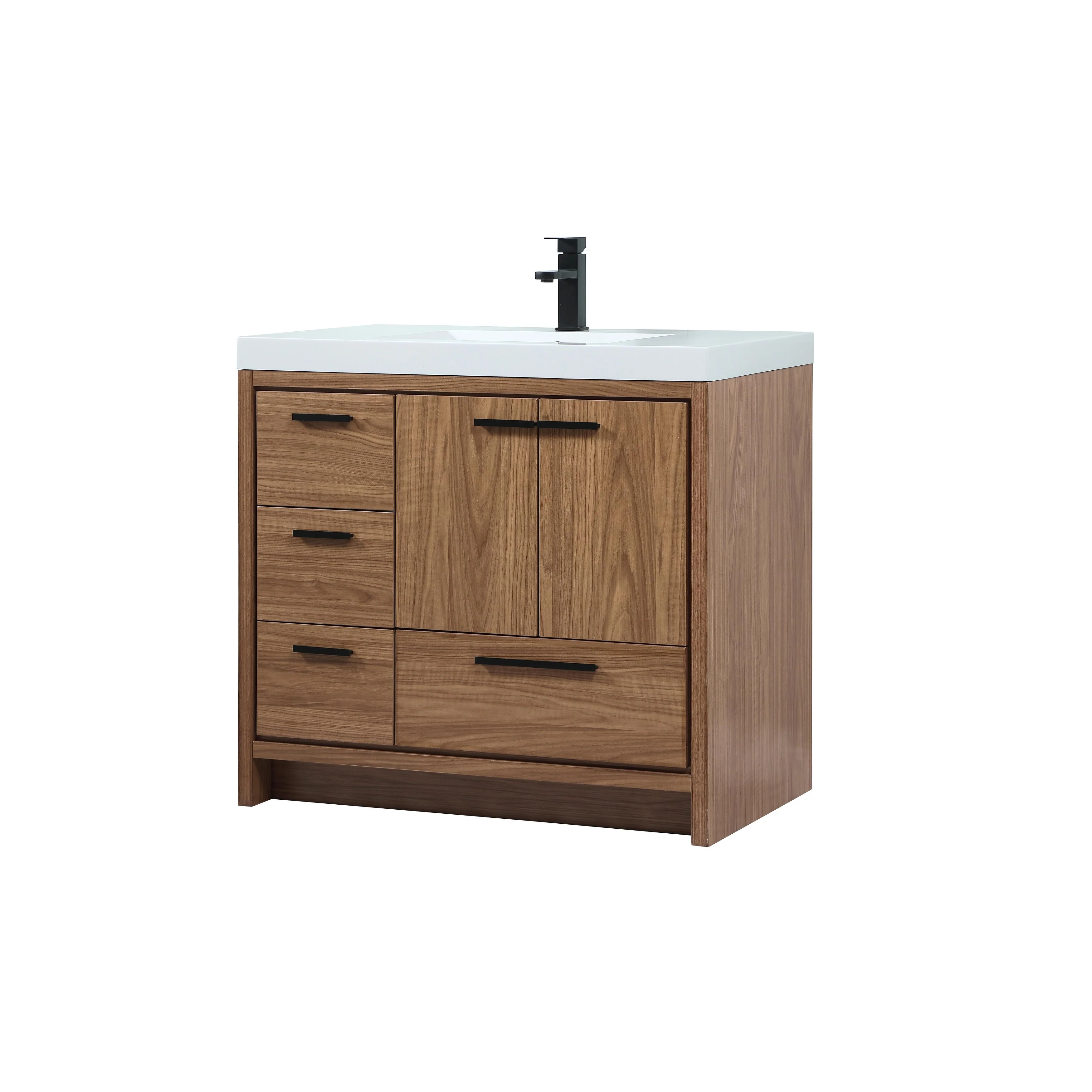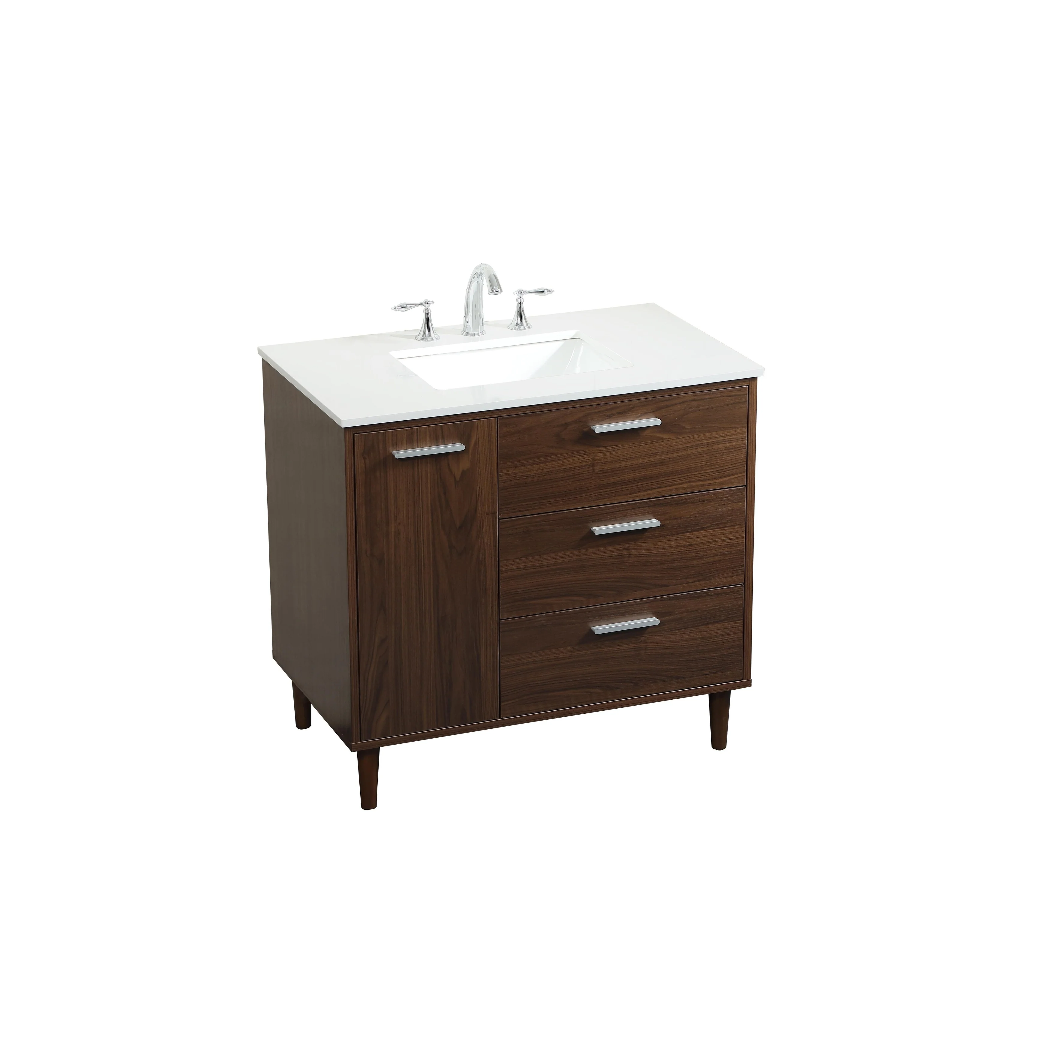 TUHOME Madrid Bathroom Vanity Sink with Metal Handles and Single Door Cabinet