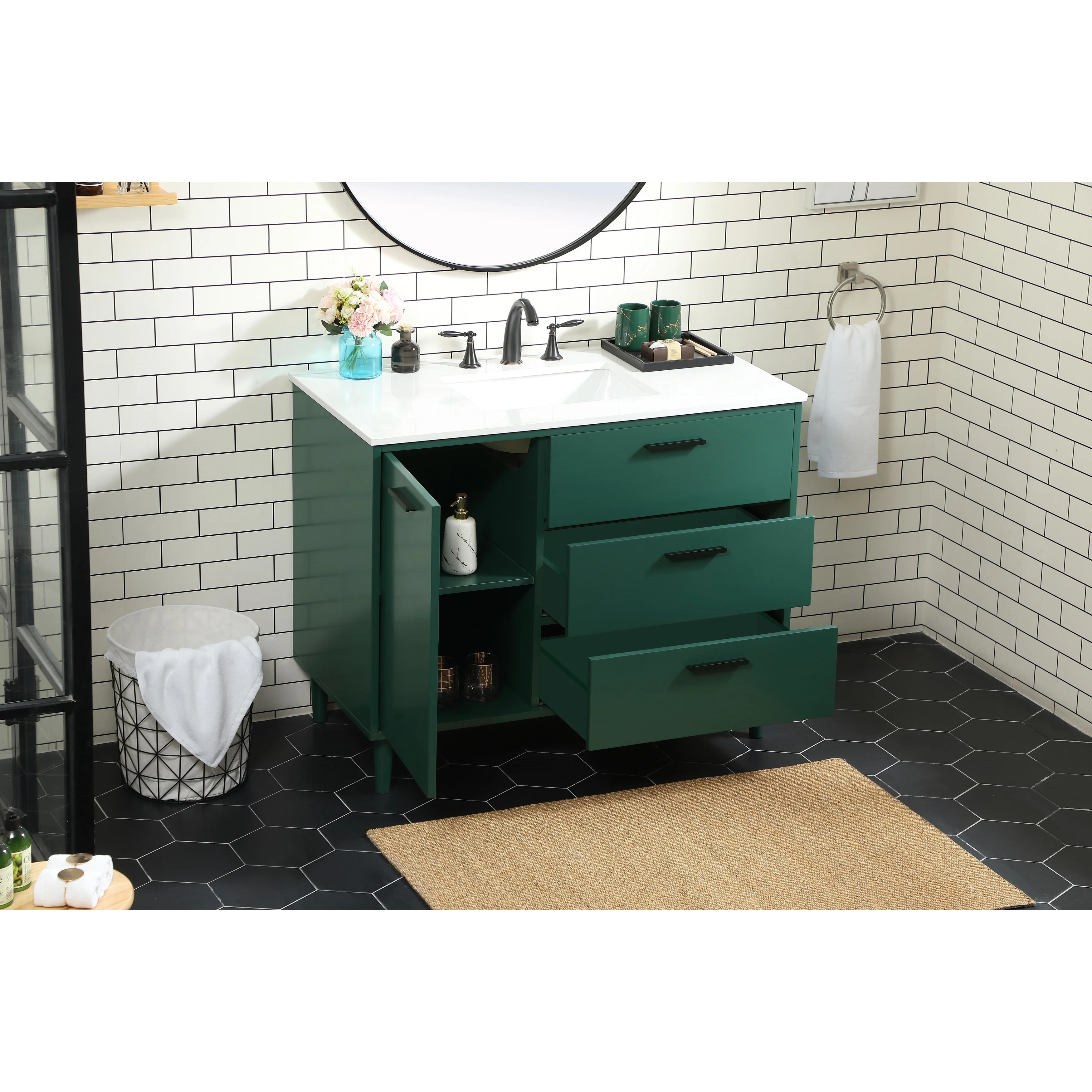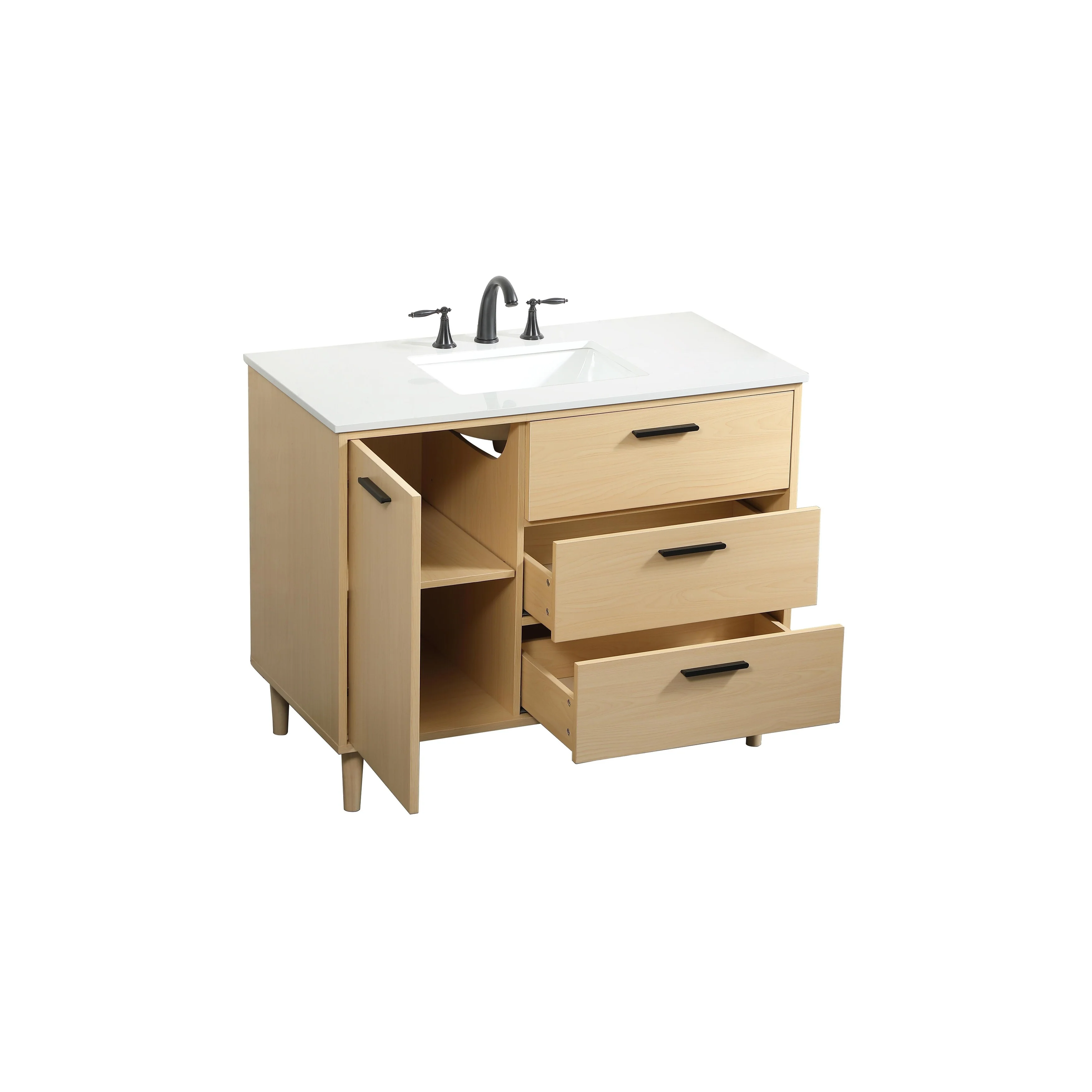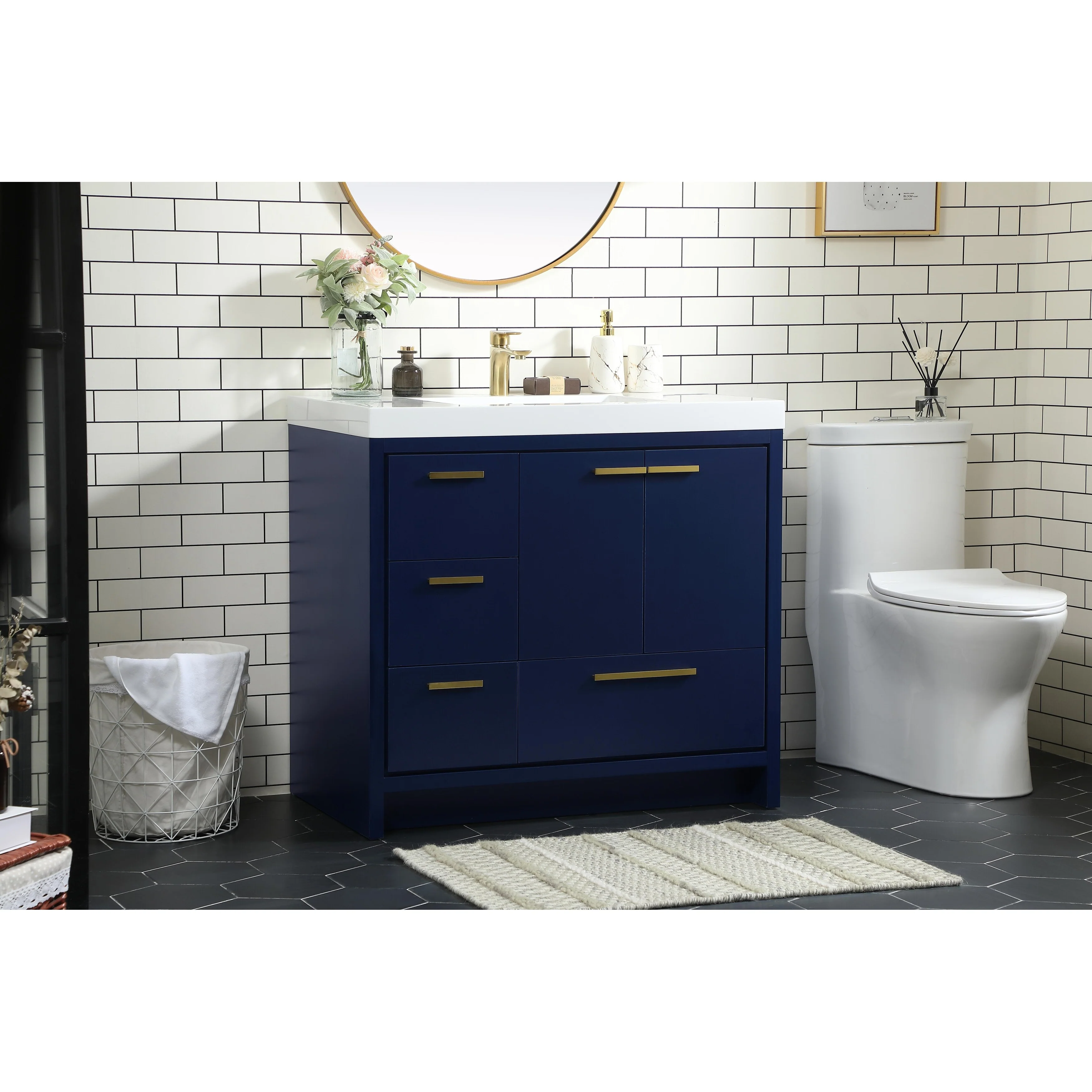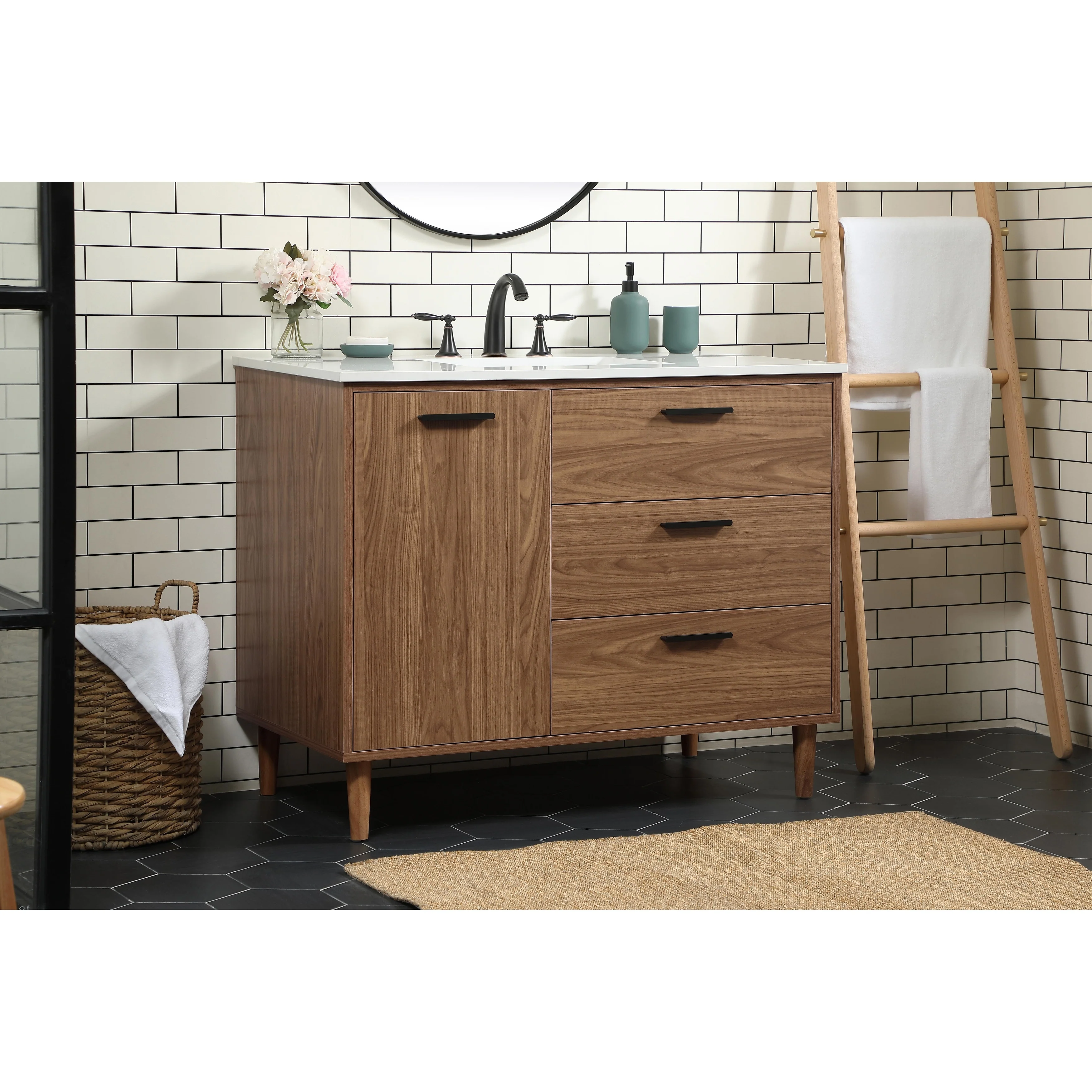 TUHOME Madrid Bathroom Vanity Sink with Metal Handles and Single Door Cabinet