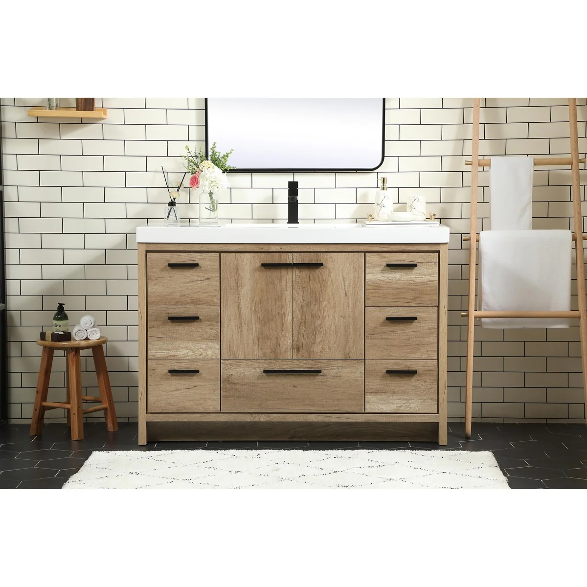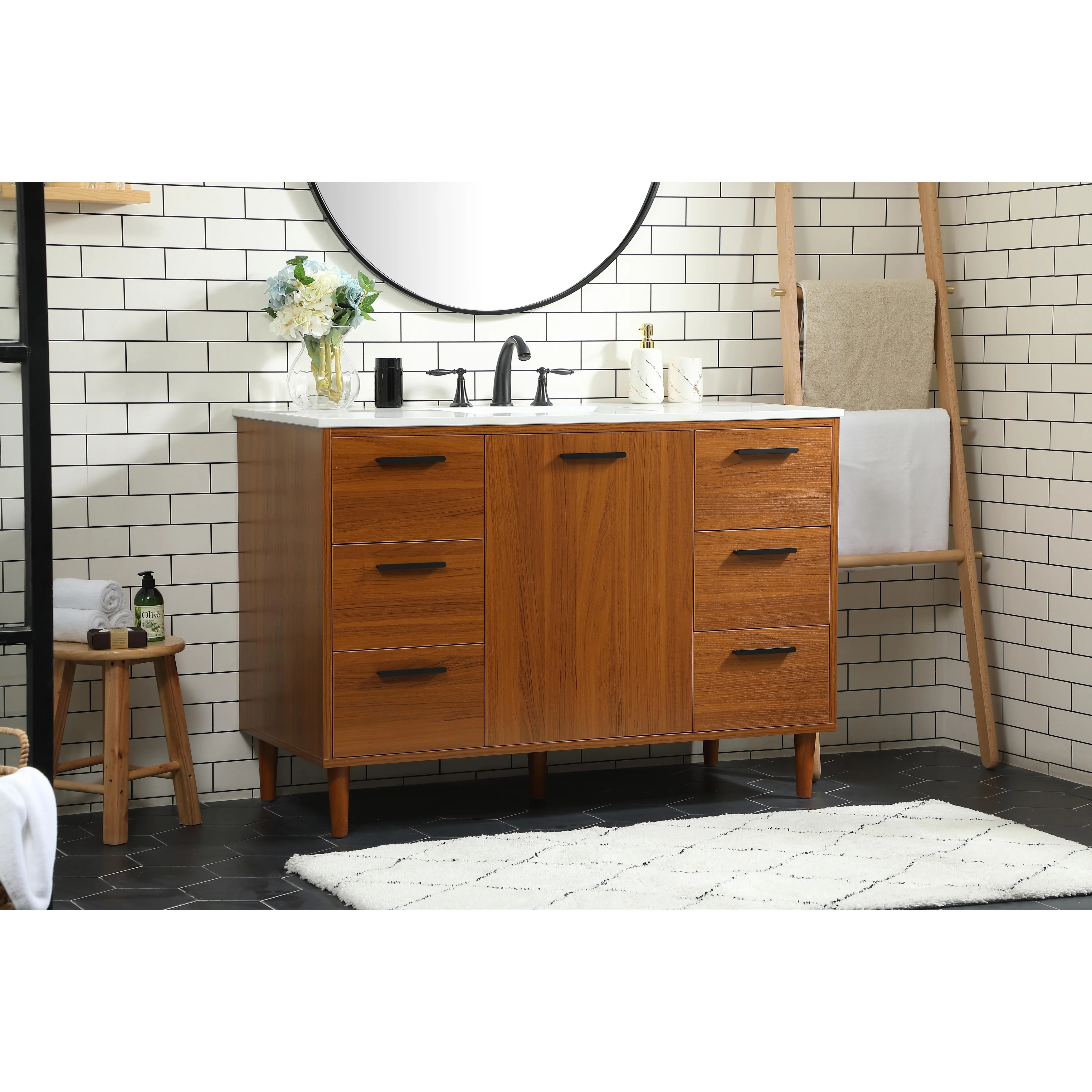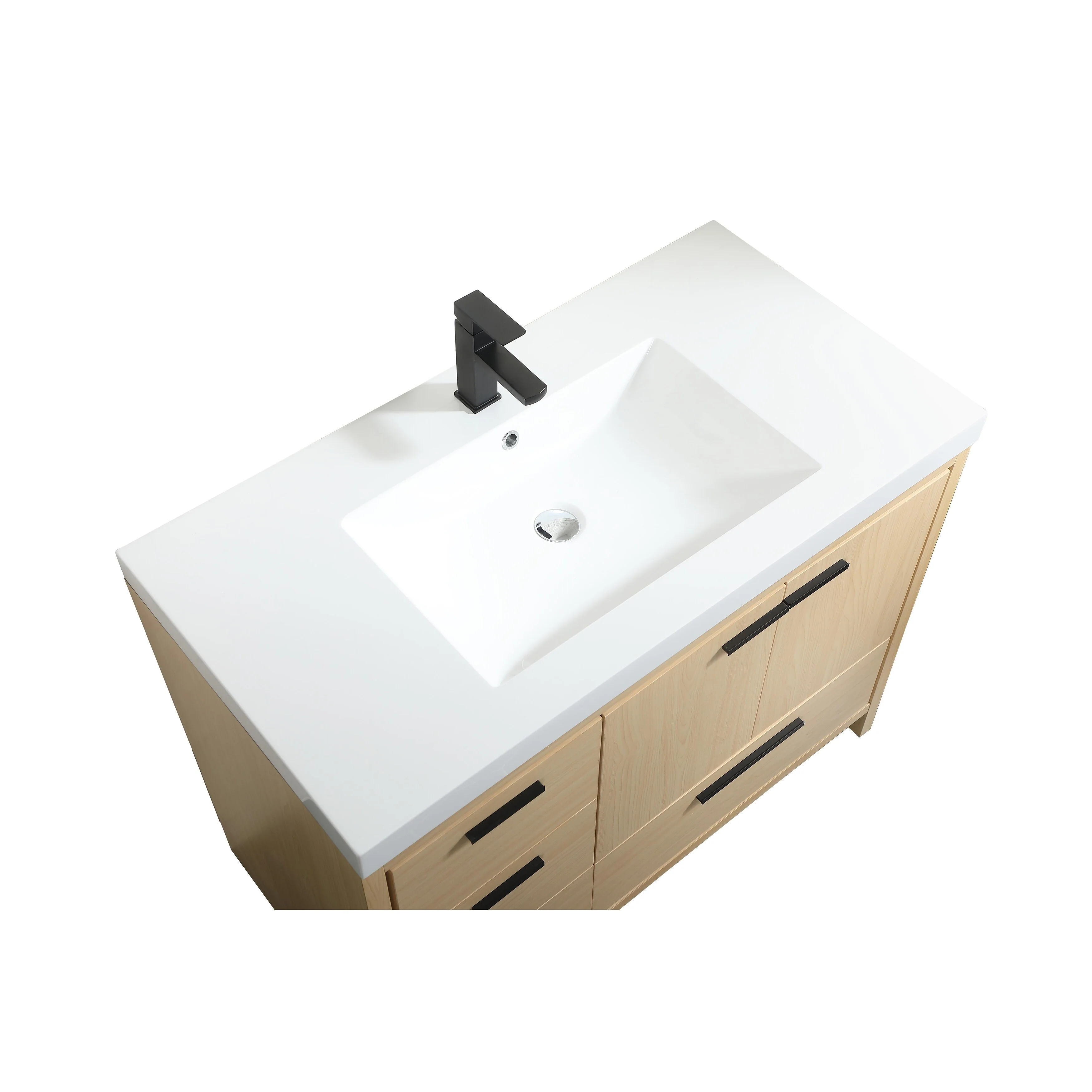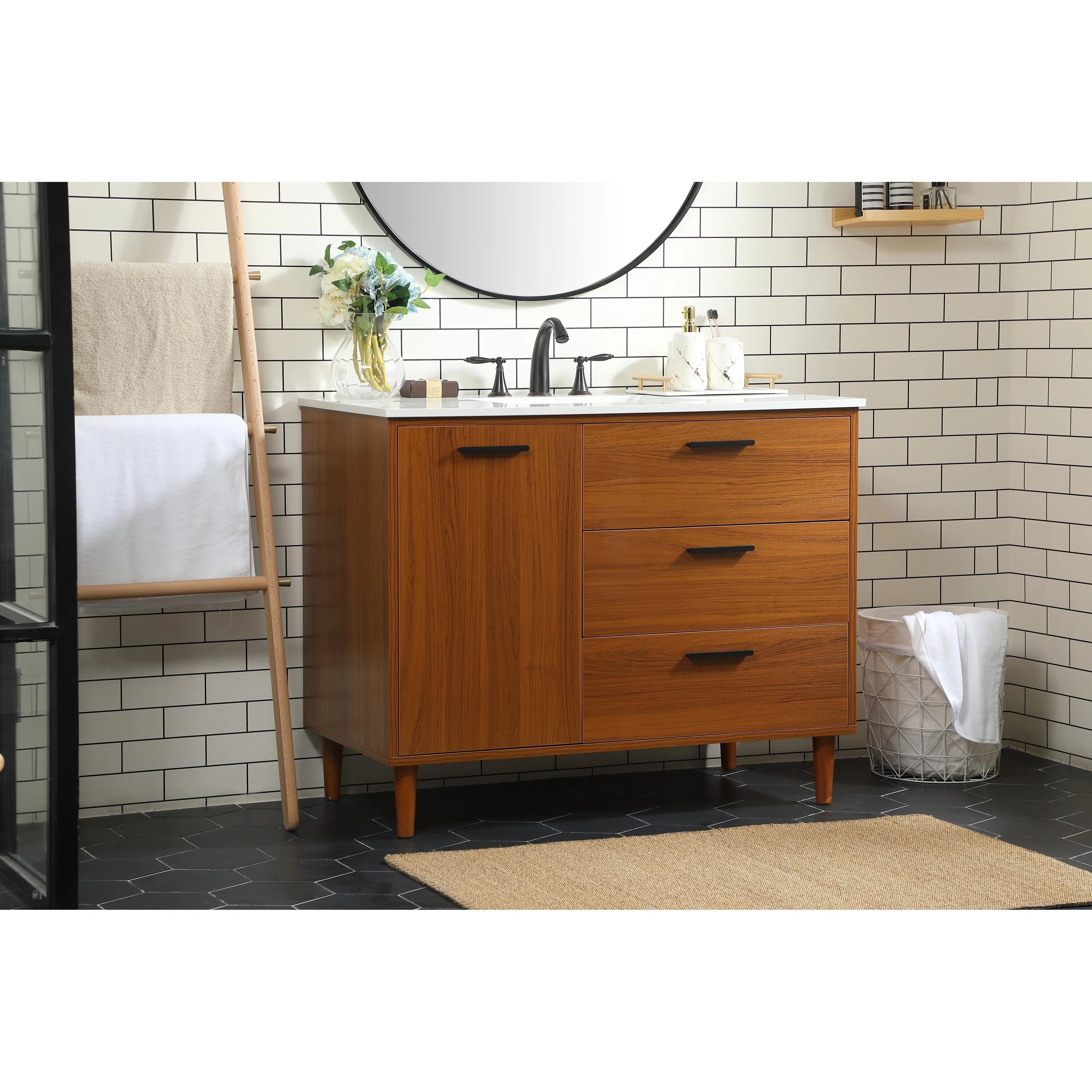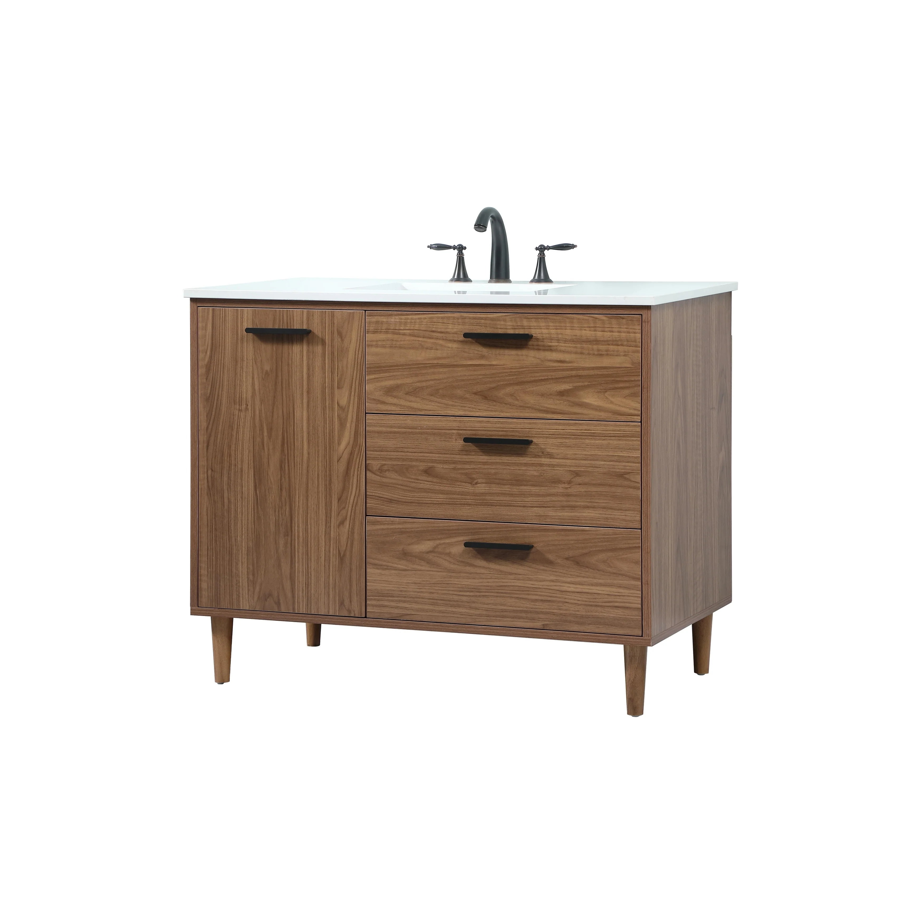 TUHOME Madrid Bathroom Vanity Sink with Metal Handles and Single Door Cabinet