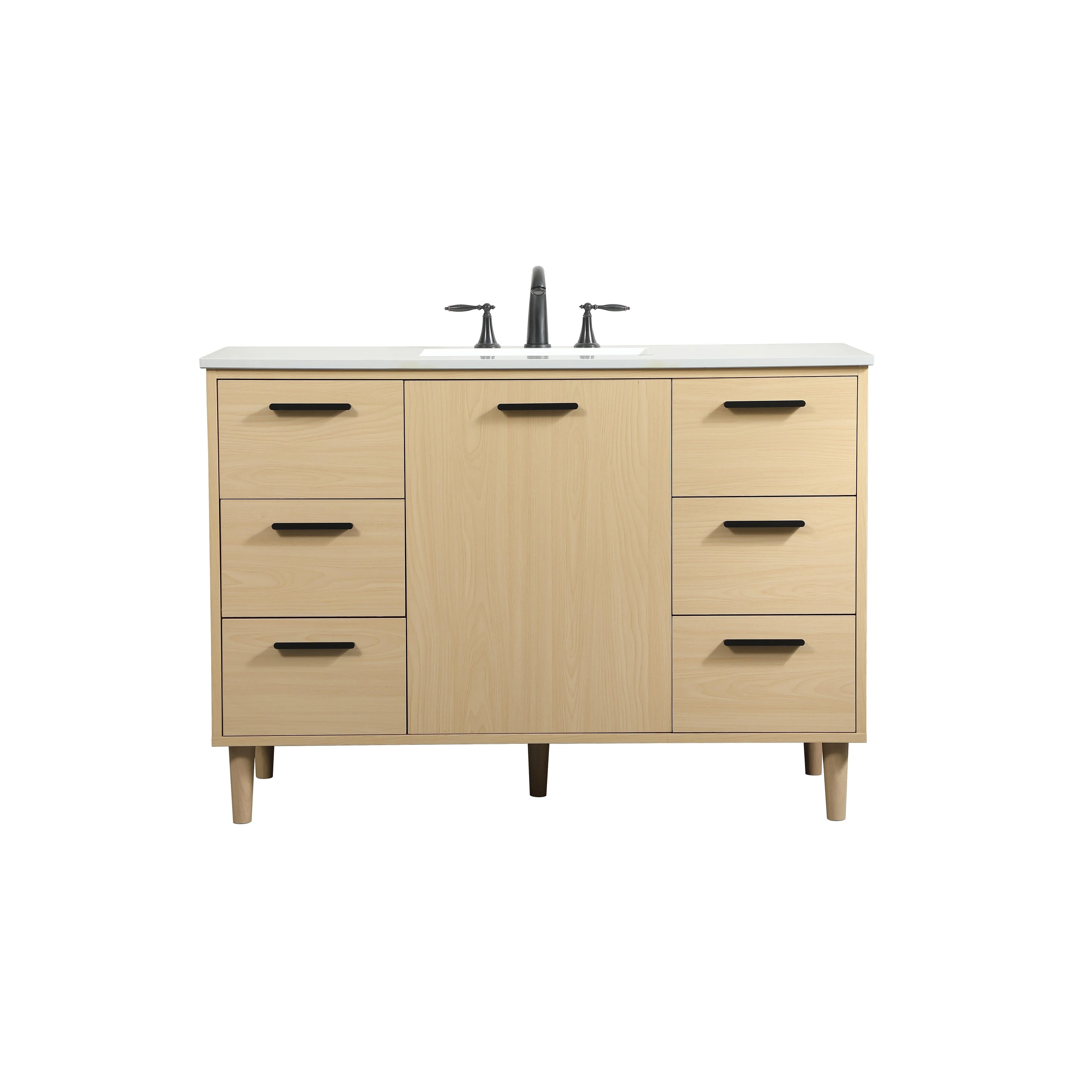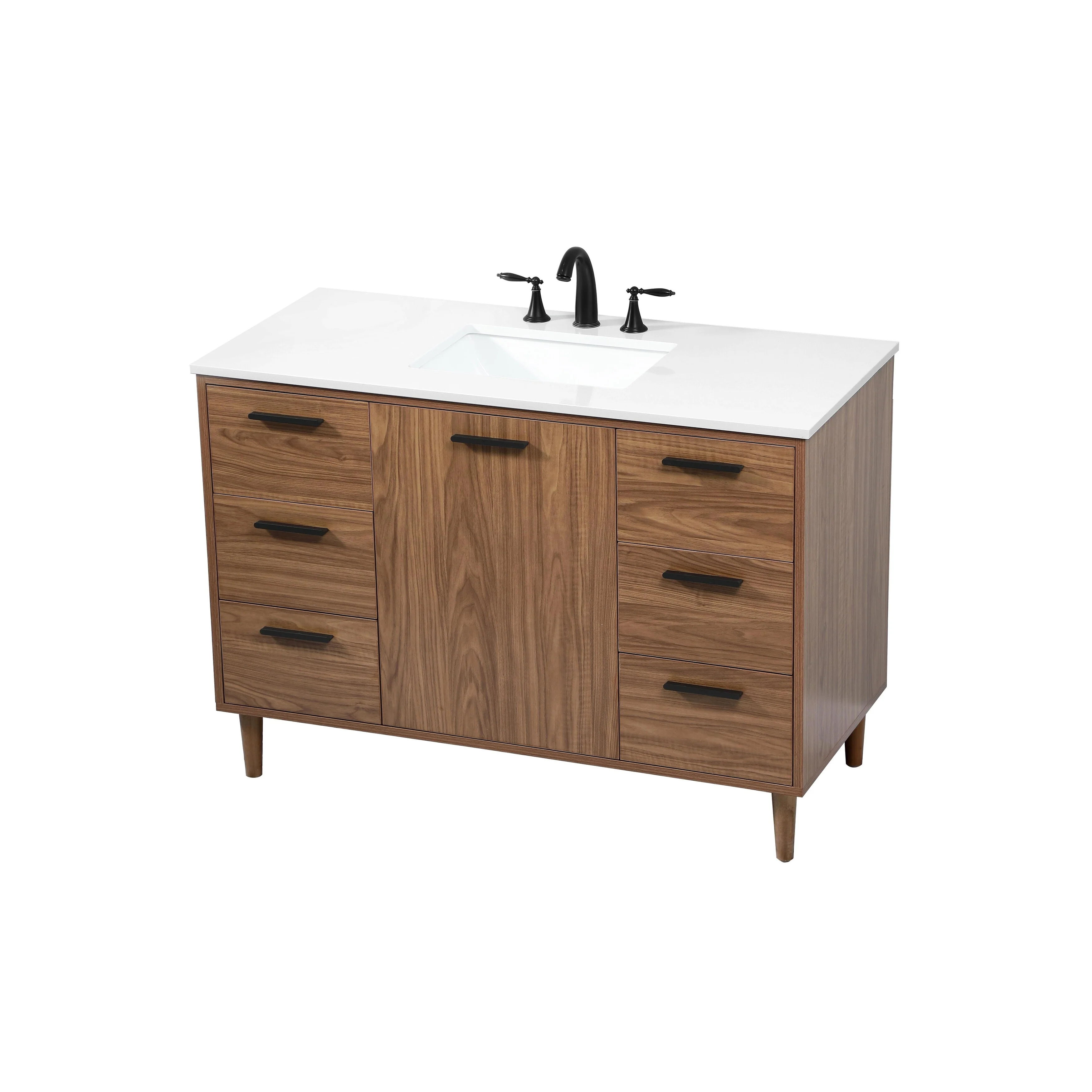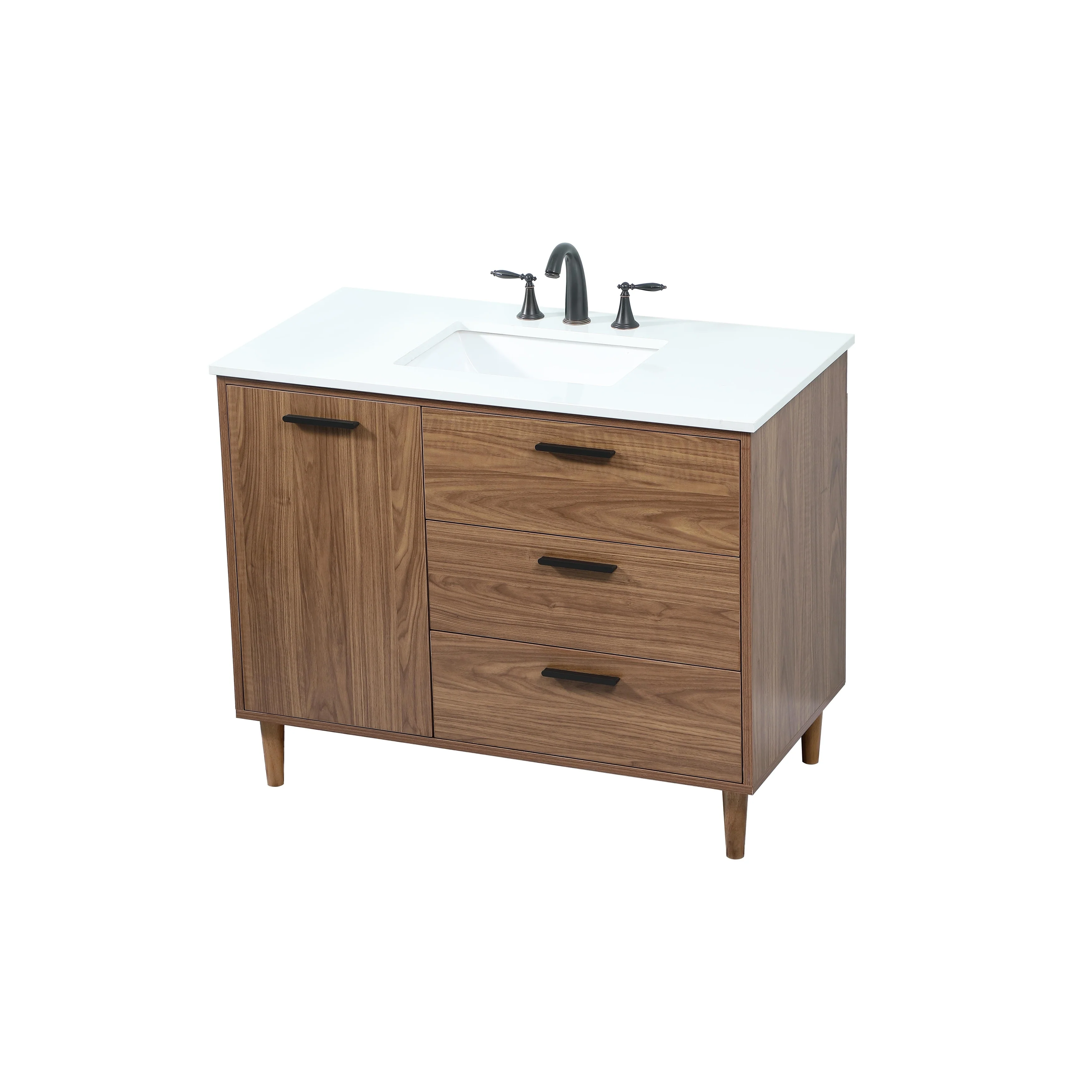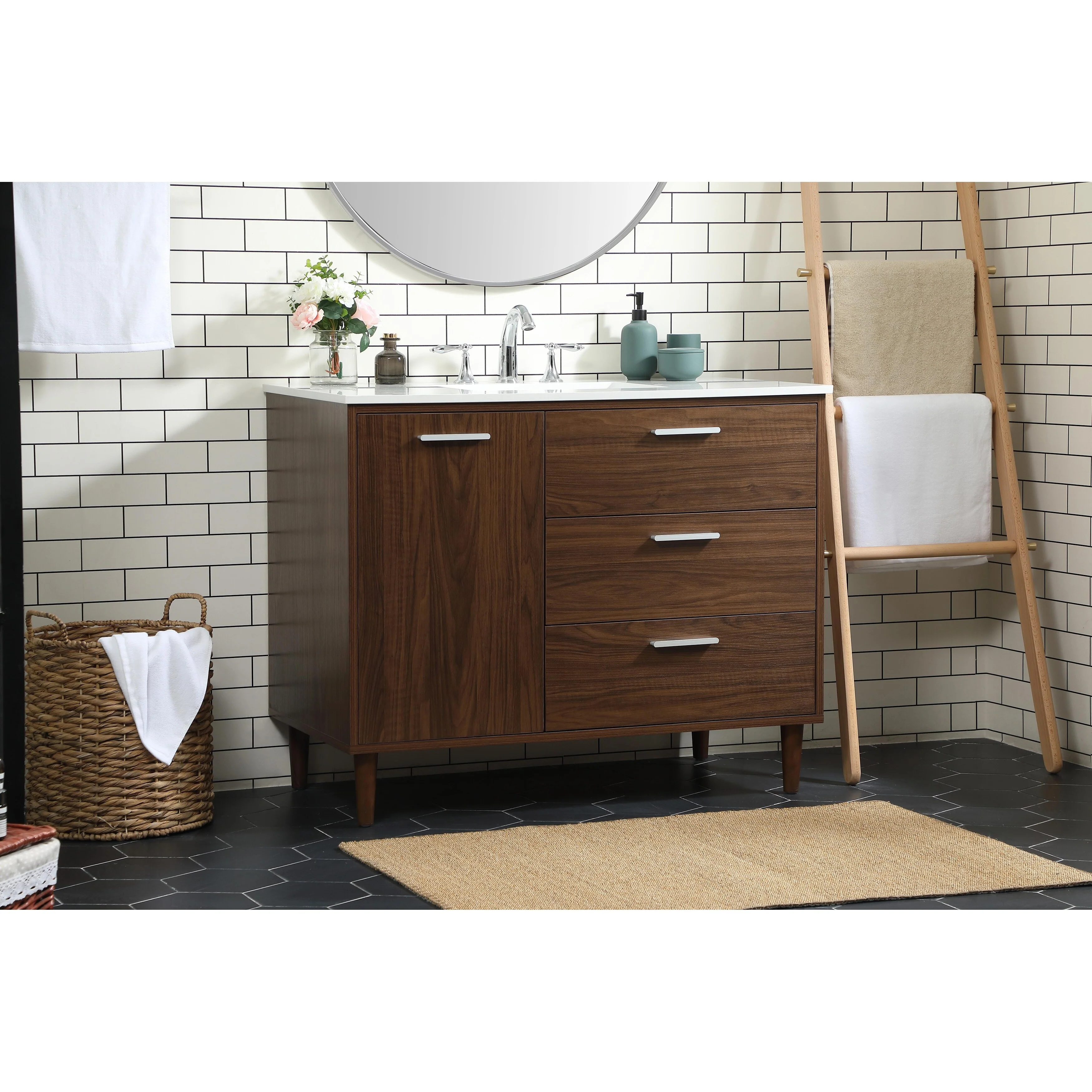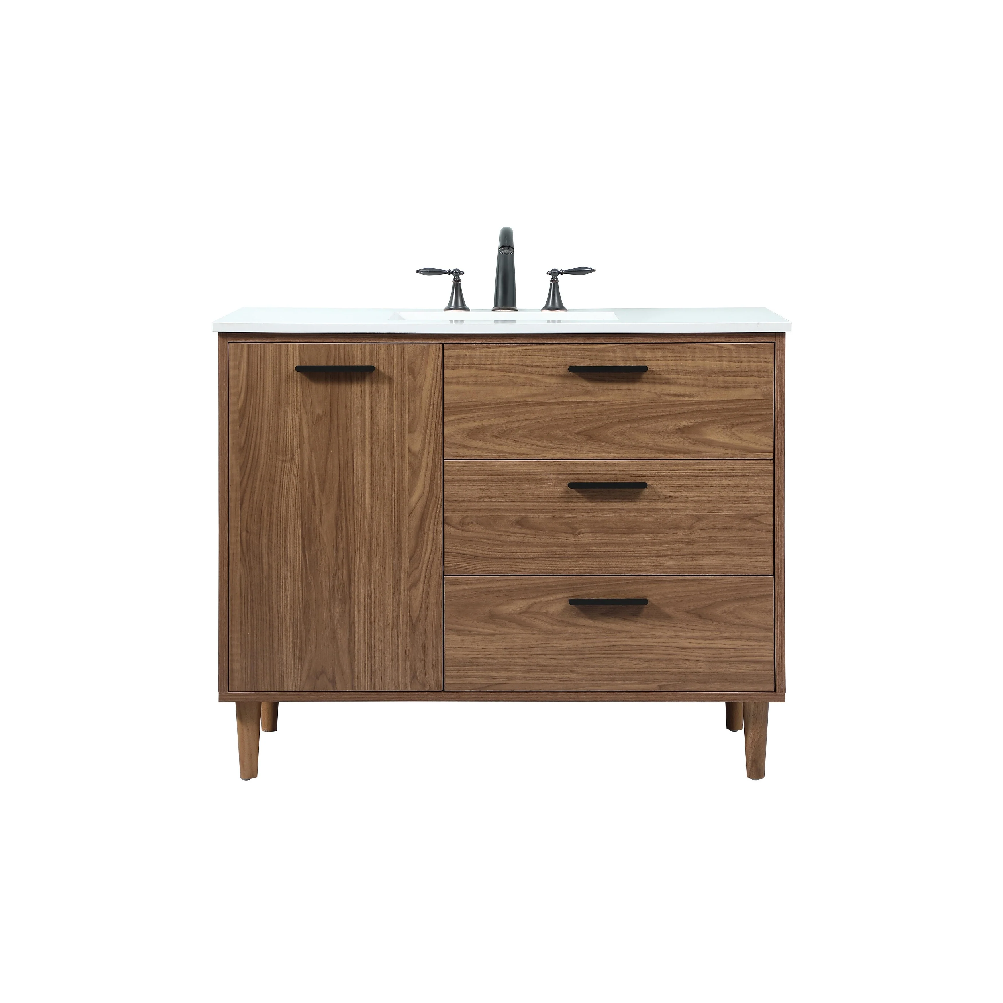 TUHOME Madrid Bathroom Vanity Sink with Metal Handles and Single Door Cabinet