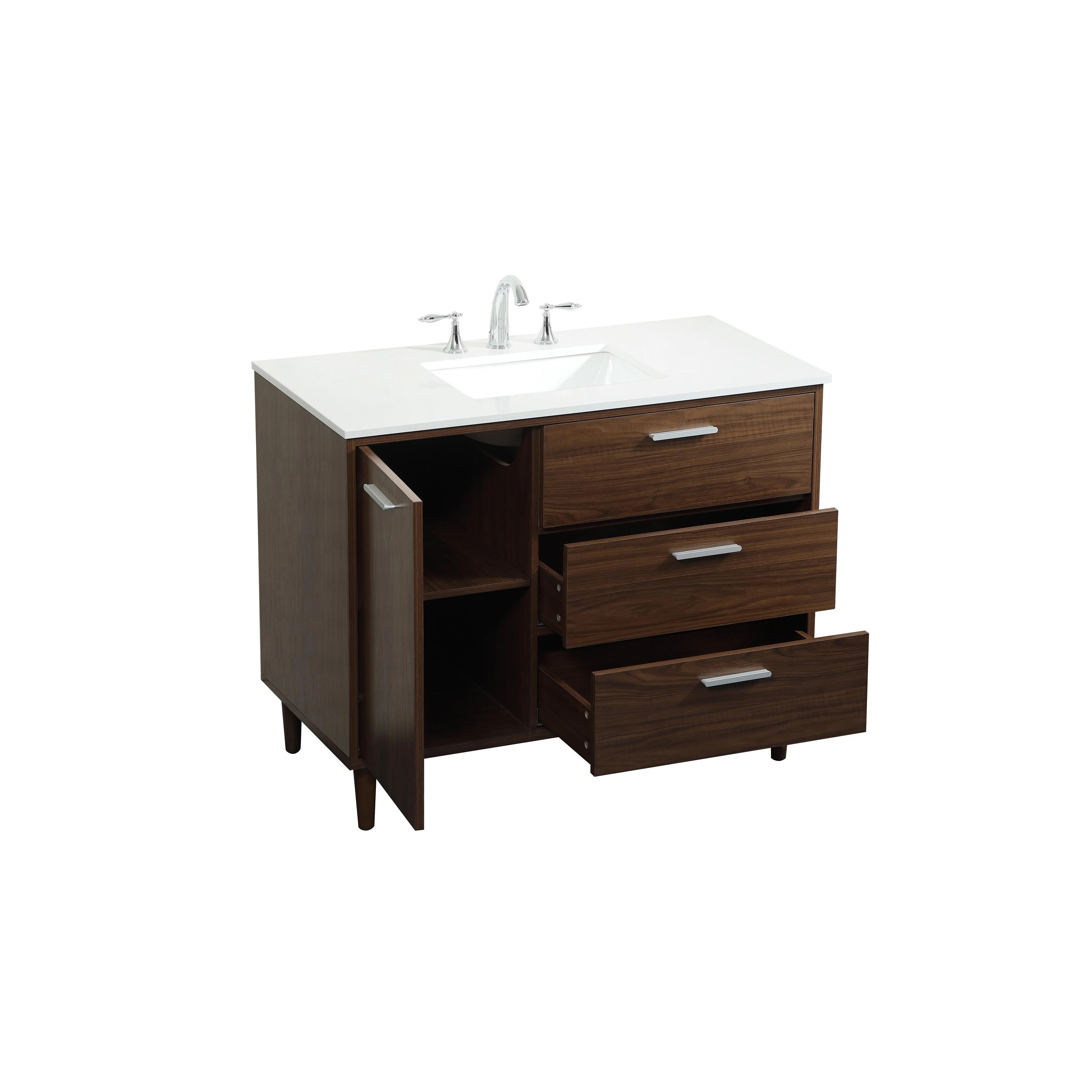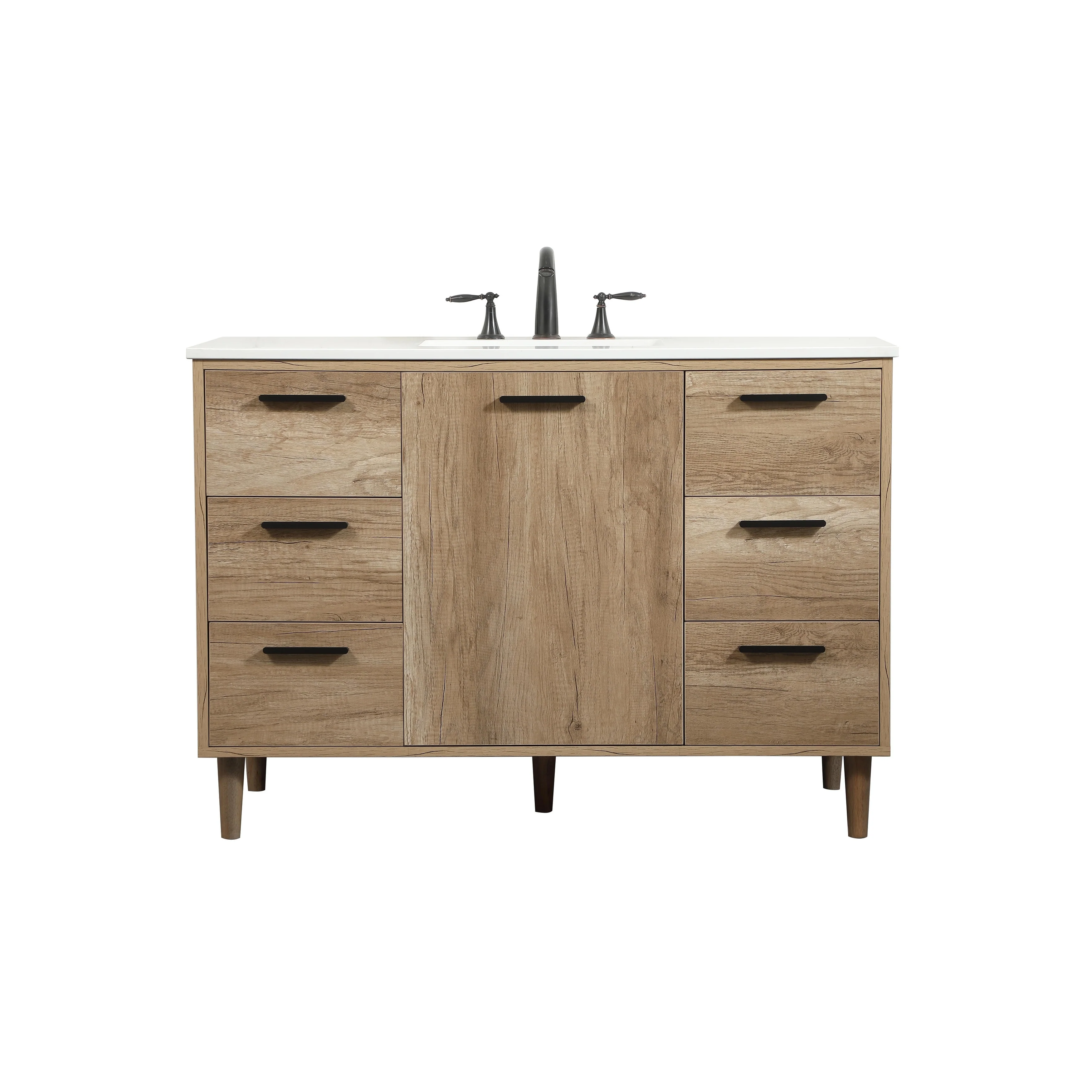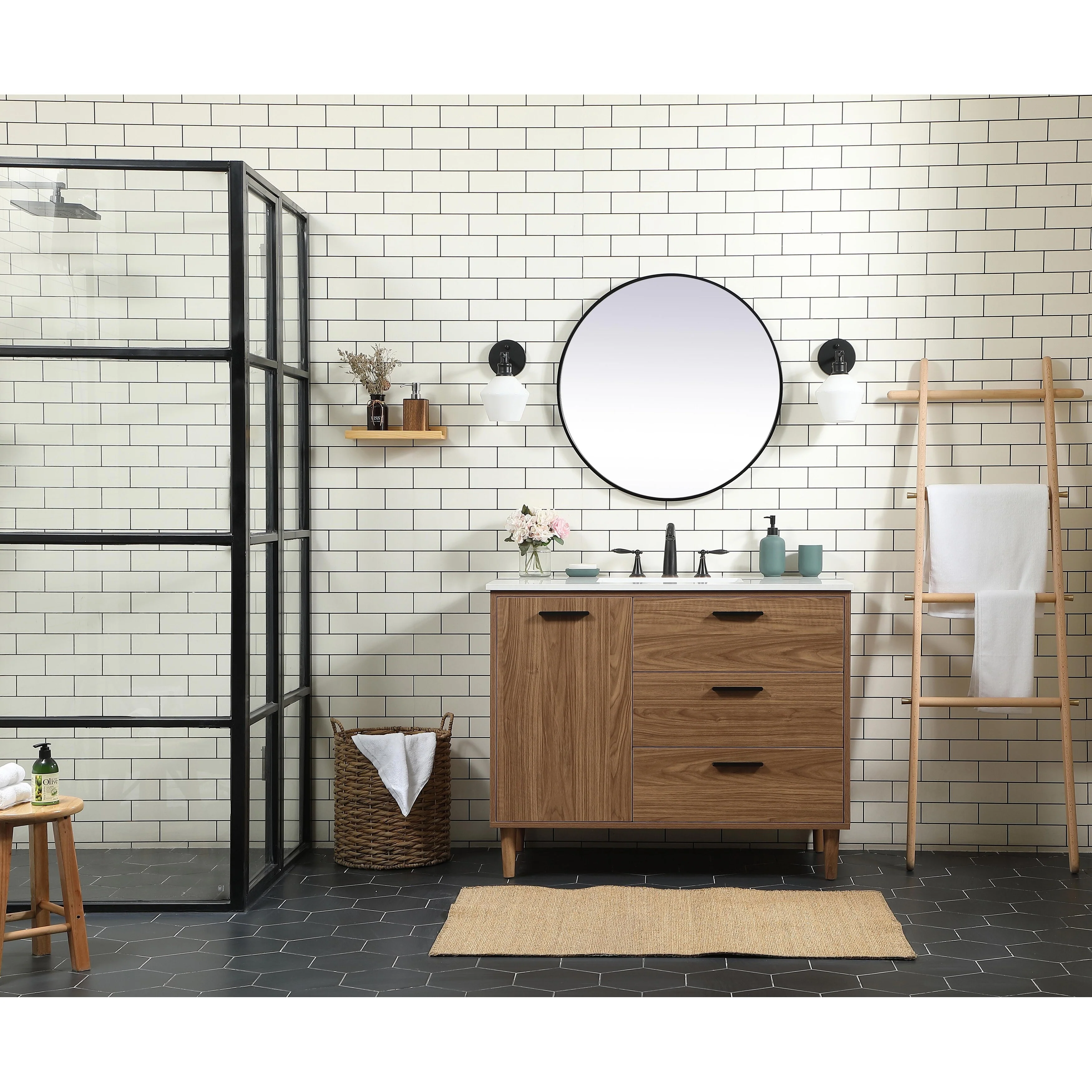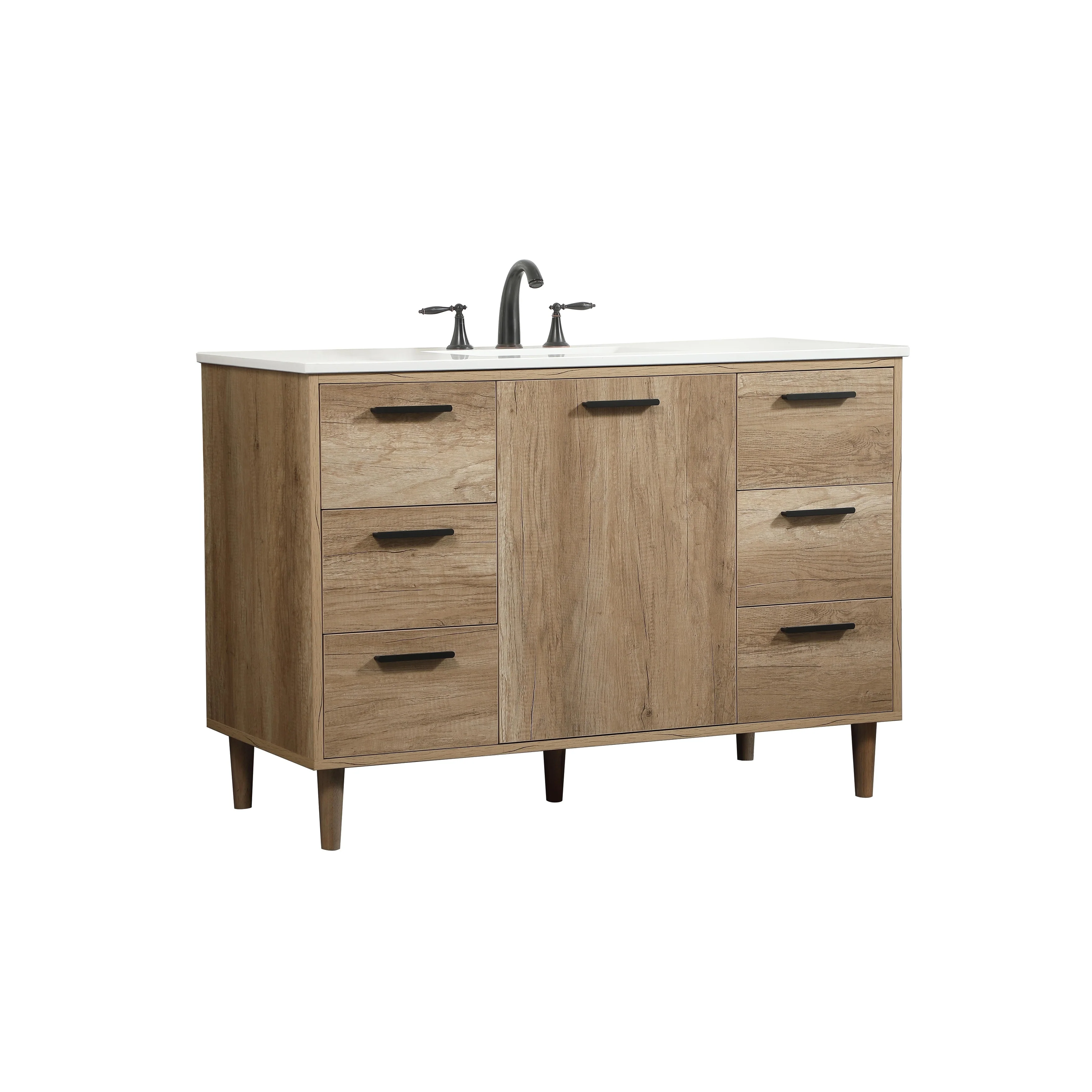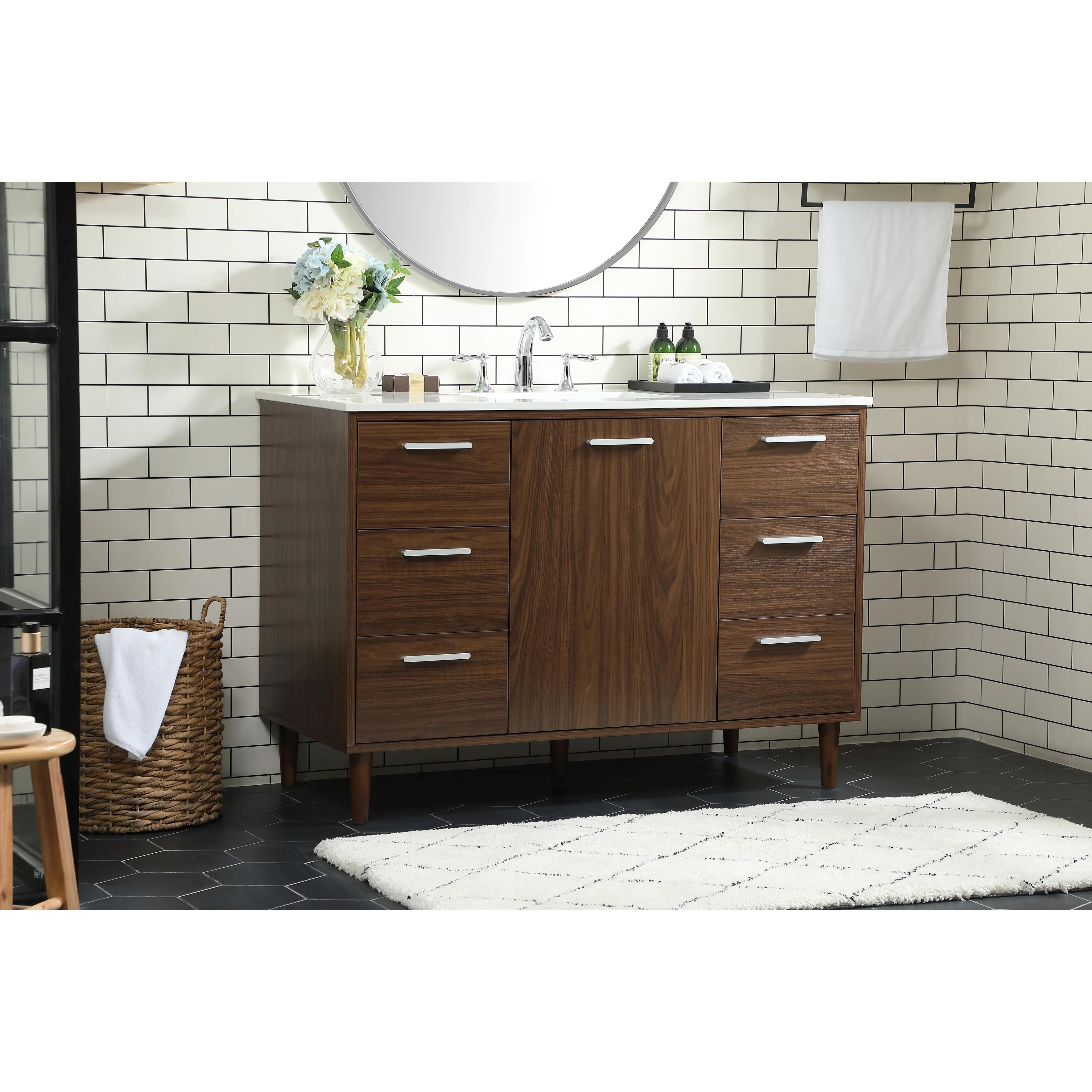 TUHOME Madrid Bathroom Vanity Sink with Metal Handles and Single Door Cabinet