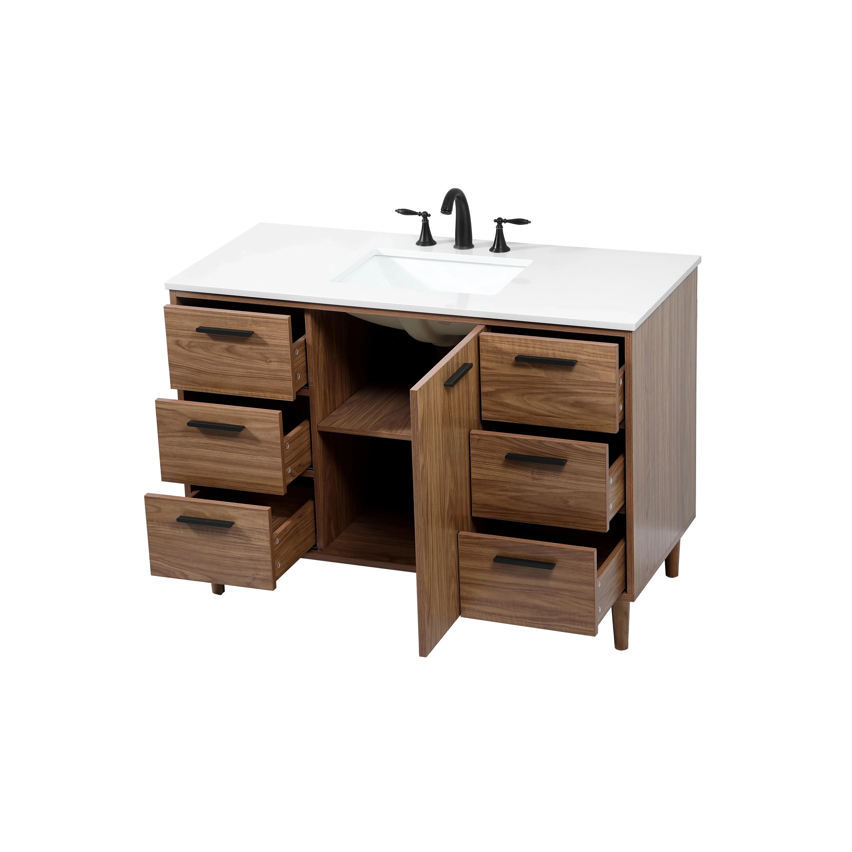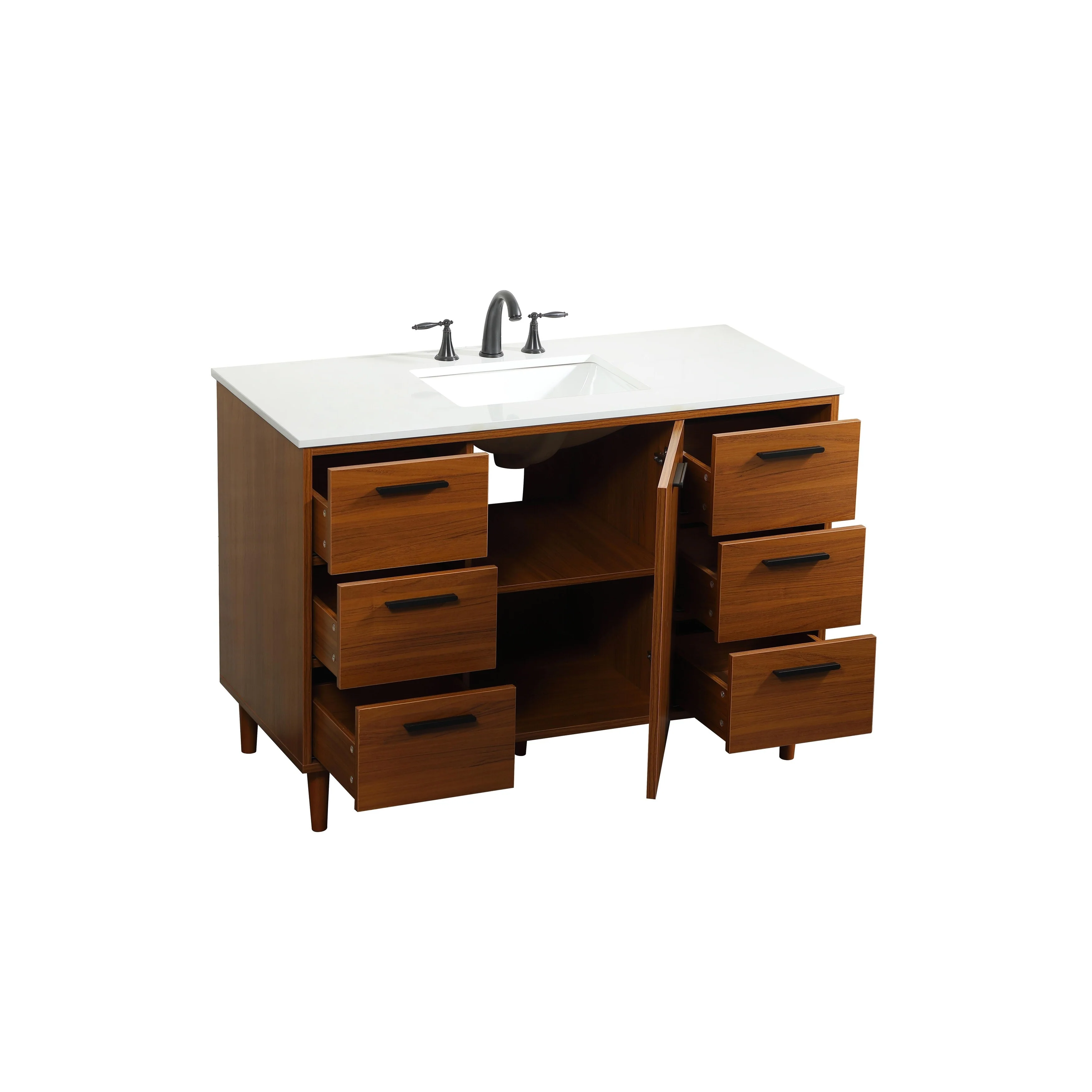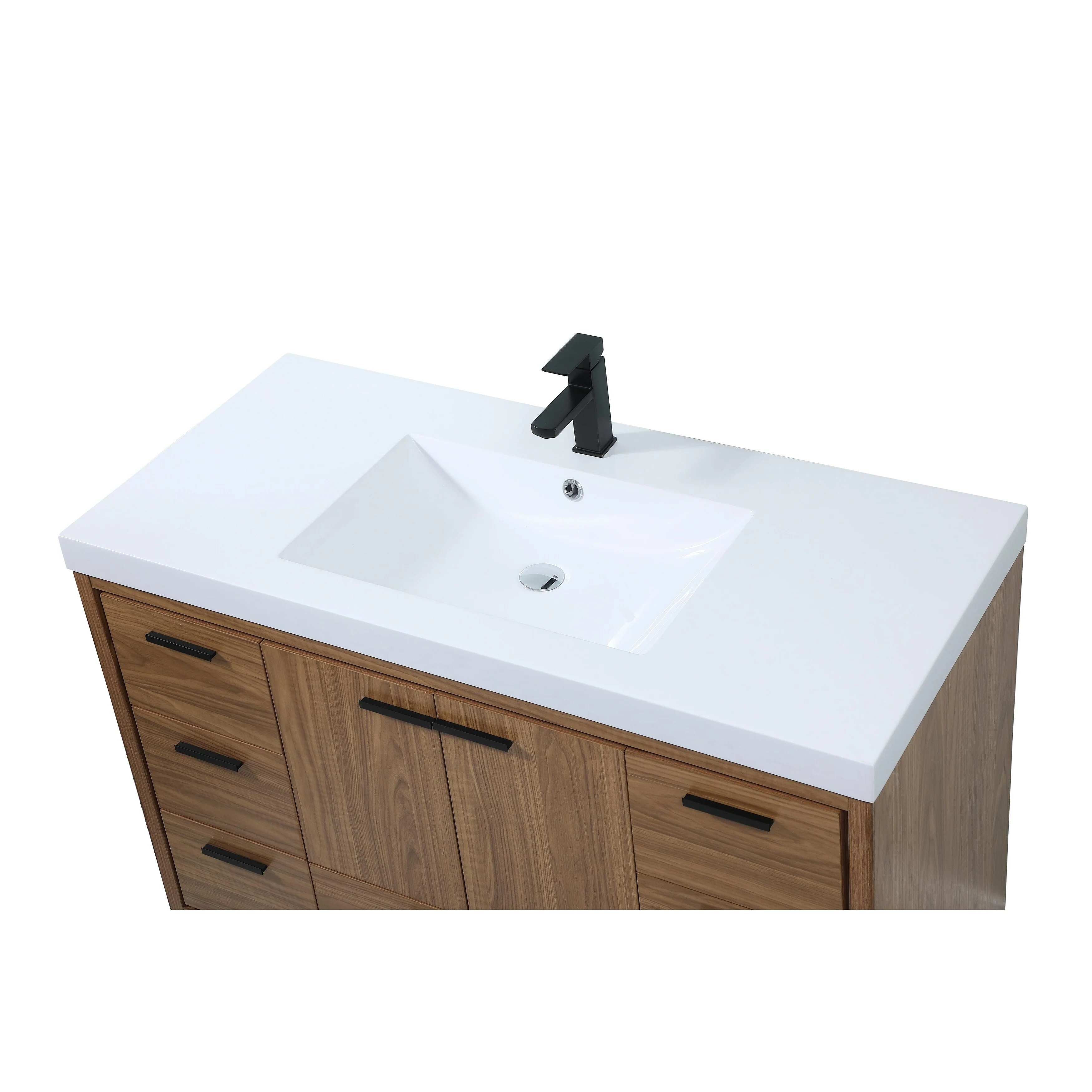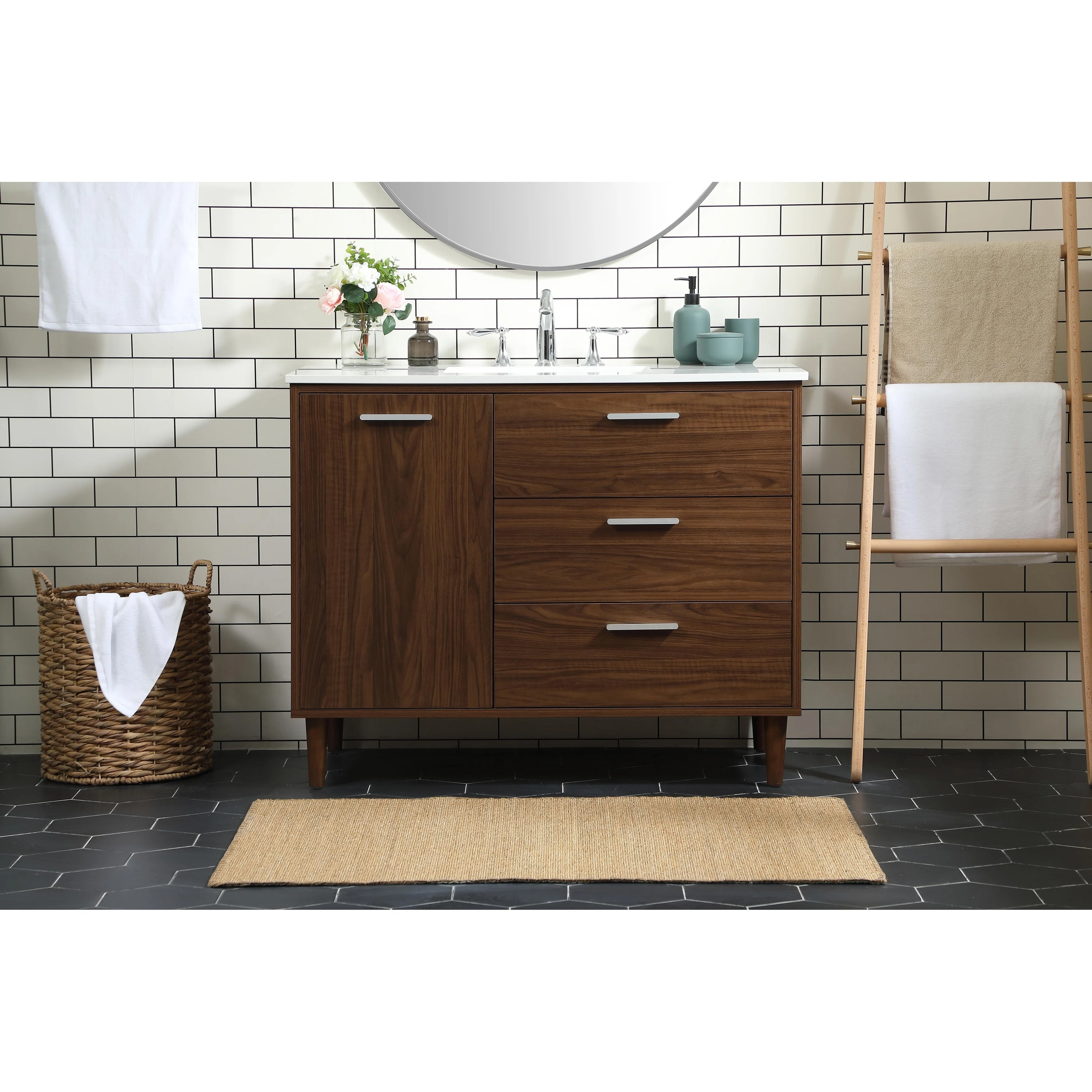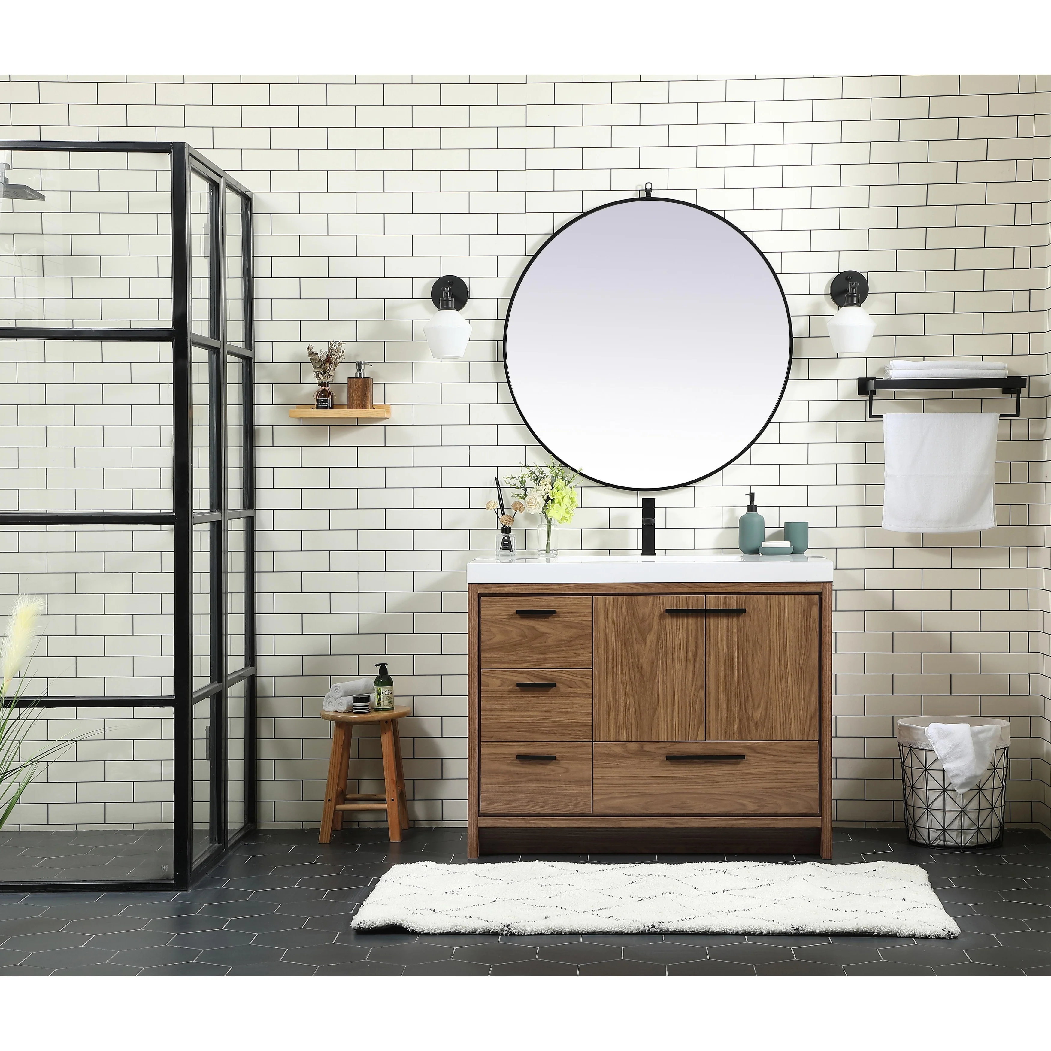 TUHOME Madrid Bathroom Vanity Sink with Metal Handles and Single Door Cabinet
