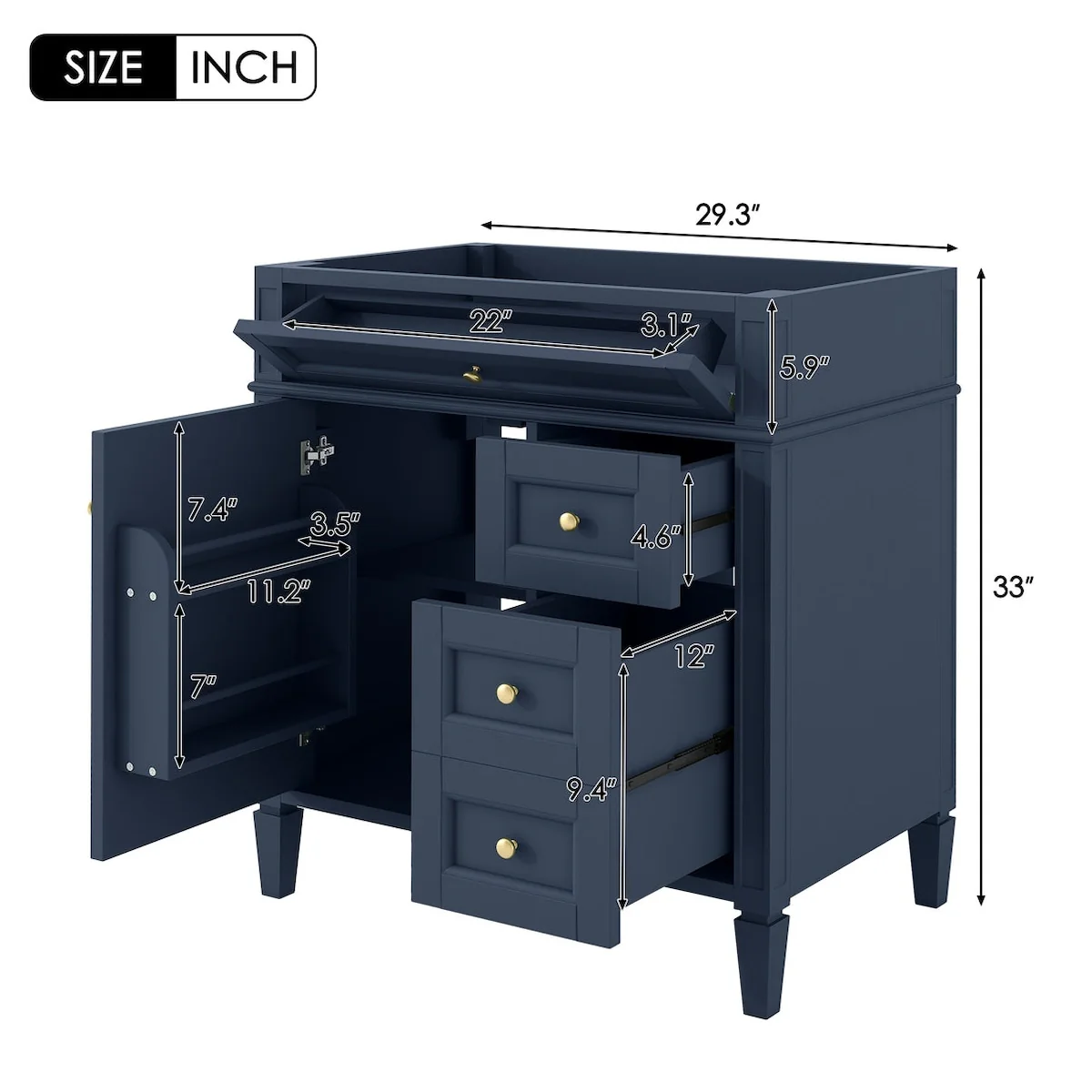 30 inch MDF Freestanding Bathroom Vanity in Blue without Counter Top - 30'' x 18'' x 33''