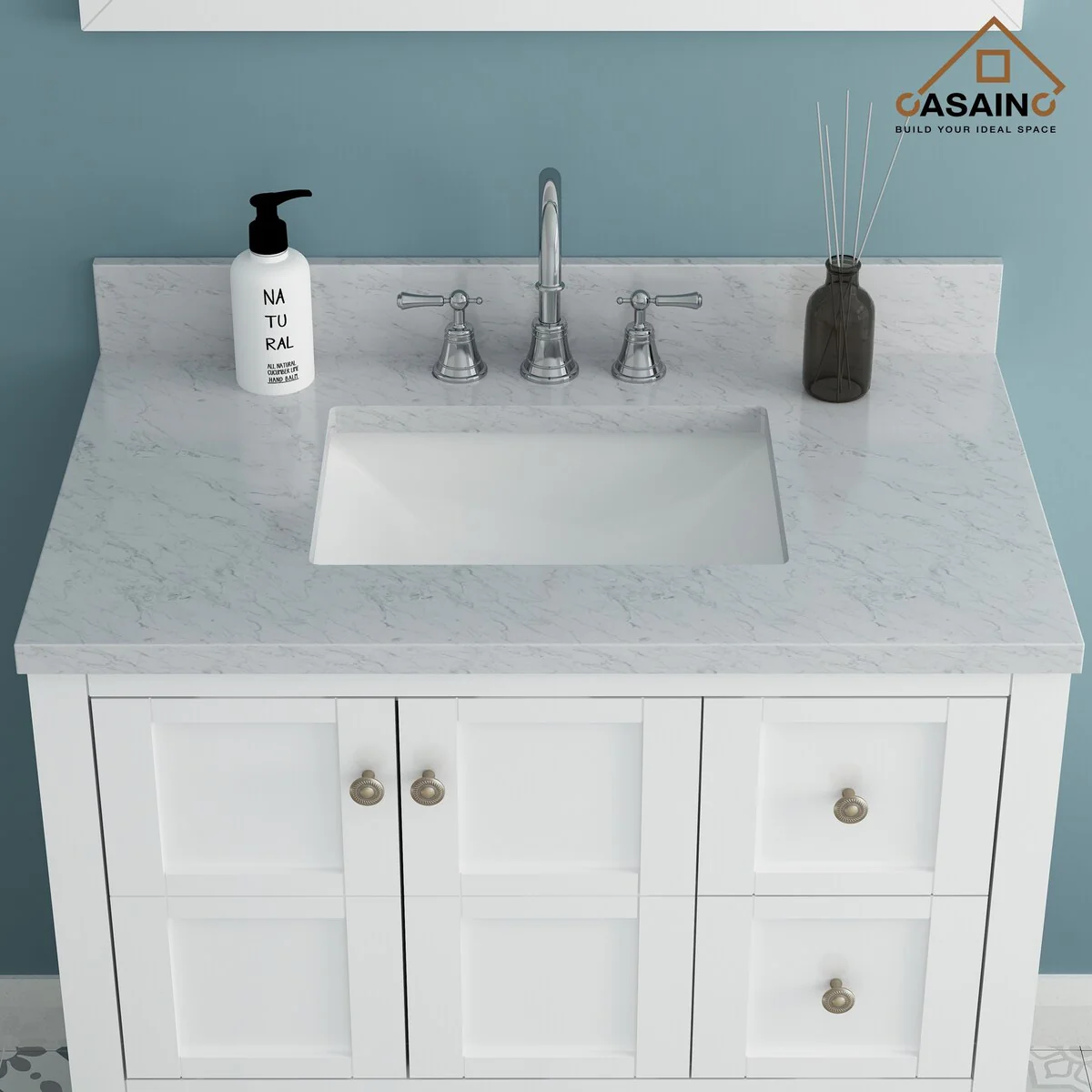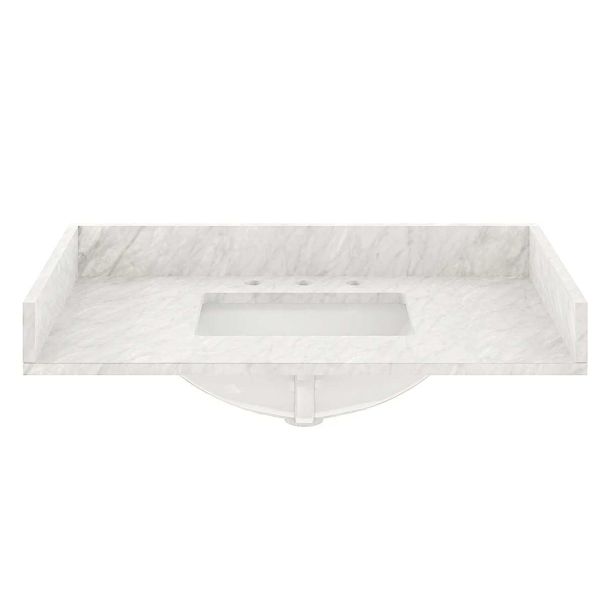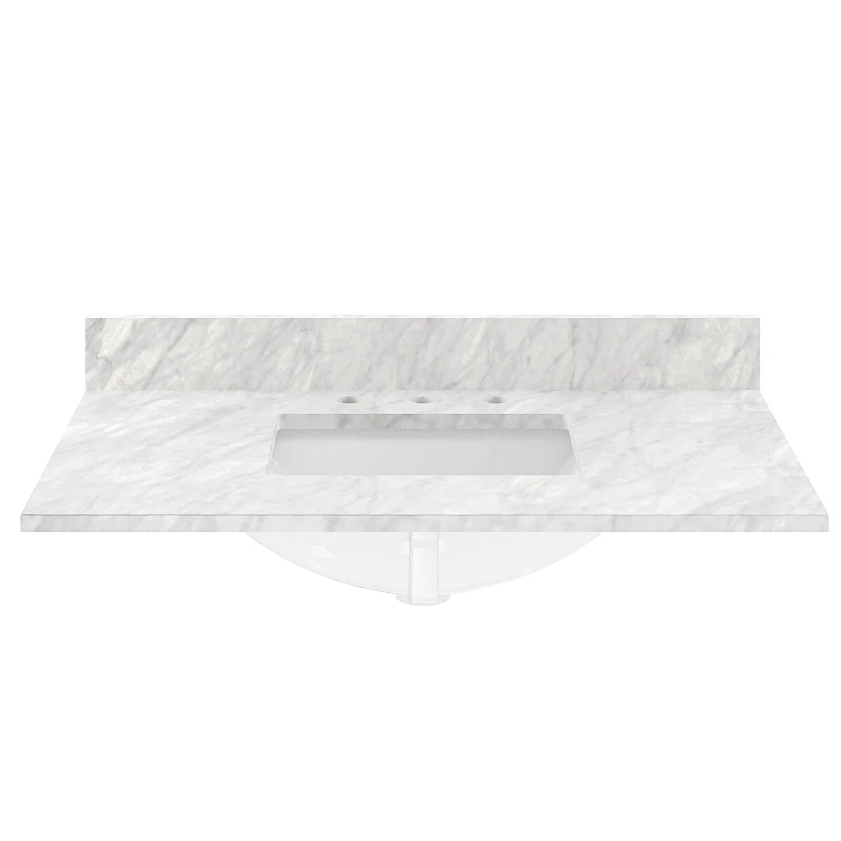 37 in White Italian Carrara Natural Marble Single Sink Bathroom Vanity Top