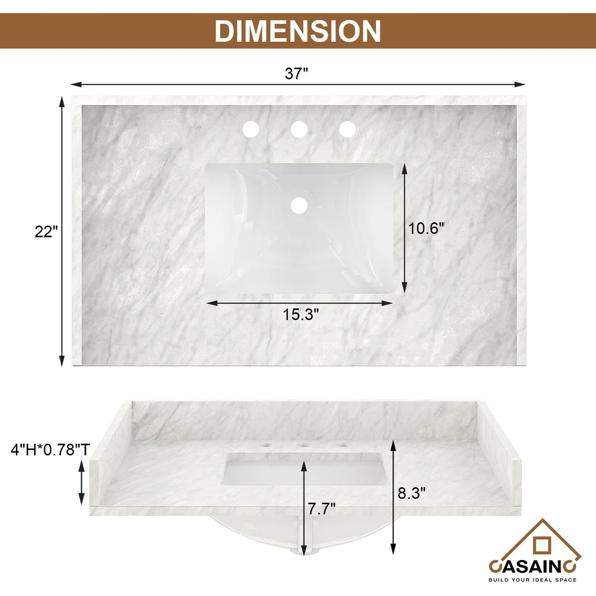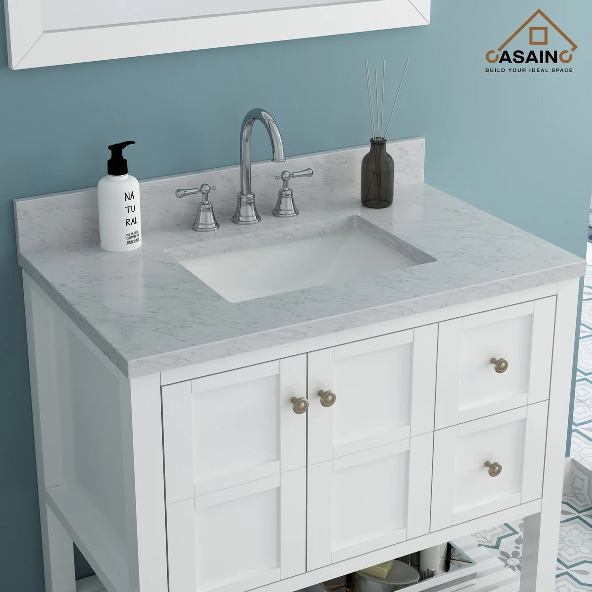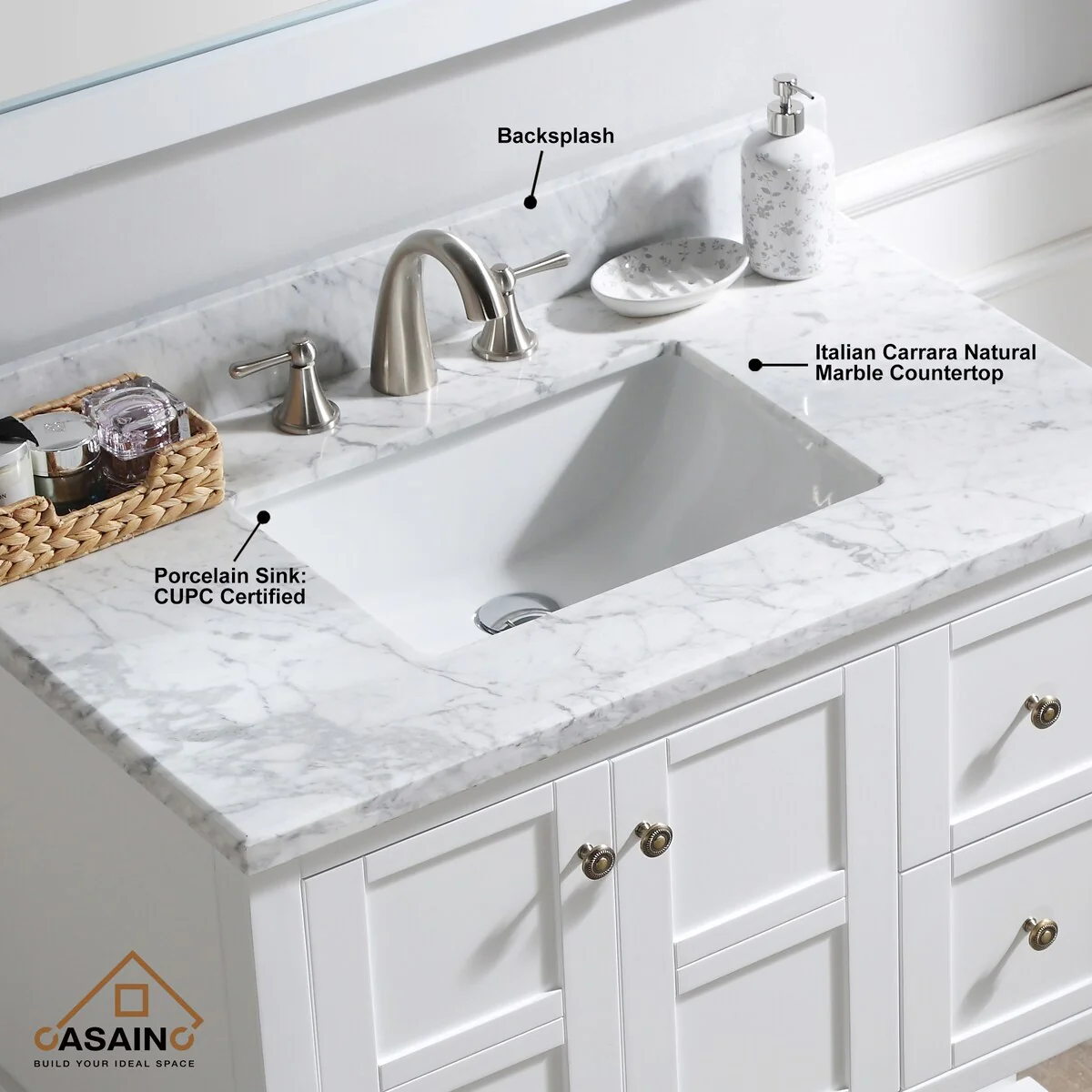 37 in White Italian Carrara Natural Marble Single Sink Bathroom Vanity Top