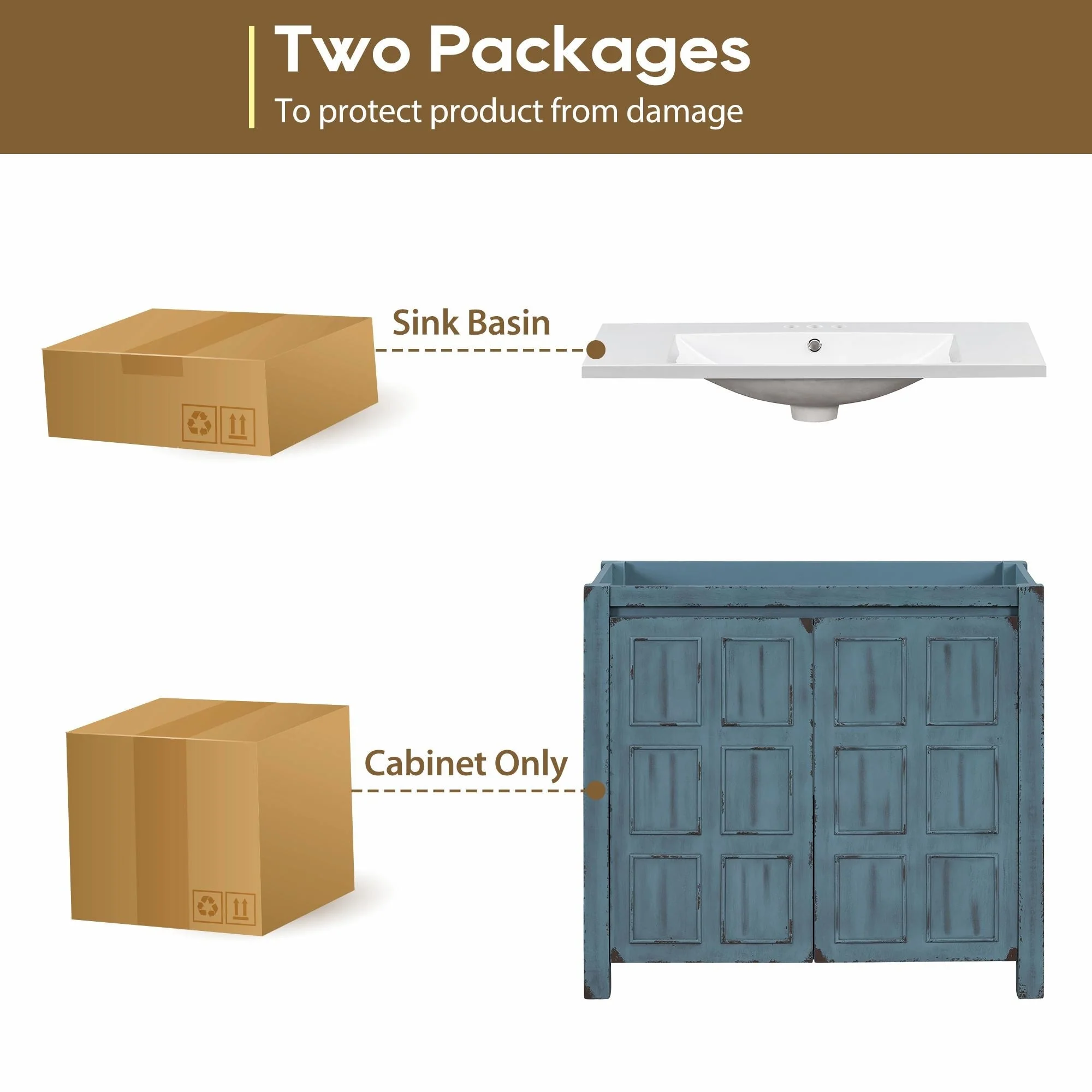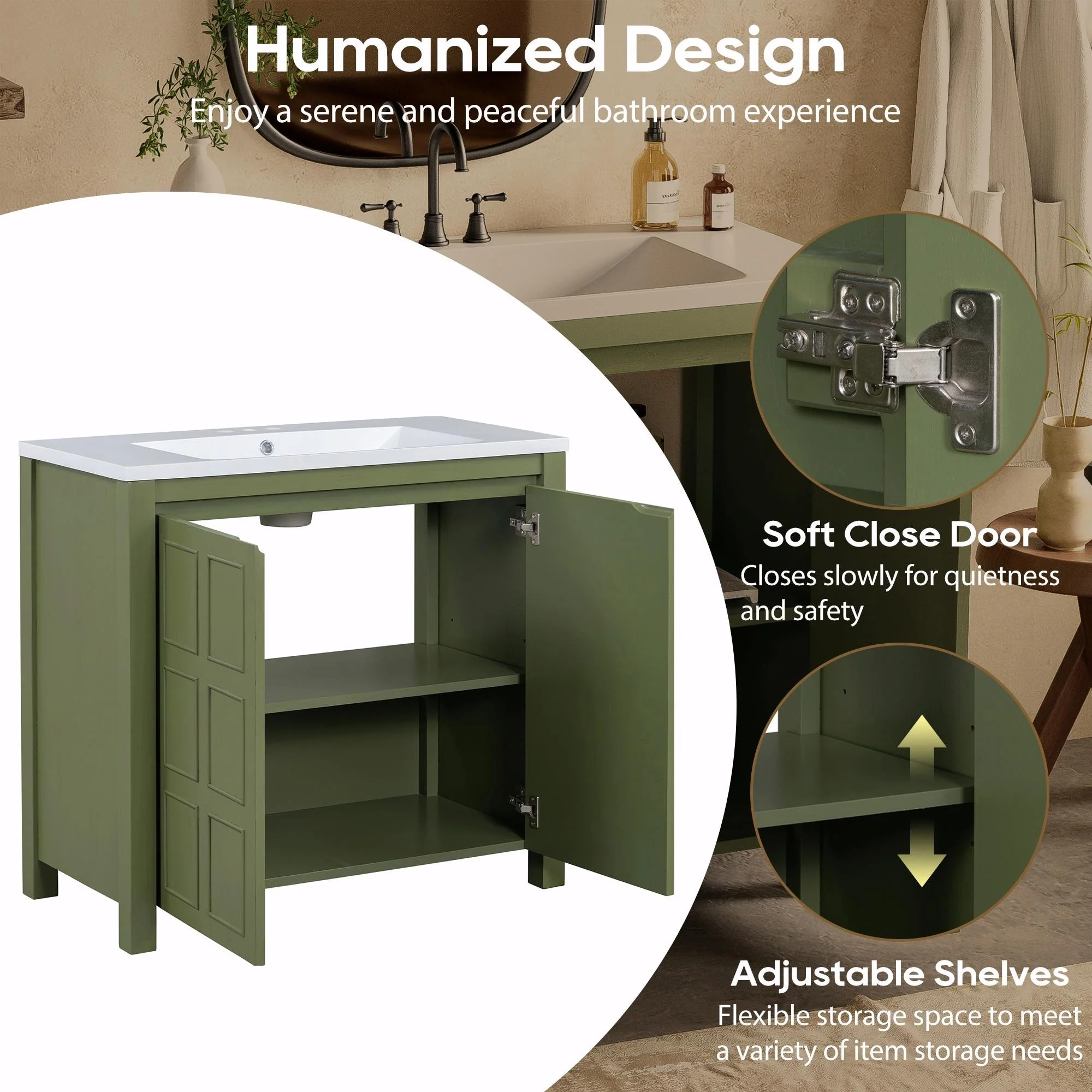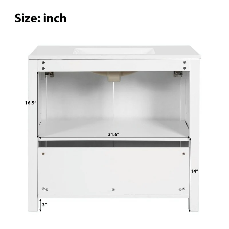 30inch Freestanding Bathroom Vanity Combo with Ceramic Sink Shaker Style Vanities -2 Doors and 2 Drawers