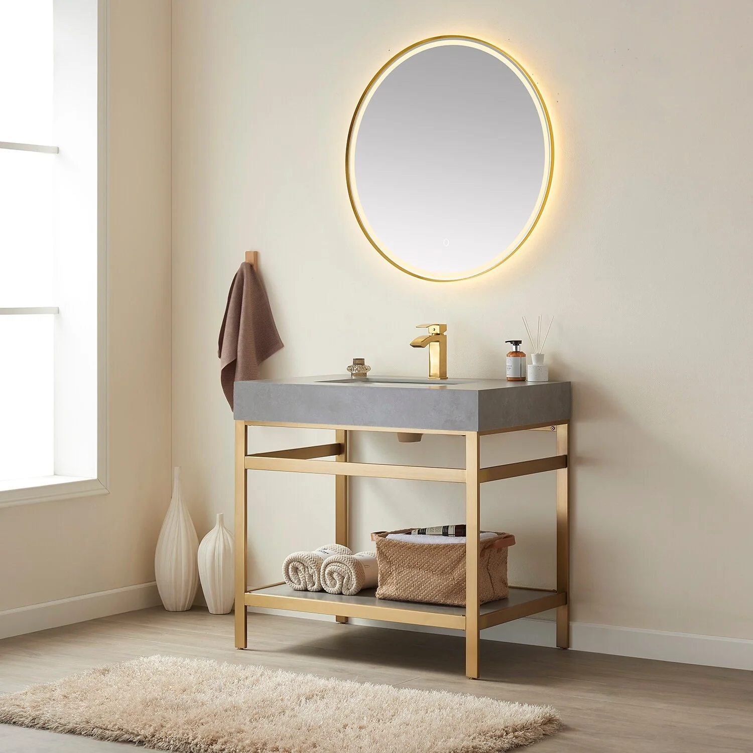 30" Benton Collection Adelisa Gold Mirrored Bathroom Vanity