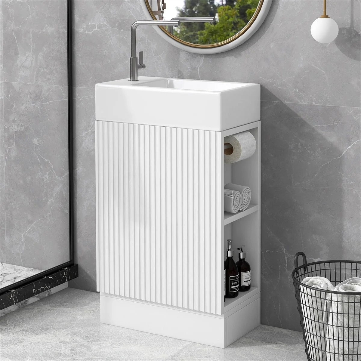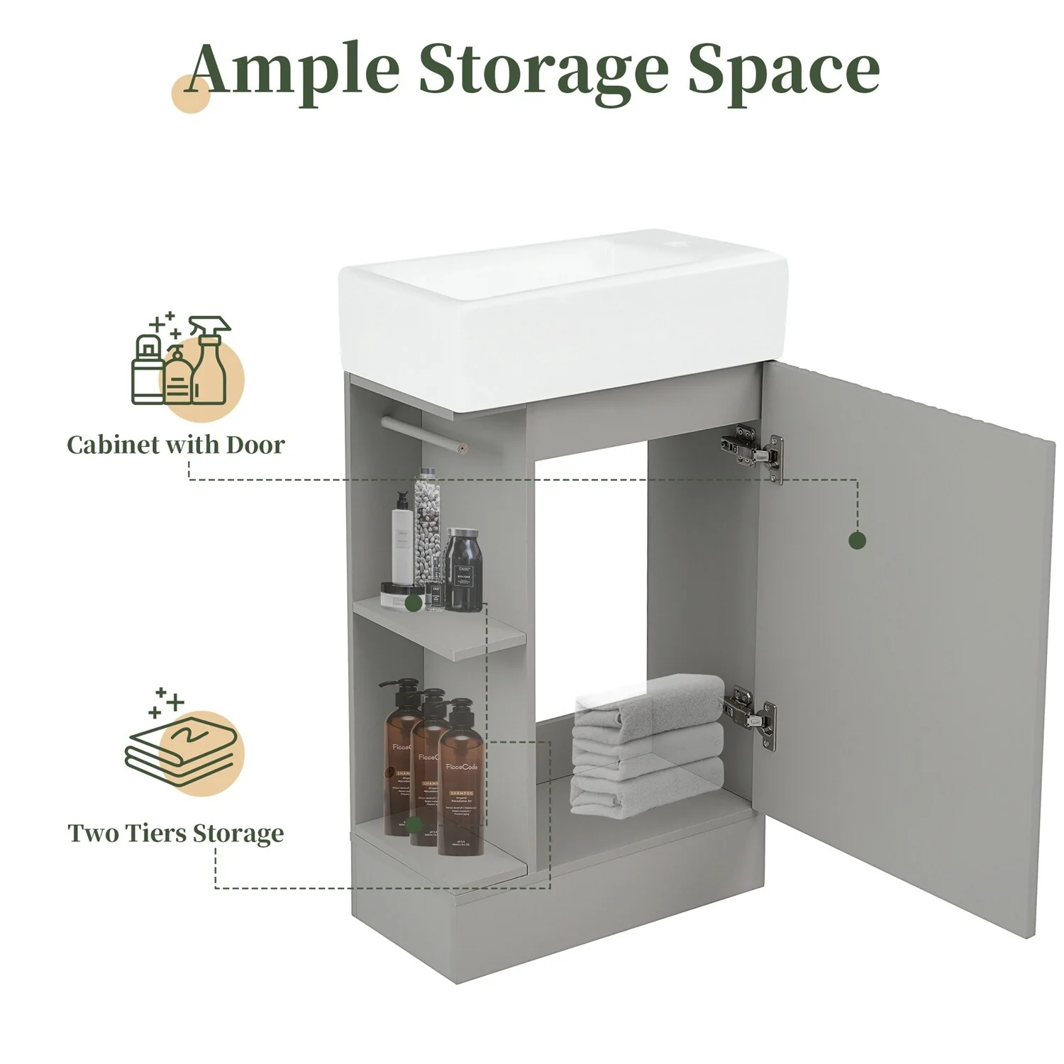 Beingnext 16"/18" Bathroom Vanity with Sink for Small Bathroom,Single Sink Freestanding Bathroom Vanity with Soft Close Door