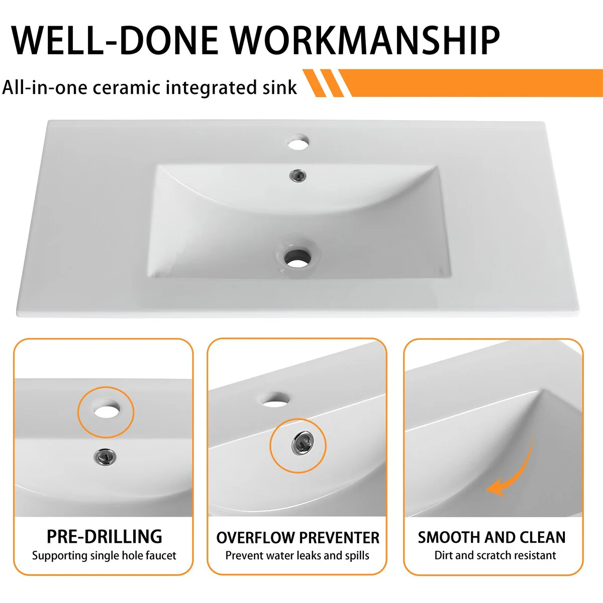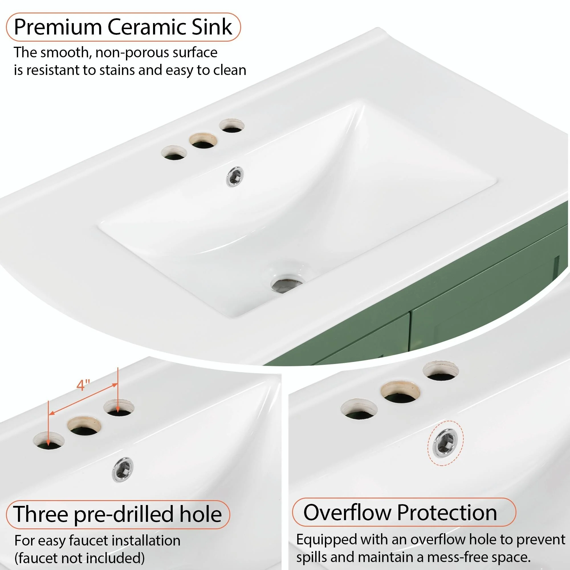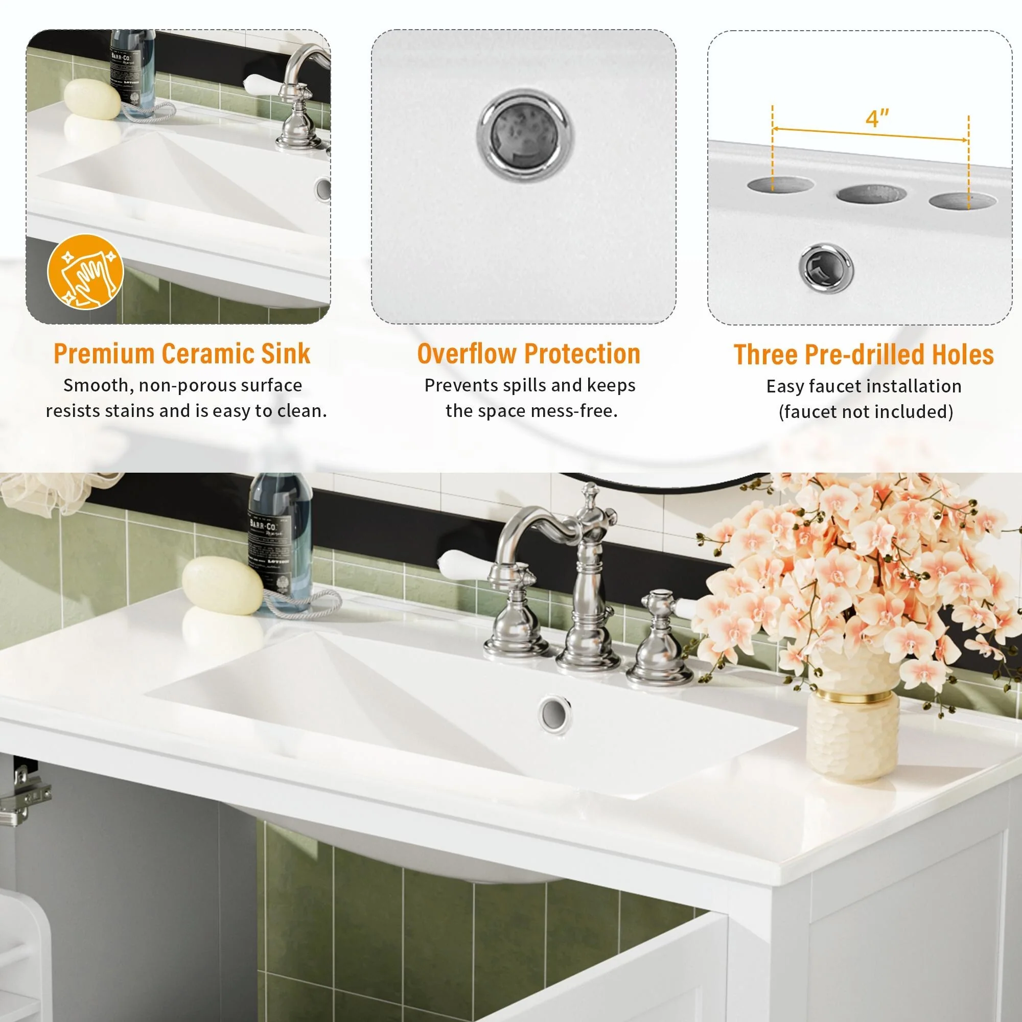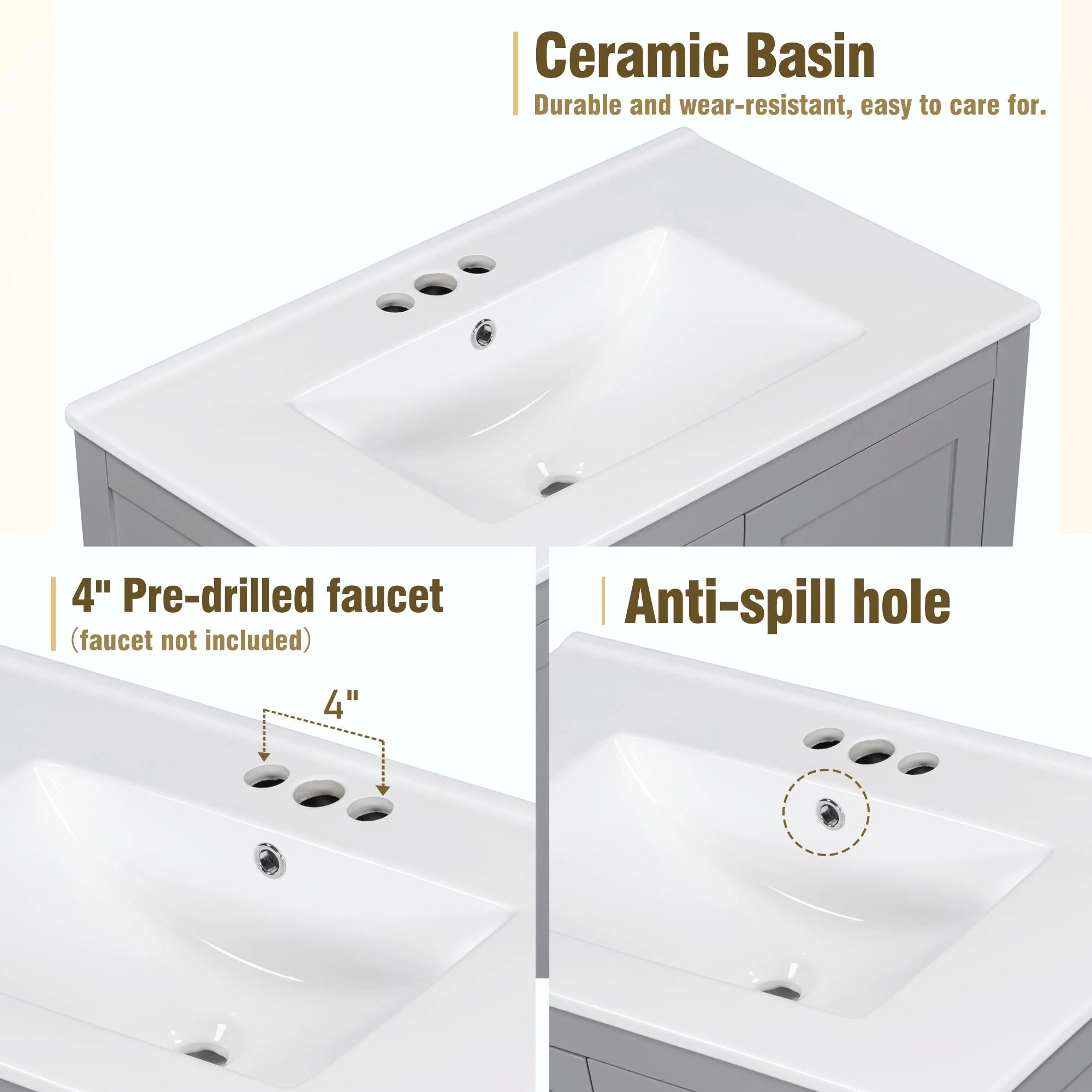 36 in W Ceramic,Solid Wood+MDF