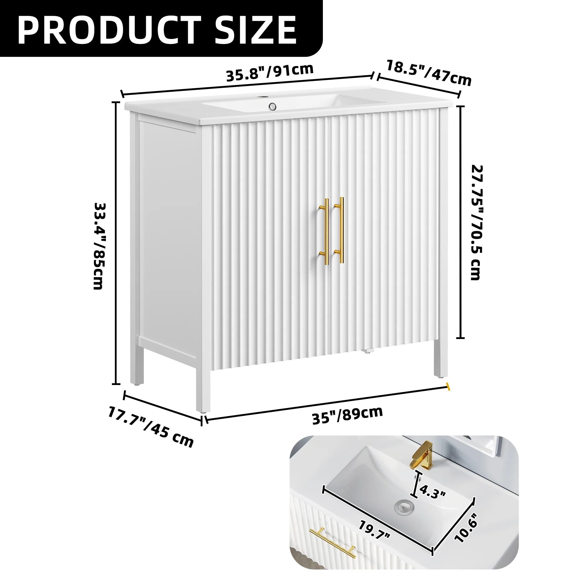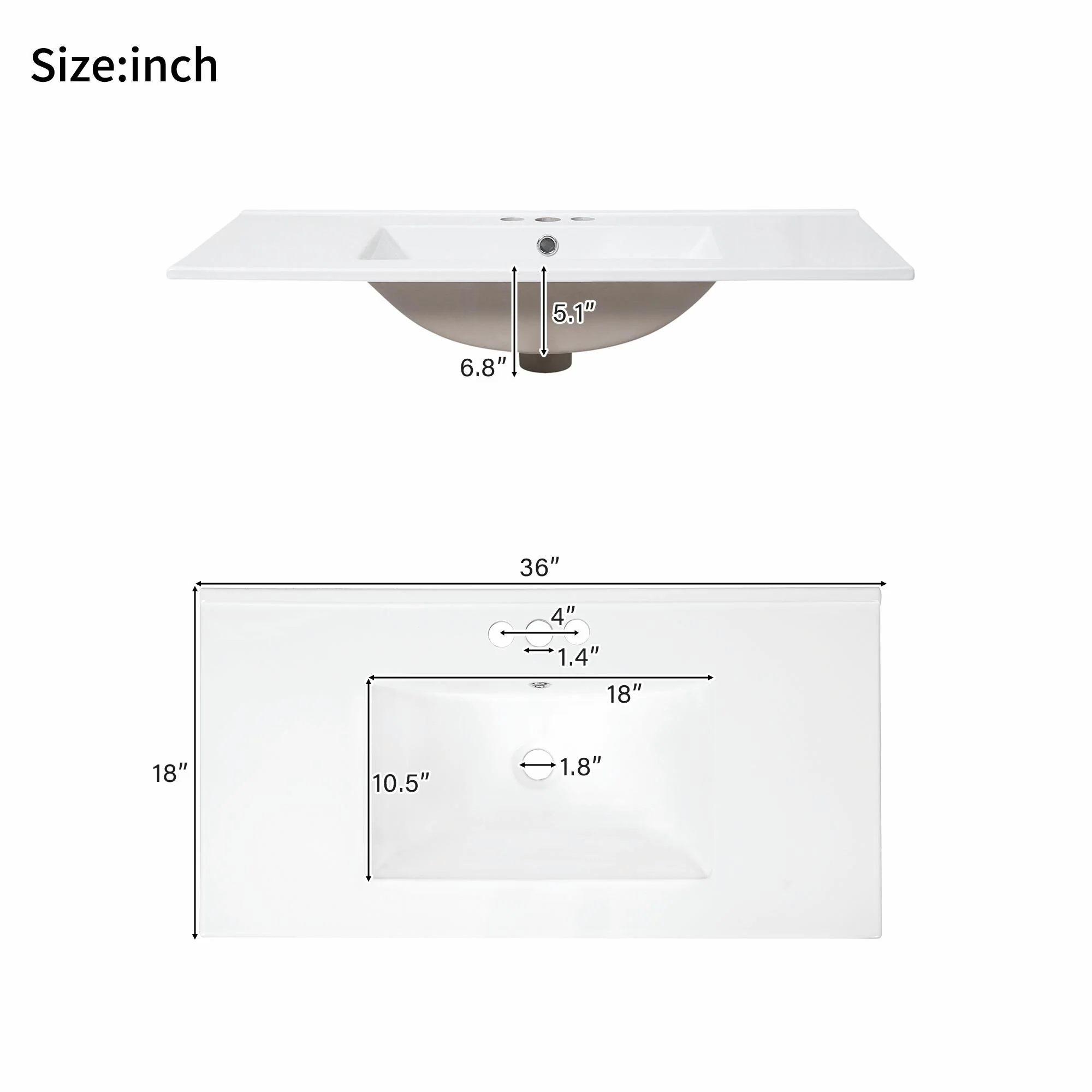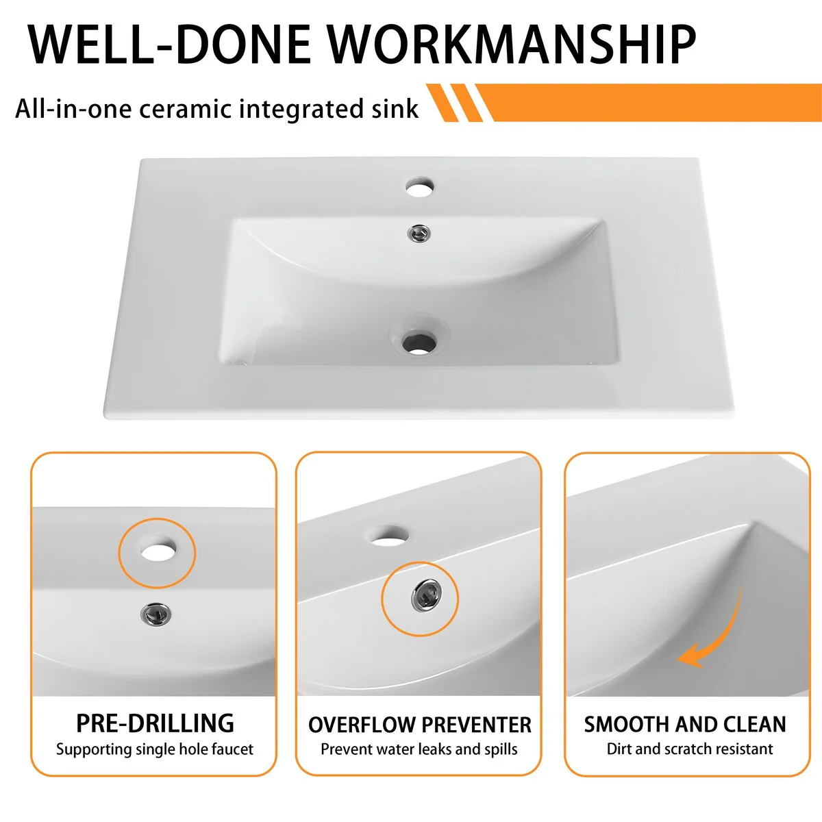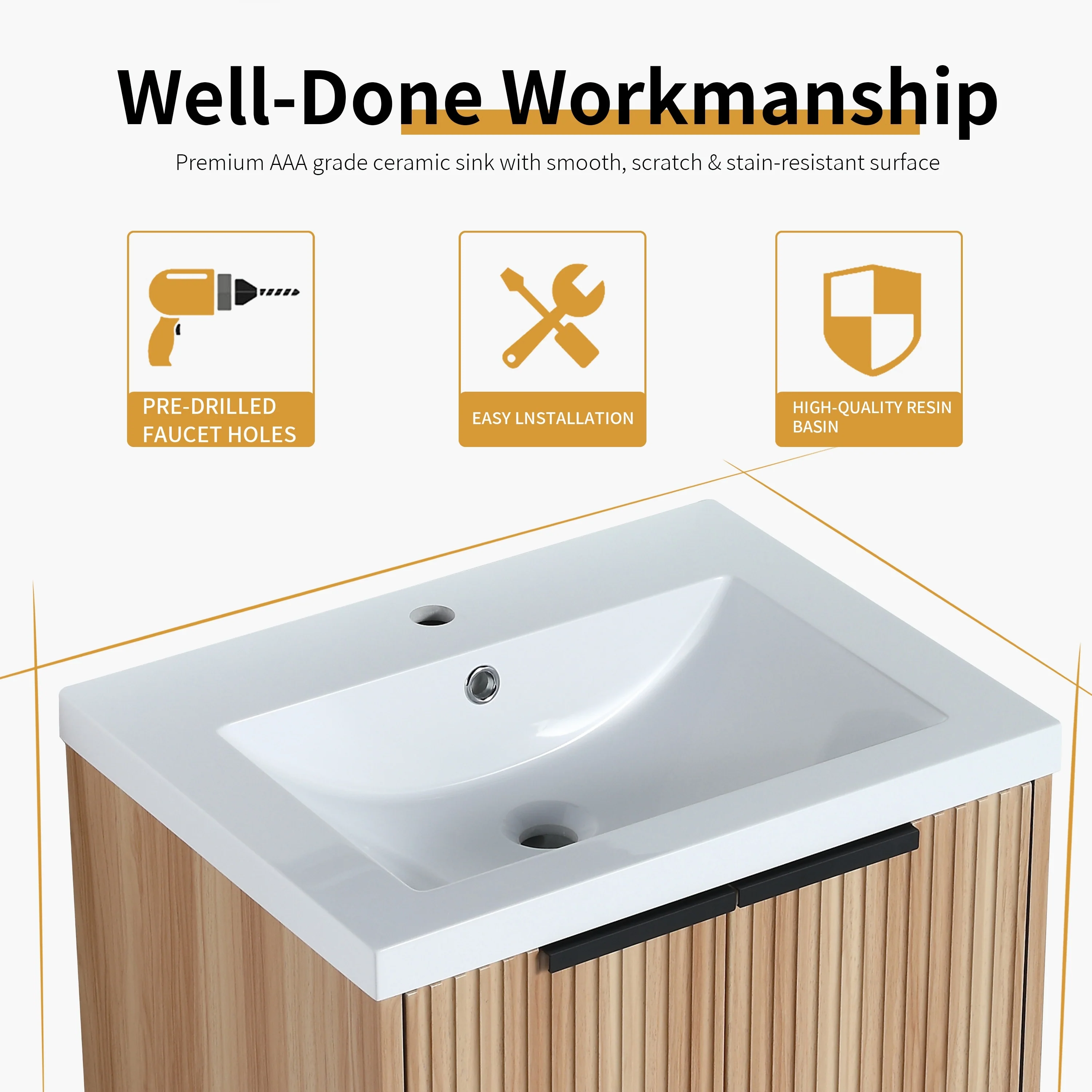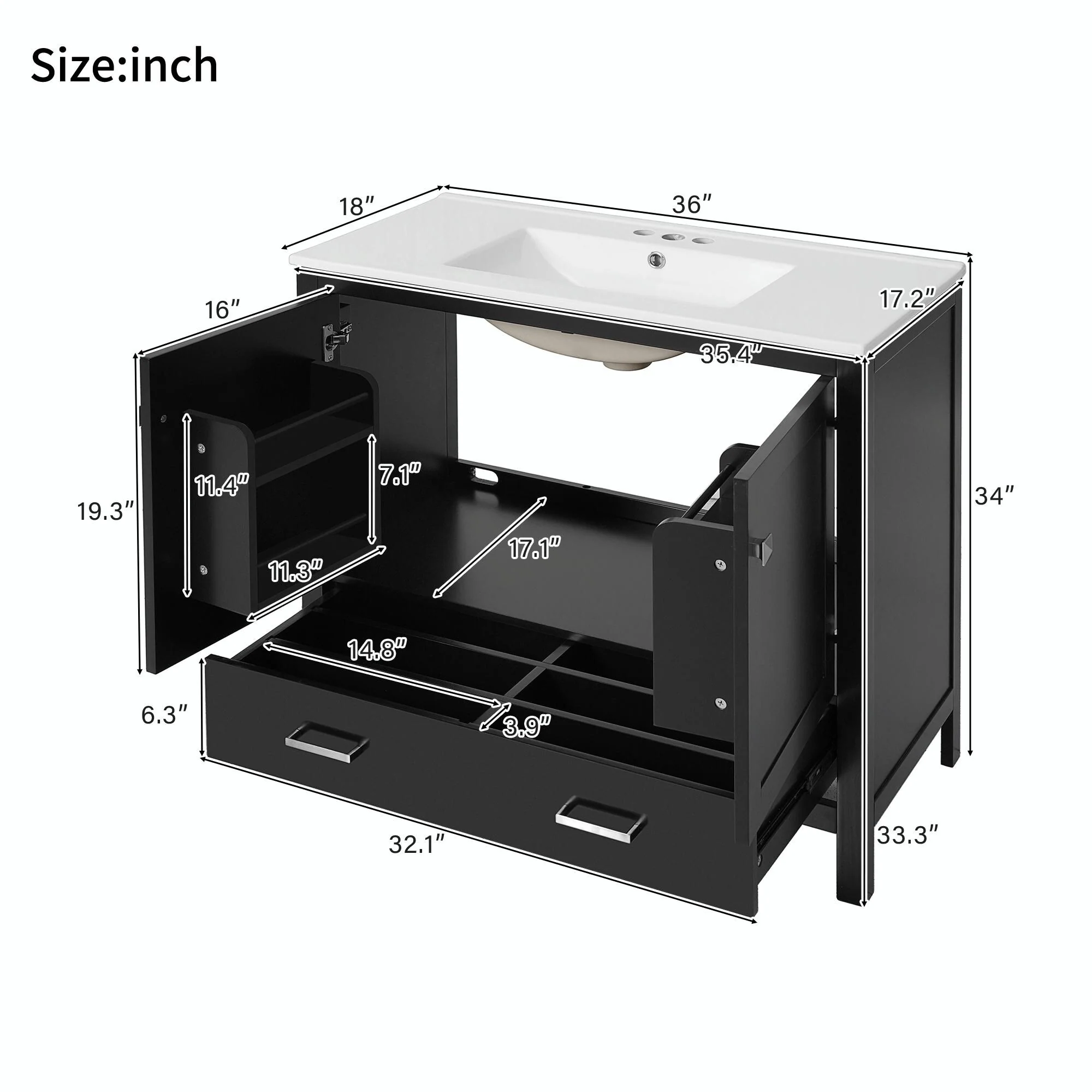 36 in W Ceramic,Solid Wood+MDF