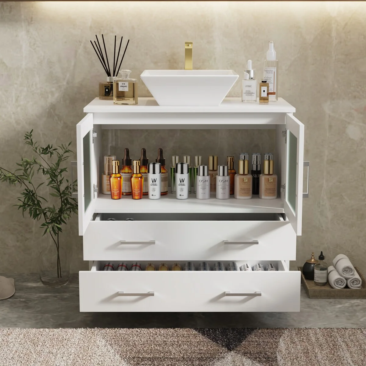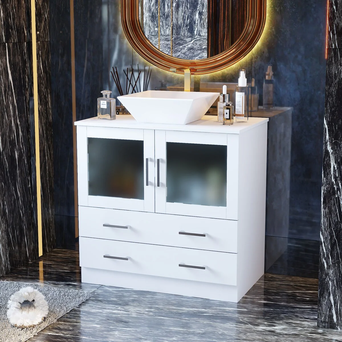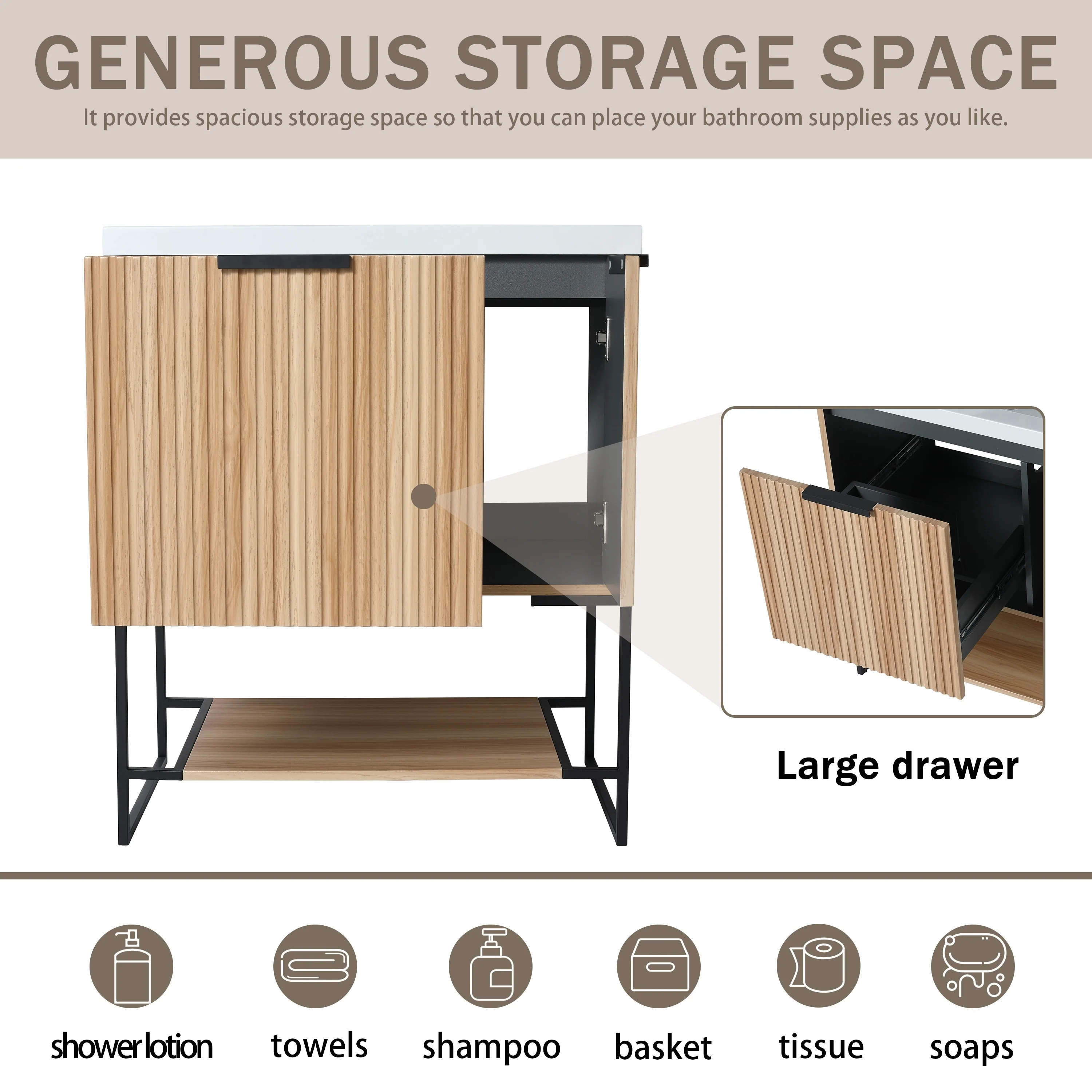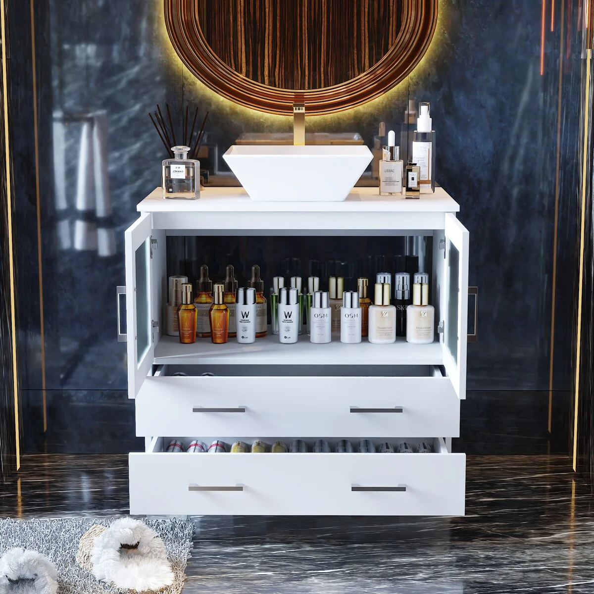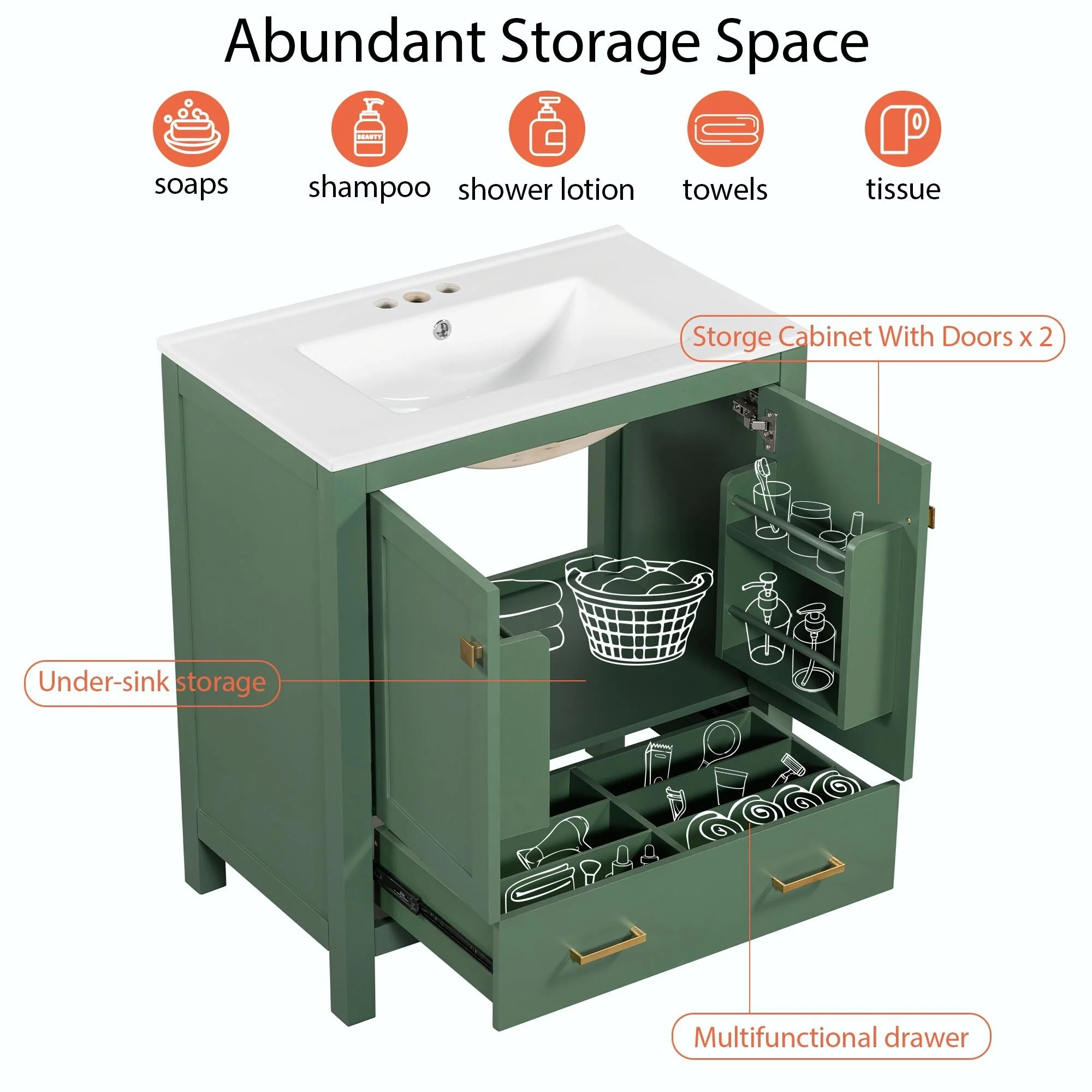 Bathroom Vanity with 2 Soft-close Doors and Double-tier Deep Drawer