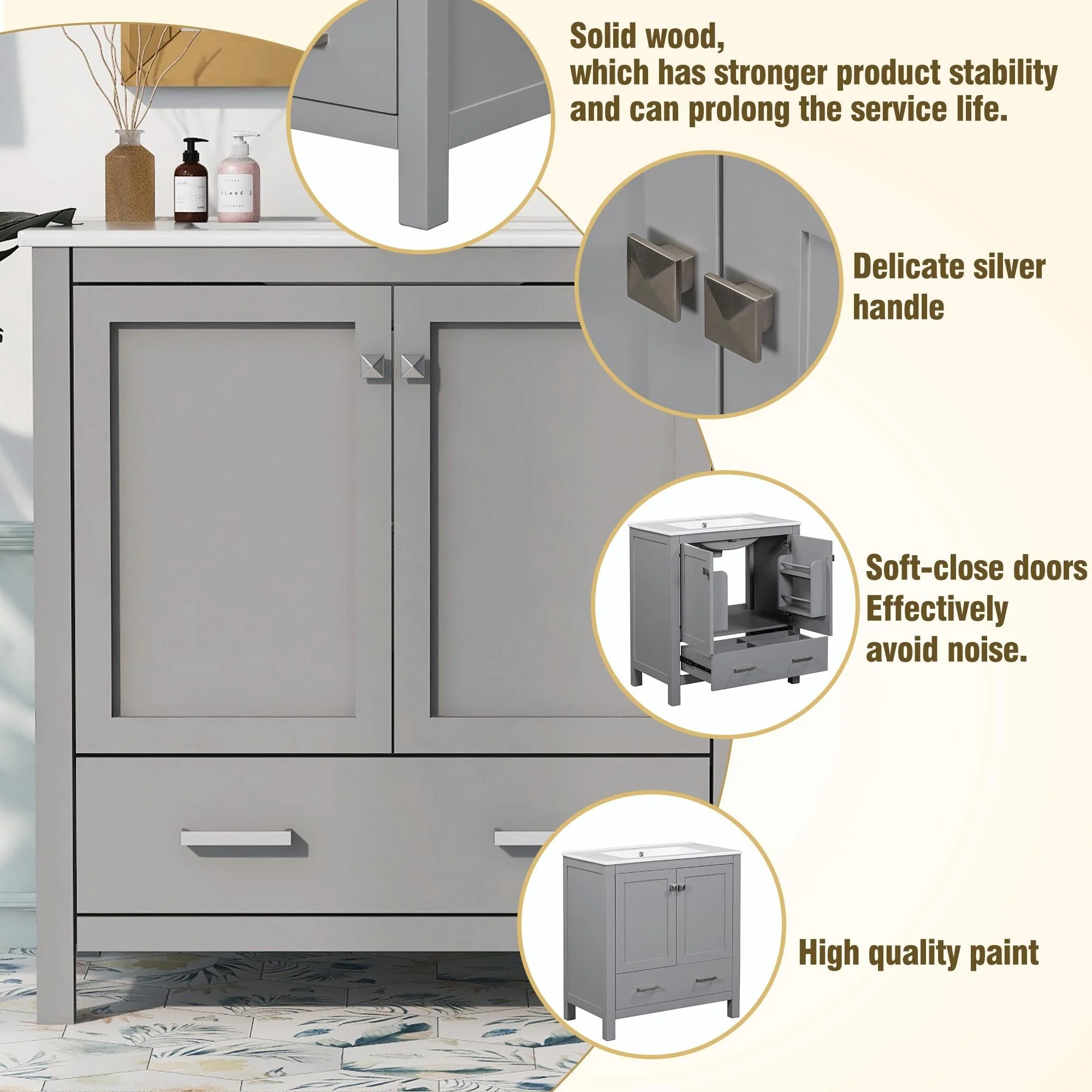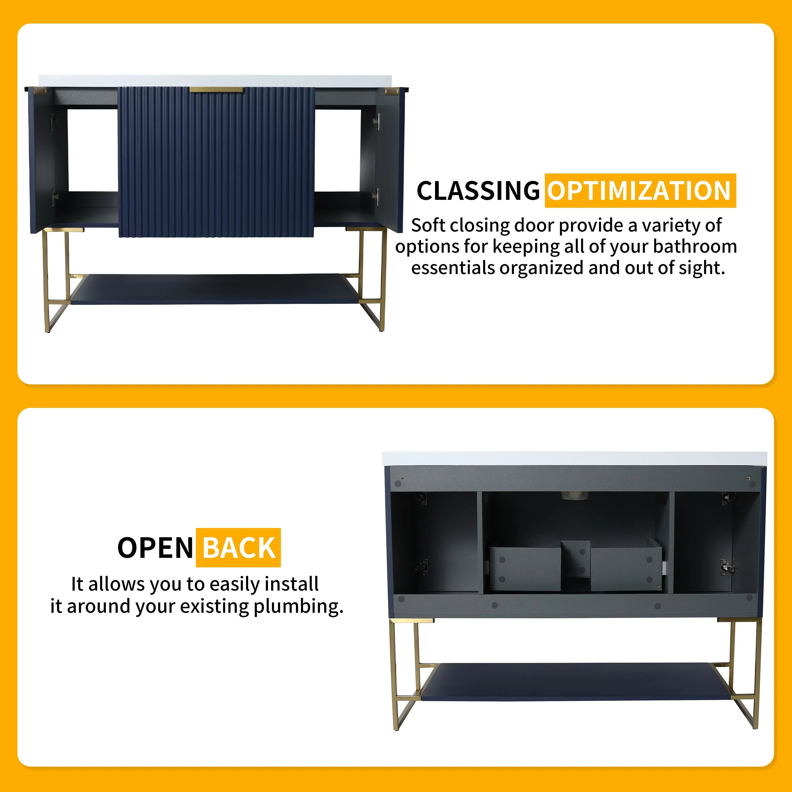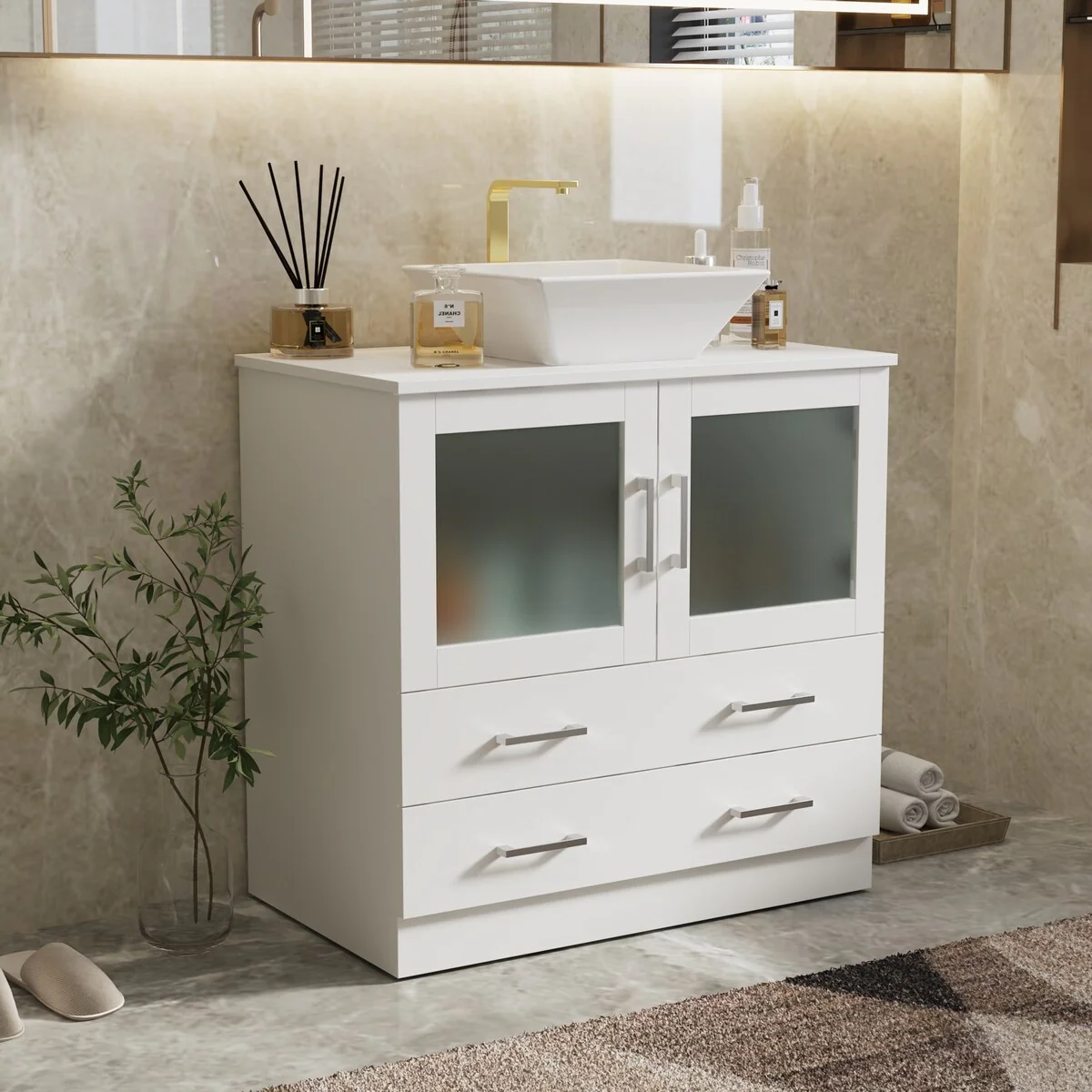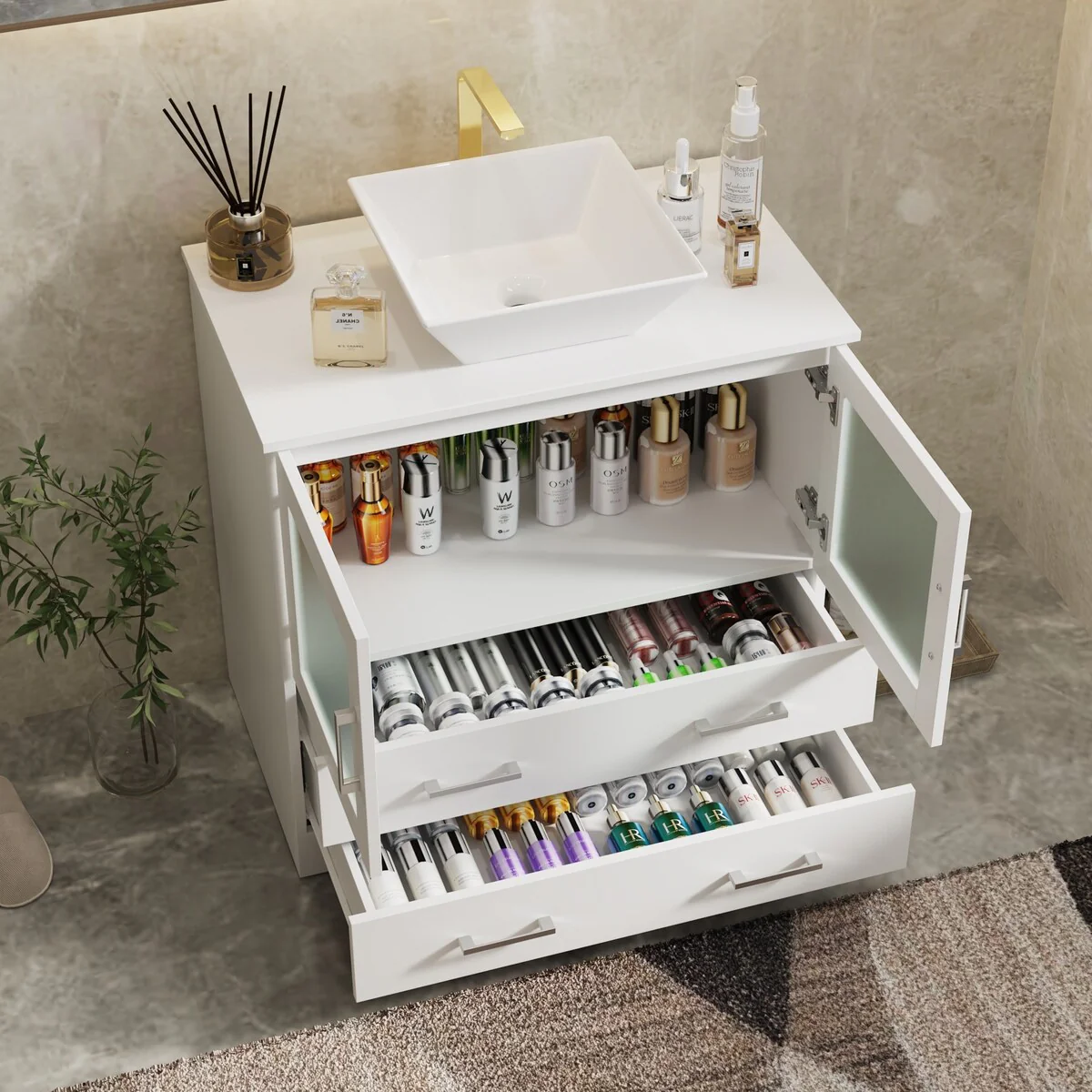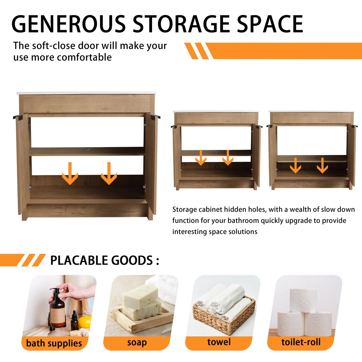 Bathroom Vanity with 2 Soft-close Doors and Double-tier Deep Drawer