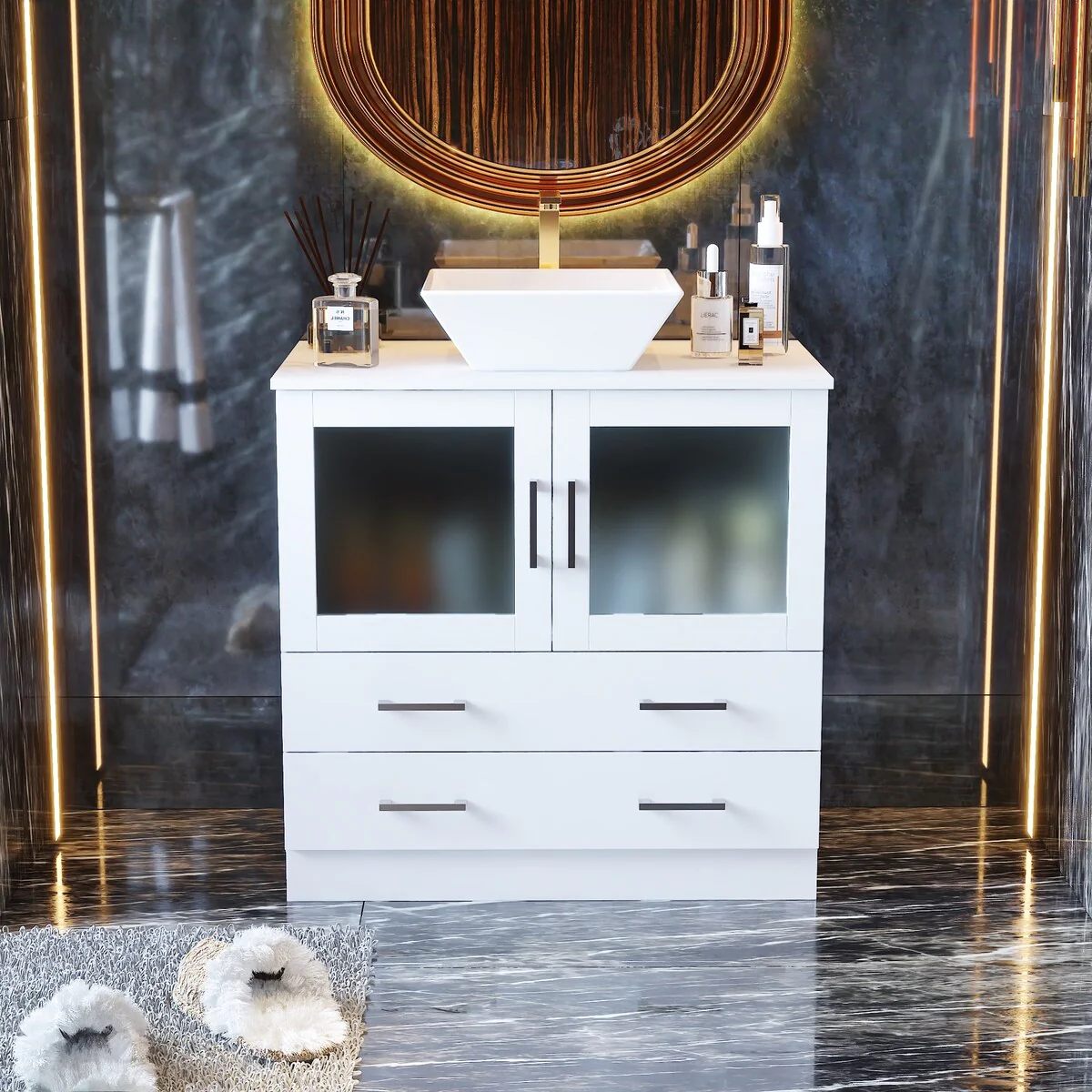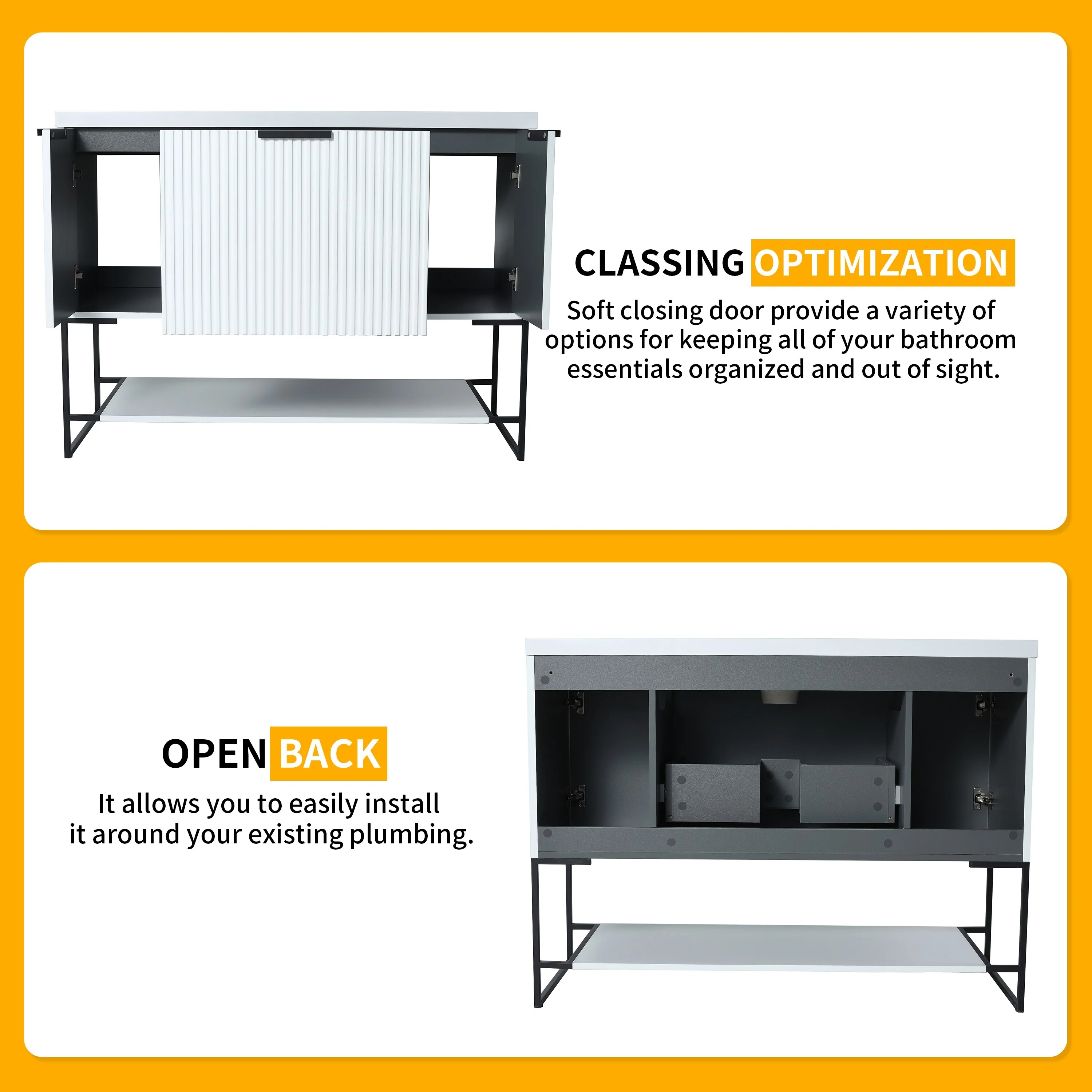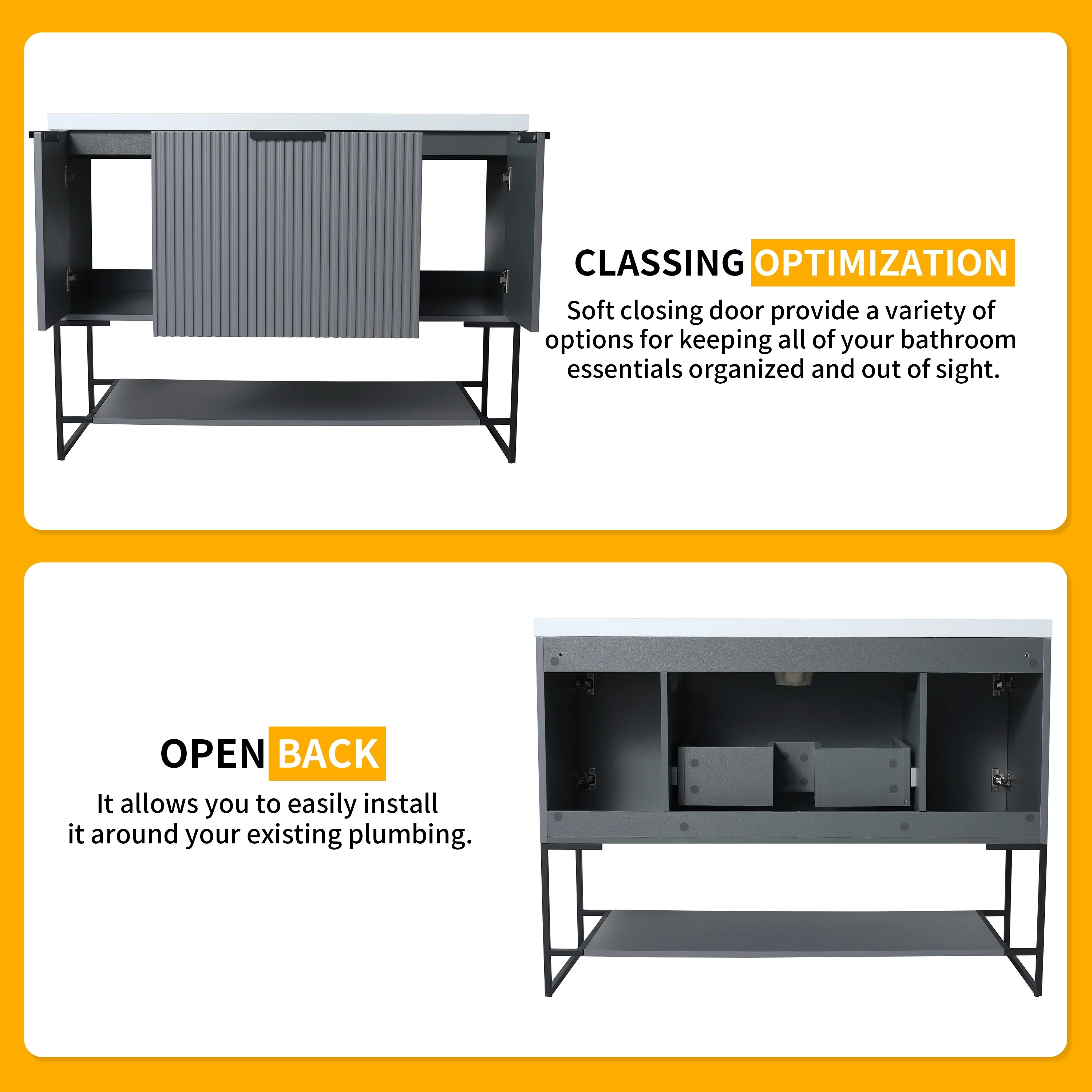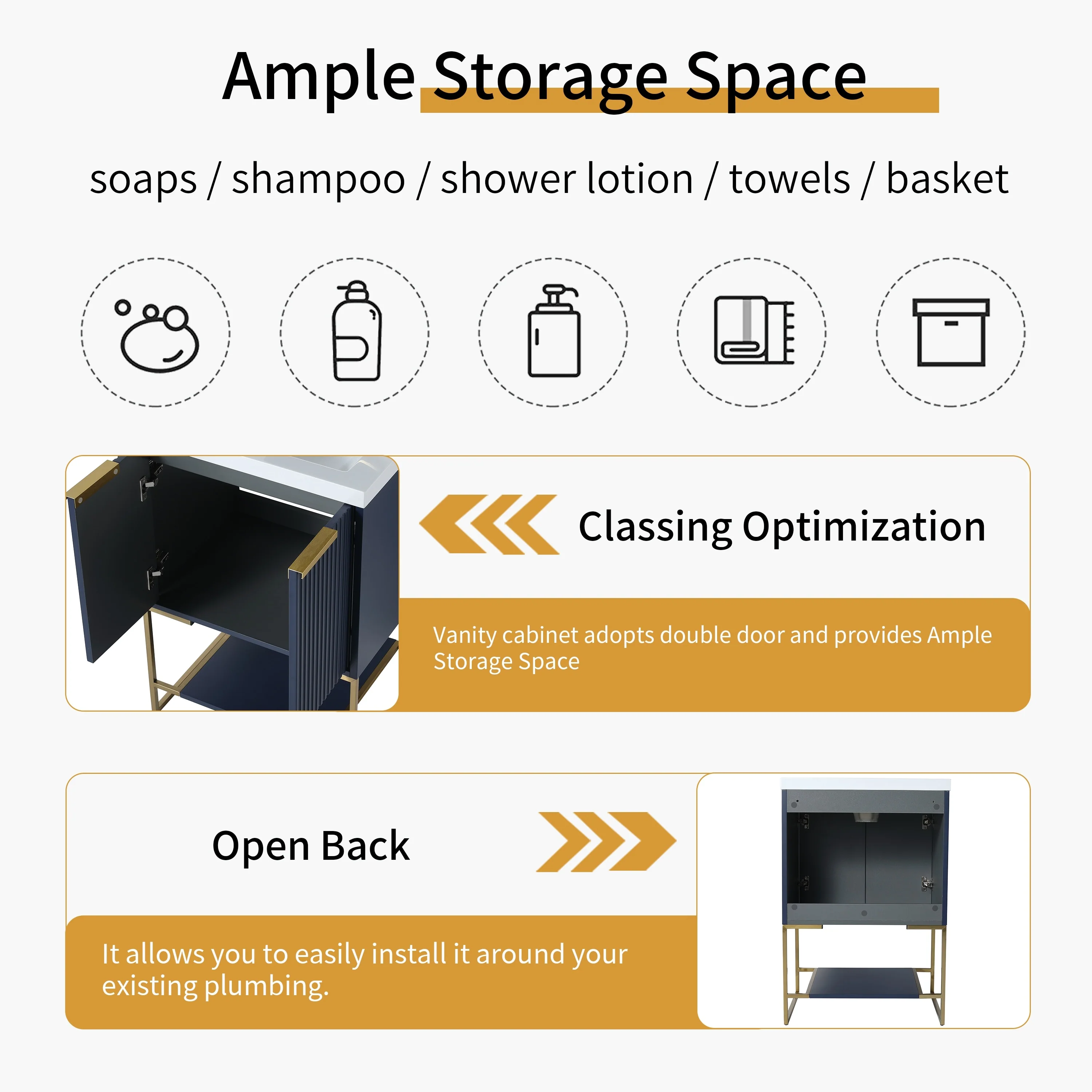 Bathroom Vanity with 2 Soft-close Doors and Double-tier Deep Drawer