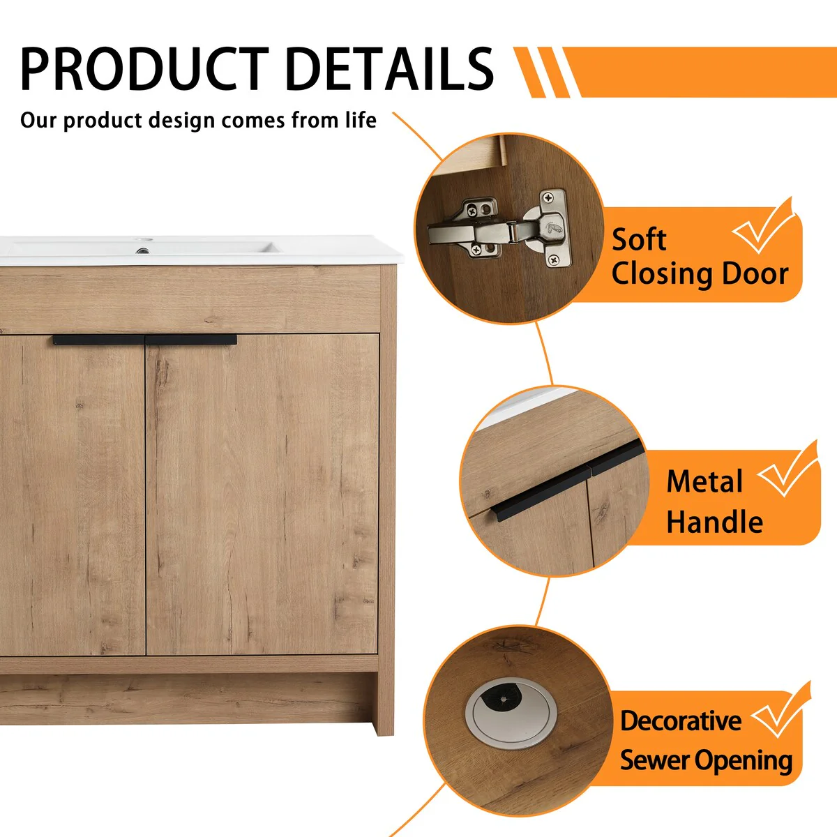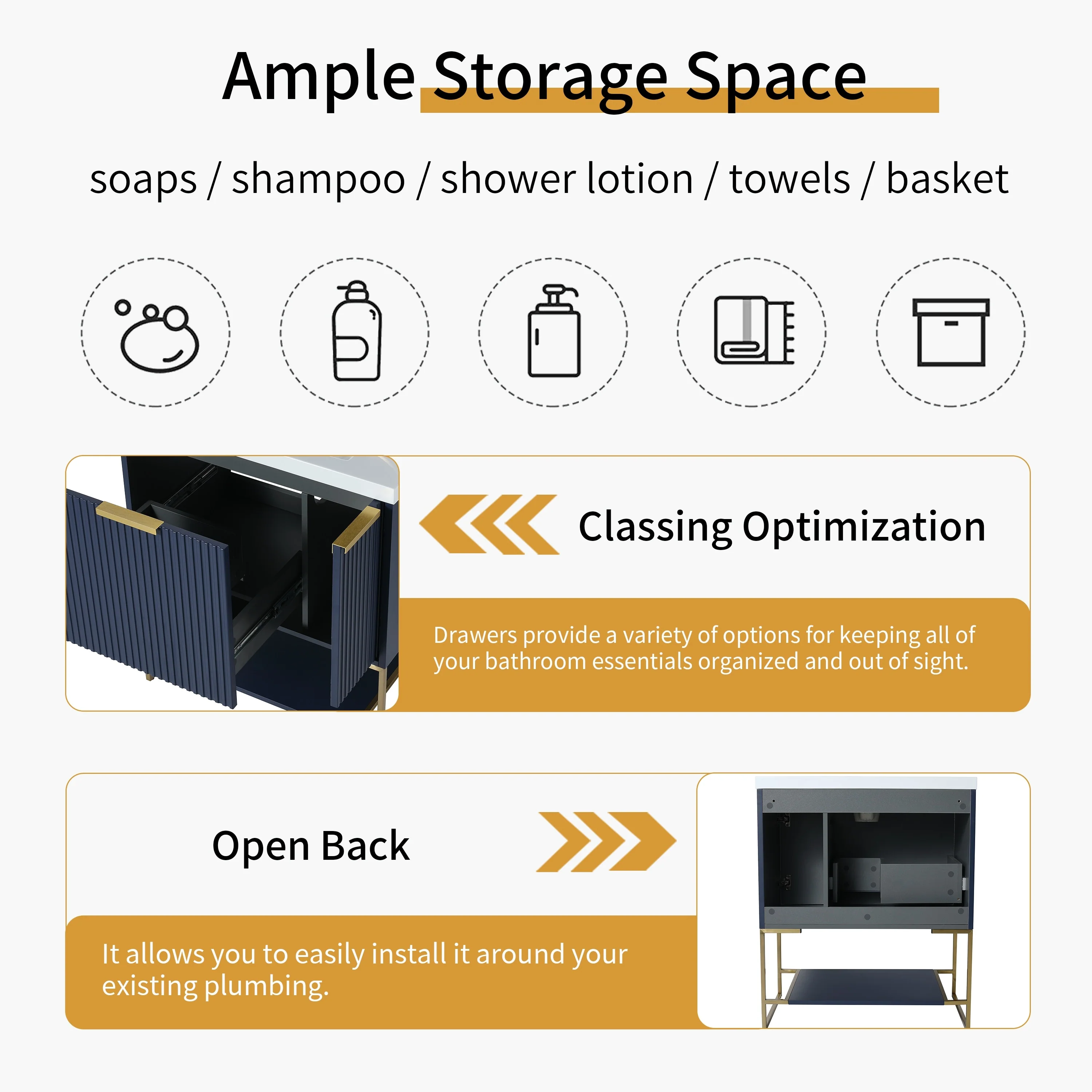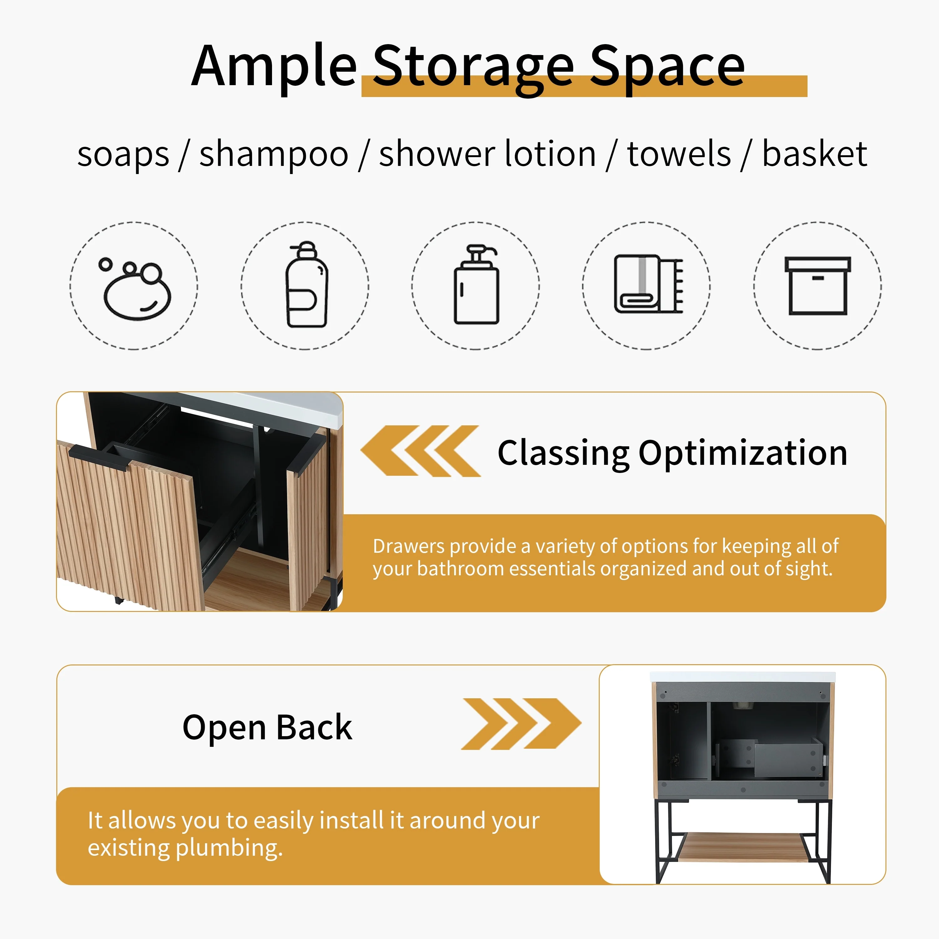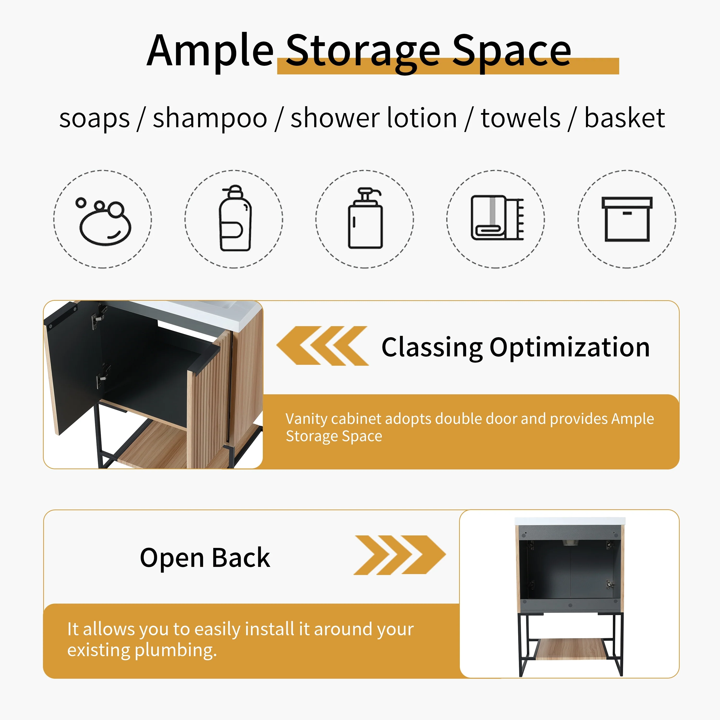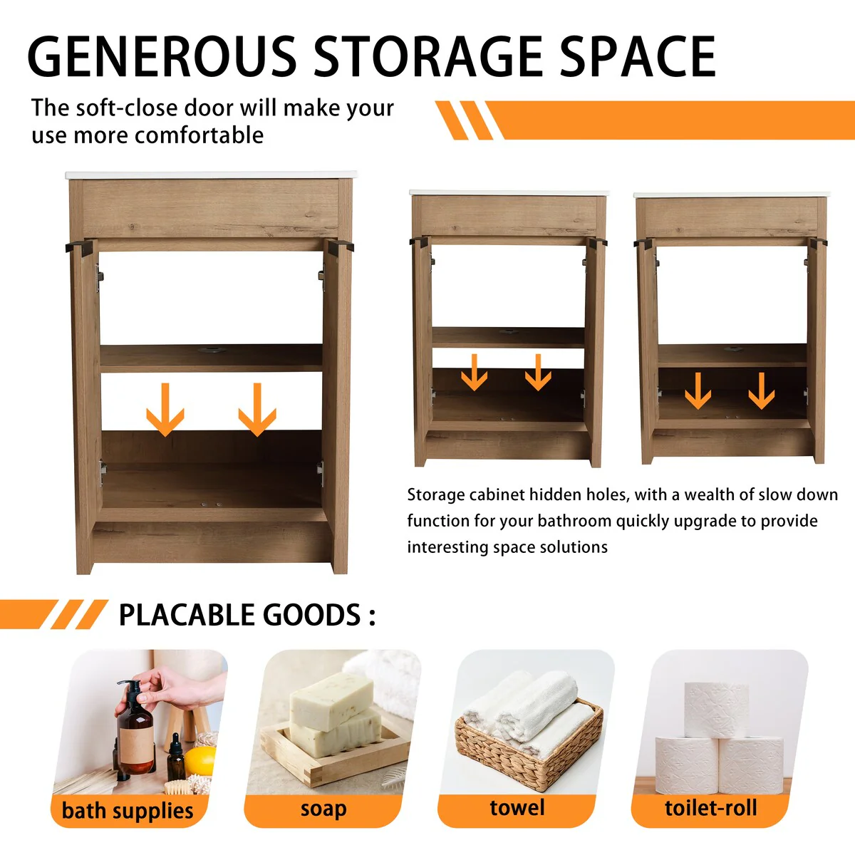 Bathroom Vanity with 2 Soft-close Doors and Double-tier Deep Drawer