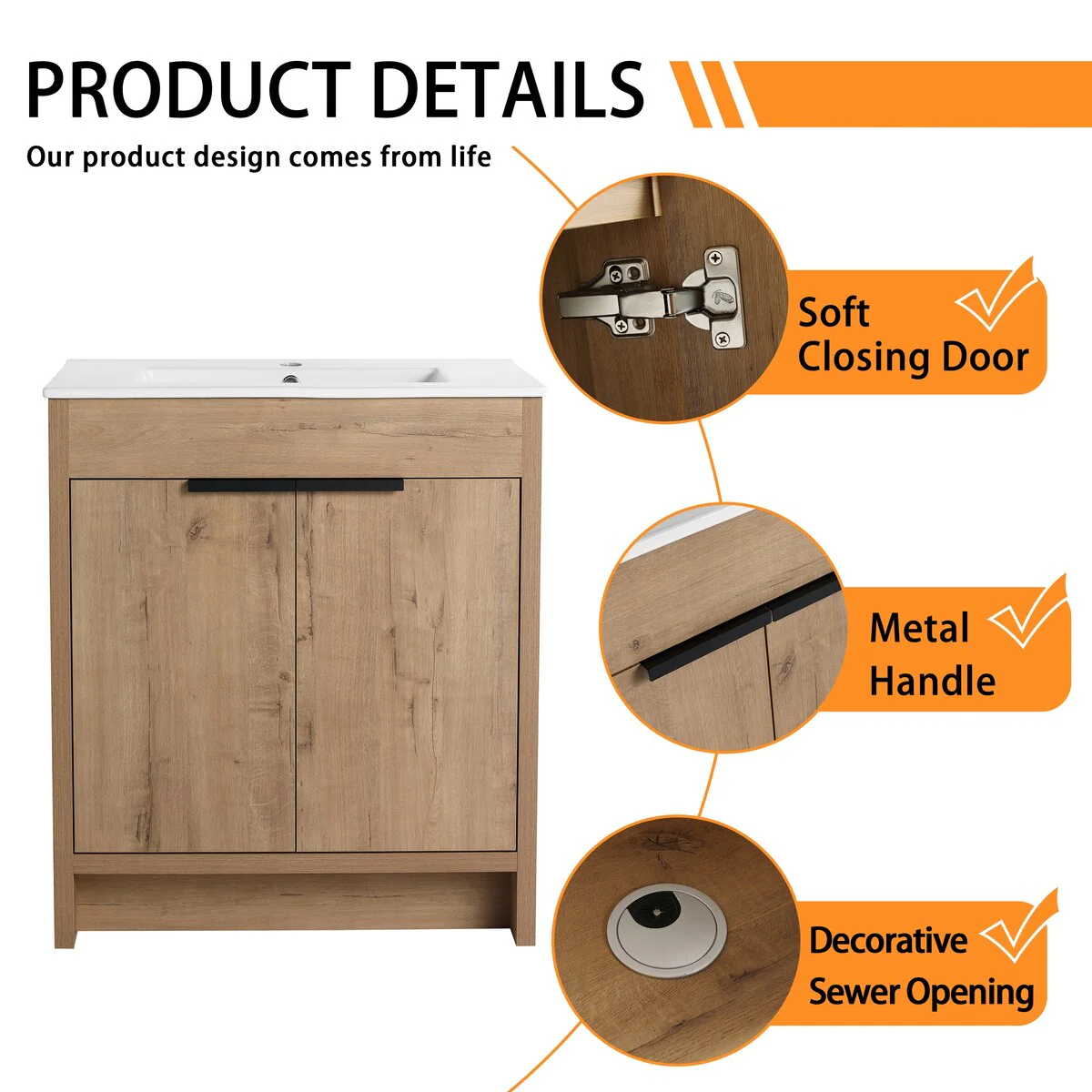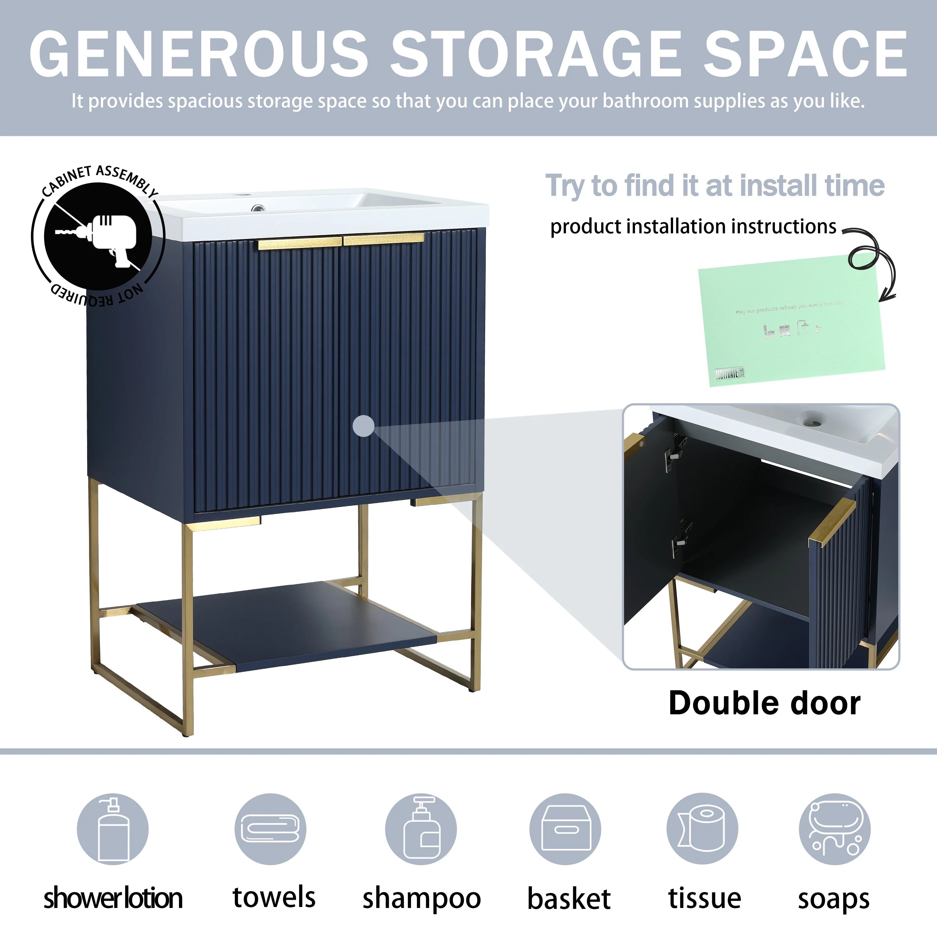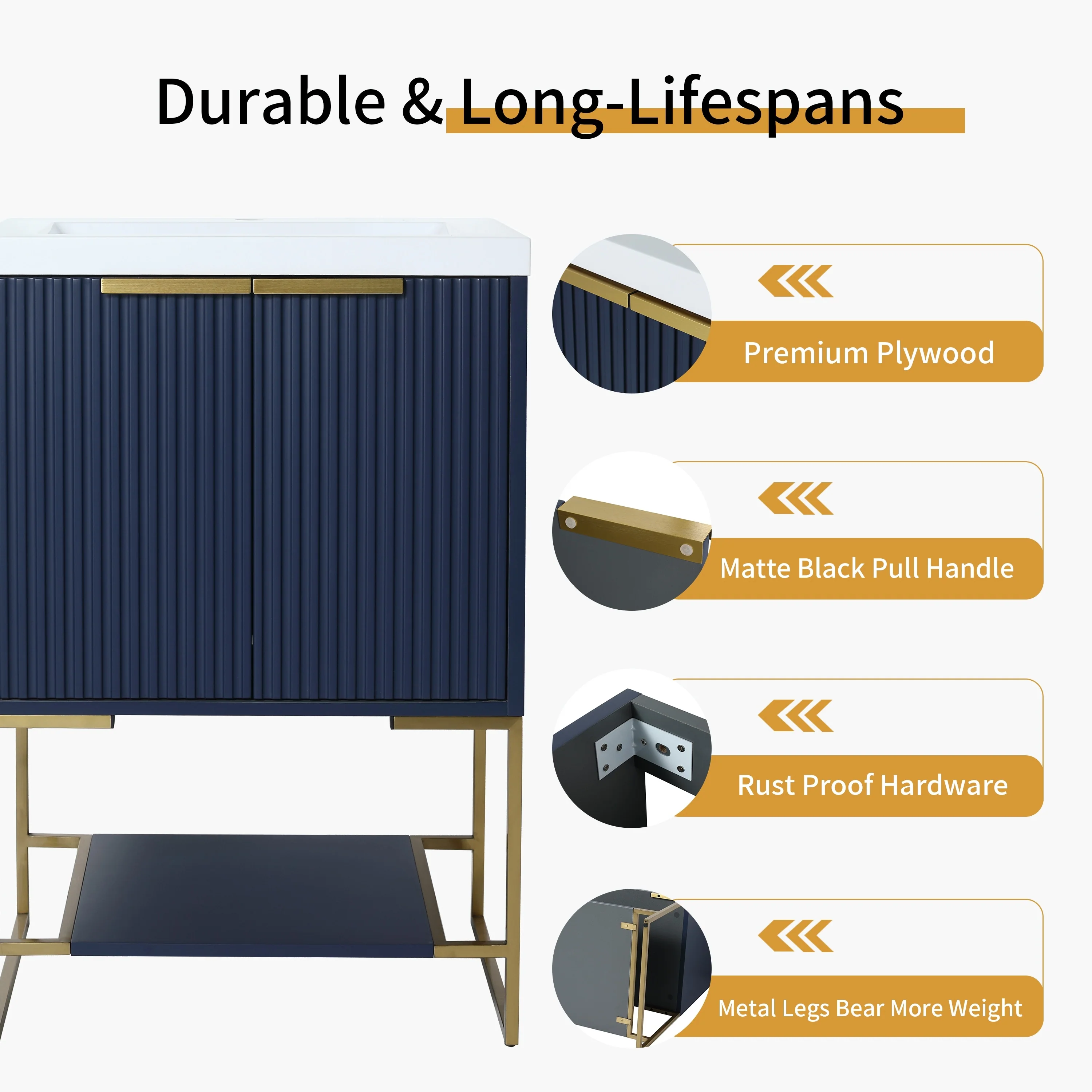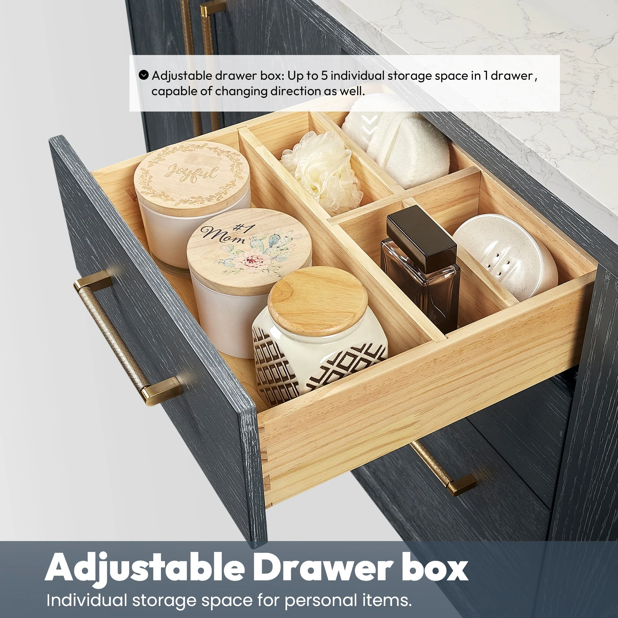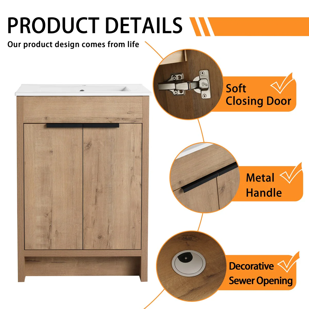 Bathroom Vanity with 2 Soft-close Doors and Double-tier Deep Drawer