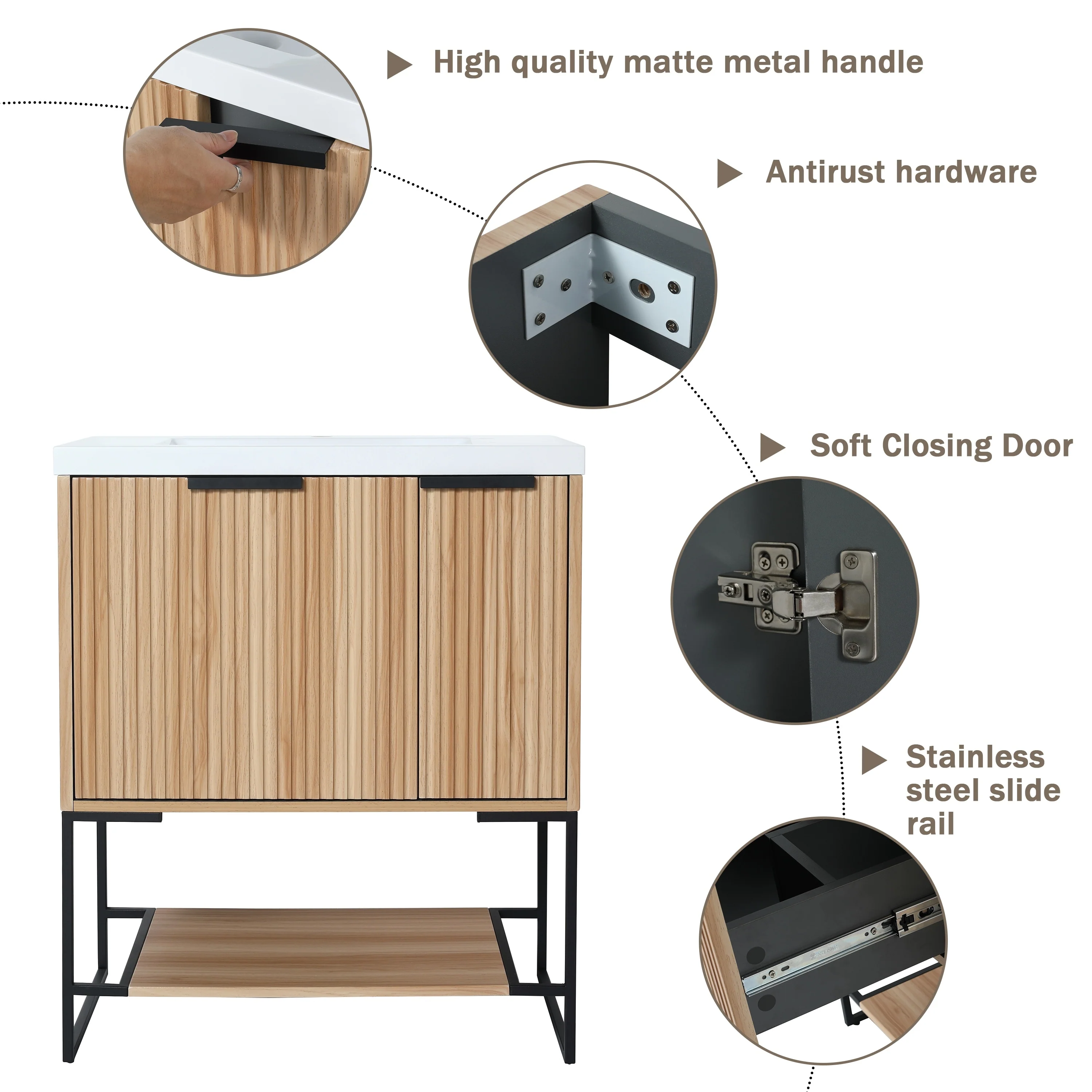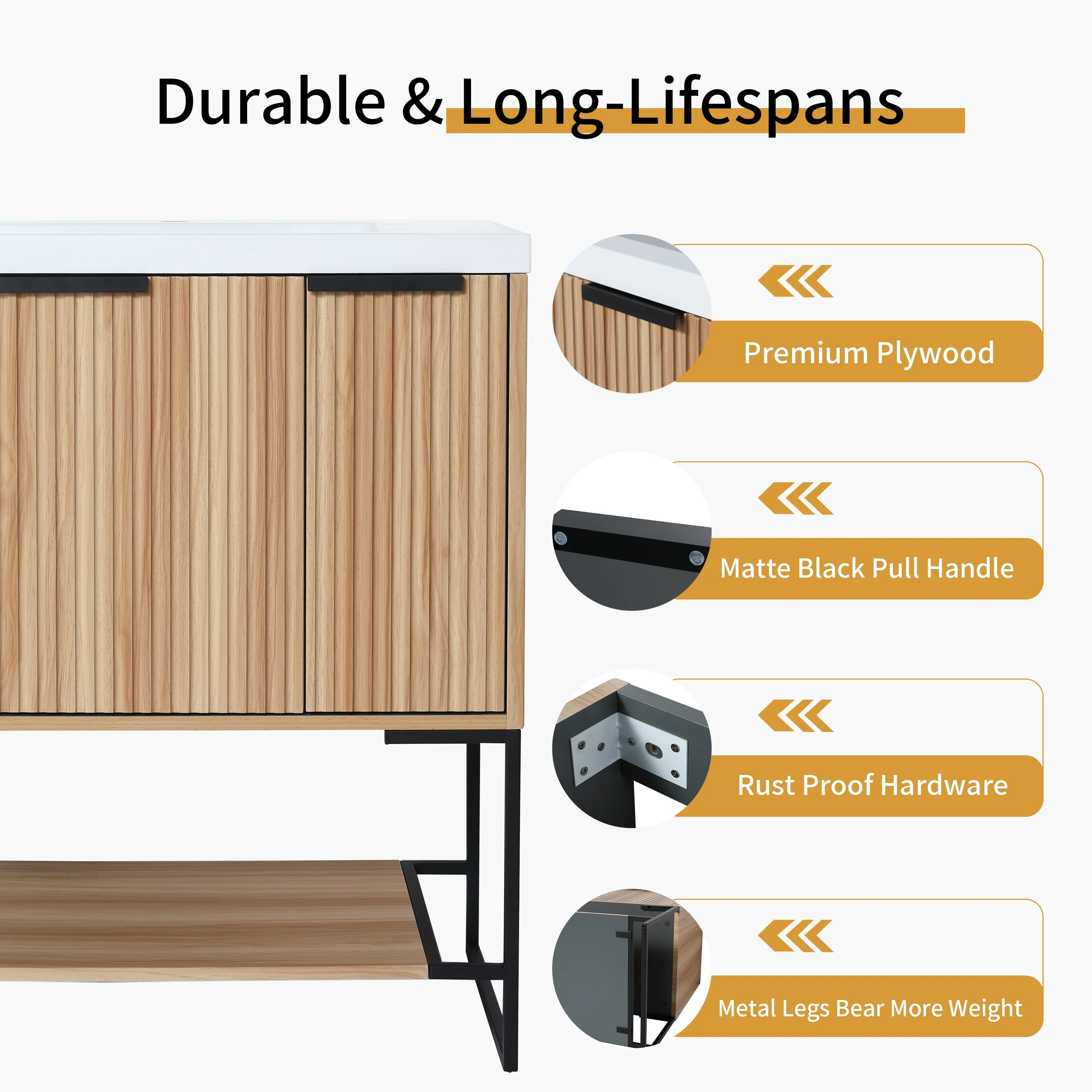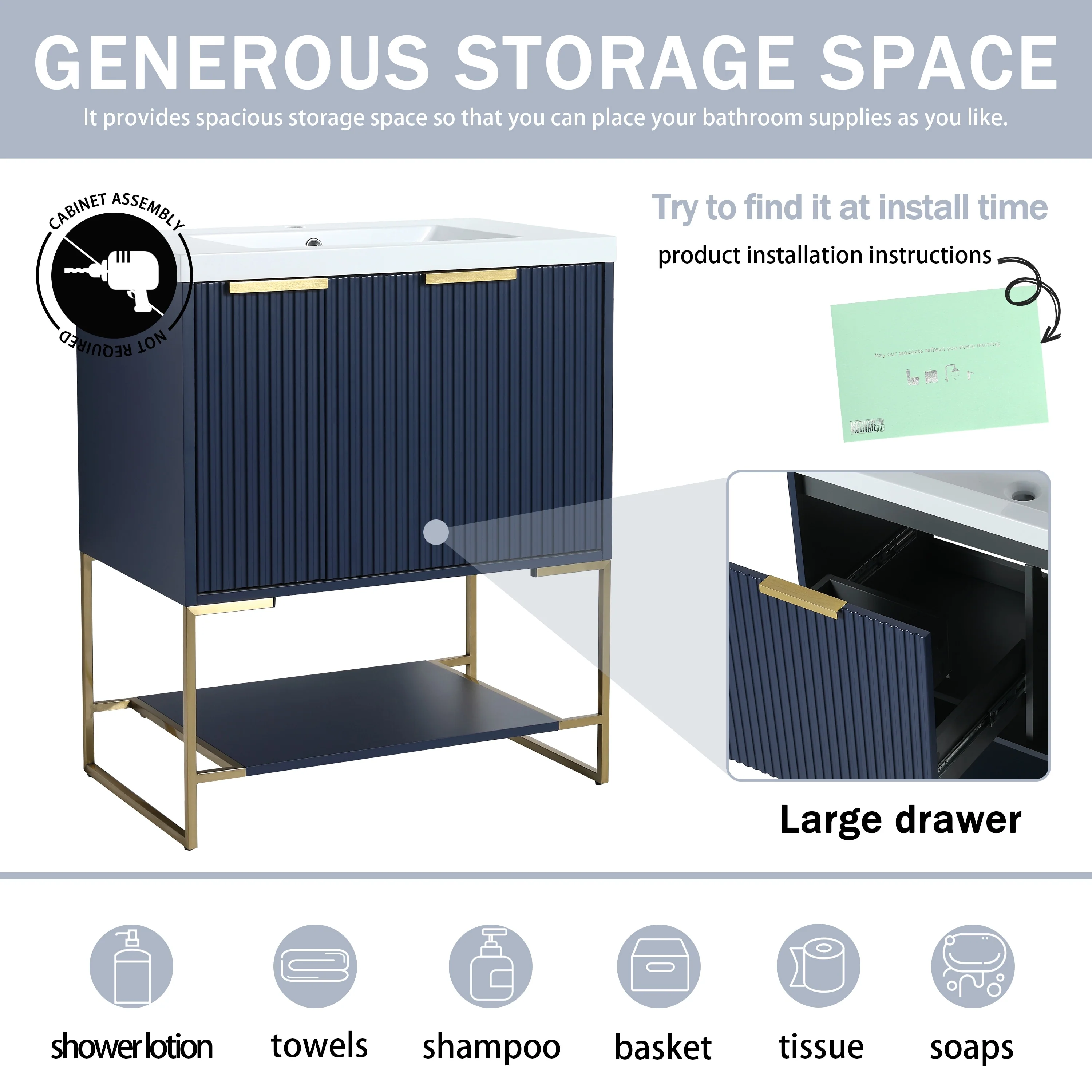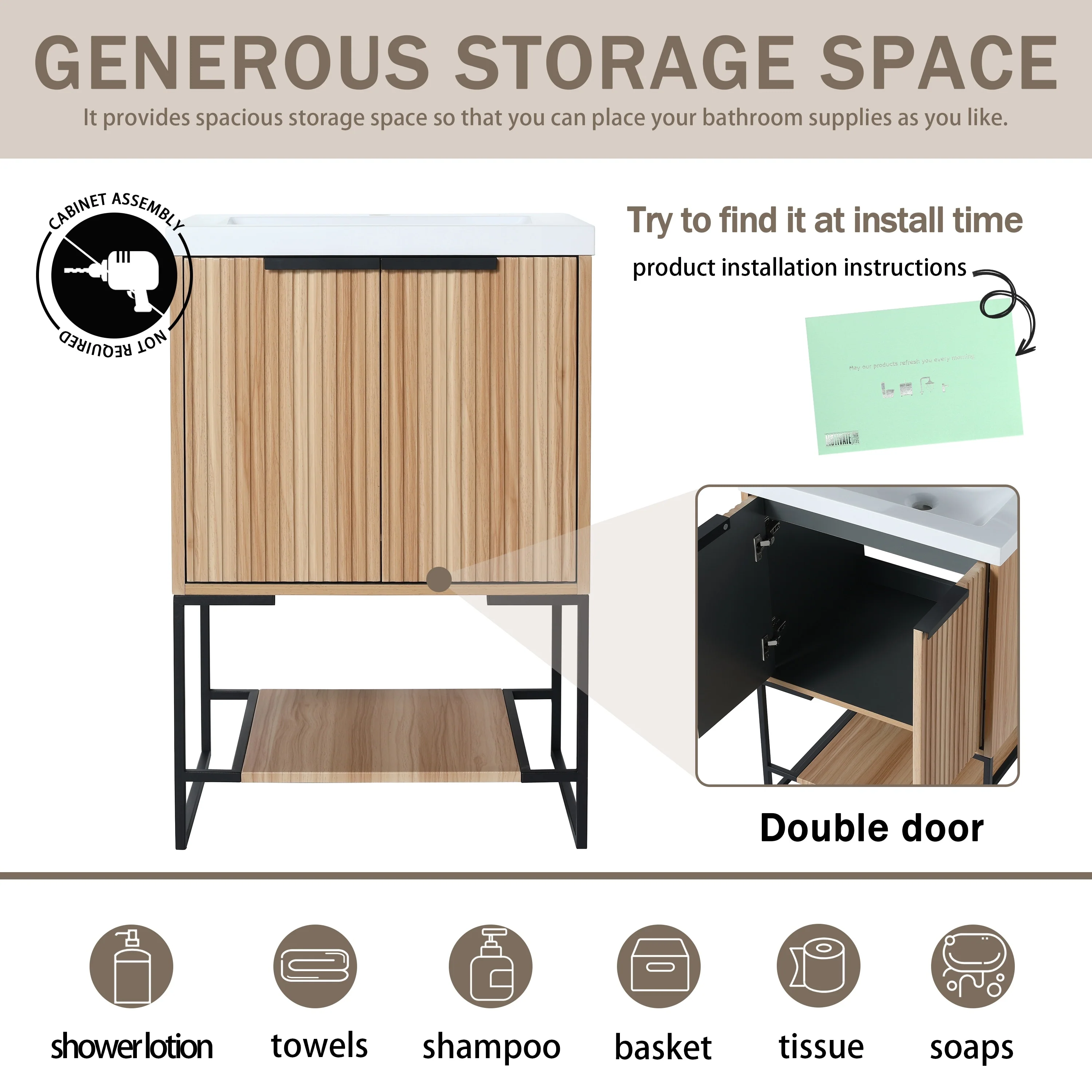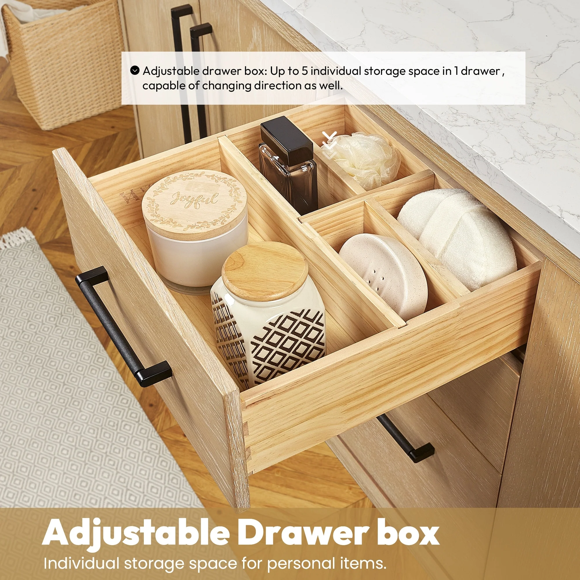 Bathroom Vanity with 2 Soft-close Doors and Double-tier Deep Drawer