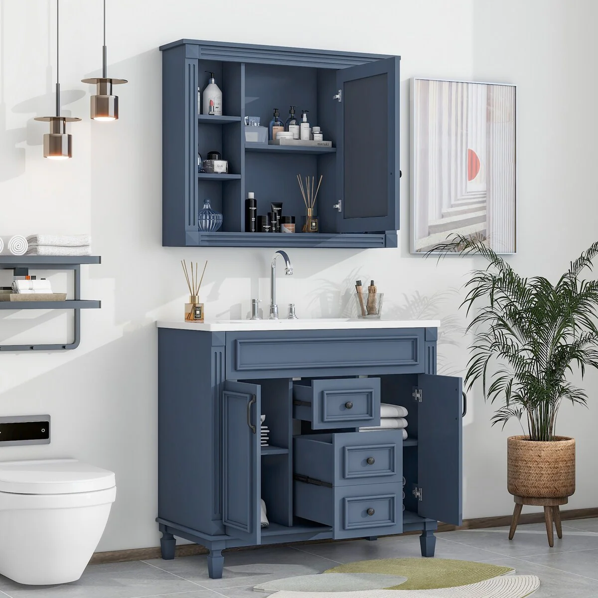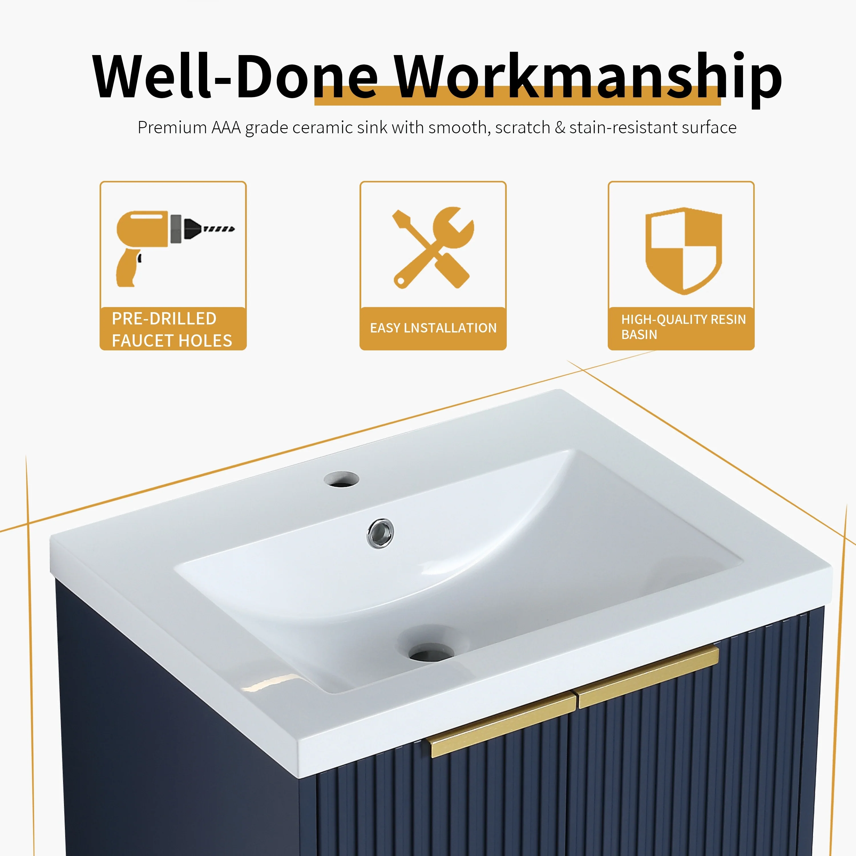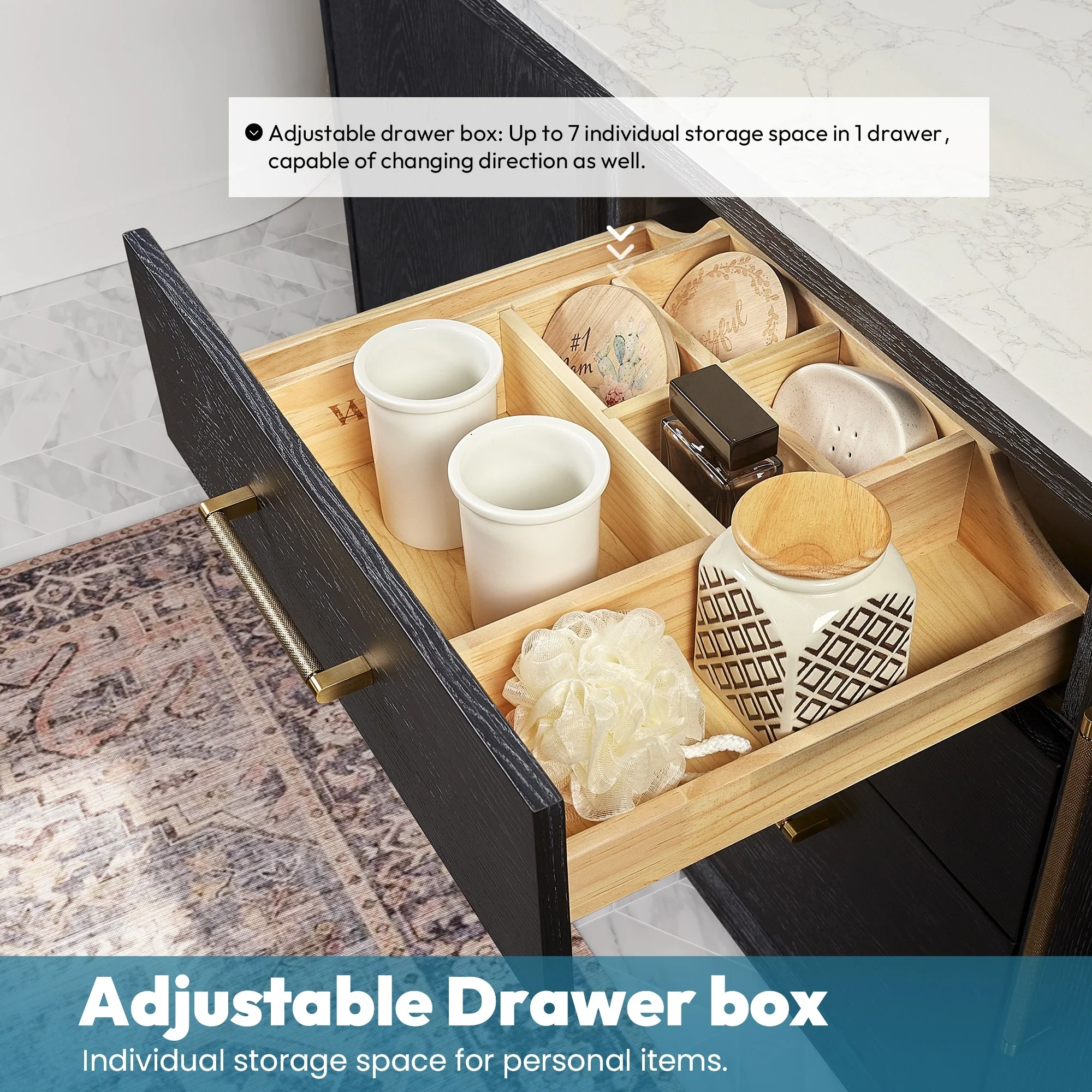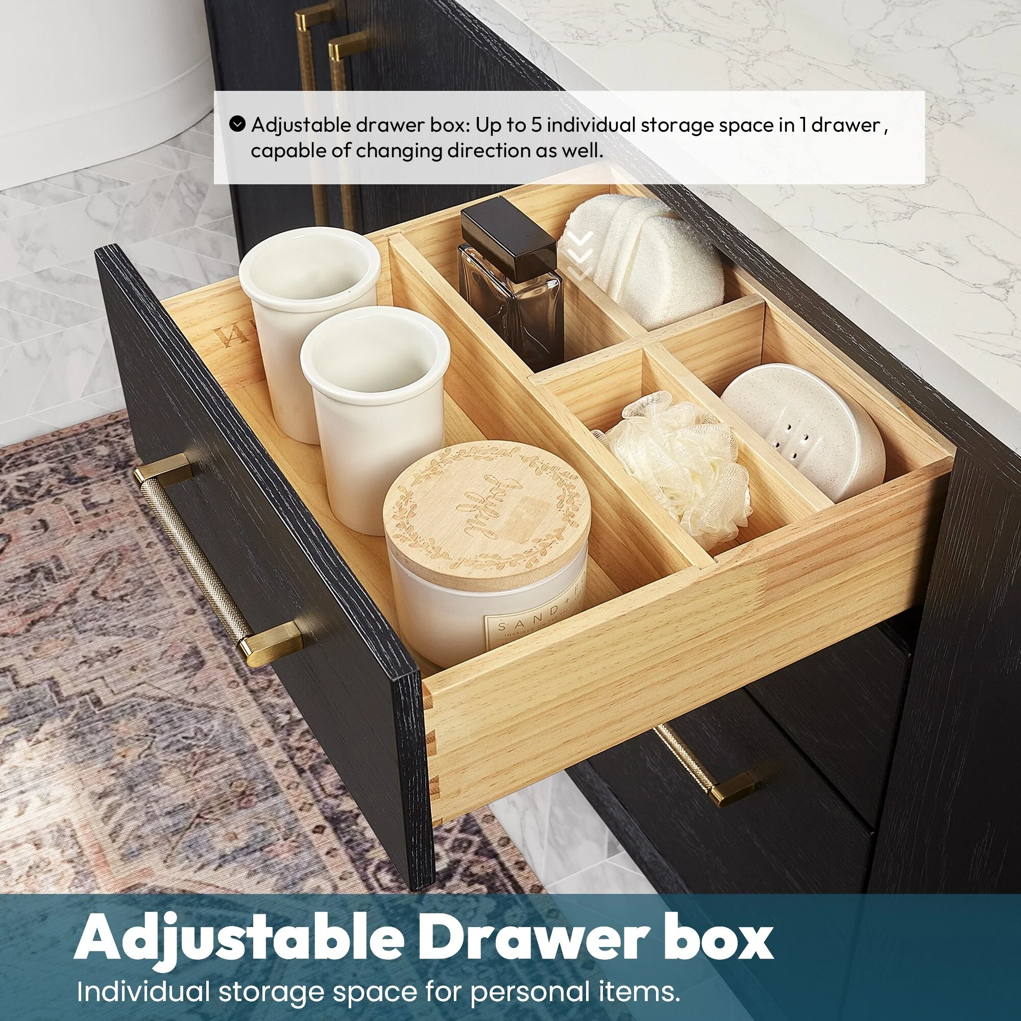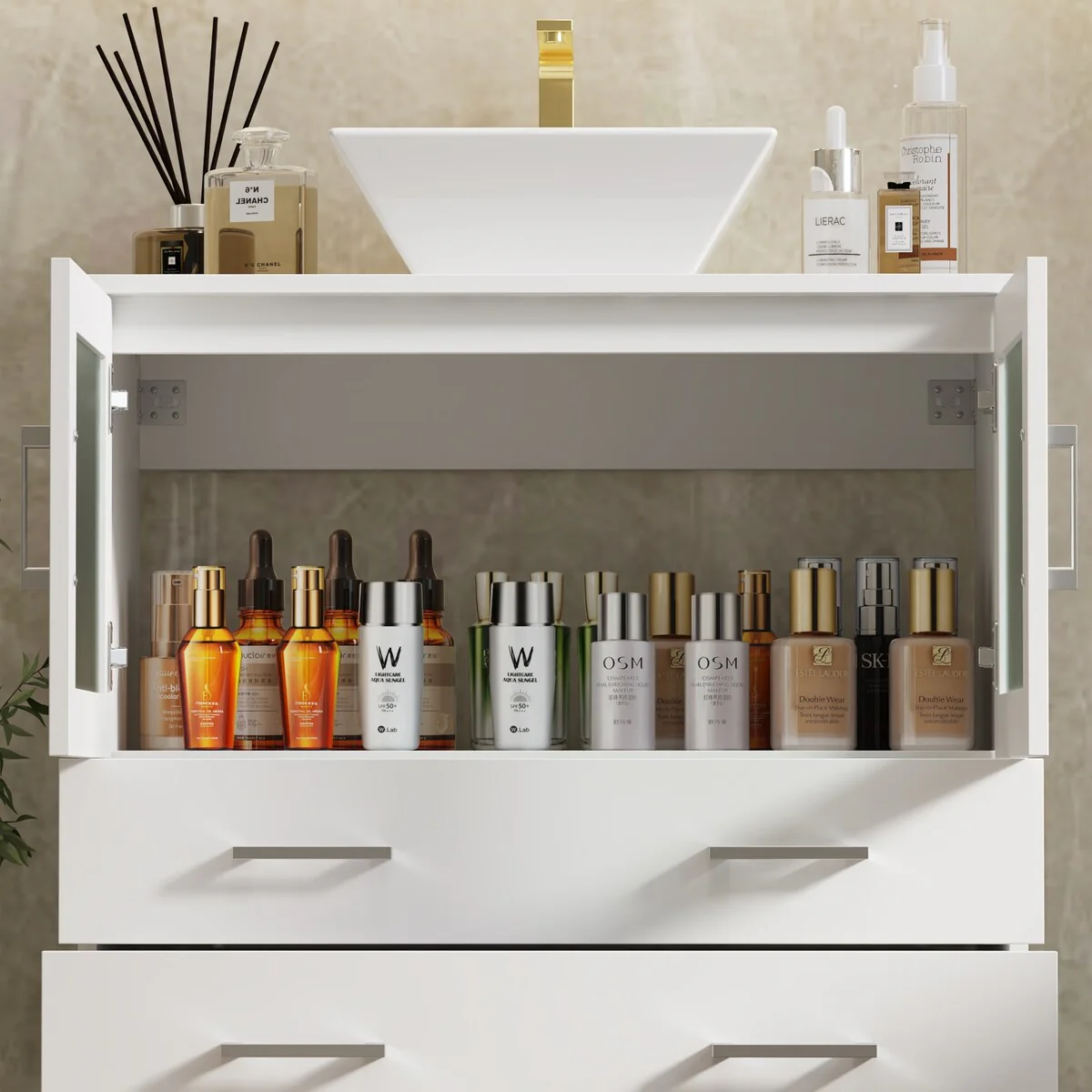 Bathroom Vanity with 2 Soft-close Doors and Double-tier Deep Drawer